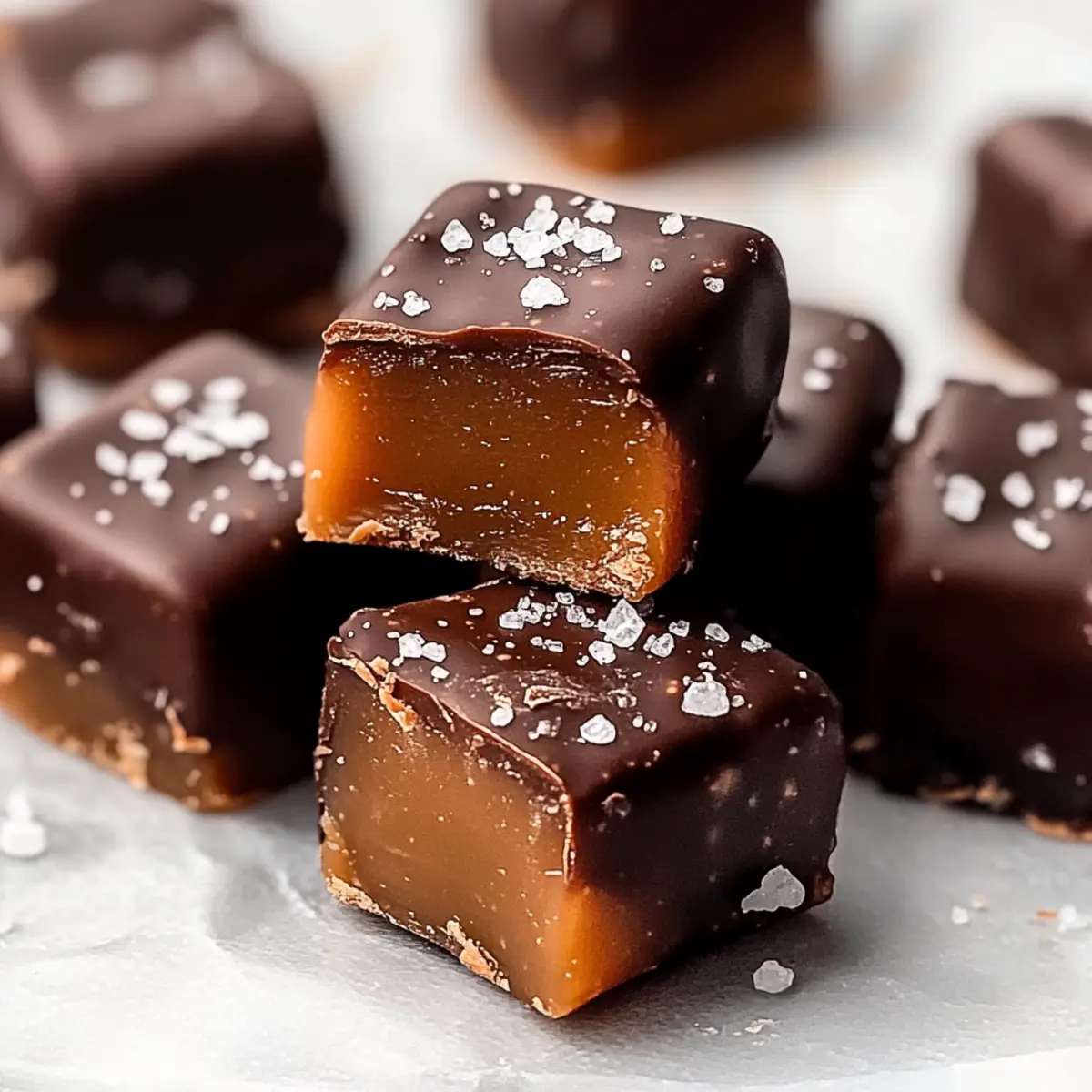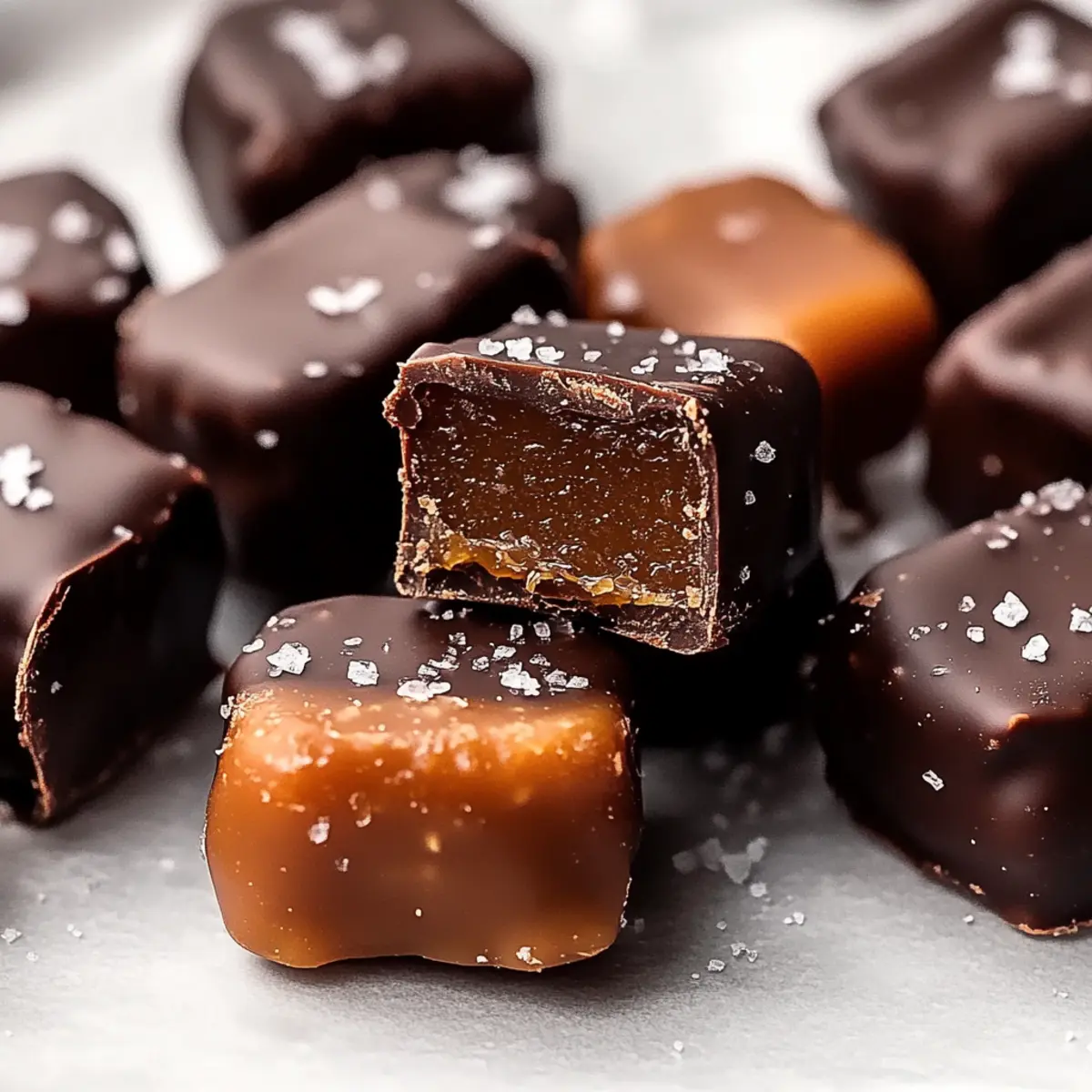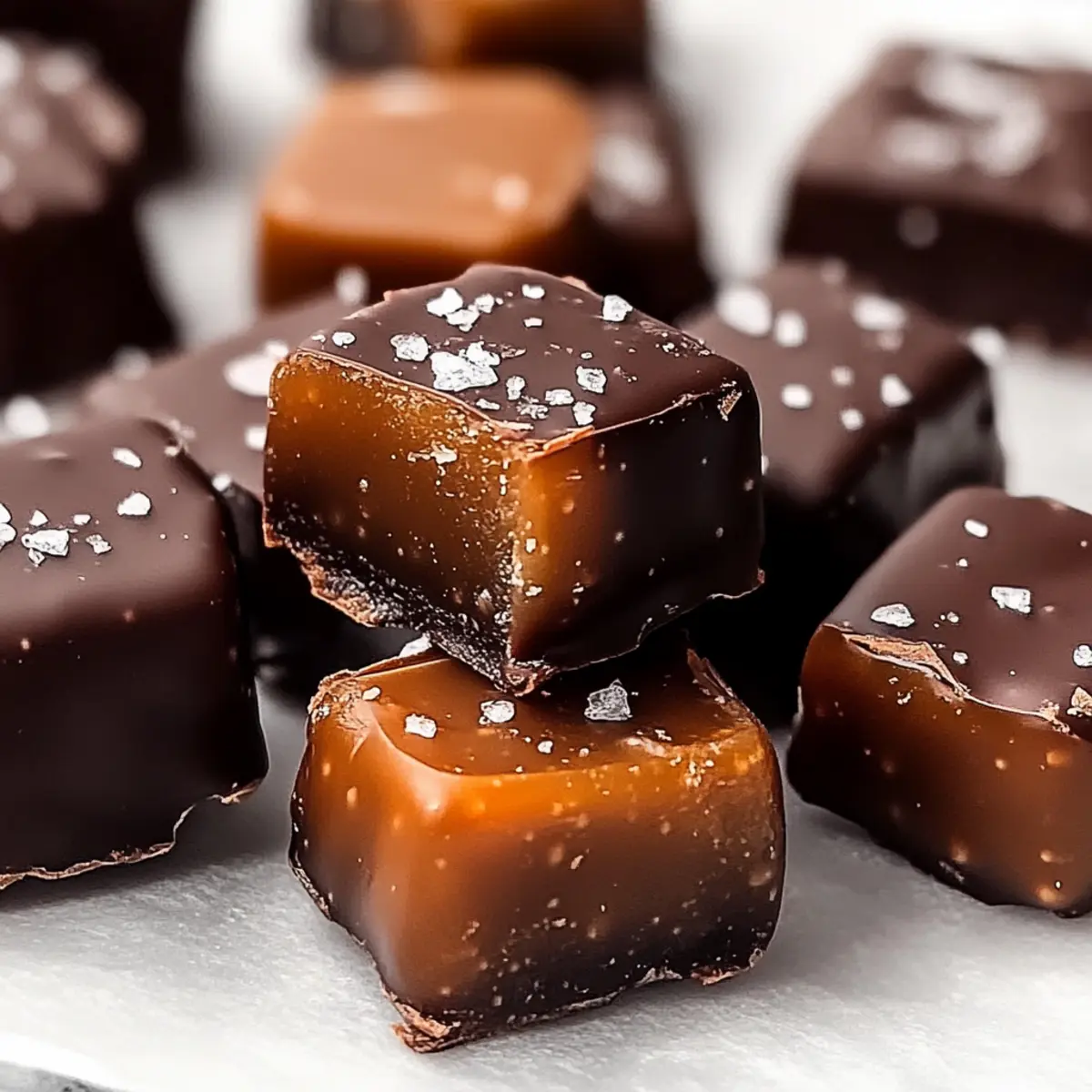 Jump to Recipe Print RecipeAs I stood in my kitchen, surrounded by the comforting aromas of coconut and chocolate, I couldn’t help but smile at the simplicity of my latest creation: 4-Ingredient Date Caramels. These delightful treats not only satisfy my sweet tooth but also bring a healthy twist to traditional candies, making them a guilt-free indulgence. With a chewy texture and a luscious chocolate coating, they offer a perfect balance of goodness and pleasure. Best of all, they’re quick to whip up and cater to a variety of dietary needs—they’re vegan, gluten-free, and refined sugar-free! Imagine treating yourself to something indulgent that you can feel great about enjoying. Ready to find out how to make your own batch of these irresistible Date Caramels? Let’s dive into this sweet journey together! Why are These Date Caramels Amazing? Simplicity at Its Best: With just four ingredients, you’ll be amazed at how easy these date caramels are to make, even on a busy weeknight. Irresistibly Chewy: Enjoy the delightfully chewy texture that melts in your mouth, proving that healthy can be indulgent! Vegan and Guilt-Free: Who says you can’t have guilt-free sugar fixes? These caramels are vegan and refined sugar-free, perfect for health-conscious snackers. Customizable Options: Whether you stick with almond butter or opt for nut-free sunflower seed butter, you can adapt this recipe easily to fit any dietary needs. Crowd Pleaser: Whip these up for parties, and watch as they disappear! They’re a great alternative to store-bought candies, appealing to all ages. Experience the joy of making these delightful treats right at home by exploring our ingredient breakdown! Date Caramel Ingredients • For the Caramel Base Medjool Dates – Natural sweetness and chewiness create the perfect foundation; ensure they are fresh and soft for the best texture. Almond Butter – Adds a creamy, nutty flavor; use sunflower seed butter for a delicious nut-free alternative. Coconut Oil – Binds the ingredients and enhances richness; melt it before mixing to achieve a smooth consistency. • For the Chocolate Coating Chocolate Chips – Provides a rich, indulgent coating; dark chocolate is recommended for a deeper flavor in your Date Caramels. Embrace the joy of crafting these luscious Date Caramels and let this simple yet satisfying recipe elevate your snacking experience! Step‑by‑Step Instructions for Date Caramels Step 1: Soak the Dates Begin by placing 1 cup of pitted Medjool dates in a bowl and covering them with hot water. Allow the dates to soak for about 10 minutes until softened; this step is crucial for achieving a smooth caramel consistency. You’ll know they’re ready when they feel plump and tender to the touch. Step 2: Blend the Mixture After soaking, drain the dates and transfer them to a high-speed blender or food processor. Add 2 tablespoons of almond butter and 1 tablespoon of melted coconut oil. Blend on high for 1-2 minutes until the mixture transforms into a creamy, cohesive caramel that clings together, showcasing a rich, caramel-like color. Step 3: Set the Caramel Prepare a 9×5 inch loaf pan by lining it with parchment paper for easy removal. Pour the date caramel mixture into the pan, pressing it evenly into all corners to create a smooth surface. Place the pan in the freezer for about 2-3 hours, or until the mixture is firm and holds its shape. Step 4: Slice the Caramels Once set, remove the firm date caramel from the freezer and lift it out of the pan using the parchment paper. Place it on a cutting board and slice into 12 equal squares using a sharp knife. The glossy texture should be visible on the cut edges, enticing anyone who lays eyes on them. Step 5: Melt the Chocolate In a microwave-safe bowl, combine 1 cup of dark chocolate chips with 2 teaspoons of coconut oil. Heat in the microwave in 20-second intervals, stirring in between until fully melted and smooth. This glossy, creamy chocolate will serve as the rich coating for your delightful Date Caramels. Step 6: Coat the Caramels Take each square of the date caramel and dip it into the melted chocolate, ensuring it’s fully covered. Use a fork to lift it out, letting any excess chocolate drip off. Place the coated caramels on a parchment-lined plate, ready for the final touch. Step 7: Set the Chocolate To allow the chocolate coating to set beautifully, refrigerate the caramels for at least 1 hour. You’ll know they’re ready when the chocolate is firm and has a glossy finish, offering the perfect contrast to the soft, chewy date caramel inside. Expert Tips for Date Caramels Choose Fresh Dates: Use soft, fresh Medjool dates for the perfect chewy texture. Dried-out dates lead to a grainy caramel consistency, so always check their quality. Melt Carefully: When melting chocolate, do it in short bursts (20-second intervals) and stir frequently. This prevents burning and ensures a smooth, glossy coating on your Date Caramels. Firmness Check: If your caramel mixture seems too soft before freezing, add an extra tablespoon of melted coconut oil. This simple trick enhances the firmness and makes slicing easier. Storage Matters: For the best texture, store your Date Caramels in the fridge or freezer rather than at room temperature. They’ll maintain their delightful chewiness for longer this way. Experiment with Coatings: Add a sprinkle of sea salt or toppings like crushed nuts on your chocolate-coated caramels for an extra flavor kick. Personalizing your Date Caramels will make them even more delicious! Date Caramels Variations & Substitutions Feel free to explore delightful twists and turns with this Date Caramels recipe, customizing it to suit your taste! Nut-Free: Substitute almond butter with sunflower seed butter for a delicious, nut-free option that maintains the creamy texture. Flavor Boost: Sprinkle a touch of sea salt on top of the chocolate before it sets, elevating the sweet and salty flavor profile beautif
