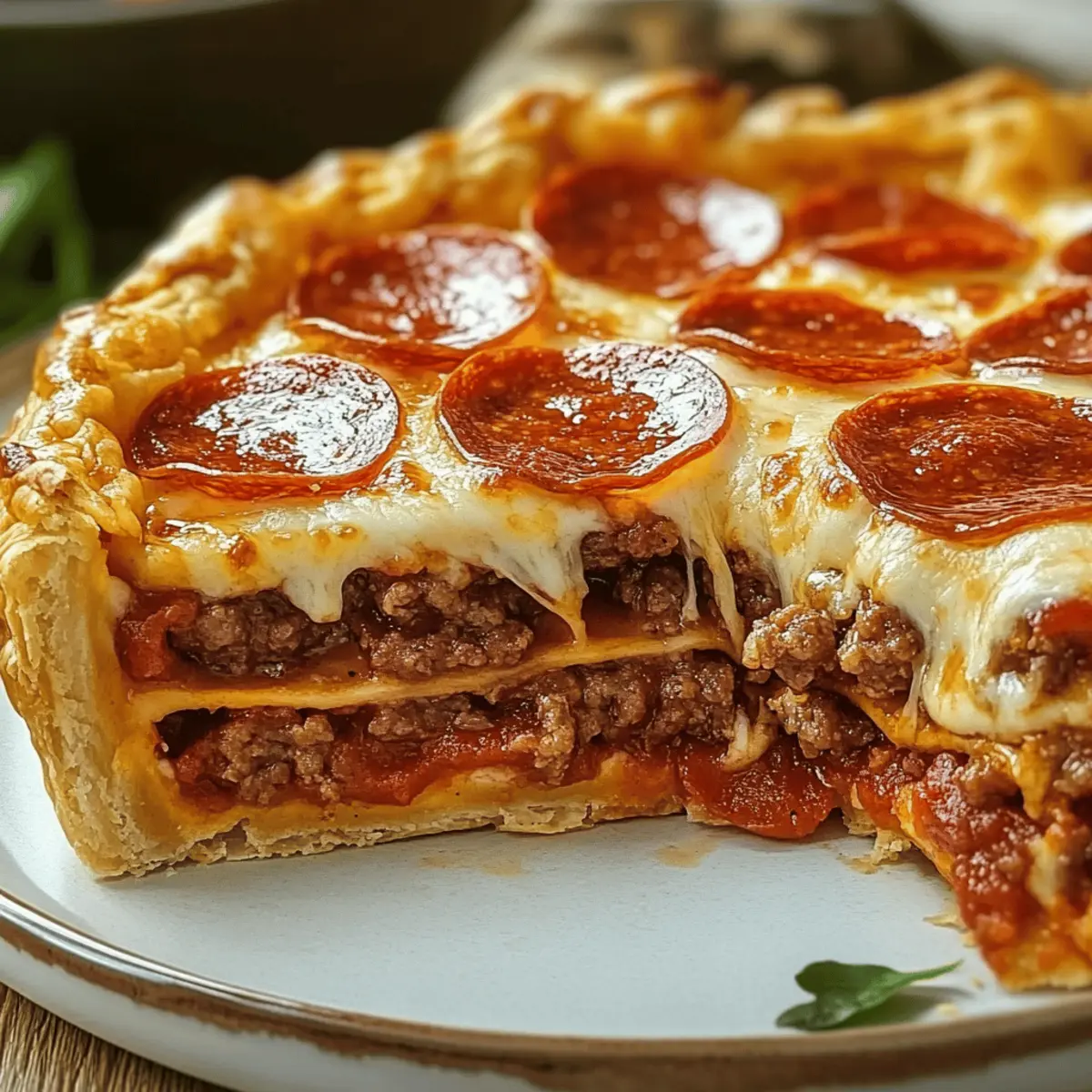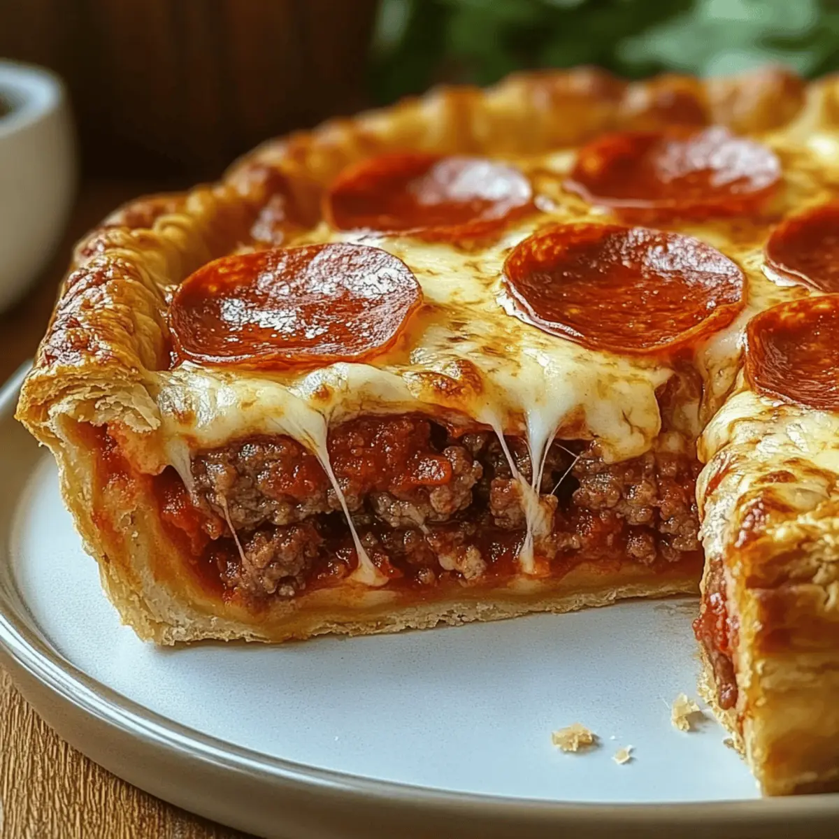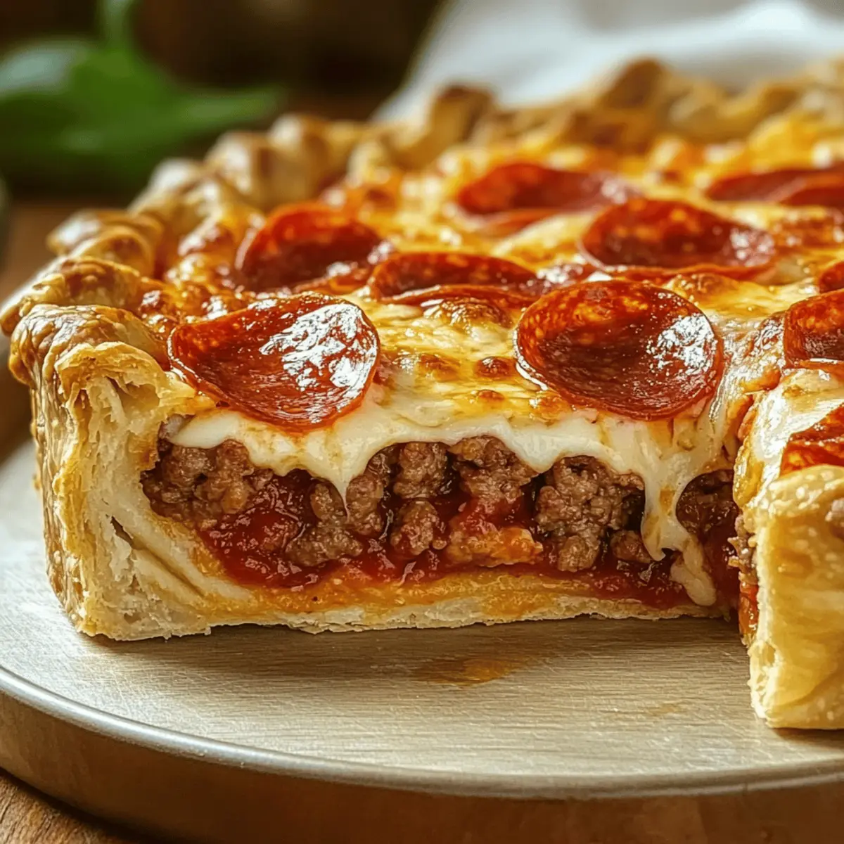 Deep Hamburger Sausage & Pepperoni Pie combines the best of pizza and comfort food for a delightful meal.