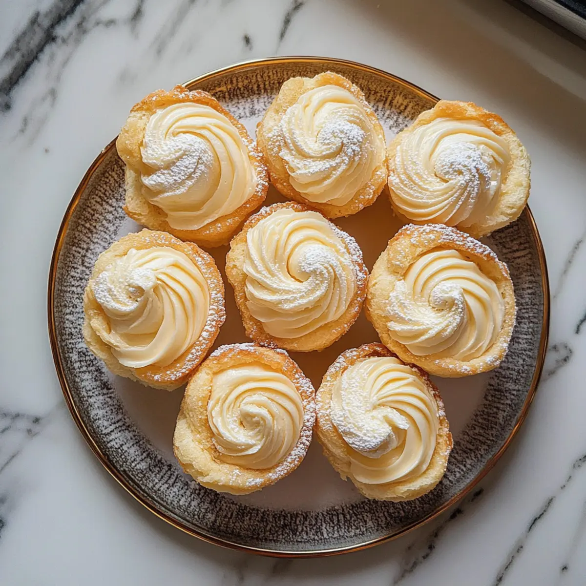 Jump to Recipe Print RecipeAs I felt the crisp winter air settle in, my mind wandered to cozy gatherings filled with laughter and indulgent treats. Nothing captures the essence of the holiday season quite like these Eggnog Cream Puffs. With their delicate, airy pastry shells and a rich, eggnog-flavored cream filling, they bring a festive twist to classic desserts. These delightful bites are not only quick to prepare but also sure to impress your friends and family, making them the perfect addition to any holiday spread. Whether you’re hosting a cheerful gathering or simply craving a sweet escape, these cream puffs promise to evoke warm feelings of nostalgia while delighting your taste buds. Curious about how to whip up this charming treat? Let’s dive into the recipe! Why Are Eggnog Cream Puffs a Must-Try? Unforgettable Flavor: The rich eggnog cream filling brings a delightful holiday twist, creating a memorable dessert experience. Quick and Easy: With simple ingredients and a straightforward process, you’ll have these festive treats ready in no time! Versatile Options: Customize your Eggnog Cream Puffs by trying variations like adding cinnamon or making them mini-sized for cute bite-sized delights. Crowd-Pleasing Treat: Perfect for holiday gatherings, these cream puffs are sure to impress friends and family, just like Brownie Ice Cream or Cream Cheese Salami. Make Ahead: Prepare the pastry shells and cream beforehand for a stress-free serving at your next festive event. Embrace the season with these delightful bites! Eggnog Cream Puffs Ingredients For the Pastry Unsalted Butter – Provides fat and richness for the pastry; substitute with margarine for a dairy-free option. Water – Hydrates the dough and assists with steam creation for puffing; no substitutions needed. Salt – Enhances flavor in the choux pastry; use kosher salt if preferred. All-Purpose Flour – Gives structure and stability to the pastry; gluten-free flour can be used for a gluten-free version. Large Eggs – Adds moisture and binds the ingredients; whole eggs only, no substitutes needed. For the Cream Filling Cold Heavy Whipping Cream – Forms the base of the filling, giving it a light, fluffy texture; non-dairy cream can be used. Eggnog – Provides the signature flavor; swap with whole milk and add ½ tsp of rum extract for a non-eggnog option. Powdered Sugar – Sweetens the cream filling and stabilizes it; granulated sugar can be used but may affect the texture. Instant Vanilla Pudding Mix – Thickens the filling and helps stabilize it without cooking; a critical ingredient for the filling texture. Ground Nutmeg – Adds a warm, spicy note characteristic of holiday flavor; substitute with pumpkin spice for a different seasonal twist. Vanilla Extract – Enhances the sweetness of the filling; use pure vanilla for the best results. For Dusting Powdered Sugar (for dusting) – Adds sweetness and visual appeal as a finishing touch; no substitutions necessary. Prepare to enjoy the festive magic of Eggnog Cream Puffs that will delight everyone at your holiday gatherings! Step‑by‑Step Instructions for Eggnog Cream Puffs Step 1: Prepare Pastry In a medium saucepan over medium heat, combine ½ cup unsalted butter, 1 cup water, and ½ teaspoon salt. Bring this mixture to a boil, stirring occasionally. Once boiling, remove from heat and add 1 cup all-purpose flour. Stir vigorously until a smooth dough forms, which should pull away from the sides of the pan. Let this dough cool for about 5 minutes. Step 2: Add Eggs After the dough has cooled slightly, it’s time to add the eggs. Using a handheld mixer, beat in 4 large eggs, one at a time, mixing until each egg is fully incorporated and the mixture is smooth and shiny. This is the choux pastry for your Eggnog Cream Puffs, and it should have a thick but pipeable consistency. Step 3: Pipe and Bake Preheat your oven to 400°F (200°C). Line a baking sheet with parchment paper. Using a piping bag fitted with a large round tip, pipe 12 mounds of the dough onto the prepared baking sheet, leaving space between each puff. Bake in the preheated oven for 25–30 minutes, or until they are puffed up and golden brown. Resist the urge to open the oven door during baking to ensure they rise beautifully. Step 4: Cool Once baked, remove the Eggnog Cream Puffs from the oven and transfer them to a wire rack. Allow the puffs to cool completely, which will take about 30 minutes. This step is crucial to prevent the cream filling from melting when you fill them. Step 5: Prepare Filling While the puffs are cooling, prepare the eggnog cream filling. In a large mixing bowl, whip together 2 cups cold heavy whipping cream, ½ cup eggnog, ¼ cup powdered sugar, 1 packet of instant vanilla pudding mix, ½ teaspoon ground nutmeg, and 1 teaspoon vanilla extract. Whip until the mixture reaches a thick, fluffy consistency, ensuring the cream filling is light and airy. Step 6: Fill Puffs Once the cream puffs have cooled, take a serrated knife and gently cut the tops off each puff to create a lid. Using a small spoon or piping bag, fill each puff generously with the eggnog cream filling. Replace the tops carefully, ensuring a delightful surprise awaits inside each bite of your Eggnog Cream Puffs. Step 7: Dust and Serve Finally, dust the filled Eggnog Cream Puffs with powdered sugar for a festive touch. Serve them on a beautiful platter at your holiday gathering, and watch as they bring smiles to everyone’s faces, perfect for celebrating the season! Eggnog Cream Puffs Variations & Substitutions Feel free to mix things up and tailor these Eggnog Cream Puffs to your taste for a delightful twist on a classic! Dairy-Free: Swap heavy cream with coconut cream and use a dairy-free eggnog for a luscious vegan option. The result is just as creamy and rich! Spice It Up: Add 1 teaspoon of cinnamon to the pastry dough to infuse warm holiday notes into every bite. This simple twist enhances the festive flav