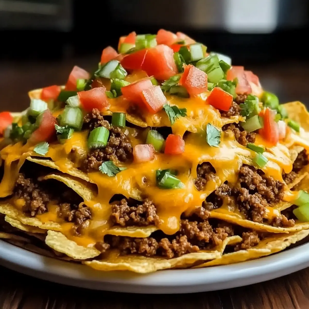 Irresistible Layers: The Epic Beef Nachos Supreme features an amazing combination of layers—crispy tortilla chips, savory beef, gooey cheese, and fresh toppings. Each bite delivers an incredible crunch paired with rich flavor.