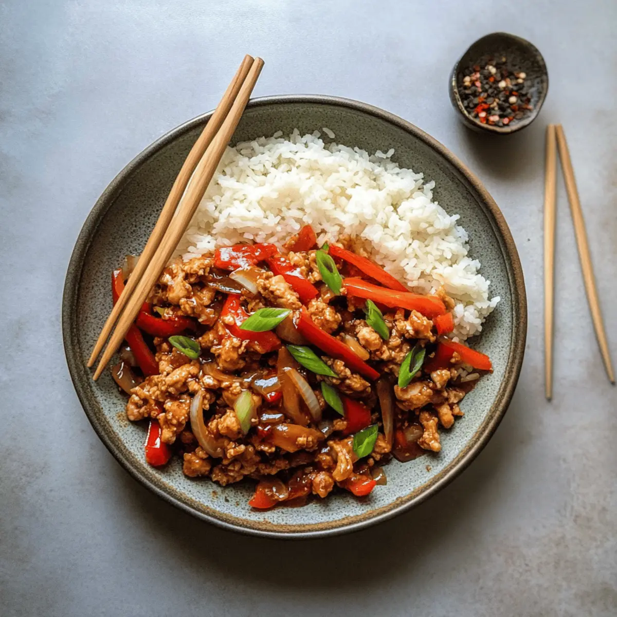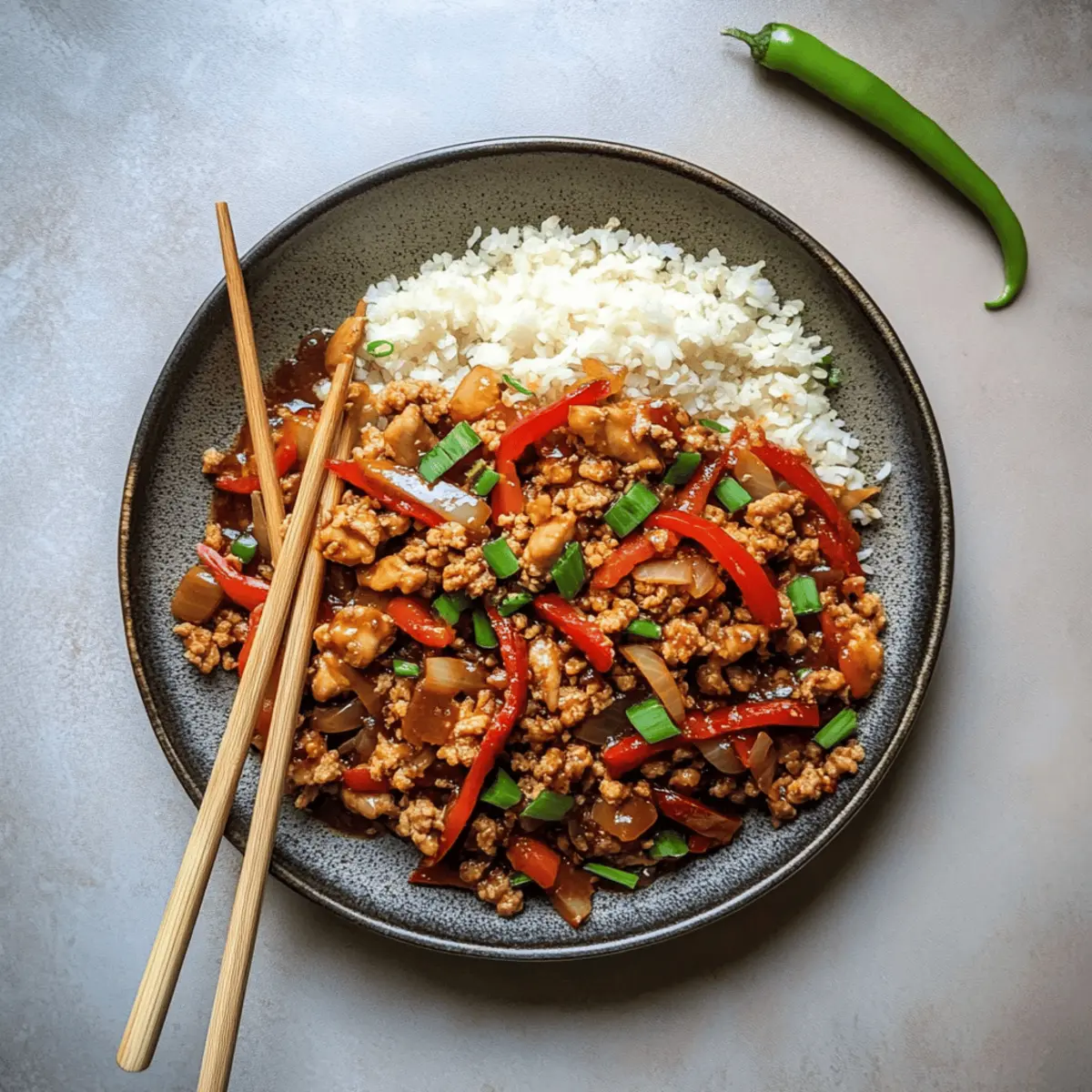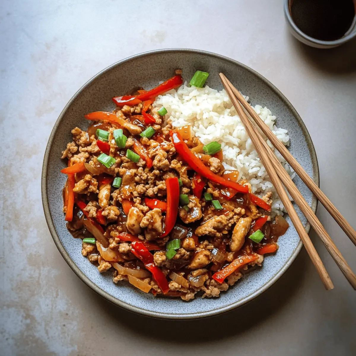 Jump to Recipe Print RecipeAs I stepped into my kitchen, the aroma of sizzling sesame oil brought me right back to the cozy corner of my favorite take-out spot. But here’s the twist: I was about to create my own Gluten-Free Kung Pao Chicken, a dish that perfectly balances sweet and savory flavors while keeping it healthy. With just a handful of ingredients and prep time that’s quicker than any delivery waiting for your doorbell to ring, this recipe will quickly become a go-to for busy weeknights. Plus, it’s family-friendly, making it a crowd-pleaser everyone will crave. Are you ready to take your cooking back to the roots of flavor and satisfaction? Let’s dive into this deliciously simple adventure! Why is this dish a must-try? Simplicity: This Gluten-Free Kung Pao Chicken comes together in under 30 minutes, making busy weeknight dinners a breeze. Healthier Alternative: With fresh ingredients and a twist on a classic, you can enjoy your take-out favorites guilt-free! Flavor Explosion: The combination of hoisin sauce and sesame oil delivers a mouthwatering balance of sweet and savory that’s sure to impress. Crowd-Pleaser: This dish is not only family-friendly but also versatile – try it with ground turkey or even tossed with extra veggies like broccoli for a satisfying twist. Comforting Texture: The tender chicken pairs perfectly with crisp vegetables, making each bite a delightful experience! For more cozy recipes, check out Garlic Parmesan Chicken or Honey BBQ Chicken. Gluten-Free Kung Pao Chicken Ingredients • Dive into this delightful recipe with these essential ingredients! For the Chicken • Ground Chicken – This is the main protein source for a quick cook and tender result. • Cornstarch – Helps to marinate the chicken and thickens the sauce beautifully. For the Sauce • Tamari – A gluten-free alternative to soy sauce, enriching the dish with depth. • Hoisin Sauce – Adds a touch of sweetness and complexity; ensure it’s gluten-free if needed. • Rice Vinegar – Provides necessary acidity that balances out the sweet and savory elements. • Honey – A natural sweetener that harmonizes the flavors; swap with maple syrup for a vegan option. For Cooking • Sesame Oil – Infuses rich flavor and delightful aroma into the dish. • Onion – Enhances the overall taste and adds texture; slice thin for even cooking. For the Vegetables • Red Peppers – Brightens the dish with sweetness and color; other bell peppers can be used for variety. Optional Garnishes • Green Onions – Adds freshness and a bit of crunch as a topping. • Peanuts or Sesame Seeds – Provides a crunchy finish that elevates the dish! Ready to savor this flavorful Gluten-Free Kung Pao Chicken? Gather your ingredients and let’s get cooking! Step‑by‑Step Instructions for Gluten Free Kung Pao Chicken Step 1: Marinate the Chicken In a mixing bowl, combine the ground chicken with ¼ cup of tamari and a sprinkle of cornstarch. Use your hands or a spatula to gently toss until the chicken is coated evenly. This marinating step not only enhances the flavor but also helps tenderize the meat. Let it sit for about 10 minutes while you prepare the rest of the ingredients. Step 2: Cook the Chicken Heat 2 tablespoons of sesame oil in a large skillet over medium-high heat. Once shimmering, add the marinated chicken to the skillet. Cook for about 5-7 minutes, stirring occasionally, until the chicken is browned and no longer pink. Use a spatula to break it apart as it cooks, ensuring uniform doneness and flavor. Step 3: Make the Sauce In a small bowl, whisk together the remaining tamari, hoisin sauce, rice vinegar, and honey. This will create a delicious flavor-packed sauce with a perfect balance of sweet and savory for your Gluten Free Kung Pao Chicken. Set the sauce aside to allow the flavors to meld while you focus on the vegetables. Step 4: Sauté the Vegetables Once the chicken is fully cooked, remove it from the skillet and set it aside on a plate. Add the remaining tablespoon of sesame oil to the pan and toss in the sliced onions and red peppers. Cook for about 3-4 minutes over medium heat, stirring frequently, until the vegetables are tender but still vibrant and crisp. Step 5: Combine Everything Return the cooked chicken to the skillet with the sautéed vegetables. Pour the prepared sauce over the mixture and use a spatula to toss everything together. Increase the heat to bring the dish to a brief boil, then reduce the heat and simmer for 1-2 minutes until the sauce thickens slightly and coats the chicken and vegetables beautifully. Step 6: Garnish and Serve Remove the skillet from the heat and top your Gluten Free Kung Pao Chicken with chopped green onions, peanuts, or sesame seeds for an extra crunch. Serve the dish warm with steamed rice or cauliflower rice for a satisfying meal that’s sure to impress your family and friends. Expert Tips for Gluten-Free Kung Pao Chicken Ingredient Check: Ensure tamari and hoisin sauce are gluten-free, as this maintains the integrity of your Gluten-Free Kung Pao Chicken. Veggie Care: Avoid overcooking vegetables; this keeps them crispy and vibrant, adding texture to your dish. Fresh is Best: Always use fresh ingredients for maximum flavor and satisfaction in your meal. Sauce Balance: Adjust sweetness or acidity in the sauce according to your taste; adding just a bit more honey or vinegar can make a world of difference. Meal Prep: Consider doubling the recipe for leftovers, which can be stored in the fridge for up to three days without losing flavor. Make Ahead Options These Gluten-Free Kung Pao Chicken ingredients are perfect for meal prep enthusiasts! You can marinate the ground chicken with cornstarch and tamari up to 24 hours in advance to enhance its flavor and tenderness. Additionally, you can chop the vegetables (onion and red peppers) up to 3 days ahead, storing them in an airtight container in the refrigerator to keep them fresh and crisp. W