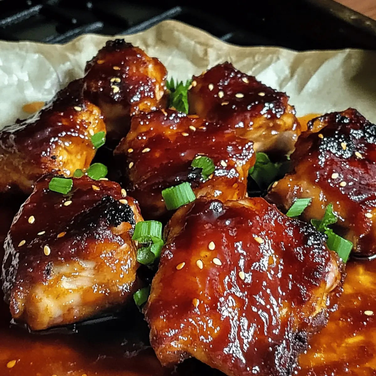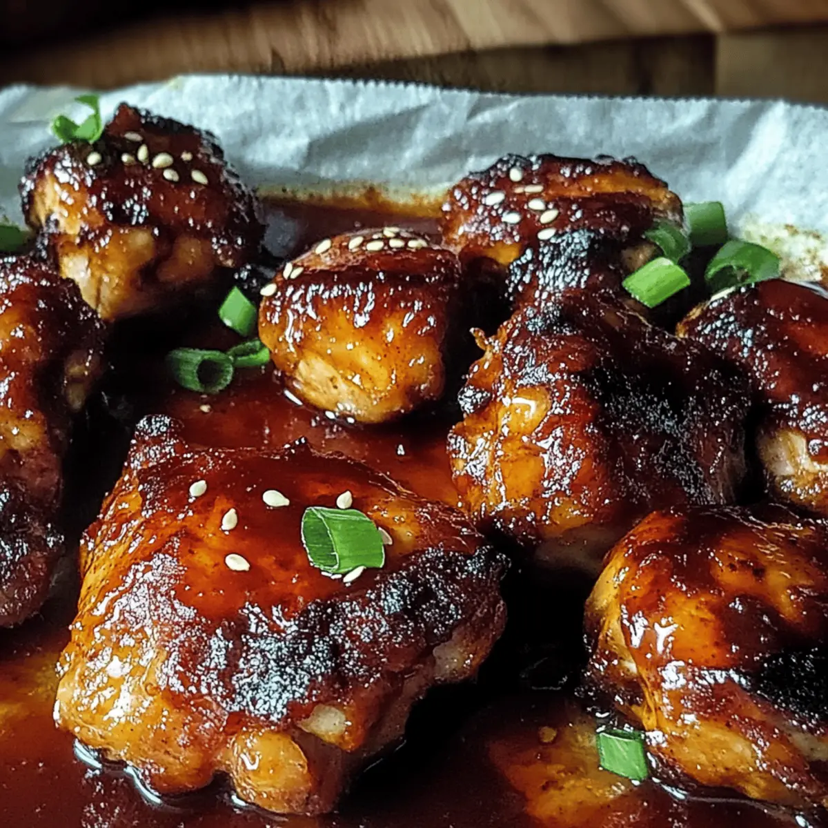 Jump to Recipe Print RecipeAs I pulled the fragrant chicken from the oven, the aroma enveloped my kitchen like a warm hug, a sure sign that dinner would be something special tonight. These Gochujang Miso Chicken Thighs deliver a mouthwatering blend of sweet and spicy bliss, caramelizing beautifully to create a crispy skin that’s utterly irresistible. This easy recipe is not just your average weeknight meal; in just 45 minutes, you’ll enjoy a delightful taste of Korean-inspired cuisine right at your table. Plus, it’s gluten-free, making it a perfect choice for anyone looking to shake up their dinner routine without compromising flavor. Ready to elevate your cooking game and impress your loved ones? Let’s dive into this adventure in flavor! Why will you love Gochujang Miso Chicken? Simplicity at Its Best: The steps are easy to follow, allowing anyone to whip up a bold dish without fuss. Irresistible Flavor: The combination of gochujang and miso creates a deep, spicy sweetness that transforms ordinary chicken into a flavor festival. Quick Prep Time: In just 45 minutes, this dish is ready to serve, perfect for busy weeknights when you crave something delicious without the wait. Versatile and Customizable: Feel free to switch things up with different marinades or even add vegetables for a complete meal. Pair it with steamed rice or serve it over stir-fried veggies for a colorful, satisfying dinner. Crowd-Pleasing Appeal: This dish will impress family and friends alike, making it a hit at gatherings while being gluten-free for those with dietary restrictions. Get ready to enjoy compliments from everyone at the table! Gochujang Miso Chicken Thighs Ingredients For the Marinade Gochujang – Adds spiciness and depth; great for the flavor profile of Gochujang Miso Chicken Thighs. Miso Paste – Provides savory umami; can substitute with tahini for a non-soy alternative. Soy Sauce – Enhances flavor and saltiness; opt for gluten-free soy sauce if needed. Honey or Maple Syrup – For balanced sweetness and caramelization; adjust to your taste. Rice Vinegar – Adds acidity to balance flavors; substitute with white vinegar if unavailable. Sesame Oil – Imparts a lovely nutty flavor; can replace with olive oil (though flavor will differ). Garlic (minced) – Boosts aroma and complexity; garlic powder can work in a pinch if fresh garlic isn’t handy. Ginger (grated) – Adds warmth and a gentle spice; ground ginger is a good substitute, though use less. For the Chicken Chicken Thighs – Choose bone-in and skin-on for juicy, tender results; boneless can be a leaner substitute. Salt and Pepper – Essential to enhance overall flavor; adjust according to your preference. For Garnishing Sesame Seeds – Adds a delightful crunch and visual appeal; optional but enhances presentation. Sliced Green Onions – A fresh touch that adds color and flavor; can be omitted based on personal taste. Step‑by‑Step Instructions for Gochujang Miso Chicken Thighs Step 1: Prepare Marinade In a mixing bowl, whisk together gochujang, miso paste, soy sauce, honey, rice vinegar, sesame oil, minced garlic, and grated ginger until all ingredients are well combined and smooth. This vibrant marinade will be the key to flavoring your Gochujang Miso Chicken Thighs, so make sure everything is fully incorporated and set aside. Step 2: Marinate Chicken Place the chicken thighs in a large resealable bag or a glass dish. Pour the prepared marinade over the chicken, ensuring each piece is generously coated. Seal the bag (or cover the dish) and refrigerate for at least 30 minutes, allowing the flavors to meld—overnight marination will yield even better results for your flavorful Gochujang Miso Chicken Thighs. Step 3: Preheat Oven When you’re ready to cook, preheat your oven to 400°F (200°C). This temperature is perfect for developing a crispy skin on your chicken while locking in the juicy tenderness of the meat. Preheating ensures your Gochujang Miso Chicken Thighs start cooking evenly right from the beginning. Step 4: Prepare Dish While the oven is heating up, grease a baking dish with cooking spray or a light coating of oil to prevent sticking. This simple step makes serving easier and helps achieve that beautifully caramelized finish on the chicken. Your baking dish should be ready to hold those savory Gochujang Miso Chicken Thighs. Step 5: Arrange Chicken Carefully remove the chicken from the marinade, discarding any leftover marinade to avoid cross-contamination. Place the chicken thighs skin-side up in the prepared baking dish, ensuring they are spaced apart for even cooking. The skin will crisp up nicely as it bakes, giving your Gochujang Miso Chicken Thighs a delightful texture. Step 6: Season Sprinkle a pinch of salt and freshly cracked pepper over the arranged chicken thighs. This extra seasoning enhances the overall flavor, bringing out the delicious umami notes from the marinade. Make sure to balance the seasoning for your Gochujang Miso Chicken Thighs to achieve that ideal taste profile. Step 7: Bake Transfer the dish to the preheated oven and bake for 25-30 minutes. You’ll know your Gochujang Miso Chicken Thighs are ready when they reach an internal temperature of 165°F (75°C) and the skin appears golden brown and crispy. Keep an eye on them to prevent overcooking. Step 8: Broil (optional) For an extra level of crispiness, switch your oven to broil for the last 2-3 minutes of cooking. This step will help achieve an irresistible and crunchy texture on the skin, but be sure to monitor closely to prevent burning. Your Gochujang Miso Chicken Thighs will have a beautiful finish if done right. Step 9: Garnish and Serve Once baked to perfection, remove the chicken from the oven and allow it to rest for a few minutes. This resting period helps the juices settle, ensuring tender bites. Garnish your Gochujang Miso Chicken Thighs with toasted sesame seeds and sliced green onions for a colorful presentation before