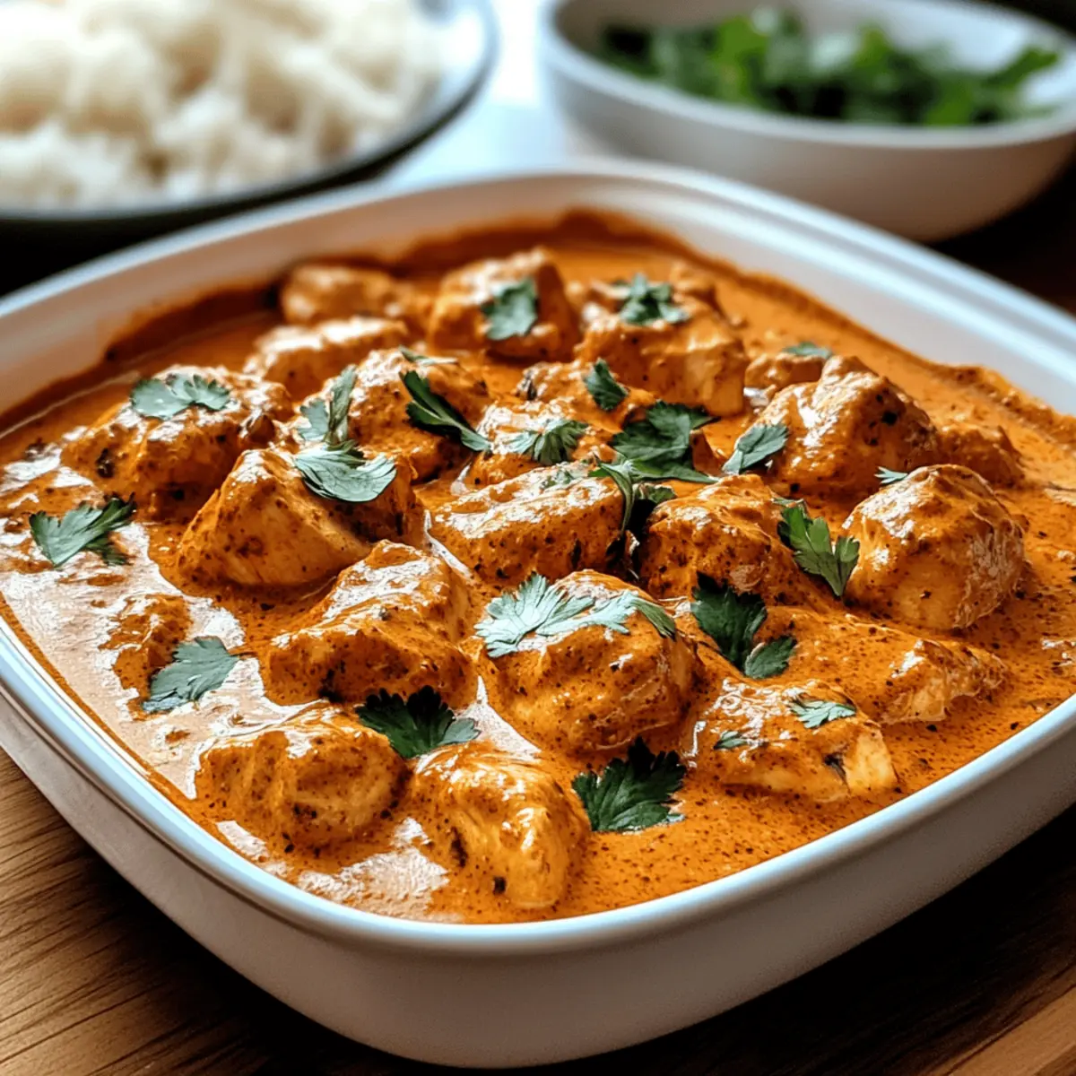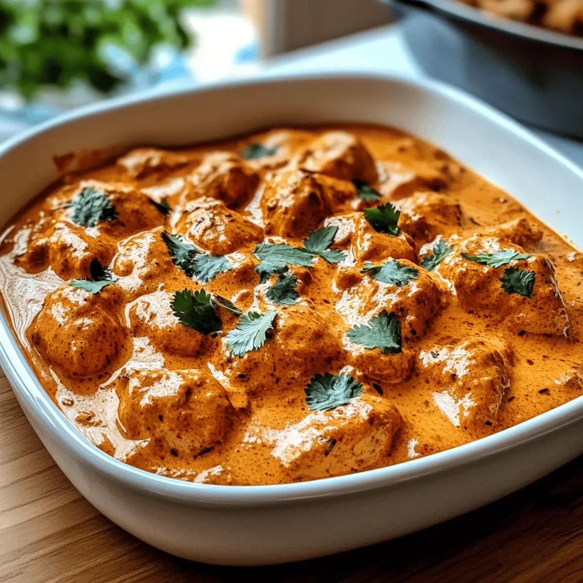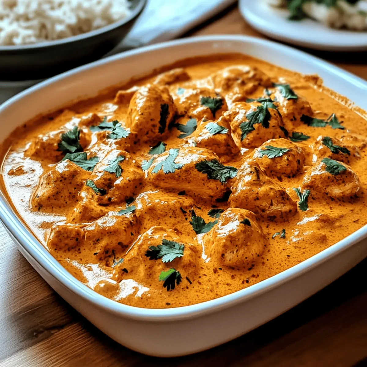 Jump to Recipe Print RecipeStepping into my kitchen, the air instantly fills with the tantalizing aroma of spices and simmering tomatoes. It’s the familiar scent of comfort, and it can only mean one thing: I’m about to whip up Gordon Ramsay’s Chicken Tikka Masala. This dish isn’t just a meal; it’s an experience, celebrating the rich tapestry of Indian cuisine right from your home. What I absolutely love about this recipe is how easily it adapts to your dietary needs—it’s perfect for everyone, whether you’re looking for a dairy-free option or simply craving that intense, restaurant-quality flavor. The combination of tender marinated chicken and a creamy, spiced sauce is a guaranteed crowd-pleaser, making it ideal for family dinners or cozy nights in. Curious about how to bring this culinary delight to your table and make it your own? Let’s dive in! Why is Gordon Ramsay Chicken Tikka Masala Special? Authentic Flavor: Experience the rich, spiced taste of traditional Indian cuisine, brought to life by Gordon Ramsay’s expert touch. Easy Adaptability: This recipe shines by allowing dairy-free substitutions, ensuring everyone can enjoy it! Quick Prep Time: With just a few simple steps, you can have a delicious dish ready in under an hour. Crowd-Pleasing Appeal: Perfect for gatherings, this meal has a balanced flavor that both kids and adults will love. Comforting Texture: The velvety sauce pairs beautifully with fluffy basmati rice or warm naan, making every bite a delight. Versatile Choices: Feel free to swap chicken for paneer, tofu, or veggies for a personalized take! If you’re looking for more delicious chicken options, don’t miss out on my Honey BBQ Chicken or Garlic Parmesan Chicken. Gordon Ramsay Chicken Tikka Masala Ingredients • Discover everything you need to create this delightful dish. For the Chicken Marinade Chicken Breasts/Thighs – Choose bone-in for better moisture retention. Greek Yogurt – Acts as a marinade base; swap for dairy-free yogurt for a dairy-free version. Lemon Juice – Brightens the flavors and balances spices. Ginger-Garlic Paste – Adds a fragrant depth of flavor. For the Spices Turmeric Powder – Provides earthy flavor and vibrant color. Garam Masala – Essential for authentic Indian taste. Ground Cumin and Coriander – Infuse warmth and nuttiness into the dish. Smoked Paprika – Introduces a delicious smoky note. Chili Powder – Adjust according to your desired heat level. Salt – Essential for enhancing all the flavors. For the Sauce Oil – Use for cooking the chicken and enhancing flavor. Butter or Ghee – Forms a rich base for the sauce. Onion – Adds sweetness and body to the dish. Garlic and Ginger (fresh) – Intensify the overall flavor profile. Tomato Paste – Boosts tomato flavor and helps thicken the sauce. Crushed Tomatoes (canned) – A quality choice here will elevate the sauce. Heavy Cream or Coconut Milk – Adds richness; coconut milk serves as a great dairy-free option. Sugar – Optional, to balance the acidity of tomatoes. Cilantro (for garnish) – Freshness and color to brighten the dish. Lemon Juice (finishing) – A final touch that lifts the flavor. Now that you know the ingredients, get ready to create your own Gordon Ramsay Chicken Tikka Masala and enjoy a slice of authentic Indian comfort right at home! Step‑by‑Step Instructions for Gordon Ramsay Chicken Tikka Masala Step 1: Marinate the Chicken In a large bowl, mix Greek yogurt, lemon juice, ginger-garlic paste, turmeric, garam masala, cumin, coriander, smoked paprika, chili powder, salt, and a splash of oil. Cut the chicken breasts into bite-sized chunks, ensuring they are evenly coated with the marinade. Cover tightly and refrigerate for at least 1 hour (preferably overnight) to allow the flavors of your Gordon Ramsay Chicken Tikka Masala to meld beautifully. Step 2: Cook the Chicken Preheat a skillet over medium-high heat. Add a drizzle of oil and sear the marinated chicken chunks for about 4-5 minutes on each side, until they are golden and cooked through. You can choose to bake the chicken in a preheated oven at 400°F for 15-20 minutes if preferred. Once cooked, remove the chicken from the skillet and set it aside while you prepare the sauce. Step 3: Prepare the Masala Sauce In the same skillet, melt 2 tablespoons of butter or ghee over medium heat. Add finely chopped onions and sauté them until they turn golden brown, about 5-7 minutes. Stir in freshly minced garlic and ginger, cooking for an additional minute until fragrant. This develops the rich base flavor for your Gordon Ramsay Chicken Tikka Masala. Step 4: Add Tomatoes and Spices Once the onions are caramelized, sprinkle in the remaining spices and stir for a minute to release their aromas. Then, add in the tomato paste and crushed tomatoes, stirring well. Allow the mixture to simmer on low heat for about 10 minutes until it thickens and the flavors concentrate. Watch for the sauce to darken slightly as it cooks. Step 5: Finish the Sauce Reduce the heat low and stir in the heavy cream or coconut milk, mixing until fully incorporated. Season with salt and sugar to taste, balancing the acidity of the tomatoes. Let the sauce simmer gently for 5-7 minutes, creating a creamy consistency that’s essential for your Gordon Ramsay Chicken Tikka Masala. Step 6: Combine Chicken and Sauce Finally, add the seared chicken back into the sauce, gently stirring to coat all the pieces. Allow everything to simmer together for an additional 5 minutes, letting the chicken absorb the incredible flavors. Just before serving, drizzle with fresh lemon juice and garnish with chopped cilantro to brighten your dish. Step 7: Serve and Enjoy Your Gordon Ramsay Chicken Tikka Masala is now ready to impress! Serve it hot over fluffy basmati rice or alongside warm naan, allowing everyone to enjoy this flavorful home-cooked delight. Savor each bite and relish the joy of creating an authentic Indian dish in yo