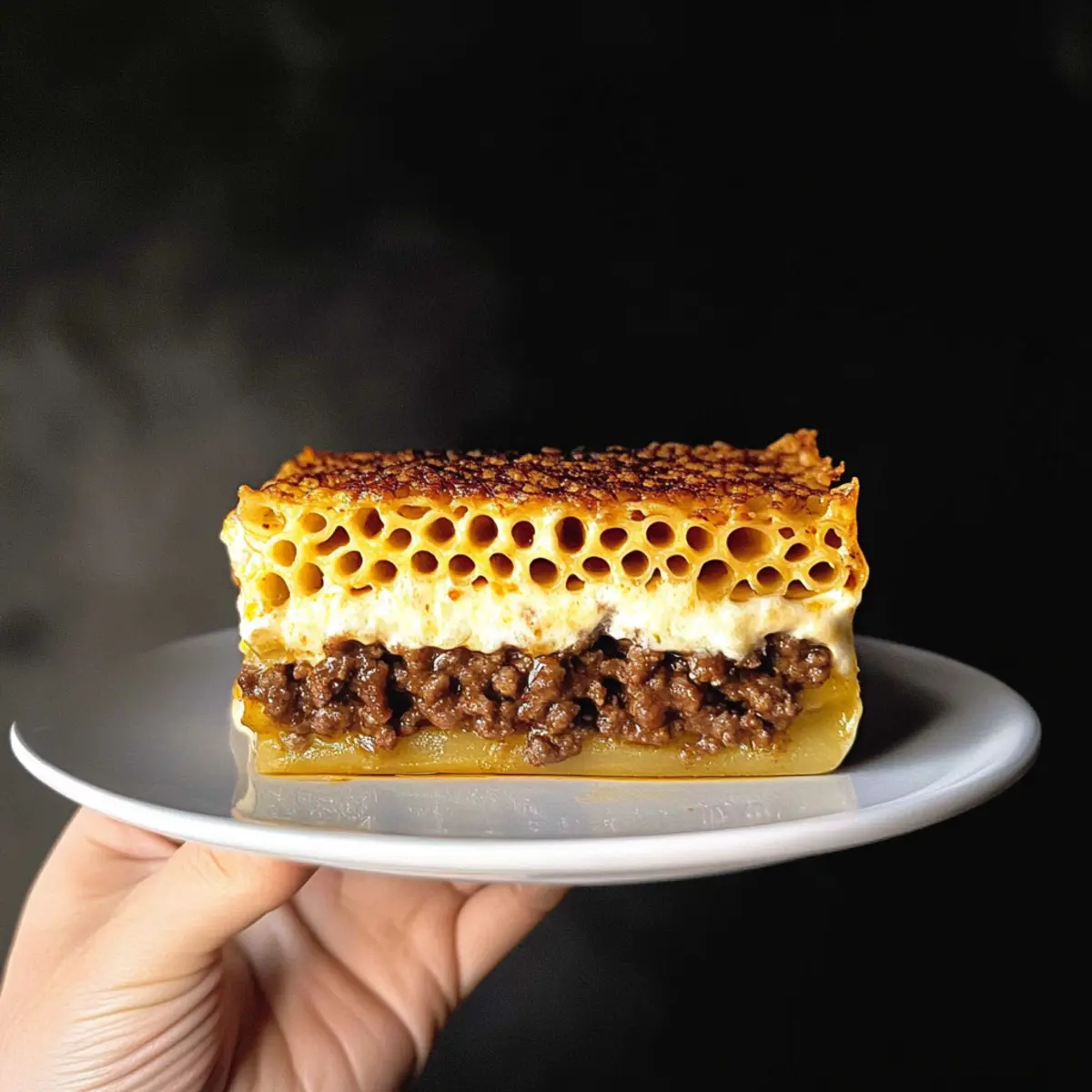 Jump to Recipe Print RecipeAs I stood in my kitchen, the aroma of simmering spices and sautéing beef wrapped around me like a warm hug. There’s something about making Greek Pastitsio—this layered baked pasta dish that showcases the heart of Greek cuisine—that instantly transports me to sun-drenched shores and bustling family feasts. This hearty meal features tender pasta, a savory ground beef filling, and a velvety béchamel sauce that creates a comforting dish perfect for chilly evenings or joyful gatherings. When it comes to comfort food, Pastitsio stands out with its rich flavors and satisfying textures, making it a sure crowd-pleaser. Plus, it’s a fantastic make-ahead option for busy days! Are you ready to dive into this culinary journey? Why is Greek Pastitsio a Must-Try? Comforting Layers: Each bite of Greek Pastitsio envelops you in layers of tender pasta, savory ground beef, and creamy béchamel. It’s a dreamy combination that invokes cozy family days. Unique Flavors: The aromatic blend of spices—like cinnamon and cloves—adds a distinct Greek twist, elevating this dish beyond your average baked pasta. Time-Saving Delight: Perfect for meal prep, you can assemble this dish ahead of time and simply pop it in the oven when you’re ready to eat. Crowd-Pleasing Favorite: Whether for dinner parties or family gatherings, Pastitsio is a dish everyone will rave about. It’s a delicious way to impress your guests! Make It Your Own: Want a veggie-packed twist? Try using lentils or mushrooms instead of beef for a delightful vegetarian version. Explore versatility, just like in our Greek Chicken Burgers! Greek Pastitsio Ingredients For the Meat Sauce • Ground Beef – Main protein source; can mix with lamb or pork for added flavor. • Olive Oil – Used for sautéing; adds richness and flavor. Substitute with vegetable oil if needed. • Onion (large) – Provides sweetness and depth; grate or finely chop for a smoother texture. • Carrot (grated) – Adds natural sweetness and nutrients to the sauce. • Bay Leaves – Enhance the flavor; remember to discard them after cooking. • Cinnamon Stick – A key spice in Greek Pastitsio, infusing authentic warmth into the meat sauce. • Ground Cloves – Introduces warmth and complexity to the sauce’s flavor. • Dry Wine (1 cup) – Elevates the sauce’s profile; white, rosé, or red work beautifully. • Tomato Paste (¼ cup) – Deepens the meat sauce flavor; a crucial ingredient for a rich taste. • Pureed Tomatoes (2 cups) – The robust base for the sauce; can use canned or fresh tomatoes. For the Pasta Layer • Pastitsio Pasta (1 pound) – Traditional tubular pasta; bucatini or penne can work in a pinch for the Greeks! For the Béchamel Sauce • Grated Cheese (1½ cups) – A mixture of Kefalotiri and Parmigiano Reggiano for a creamy, flavorful finish. • All-Purpose Flour (1.2 cups) – Acts as a thickening agent to achieve that dreamy béchamel consistency. • Nutmeg – Adds a touch of warmth; freshly grated nutmeg imparts fantastic flavor. • Whole Milk (6 cups) – The base of the béchamel sauce, making it creamy and indulgent. • Large Eggs (2) – Helps to set the béchamel; adds to the velvety texture. • Fine Salt & Black Pepper – Adjust to taste for seasoning your delicious Greek Pastitsio. This ingredient list ensures that your Greek Pastitsio is full of rich flavors and wonderful textures, transforming your kitchen into a warm, inviting space ready to create cherished memories! Step‑by‑Step Instructions for Greek Pastitsio Step 1: Brown the Meat In a large skillet, heat a drizzle of olive oil over medium-high heat. Add 1 pound of ground beef and sauté for about 8-10 minutes until it’s beautifully browned. Stir occasionally to prevent sticking, ensuring the meat cooks evenly and the juices evaporate, creating a rich flavor base for your Greek Pastitsio. Step 2: Sauté Vegetables and Spices Once the meat is browned, add a finely chopped large onion and 1 grated carrot to the skillet. Cook for an additional 5-7 minutes until the vegetables soften and become fragrant. Stir in 2 bay leaves, a cinnamon stick, a pinch of ground cloves, salt, and pepper, which will infuse the meat mixture with aromatic warmth. Step 3: Add Wine and Tomatoes Pour in 1 cup of dry wine, allowing it to bubble for 2-3 minutes, ensuring the alcohol cooks off. Then, stir in 2 cups of pureed tomatoes and ¼ cup of tomato paste. Lower the heat and let the mixture simmer for about 20-25 minutes until thickened and rich, stirring occasionally to prevent sticking, resulting in a hearty meat sauce. Step 4: Cook the Pasta While the sauce is simmering, bring a large pot of salted water to a boil. Add 1 pound of Pastitsio pasta and cook for about 7-8 minutes, just until al dente (3 minutes less than package instructions). Drain and rinse under cold water to stop the cooking process, ensuring the pasta remains firm during baking. Step 5: Assemble the Layers Preheat your oven to 355°F (180°C) and grease a large casserole dish. In a mixing bowl, combine ⅔ of the cooked pasta with a generous handful of grated cheese. Layer this mixture in the bottom of the casserole dish, followed by the savory meat sauce, and top with the remaining pasta. This builds a hearty structure for your Greek Pastitsio. Step 6: Prepare the Béchamel Sauce In a medium saucepan, heat a bit of olive oil and whisk in 1.2 cups of all-purpose flour over medium heat for about 2-3 minutes until golden and nutty in aroma. Gradually whisk in 6 cups of whole milk, stirring continuously until the mixture thickens and bubbles gently. This will form the creamy béchamel sauce for your dish. Step 7: Season and Enrich the Béchamel Allow the béchamel to cool for a few minutes, then stir in freshly grated nutmeg, salt, half a cup of grated cheese, and 2 beaten eggs. Mix until smooth, creating a velvety, rich sauce that will crown your Greek Pastitsio with an irresisti