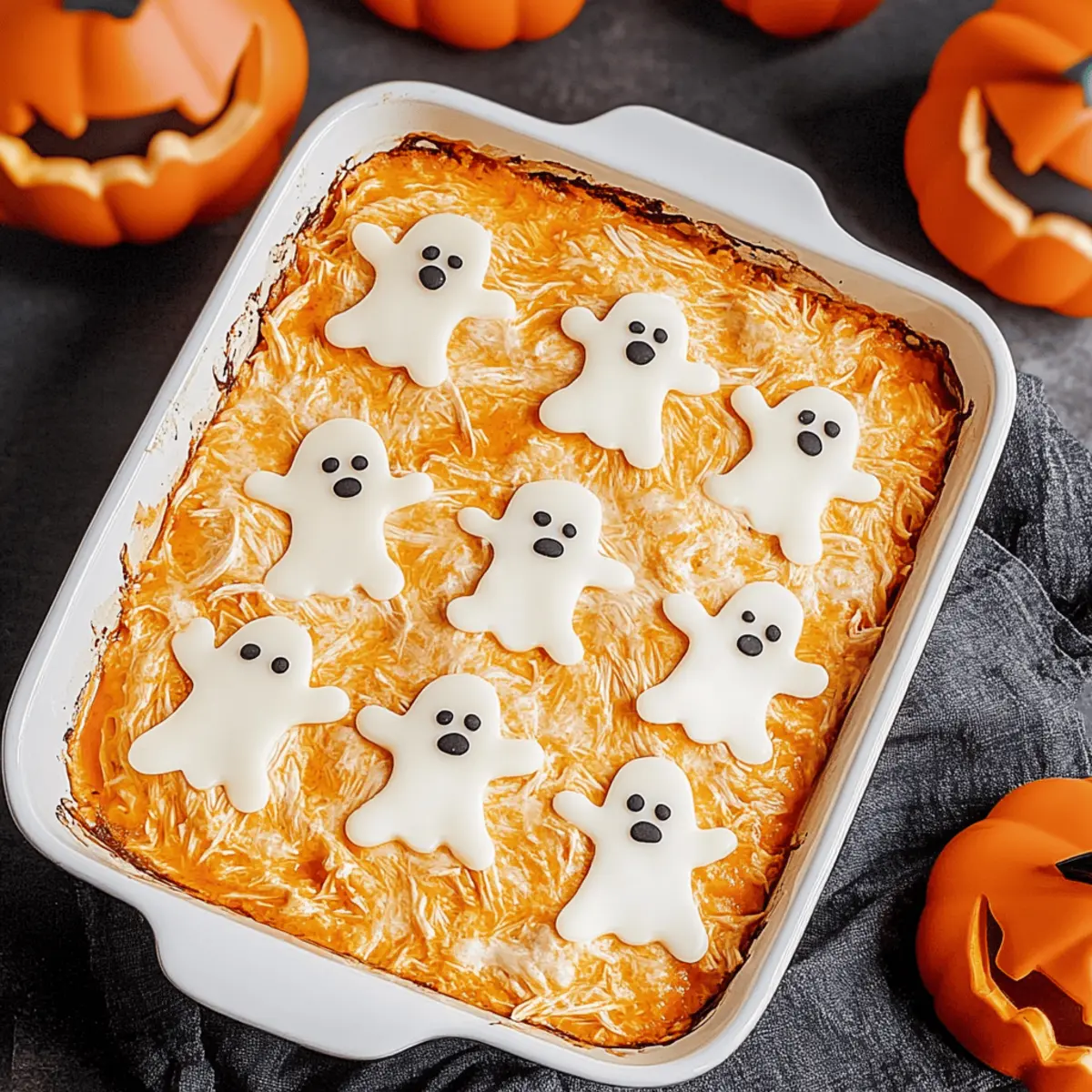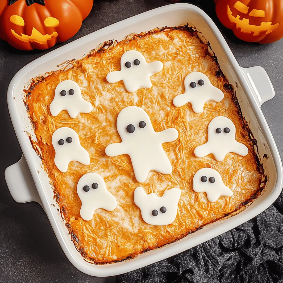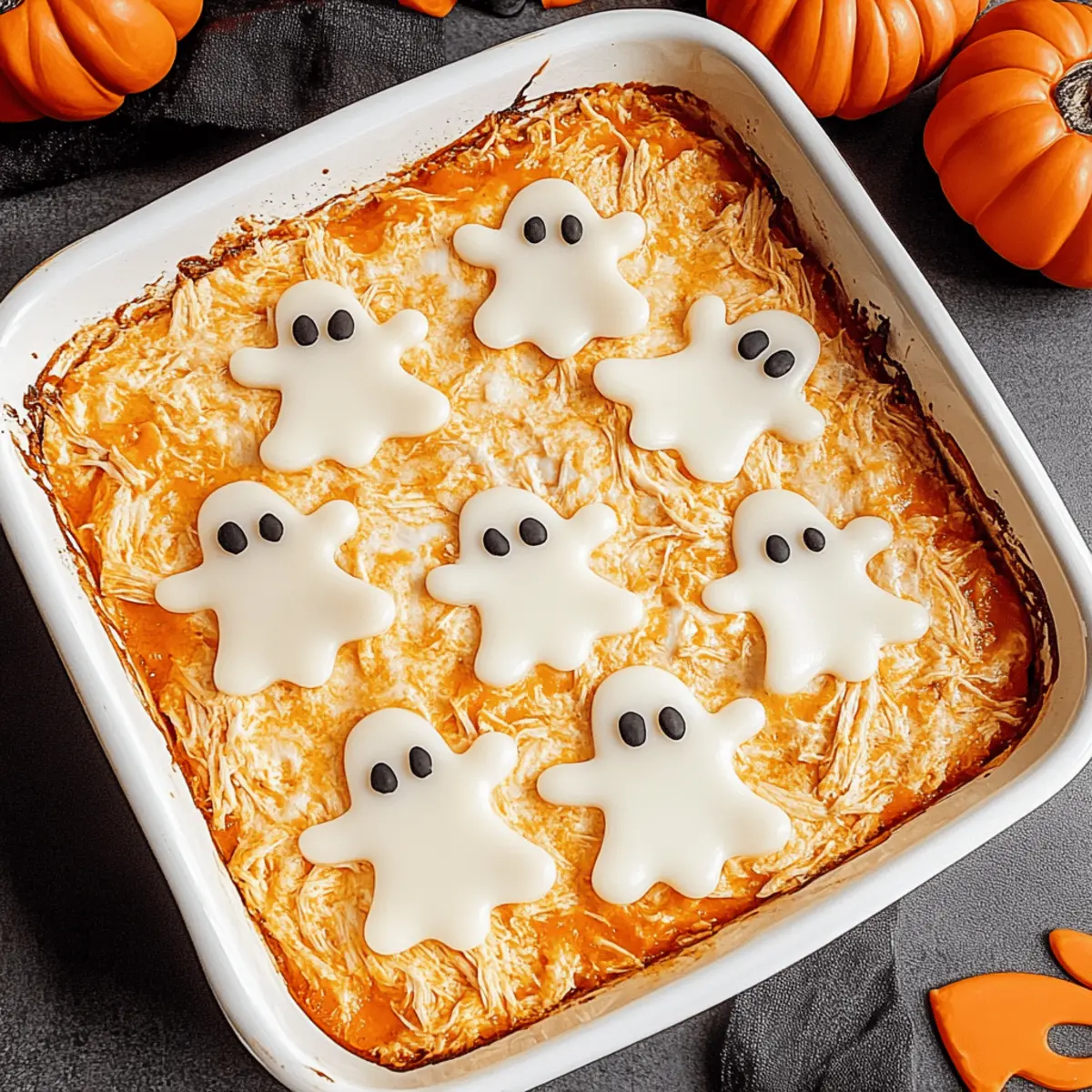 Jump to Recipe Print RecipeAs the leaves turn and the air grows crisp, there’s a certain magic that fills the kitchen with excitement—especially when preparing for Halloween. I can already envision the bubbling Halloween Buffalo Chicken Dip, or as I like to call it, Boo-ffalo Dip, stealing the spotlight at any gathering. This playful and creamy dip, adorned with delightful ghost-shaped cheese, is an instant crowd-pleaser that’s easy to whip up for those spontaneous get-togethers. Not only is it a kid-friendly treat, but it comes together in a snap, making it a stress-free addition to your party spread. So, why settle for store-bought when you can create a festive masterpiece that’s sure to be a hit? Are you ready to elevate your Halloween snack game? Why is this dip a Halloween must-have? Irresistible Flavor: The combination of spicy buffalo sauce and creamy cheese creates a taste explosion that’s simply unforgettable. Kid-Friendly Delight: Fun ghost-shaped toppings make it visually appealing, ensuring even the pickiest eaters will dive in. Quick & Easy: You can whip this up in no time, leaving you with more moments to enjoy your Halloween festivities. Perfect for Sharing: Serve it at parties, alongside crunchy tortilla chips, or a crusty baguette—everyone will want in on the fun! Make Ahead Option: Assemble it in advance and bake right before guests arrive, just like my delicious Honey BBQ Chicken or Buffalo Chicken Stuffed recipes—easy peasy! So prepare to impress your friends and family with this spooky treat that’s sure to become a Halloween tradition! Halloween Buffalo Chicken Dip Ingredients For the Dip Shredded Chicken – Provides the main protein base; rotisserie chicken is a fantastic shortcut! Buffalo Sauce – Adds a spicy kick; feel free to choose mild for the kids or hot for the brave! Cream Cheese – Forms the creamy base; make sure it’s softened to blend beautifully. Shredded Mozzarella Cheese – Offers gooeyness when baked; substitute with cheddar for a sharper zing. Ranch Dressing – Drizzled on top for an extra flavor boost; blue cheese dressing is a great alternative. For the Ghost Topping Sliced White Cheese – Perfect for creating adorable ghost shapes; any soft white cheese works well! Get ready to create your Halloween Buffalo Chicken Dip—this creamy delight will be the star of your spooky gathering! Step‑by‑Step Instructions for Halloween Buffalo Chicken Dip Step 1: Mix the Chicken and Sauce In a large mixing bowl, combine the shredded chicken with buffalo sauce, making sure each piece is nicely coated with the flavorful mixture. This should take about 2-3 minutes. You want to see a vibrant orange hue throughout the chicken, indicating it’s well-dressed for a spooky feast. Step 2: Prepare the Cream Cheese Base Next, soften the cream cheese in the microwave for 15-20 seconds until it’s pliable but not melted. Spread the softened cream cheese evenly in the bottom of a baking dish, forming a smooth layer. This creamy base will act as the foundation of your Halloween Buffalo Chicken Dip, providing a rich and luscious texture. Step 3: Layer the Buffalo Chicken Spoon the buffalo chicken mixture over the cream cheese layer, spreading it out evenly with the back of the spoon. Be sure to cover the cream cheese entirely so that every scoop delivers that delicious spicy kick. This layer should create a beautiful contrast of colors and textures, preparing for the delightful gooeyness that follows. Step 4: Add Cheese and Dressing Sprinkle a generous amount of shredded mozzarella cheese over top of the buffalo chicken layer, ensuring it’s covered for optimal melting. Then, drizzle ranch dressing in a zigzag pattern, adding both flavor and a decorative touch. This step will elevate your Halloween Buffalo Chicken Dip with extra creaminess and a festive appeal! Step 5: Create Ghost Shapes Using a ghost cookie cutter or a sharp knife, cut fun ghost shapes out of the sliced white cheese. Arrange these adorable cheese ghosts on top of the dip, strategically placing them where they can shine. This whimsical touch makes your Halloween Buffalo Chicken Dip not only tasty but also visually charming for your guests. Step 6: Bake to Perfection Preheat your oven to 350°F (175°C) and bake the prepared dip for 15-20 minutes. Keep an eye on it until the cheese is bubbly and lightly golden on top. You’ll know it’s ready when the edges start to slightly brown and a tantalizing aroma fills the kitchen—perfect for a Halloween gathering! Step 7: Add Finishing Touches Once baked, consider using decorating gel or a couple of olive bits to add eyes to your ghost shapes, enhancing their spooky appearance. Let the Halloween Buffalo Chicken Dip cool slightly before serving warm with your favorite sturdy tortilla chips, baguette slices, or veggie sticks, and enjoy the festive atmosphere! Make Ahead Options These Halloween Buffalo Chicken Dips are perfect for meal prep, ensuring you spend less time in the kitchen and more time enjoying the festivities! You can assemble the entire dip up to 24 hours in advance by preparing all the layers—just combine the shredded chicken with buffalo sauce, spread the cream cheese, and layer in the rest before adding the ghost-shaped cheese on top. Simply cover and refrigerate; this helps maintain freshness while preventing the dip from becoming soggy. When ready to serve, just pop it in a preheated oven at 350°F (175°C) for 15-20 minutes until bubbly, and you’ll have a delightful, crowd-pleasing appetizer that’s just as delicious as if made on the day! How to Store and Freeze Halloween Buffalo Chicken Dip Fridge: Store any leftover Halloween Buffalo Chicken Dip in an airtight container in the fridge for up to 3 days. Reheat in the oven for the best flavor and texture. Freezer: If you want to prepare ahead, freeze the dip before baking. Wrap it tightly in plastic wrap and aluminum foil for up to 2 months. Thaw in the fridge 