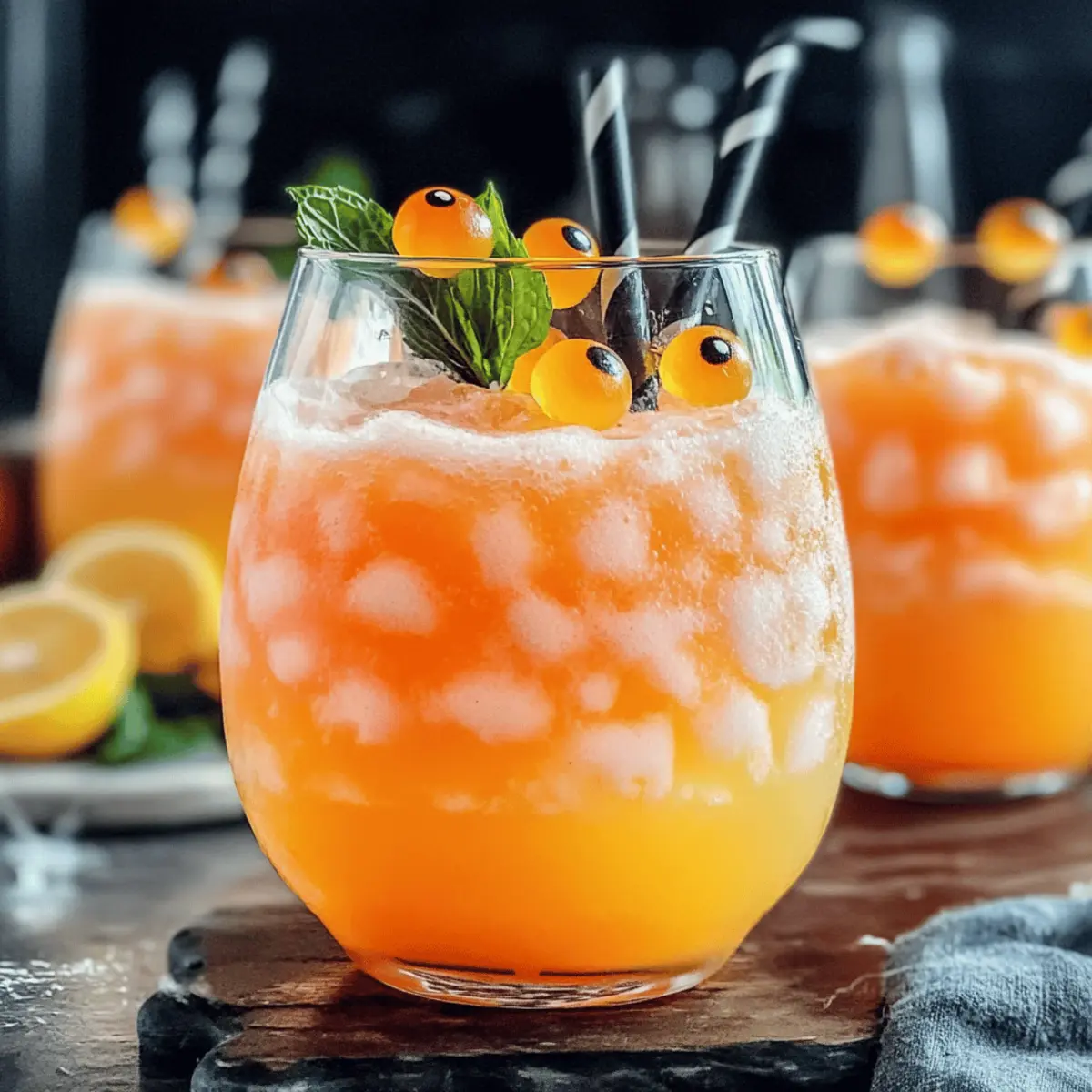 These Hocus Pocus Punch preparations are fantastic for busy home cooks looking to save time on party day! You can prepare the punch base—mango nectar, orange soda, and bruised mint—up to 24 hours in advance. Simply mix these ingredients in a large pitcher and refrigerate it (without the soda or ice) to ensure the freshness remains perfectly intact. Just before serving, add the lemon-lime soda and ice cubes to maintain the delightful fizz. This not only keeps the punch tasting fresh but also allows the flavors to meld beautifully, ensuring a magical experience for your little guests. With this make-ahead option, you can easily whip up an enchanting beverage while focusing on the fun of the celebration!
