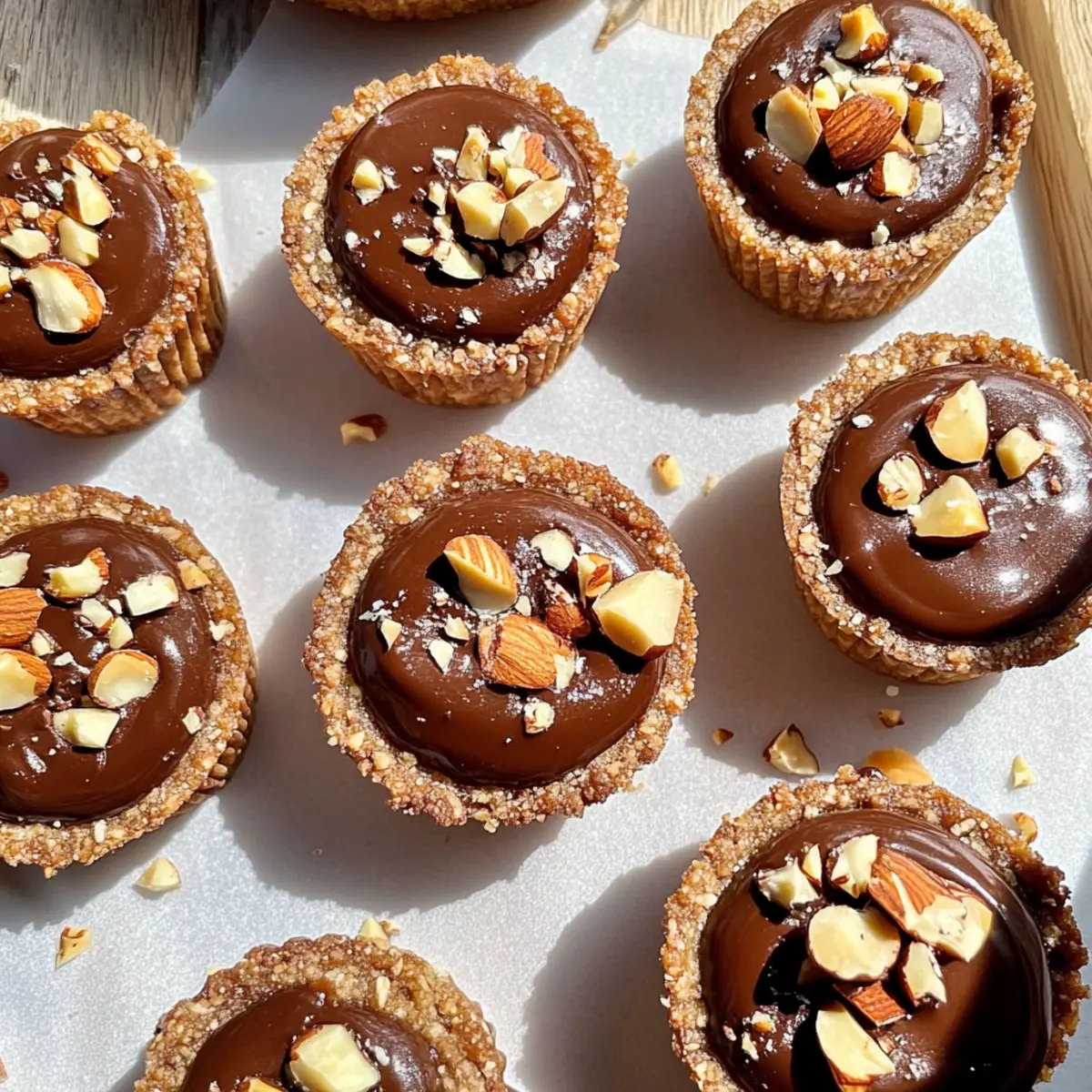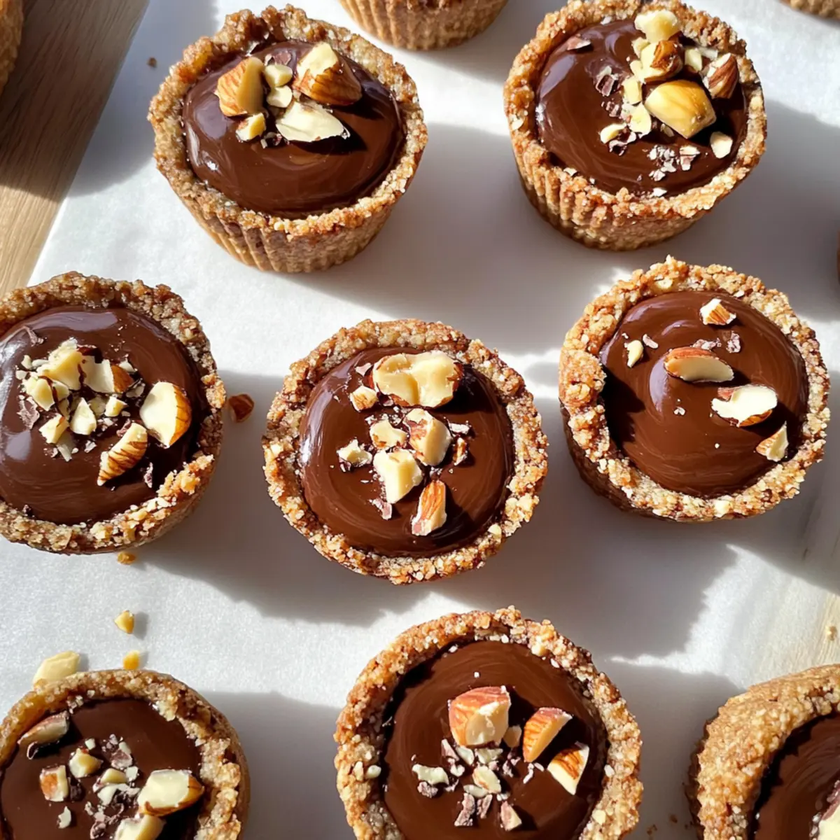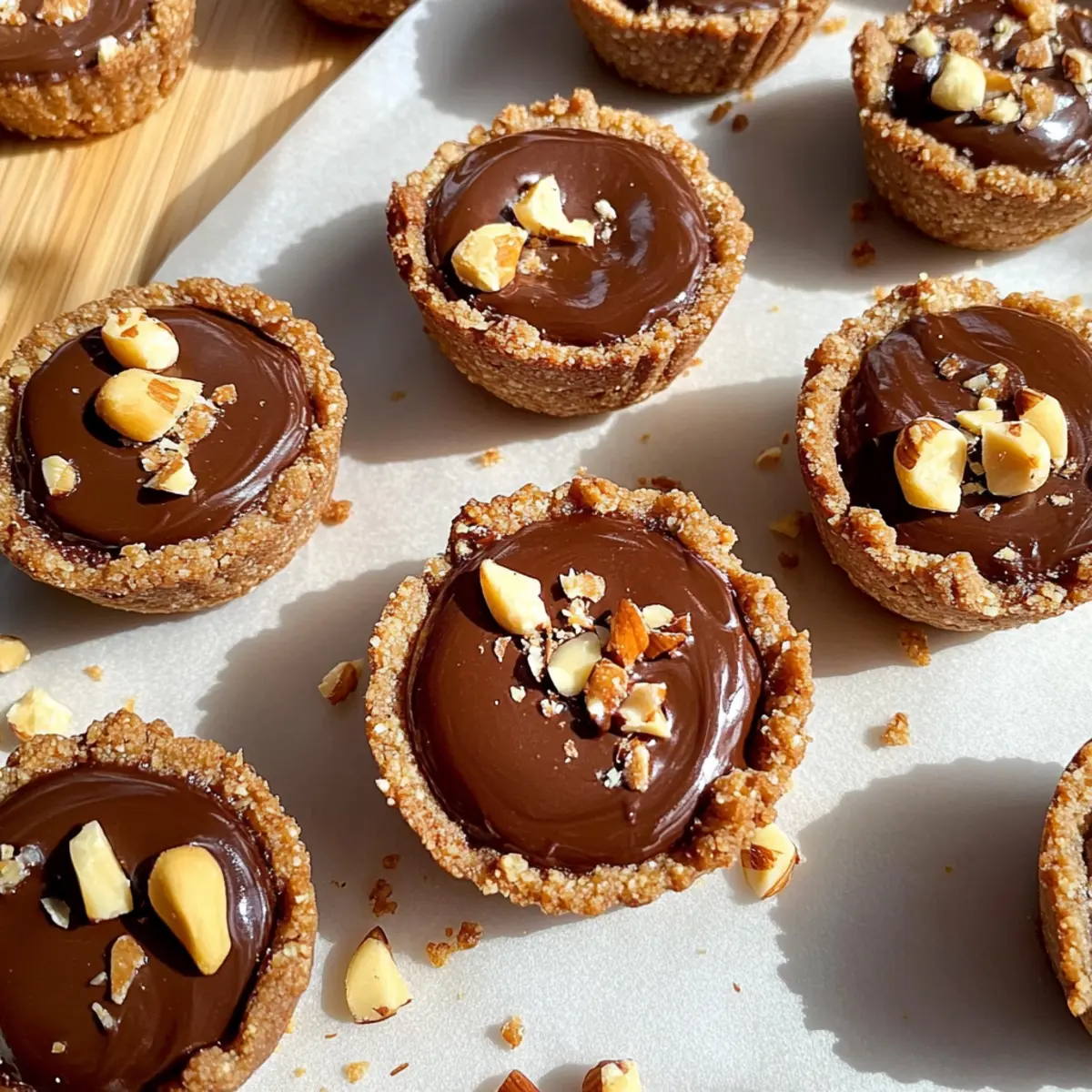 Jump to Recipe Print RecipeA delightful kitchen adventure awaits with these No-Bake Hazelnut Cookie Cups! If you’ve ever dreamt of a dessert that combines convenience with satisfying flavor, you’re in for a treat. This recipe features a chewy date and hazelnut crust topped with a luxurious chocolate ganache, all while keeping it paleo and vegan-friendly. One of the best perks? There’s no need to heat up your kitchen, making it perfect for those warm summer days or spontaneous dessert cravings. Plus, these bite-sized wonders are not just easy to whip up; they’re also a crowd-pleaser at any gathering or a simple indulgence for a quiet evening at home. Are you ready to dive into this guilt-free, deliciously decadent treat? Let’s get started! Why Are Hazelnut Cookie Cups Irresistible? Easily Adaptable: These no-bake cookie cups allow flexibility—swap hazelnuts for almonds or even add spices for a personal touch. Guilt-Free Indulgence: Enjoy a rich dessert that fits within paleo and vegan diets without sacrificing flavor. Quick and Simple: No baking required means you can whip these up in just a few minutes! Crowd Favorite: Perfect for summer gatherings, these treats will impress family and friends alike. If you love easy yet satisfying desserts, you might also enjoy our Chocolate Chip Cookie Bars or Cosmic Brownie Cookies for a delightful variety! Hazelnut Cookie Cups Ingredients For the Crust • Hazelnuts – Provides a rich, nutty flavor and structure for the crust. Substitute with almonds or walnuts if needed. • Medjool Dates – Adds natural sweetness and binds the crust together. Make sure they are soft; if not, soak them in warm water. • Shredded Coconut – Contributes texture and a hint of coconut flavor. Use unsweetened coconut for a healthier option. • Vanilla Extract – Enhances the overall flavor. Use pure vanilla extract for best results. • Salt – Balances sweetness and amplifies flavors. Use a pinch of sea salt. For the Ganache Filling • Dark Chocolate – Forms the rich filling; can be substituted with a chocolate of your choice. Use dairy-free chocolate for a vegan option. • Coconut Cream – Creates a creamy ganache consistency. Use just the cream from a chilled can of full-fat coconut milk; refrigerate overnight if necessary. These ingredients come together to create decadent Hazelnut Cookie Cups that everyone will adore—not just those following paleo or vegan diets! Step‑by‑Step Instructions for Hazelnut Cookie Cups Step 1: Prepare the Crust In a food processor, combine 1 cup of hazelnuts, 1 cup of shredded coconut, 1 cup of Medjool dates, 1 teaspoon of vanilla extract, and a pinch of salt. Pulse the mixture until it resembles a coarse, sticky dough, stopping occasionally to scrape down the sides. This should take about 1-2 minutes. Step 2: Form the Cups Take about 1 tablespoon of the crust mixture and press it firmly into each slot of a silicone mini muffin pan, which will yield 12 cups. Use your fingers to shape the crust into cup forms, ensuring the sides are even and high enough to hold the filling. This step should take about 5 minutes. Step 3: Make the Filling In a small saucepan over low heat, combine 1 cup of dark chocolate and 1/2 cup of coconut cream. Stir frequently until the chocolate is melted and the mixture is smooth and creamy, which will take about 5-7 minutes. Alternatively, you can melt it in the microwave in 20-second increments, stirring in between to ensure even melting. Step 4: Fill the Cups Once the chocolate ganache is ready, carefully pour it into each cookie cup until they are filled to the rim. Use a spoon to help guide the chocolate if needed. The contrasting colors and smooth texture should be visually appealing. This pouring process will take about 3 minutes. Step 5: Decorate (Optional) For an added touch of elegance, sprinkle crushed hazelnuts on top of each filled cookie cup. This decoration not only enhances the flavor but also provides a delightful crunch. Take a minute or two to evenly distribute the crushed hazelnuts across all cups. Step 6: Chill Place the filled muffin pan in the refrigerator for at least 1 hour, or until the ganache has fully set. If you’re in a hurry, you can use the freezer to speed up this process, which should take about 20-30 minutes. The cups should become firm to the touch when set. Step 7: Serve Once the Hazelnut Cookie Cups are set, gently pop them out of the silicone pan. You can serve them chilled as a refreshing dessert, perfect for warm days. Enjoy the delightful blend of textures and flavors these treats offer! Hazelnut Cookie Cups Variations Feel free to explore these delightful twists on the classic Hazelnut Cookie Cups that will elevate your dessert game! Nut-Free: Swap hazelnuts for sunflower seeds or pumpkin seeds for a delightful crunch without the nuts. Chocolate Variations: Use milk chocolate or a dark chocolate with added spices, like chili or cinnamon, to add warmth and depth to the flavor. Coconut Alternative: Replace shredded coconut with almond flour for a different texture and taste that still resonates with sweetness. Fruit Fusion: Mix in dried fruits like cranberries or apricots for a natural sweetness and a chewy contrast to the cookie cups. Double Chocolate: Swirl in some cocoa powder to the crust mixture for an extra chocolatey flavor that chocolate lovers will adore. Flavor Boosts: Add a teaspoon of espresso powder to enhance the chocolate flavor, creating an indulgent, rich experience. Crunchy Topping: Consider topping with cacao nibs instead of crushed hazelnuts for a delightful texture and a hint of bitterness. Layer it Up: For a decadent version, add a layer of creamy almond or peanut butter under the chocolate ganache for an extra level of deliciousness. These variations can give you plenty of options to suit any mood or occasion! If you’re searching for more dessert inspirations, check out our scrumptious Pasta Salad Cups or the irresistibl