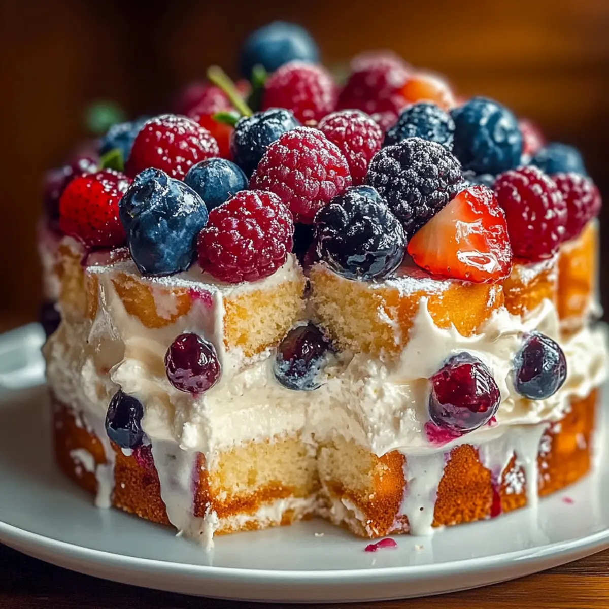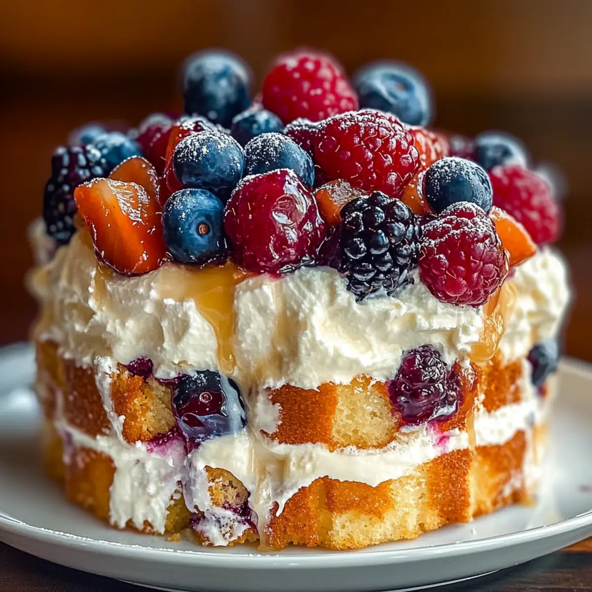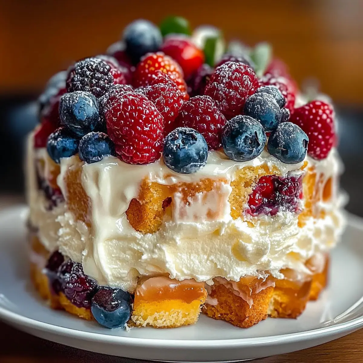 Jump to Recipe Print RecipeThe sun warmed my skin as I strolled through a vibrant farmer’s market, the air filling with the sweet aroma of fresh berries. I couldn’t resist picking up a basket of plump blueberries and strawberries, imagining all the delectable possibilities. One dessert danced to the forefront of my mind: the Heaven on Earth Cake. This dreamy no-bake delight combines light angel food cake, velvety vanilla pudding, and juicy mixed berries for a truly refreshing treat. Not only is it a breeze to whip up, but it also makes a stunning centerpiece for any gathering, impressing friends and family alike. With its luscious layers and fruity bursts, this cake is sure to become your go-to for celebrations or cozy evenings at home. Curious to create this magical dessert and taste the bliss for yourself? Let’s dive into the recipe! Why is this cake a must-try? Simplicity: This Heaven on Earth Cake is a breeze to prepare, requiring no baking skills, making it perfect for novice cooks and busy chefs alike. Fresh Ingredients: With a bounty of fresh mixed berries, this dessert not only looks stunning but also bursts with vibrant flavors, reminiscent of summer. Versatile: Feel free to swap in your favorite fruits or pudding flavors, allowing for endless variations that can suit any palate or occasion. Crowd-Pleaser: Whether it’s a family dinner or a party with friends, this cake is sure to impress and tantalize taste buds, just like a classic Oreo Cheesecake or a Blueberry Crumble Cheesecake. Make-Ahead: Preparing it in advance allows the flavors to meld beautifully, giving you more time to relax and enjoy your event. Light and Refreshing: The fluffy texture and creamy layers provide a delightful contrast, making each bite feel indulgent yet refreshingly light. Heaven on Earth Cake Ingredients For the Cake Angel Food Cake – Provides a light and airy structure; substitute with sponge cake if you prefer a denser texture. For the Pudding Layer Instant Vanilla Pudding Mix – Creates a rich and creamy layer; opt for homemade pudding for a more personalized flavor. Cold Milk – Essential for preparing the pudding; almond milk is a great dairy-free alternative. Sour Cream – Adds tanginess and richness; Greek yogurt works as a healthier, lower-calorie substitute. For the Berries Mixed Berries – Offers sweetness and freshness; feel free to substitute with seasonal fruits like peaches or mangoes. For the Topping Whipped Topping – Delivers a light, fluffy finish; consider whipped Greek yogurt for a nutritious alternative. Caramel or Berry Sauce (Optional) – Adds extra sweetness and visual appeal for that show-stopping finish. This recipe for Heaven on Earth Cake is a no-bake treat that will have everyone swooning! Step‑by‑Step Instructions for Heaven on Earth Cake Step 1: Prepare the Pudding In a large mixing bowl, whisk together the instant vanilla pudding mix and 2 cups of cold milk until it thickens, about 2 minutes. Once thickened, gently fold in 1 cup of sour cream until smooth and creamy. This pudding layer will provide a rich base for your Heaven on Earth Cake, so ensure no lumps remain for the best texture. Step 2: Start Layering Grab a beautiful trifle dish or a clear glass bowl to showcase the layers. Begin by placing half of the angel food cake cubes at the bottom, creating an even layer. Then sprinkle half of the fresh mixed berries over the cake. Spoon half of the pudding mixture over the berries, spreading it gently. Repeat this process for the second layer to create a delightful view of all the colors and textures. Step 3: Add the Topping Once your layers are complete, take 2 cups of whipped topping and spread it evenly over the top layer of pudding. This fluffy topping acts as a delicious crown for your Heaven on Earth Cake. For an added touch, drizzle with your choice of caramel or berry sauce, which not only enhances the flavor but adds a beautiful sheen. Step 4: Chill and Set Cover the dish with plastic wrap and refrigerate your assembled cake for at least 2 hours, allowing the flavors to meld beautifully. This chilling time ensures that the Heaven on Earth Cake sets properly, creating a more enjoyable texture when served. If possible, letting it chill overnight will enhance the flavors even further. Step 5: Serve and Enjoy After chilling, remove the Heaven on Earth Cake from the refrigerator. Just before serving, add a few extra fresh berries on top for decoration. Use a spatula to carefully scoop out portions and serve in individual bowls. This stunning dessert is now ready to impress your friends and family with its luscious layers and refreshing flavors. What to Serve with Heaven on Earth Cake This delightful no-bake dessert pairs beautifully with a variety of dishes, making your meal an unforgettable celebration! Fresh Green Salad: A light garden salad with a zesty vinaigrette balances the cake’s sweetness, offering a refreshing contrast. Creamy Mashed Potatoes: Velvety mashed potatoes add a comforting heartiness to your meal, making for an appealing combination of textures. Grilled Chicken Skewers: Tender, marinated chicken skewers infused with herbs will pair wonderfully, inviting guests to savor both savory and sweet. Sparkling Lemonade: A chilled glass of bubbly lemonade invigorates the palate and complements the cake’s fruity flavors perfectly. Chocolate Dipped Strawberries: For an indulgent touch, these decadent bites echo the cake’s berry theme while adding an elegant flair. Minty Iced Tea: A refreshing mint iced tea creates a delightful sipping experience and enhances the overall brightness of the dessert. Each pairing adds its own unique charm, ensuring your Heaven on Earth Cake shines even brighter during your gathering! Make Ahead Options This Heaven on Earth Cake is perfect for meal prep, allowing you to enjoy a stunning dessert without the last-minute rush! You can assemble the cake up to 24 hours in advance, enhancing the flavors as