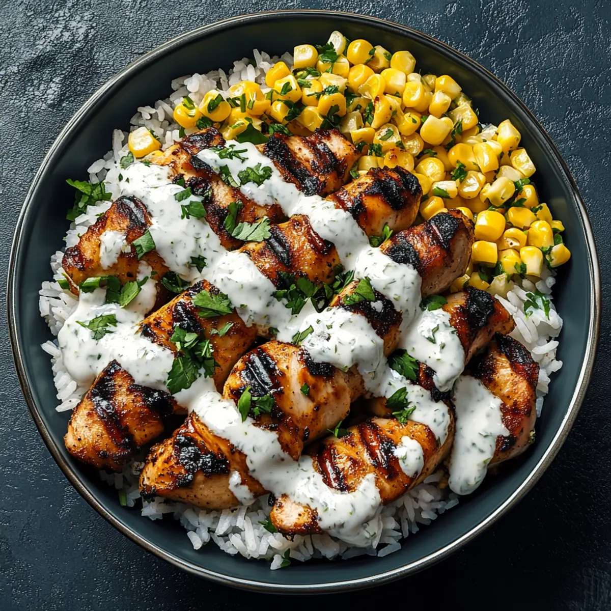 Jump to Recipe Print RecipeNothing beats the feeling of a busy day winding down to the smoky aroma of grilled chicken filling the kitchen. With my High Protein Street Corn Chicken Bowls, you can enjoy a deliciously satisfying meal that’s equally energizing and easy to prepare. This recipe artfully combines juicy chicken thighs, sweet charred corn, and fluffy rice—all drizzled with a creamy lime sauce that elevates each bite. Not only is it a budget-friendly choice tailored for your unique taste, but it also makes for a perfect make-ahead meal that can fit seamlessly into your busy life. Ready to bring some vibrant flavors into your weeknight rotations? Let’s dive in! Why are High Protein Bowls so popular? Irresistibly Flavorful: The blend of smoky grilled chicken, sweet charred corn, and zesty lime creates a party for your taste buds. Quick Prep Time: Ready in under 30 minutes! Perfect for busy evenings or unexpected guests. Customizable Options: Easily adapt to dietary preferences—try tofu instead of chicken, quinoa in place of rice, or skip the cheese for a dairy-free version! Make-Ahead Marvel: Prep the components in advance for stress-free mealtimes. Just assemble and enjoy! Budget-Friendly: Utilizes simple, affordable ingredients without sacrificing taste, making it a win for the wallet. Experience the vibrant flavors of this dish today and enjoy a delightful meal without the hassle! High Protein Street Corn Chicken Bowls Ingredients • Get ready to savor a deliciously hearty meal! For the Chicken • Chicken Thighs – The primary protein source that remains juicy; chicken breast or tofu can be used as alternatives for a lighter or vegetarian option. For the Rice Base • White Rice – A fluffy, comforting base; consider switching to brown rice or quinoa for added nutrients. For the Sweetness • Corn Kernels – Adds a delightful sweetness and texture; feel free to use fresh, canned, or frozen corn, but roasting enhances its flavor even more! For the Creamy Sauce • Greek Yogurt – The secret to a smooth and creamy finish; sour cream or dairy-free yogurt can also work if you’re looking for a lighter alternative. For the Topping • Cotija Cheese – A salty, crumbly addition that elevates flavor; feta or grated parmesan are great substitutes if Cotija isn’t available. For the Smoky Flavor • Smoked Paprika – Delivers a rich depth; regular paprika is a quick fix, though it lacks the signature smoky punch. For Brightness • Lime – Ensures each bite is bursting with tang; always opt for fresh lime juice for the best flavor! For Heat • Chili Powder – Adjust according to your heat preference; you can always skip it if you prefer milder flavors. For Freshness • Fresh Herbs – Optional garnish that adds a refreshing touch; cilantro pairs beautifully with the other ingredients. Now you’re all set to whip up these High Protein Street Corn Chicken Bowls and enjoy an energizing meal that’s as delightful to taste as it is to prepare! Step‑by‑Step Instructions for High Protein Street Corn Chicken Bowls Step 1: Marinate the Chicken In a bowl, combine the chicken thighs with smoked paprika, chili powder, and a pinch of salt. Mix well to coat the chicken evenly, then let it marinate for 15 minutes at room temperature, allowing the spices to infuse and create a flavorful base for your High Protein Street Corn Chicken Bowls. Step 2: Cook the Rice While the chicken is marinating, prepare the white rice according to package instructions. Typically, this involves rinsing the rice, bringing water to a boil, and then simmering covered for about 15-20 minutes until fluffy. This rice will act as the comforting base of your bowls, ready to soak in all the delicious flavors. Step 3: Grill the Chicken Heat a grill pan or skillet over medium-high heat. Once hot, add the marinated chicken thighs and cook for about 6-7 minutes on each side or until the juices run clear and the chicken is nicely charred. The sizzling sound and a golden-brown crust will signal that your chicken is perfectly cooked and ready to shine in your High Protein Street Corn Chicken Bowls. Step 4: Char the Corn Using the same grill pan, add the corn kernels and cook for 5-7 minutes, stirring occasionally until the corn is slightly blackened and has a smoky flavor. This step enhances the sweetness of the corn, ensuring it stands out in your meal. The vibrant color and aroma will make your kitchen come alive! Step 5: Prepare the Creamy Sauce In a small bowl, mix together Greek yogurt with fresh lime juice and a pinch of salt until smooth and creamy. The tangy brightness of the lime will elevate your sauce, perfectly complementing the grilled chicken and charred corn in your High Protein Street Corn Chicken Bowls, creating a refreshing finish. Step 6: Assemble the Bowls To assemble, scoop a generous amount of the fluffy rice into each bowl. Top with sliced grilled chicken, generous portions of charred corn, and drizzle with the creamy lime sauce. Sprinkle with cotija cheese and fresh herbs for added flavor and color, making your High Protein Street Corn Chicken Bowls a vibrant and satisfying meal. High Protein Street Corn Chicken Bowls Variations Feel free to get creative with these bowls and make them your own—your culinary adventure awaits! Vegetarian Delight: Swap chicken thighs for black beans or roasted tofu to create a fulfilling meatless meal. The charred corn will still shine through, adding its sweetness to every bite. Grain Alternatives: Choose farro, quinoa, or even cauliflower rice instead of white rice for an exciting new base. Each option provides unique textures and flavors that can elevate your dish. Spicy Twist: Craving a little heat? Add chopped jalapeños or a splash of hot sauce to the creamy sauce for an extra kick. This small addition can transform the whole flavor profile! Creamy & Light: If you’re looking for a lighter touch, substitute Greek yogurt with a dairy-free yogurt opti
