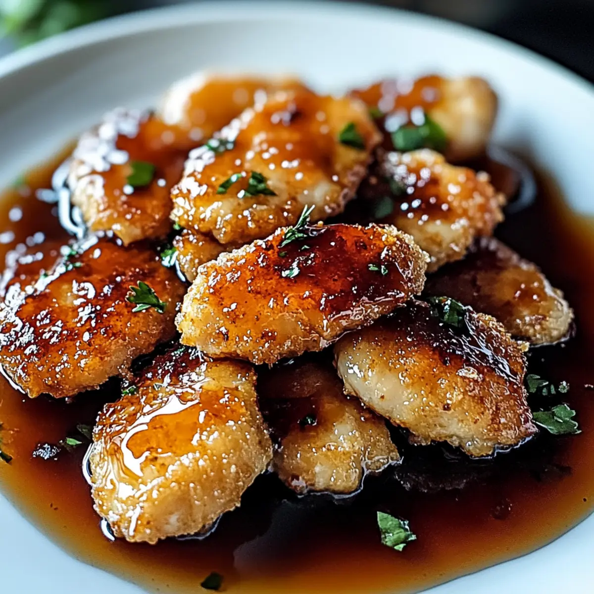 Jump to Recipe Print RecipeThe first bite is like a mini explosion of flavor—juicy chicken enveloped in a crunchy panko crust, crowned with a drizzle of sweet, spicy honey glaze. These Hot Honey Chicken Cutlets are the perfect remedy for those tired of average weeknight dinners. Quick and beginner-friendly, this recipe transforms ordinary chicken into a delightful culinary experience. The beautiful contrast between the crispy exterior and succulent meat leaves you eagerly reaching for more, while the smoky paprika adds depth without overwhelming the palate. Whether served alongside a fresh salad or crispy fries, these cutlets are sure to impress family and friends alike. Are you ready to tantalize your taste buds with this delicious, stress-free meal? Why are Hot Honey Chicken Cutlets a must-try? Flavorful Explosion: The combination of sweet honey and spicy hot sauce creates a delightful balance that will keep your taste buds buzzing. Beginner-Friendly: Perfect for novice cooks, this recipe only requires simple ingredients and straightforward steps, making it ideal for a quick weeknight meal. Crispy Perfection: The panko crust ensures each bite is a satisfying crunch, wrapping tender chicken in a crispy embrace. Crowd-Pleasing Dish: Serve these cutlets with a side of crispy coleslaw or fries for a complete meal that everyone will love. Time-Saving: In just 30 minutes, you can whip up this delicious dish, ideal for those busy evenings when you crave something special. Versatile Recipe: Easily adjustable to accommodate your taste; swap out the hot sauce or try different sides to enhance your culinary experience. Honey Chicken Cutlets Ingredients • Get ready to create something delicious! For the Chicken Cutlets Panko Breadcrumbs – Provides a light and crunchy coating for the chicken; you can substitute regular breadcrumbs if needed, though it will change the texture. Chicken Cutlets – The star of the dish, ensuring juicy bites; boneless, skinless chicken thighs can also be used for extra moisture. All-Purpose Flour – This is the base for your coating; if you’re gluten-free, feel free to swap it with a gluten-free flour. Eggs – Binds the coatings together; flax eggs work well for a vegan alternative. Milk – Keeps the egg mixture creamy; non-dairy milk can be substituted without compromising flavor. Smoked Paprika – Adds a lovely smoky flavor to the crust; if unavailable, regular paprika can be used but with less depth. Garlic Powder – Introduces savory complexity; fresh minced garlic makes a great alternative if you prefer fresh ingredients. Salt and Pepper – Essential for enhancing flavors; season according to your taste preference. For the Hot Honey Glaze Honey – The base for your sweet and sticky glaze; feel free to use any liquid sweetener, yet expect flavor variations. Hot Sauce – Adds the necessary spicy kick; adjust the amount based on your heat preference for Honey Chicken Cutlets. Apple Cider Vinegar – Brightens up the glaze and balances the sweetness; lemon juice can work in a pinch too. For Frying Vegetable Oil – Essential for achieving that crispy finish; you can swap it with olive oil for a more robust flavor. Step‑by‑Step Instructions for Hot Honey Chicken Cutlets Step 1: Prepare the Coatings Begin by setting up three shallow bowls. In the first bowl, add all-purpose flour seasoned with salt and pepper. In the second bowl, whisk together eggs and milk until well combined. Lastly, in the third bowl, mix panko breadcrumbs with smoked paprika, garlic powder, salt, and pepper. This trio will create the perfect crispy coating for your hot honey chicken cutlets. Step 2: Dredge the Chicken Take each chicken cutlet and first dredge it in the flour mixture, ensuring it’s fully coated. Then, dip the floured cutlet into the egg mixture, allowing any excess to drip off. Finally, transfer it to the panko mixture, pressing down gently to ensure an even and generous coating on both sides. Repeat this process with all cutlets for a wonderfully crispy texture. Step 3: Heat the Oil In a large skillet, pour enough vegetable oil to coat the bottom, about 1/4 inch deep, and heat it over medium heat until shimmering, roughly 5-7 minutes. A good sign that the oil is ready is when it starts to ripple lightly. This temperature will create a beautifully crispy exterior for your hot honey chicken cutlets as they fry. Step 4: Fry the Cutlets Carefully add the coated chicken cutlets to the hot oil in a single layer, making sure not to overcrowd the pan. Fry them for about 3-4 minutes on each side, or until they turn golden brown and reach an internal temperature of 165°F (74°C). As they cook, the aroma will fill your kitchen, signaling that dinner is almost ready. Step 5: Drain and Keep Warm Once the hot honey chicken cutlets are golden and cooked through, transfer them to a plate lined with paper towels to drain excess oil. This step is crucial for maintaining that crispy texture. If you need to keep them warm while finishing the batches, place them on a wire rack over a baking sheet. Step 6: Make the Hot Honey Glaze In a small saucepan, combine honey, hot sauce, and a splash of apple cider vinegar over low heat. Stir gently until the mixture is well blended and warmed through, about 3-5 minutes. This sweet and spicy glaze will be the perfect complement for your crispy hot honey chicken cutlets. Step 7: Drizzle and Serve Once the glaze is ready, drizzle it generously over the fried chicken cutlets or serve it on the side. Garnish with fresh parsley for a pop of color and added flavor. It’s best to serve these delightful hot honey chicken cutlets immediately to preserve their irresistible crunch and enticing glaze. What to Serve with Hot Honey Chicken Cutlets Bring your dinner table to life with these delightful pairings that perfectly complement the sweet and spicy notes of your Hot Honey Chicken Cutlets. Crispy Coleslaw: The crunch of fresh cabbage and a tangy dre
