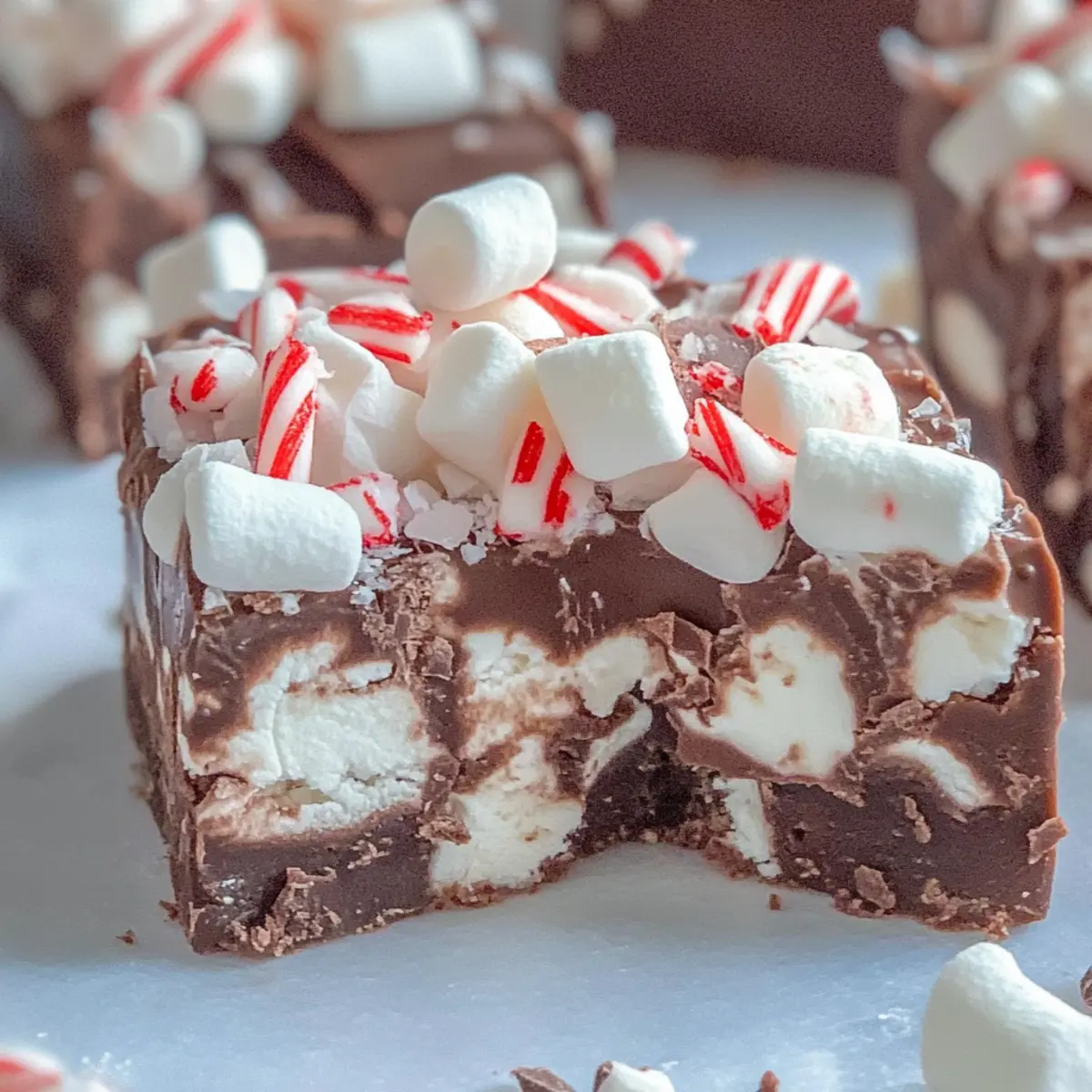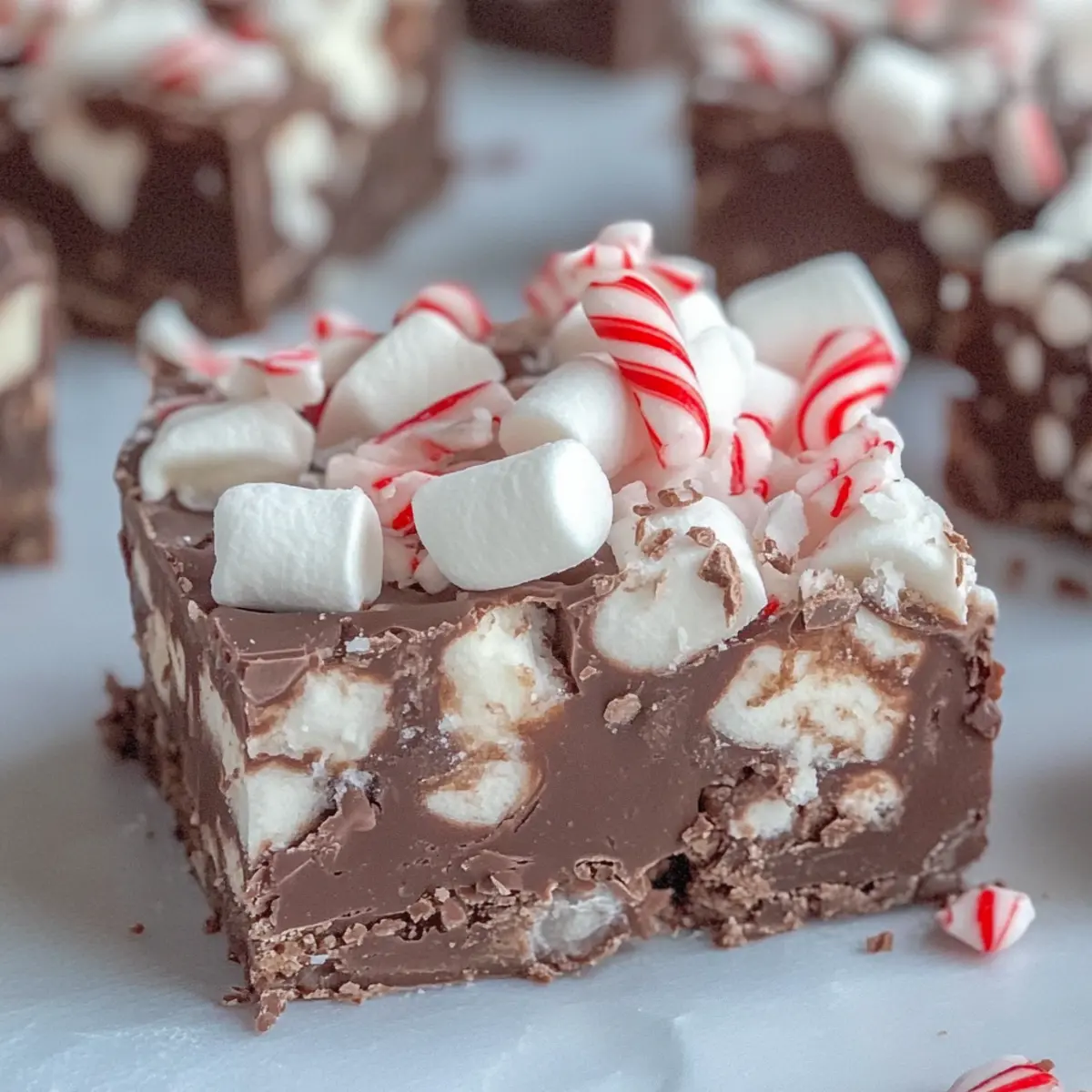 Jump to Recipe Print RecipeAs I unwrapped the last of my holiday treats, a spark of inspiration hit me—what could be more delightful than a no-bake Hot Chocolate Peppermint Fudge? This easy fudge recipe combines the cozy essence of rich chocolate with a refreshing hint of peppermint, creating a festive dessert that’s perfect for sharing at any winter gathering. Not only does it come together in just a few simple steps, but it’s also a real crowd-pleaser that’ll leave everyone craving more. With its creamy texture and the soft crunch of crushed candy canes, each bite evokes the warmth of cherished holiday memories. Are you ready to indulge in a sweet treat that’s both effortless and unforgettable? Let’s dive into this delicious recipe together! Why is This Fudge So Irresistible? Irresistible flavors come together in this delightful treat, merging rich chocolate with fresh peppermint. No bake means you can whip it up with ease, making it a perfect last-minute dessert. Crowd-pleaser status is guaranteed; everyone loves fudge! Whether shared at a holiday party or enjoyed during cozy nights in, it’s a sweet way to create memories. For a different flavor twist, consider trying Chocolate Chip Cookie bars that are just as easy to make. Don’t miss out on this festive classic! Hot Chocolate Peppermint Fudge Ingredients For the Fudge Semi-Sweet Chocolate Chips – Adds rich chocolate flavor and structure; substitute with dark chocolate for a deeper taste. Milk Chocolate Chips – Contributes sweetness and creaminess; use white chocolate for a different flavor profile. Butter – Provides richness and helps bind the fudge; can be replaced with coconut oil for a dairy-free option. Sweetened Condensed Milk – Ensures a creamy texture and sweetness; evaporated milk can be used, but additional sugar may be needed. Hot Chocolate Mix – Infuses the fudge with a familiar cocoa flavor; instant cocoa powder can substitute for a more intense chocolate taste. Vanilla Extract – Enhances overall flavor; peppermint extract can be swapped for a stronger peppermint essence. Marshmallows – Adds chewy texture and visual appeal; can be omitted; use more chocolate for a smoother fudge. Peppermint Candy Canes/Crushed Peppermints – Adds garnish and crunch; replace with chocolate sprinkles for a different topping. Step‑by‑Step Instructions for Hot Chocolate Peppermint Fudge Step 1: Prepare the Pan Begin by preparing an 8×8 inch baking pan. Line the pan with aluminum foil or parchment paper, leaving some overhang to make removal easier. Lightly spray the lined pan with cooking spray to prevent the fudge from sticking. This step is crucial for a smooth and quick release once the Hot Chocolate Peppermint Fudge is set. Step 2: Melt the Chocolate Mixture In a double boiler, combine 1 ½ cups of semi-sweet chocolate chips, ½ cup of milk chocolate chips, ¼ cup of butter, 14 ounces of sweetened condensed milk, and 1 packet of hot chocolate mix. Stir the mixture continuously over medium heat for about 5-7 minutes, until everything is melted and smooth. Make sure the mixture does not boil, as that can affect the texture of your fudge. Step 3: Incorporate the Marshmallows Once the chocolate mixture is melted and smooth, add 2 cups of marshmallows into the mix. Stir for about 1 minute, allowing the marshmallows to soften slightly. This step infuses delightful texture into your Hot Chocolate Peppermint Fudge, giving it that chewy bite you crave. Step 4: Add Flavor Enhancements Remove the mixture from heat and then mix in 1 teaspoon of vanilla extract. Stir well to ensure the vanilla is evenly distributed throughout the fudge. If you prefer a more pronounced peppermint flavor, feel free to substitute peppermint extract for the vanilla. This will elevate the festive character of your fudge. Step 5: Transfer to the Pan Carefully pour the fudge mixture into the prepared 8×8 inch pan, using a spatula to spread it evenly. Ensure the fudge is packed down gently but firmly, which allows it to set perfectly. To enhance the presentation, press a handful of remaining marshmallows or crushed peppermint candies on top. Step 6: Chill to Set Place the fudge in the refrigerator and allow it to chill for at least 4 hours, or until it is completely set. You will know it is ready when the fudge is firm to the touch and holds its shape when pressed. This cooling time develops the rich, creamy texture that characterizes Hot Chocolate Peppermint Fudge. Step 7: Cut into Squares Once the fudge is fully chilled, remove it from the fridge. Lift the fudge out of the pan using the overhang of the foil or parchment. On a cutting board, use a sharp knife to cut the fudge into squares. The edges should be clean and neat, showcasing the beautiful layers within the fudge. Step 8: Drizzle with Chocolate In a microwave-safe bowl, melt the remaining ½ cup of chocolate in 20-second intervals, stirring after each interval until smooth. Drizzle the melted chocolate over the cut squares for a decorative finish. Allow the chocolate to cool and harden completely before serving your delightful Hot Chocolate Peppermint Fudge. Hot Chocolate Peppermint Fudge Variations Feel free to take this festive treat to new heights by adding your own unique touches! Dairy-Free: Substitute butter with coconut oil and use dairy-free chocolate chips for a delicious vegan option. Replace the sweetened condensed milk with coconut cream to keep it lush and creamy. Nutty Delight: Add ½ cup of chopped walnuts or pecans for a delightful crunch in every bite. This will create a lovely texture contrast and make each piece even more satisfying. Citrus Twist: Swap peppermint extract for orange zest for a refreshing citrus kick. This bright flavor adds a surprising depth to the fudge, perfect for those who enjoy a twist on classic recipes. Extra Chocolatey: Use a mix of dark chocolate and semi-sweet chocolate chips for a richer taste. This variation intensifies the chocol