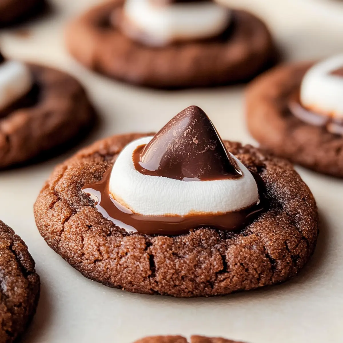 Jump to Recipe Print RecipeThe aroma of chocolate wafting through your kitchen is a sure sign that the holidays are here! As I crafted these Fudgy Hot Cocoa Cookie Blossoms, I couldn’t help but feel transported to those cozy winter evenings spent sipping rich cups of hot cocoa. Each bite of these cookies is like a warm hug, featuring a fudgy center topped with gooey marshmallows and a delightful Hershey’s Kisses Hot Cocoa Chocolate. Best of all? You won’t need a mixer or even a chilling period—just pure, uncomplicated baking joy. These treats are not only quick to whip up but also a guaranteed crowd-pleaser, making them perfect for holiday gatherings or cozy nights at home. Ready to surprise your loved ones with a festive twist on classic cookies? Let’s dive into this delightful recipe! Why Are Hot Cocoa Cookie Blossoms So Irresistible? Decadent, fudgy center: These cookies boast a rich, gooey interior that mimics the comforting essence of hot cocoa. No mixer required: Simplistic preparation allows anyone to join in on the baking fun without the hassle of complex tools. Quick bake time: Ready in just minutes, they’re perfect for when unexpected guests drop by. Kid-approved: These delightful treats are sure to excite kids and adults alike, making them a hit at holiday parties. For even more cozy flavors, consider trying out Chocolate Chip Cookie or Pink Hot Chocolate alongside these! Hot Cocoa Cookie Blossoms Ingredients • It’s time to gather everything you need for these delightful treats! For the Cookie Dough All-purpose flour – Works as the backbone for these delicious cookies, providing the right structure. Baking soda – A leavening agent that helps create a light texture. Baking powder – Adds extra leavening, ensuring your cookies rise beautifully. Unsweetened cocoa powder – Infuses the cookies with a rich, chocolate flavor. Salt – Balances the sweetness for a more complex flavor profile. Unsalted butter – Adds moisture and richness; make sure it’s melted and cooled. Brown sugar – Packed tightly, this ingredient brings a hint of caramel flavor and moisture. White granulated sugar – Contributes necessary sweetness along with a delightful crunch to the edges. Pure vanilla extract – Elevates the cookie experience with warm and aromatic notes. Large egg and egg yolk – Binds the mixture together; best when at room temperature for the fudgy texture. For the Topping Marshmallows – Cut regular-sized marshmallows in half for that gooey top layer. Hershey’s Kisses Hot Cocoa Chocolates – These chocolates provide a festive garnish and enhance the overall hot cocoa experience. For Rolling White granulated sugar (for rolling) – Adds a sweet, crunchy exterior that makes each bite magical. Gathering these ingredients will get you one step closer to creating enchanting Hot Cocoa Cookie Blossoms everyone will love! Step‑by‑Step Instructions for Hot Cocoa Cookie Blossoms Step 1: Preheat the Oven Begin by preheating your oven to 350°F (175°C). While it’s warming up, take two baking sheets and line them with parchment paper. This step ensures that your Hot Cocoa Cookie Blossoms won’t stick and will have perfectly even baking surfaces. Step 2: Mix the Dry Ingredients In a medium mixing bowl, sift together 1 ½ cups of all-purpose flour, ⅓ cup of unsweetened cocoa powder, ½ teaspoon of baking soda, ½ teaspoon of baking powder, and a pinch of salt. Whisk them thoroughly until the mixture is well combined and free of lumps. Set aside the dry ingredients as they await their chocolatey fate. Step 3: Combine the Wet Ingredients In a large mixing bowl, whisk together ½ cup of melted unsalted butter, ¾ cup of packed brown sugar, ¼ cup of white granulated sugar, 1 teaspoon of pure vanilla extract, 1 large egg, and 1 egg yolk. Blend these ingredients until smooth and cohesive. You’ll know you’re ready when the mixture appears glossy and well integrated. Step 4: Incorporate Dry and Wet Mixtures Slowly add the sifted dry ingredients to the bowl with your wet mixture. Use a rubber spatula to fold and mix until just combined—be careful not to over-mix, as this can impact the texture of your Hot Cocoa Cookie Blossoms. The dough should be thick and fudgy, typical of rich cookie batter. Step 5: Let the Dough Rest Allow the dough to rest for about 10 minutes. This short period helps the flavors meld together, and you’ll notice it becomes slightly firmer, making it easier to scoop and shape into cookies. Take a moment to appreciate those lovely chocolatey aromas wafting through your kitchen! Step 6: Shape the Cookies With a cookie scoop or tablespoon, portion out the dough and roll it into uniform balls, about 1 inch in diameter. Once shaped, roll each ball in granulated sugar, creating a sweet, crunchy exterior. Arrange 12 dough balls on each lined cookie sheet, leaving space between them for spreading. Step 7: Bake the Cookies Place the cookie sheets in your preheated oven and bake for 6 minutes. At this point, carefully remove the trays and gently press half a marshmallow on top of each cookie. Return the cookies to the oven and bake for an additional 2 to 3 minutes until they are slightly puffed and a bit soft to the touch. Step 8: Cool and Garnish After baking, let your Hot Cocoa Cookie Blossoms sit on the sheet for 2 minutes before transferring them to a cooling rack. While the cookies are still warm, place a Hershey’s Kisses Hot Cocoa Chocolate on top of each marshmallow, allowing it to melt slightly. This sweet finishing touch enhances the festive look and flavor of your cookies. Expert Tips for Hot Cocoa Cookie Blossoms • Measure Precisely: Use a kitchen scale for an accurate amount of flour. Too much can lead to dense cookies instead of the desired fudgy texture. • Room Temperature Ingredients: Allow your egg and egg yolk to reach room temperature. This ensures better emulsification and enhances the fudginess of your Hot Cocoa Cookie Blos