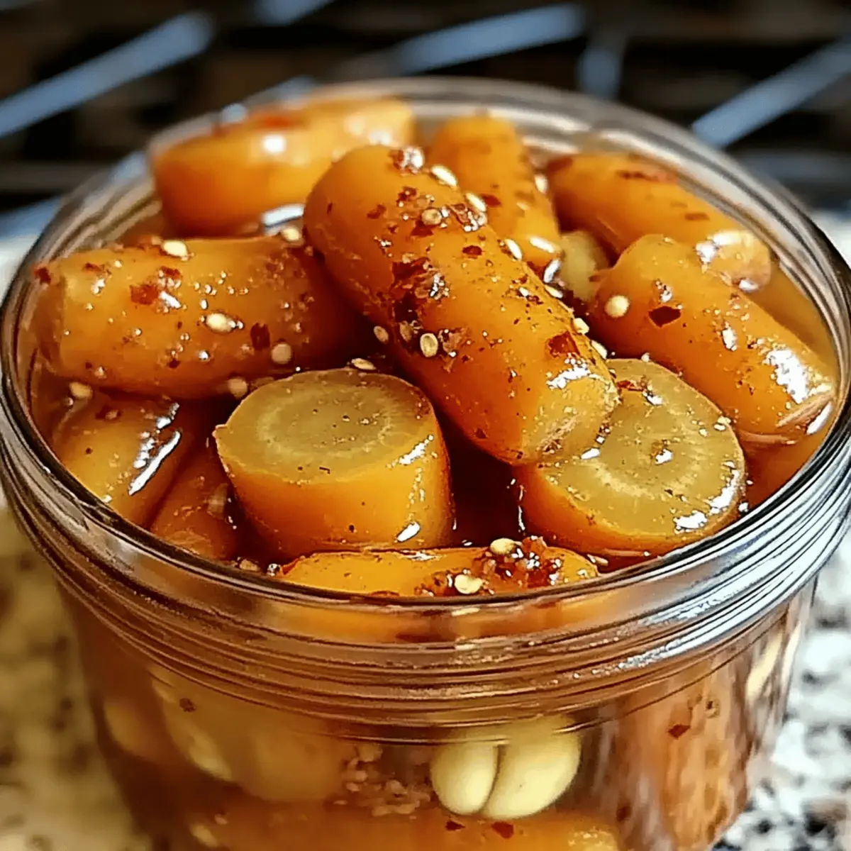 Jump to Recipe Print RecipeAs I stood in the kitchen, the sweet scent of honey mingled with the tang of vinegar, instantly transporting me to a world of flavor. The spotlight today is on my Hot Honey Pickled Carrots – a delightful twist on classic pickles. Not only do these vibrant carrots add a crunch to any meal, but they also bring a playful spicy kick that can elevate even the simplest dishes. Whether you’re looking for a quick and easy snack or a colorful addition to salads and tacos, this recipe can be whipped up in just 25 minutes. Plus, they’re vegetarian-friendly and customizable to your taste! Are you ready to discover how to make these irresistibly tasty pickled carrots? Why Try Hot Honey Pickled Carrots? Flavor Explosion: These pickled carrots combine sweet honey and spicy red pepper flakes, creating a taste sensation that’s hard to resist. Quick & Easy: In just 25 minutes, you will have a vibrant snack ready to enjoy, making it perfect for busy lifestyles. Customizable: Feel free to swap out the vinegar or add fresh jalapeños to dial up the heat. Versatile Use: Enjoy them on sandwiches, salads, or just as a crunchy snack! For an alternative flavor, try my Honey Sriracha Salmon for a zesty twist! Crowd-Pleaser: These colorful pickled carrots will not only brighten your plate but will impress family and friends alike every time you serve them. Honey Pickled Carrots Ingredients • Your flavorful journey starts here! For the Pickling Liquid Apple Cider Vinegar – Adds a delightful tang; feel free to swap with white wine or rice vinegar for different notes. Honey – Provides the sweetness; adjust according to your preference for that perfect balance. Red Pepper Flakes – Infuses a spicy kick; increase for more heat or blend in jalapeño slices for added zest. Garlic – Delivers savory depth; smashed cloves enhance the pickling liquid’s flavor. Salt – Essential for seasoning; tweak to suit your taste. Black Peppercorns – Adds a peppery bite; whole ones will infuse flavor over time. For the Carrots Carrots – The star of the show! Choose fresh, firm carrots for the best crunch. Now that you have your ingredients ready, you’re one step closer to making these delicious Honey Pickled Carrots that will elevate your meals and hold a special place in your recipe repertoire! Step‑by‑Step Instructions for Honey Pickled Carrots Step 1: Prepare the Pickling Liquid In a medium saucepan, combine apple cider vinegar, honey, red pepper flakes, salt, black peppercorns, and smashed garlic. Stir the mixture thoroughly to blend the ingredients. Place the saucepan over medium heat and bring it to a gentle simmer, allowing it to bubble softly for about 5 minutes. This process enables the flavors to meld beautifully, creating the perfect base for your Honey Pickled Carrots. Step 2: Add Carrots to the Mixture Once the pickling liquid is ready, add the carrot sticks to the bubbling liquid in the saucepan. Gently stir to ensure each piece is coated with the flavorful mixture. Let the carrots simmer for an additional 2-3 minutes, allowing them to slightly soften while still retaining their delightful crunch. You’ll notice the carrots absorbing the vibrant flavor of the pickling liquid. Step 3: Cool Down the Mixture After simmering, remove the saucepan from heat and let the mixture cool for about 10 minutes. This cooling step is essential as it helps to develop the flavors further while preventing the carrots from becoming overly soft. Set the saucepan aside, allowing the pickling liquid and carrots to mingle in the warm ambiance, marrying their flavors before the final steps. Step 4: Transfer to Jars Carefully transfer the carrot sticks into a clean jar or an airtight container, ensuring you pack them in tightly for maximum flavor absorption. Once the carrots are in place, pour the pickling liquid over them, making sure they are fully submerged. The liquid should completely cover the carrots, reinforcing the delightful blend of sweet and spicy flavors characteristic of your Honey Pickled Carrots. Step 5: Seal and Refrigerate Seal the jar tightly with its lid, creating an airtight environment that locks in the flavors. Place the jar in the refrigerator and allow the carrots to pickle for at least 24 hours before serving. This time allows the flavors to deepen and the carrots to fully absorb the sweet and spicy essence of the pickling liquid, ensuring your Honey Pickled Carrots are at their best when you finally taste them! Expert Tips for Honey Pickled Carrots Fresh Ingredients: Choose fresh, firm carrots for the best crunch and flavor. Older carrots can lead to mushy pickles, so pick the best! Submerge Completely: Ensure the carrots are fully submerged in the pickling liquid to maintain their crunch and flavor. This prevents spoilage and enhances the taste of your Honey Pickled Carrots. Flavor Development: Allow the carrots to pickle for at least 24 hours in the refrigerator. This waiting time significantly boosts their flavor, making them even more delicious. Custom Heat Level: Adjust the spiciness by varying the amount of red pepper flakes or adding fresh jalapeños. Always taste and tweak to your heat preference! Experiment: Don’t hesitate to try different vegetables like radishes or cucumbers using the same method. Mixing it up keeps your pantry exciting and delicious! What to Serve with Hot Honey Pickled Carrots These vibrant pickled carrots will elevate your dining experience when paired with the right accompaniments. Creamy Avocado Toast: The smooth, rich avocado balances the crunch and spice of the carrots, providing a satisfying texture contrast. Spread on whole-grain bread, it’s a perfect light meal. Grilled Chicken Tacos: The zest of grilled chicken wrapped in warm tortillas pairs beautifully with the sweet heat of the carrots, creating a flavor fiesta! Crispy Potato Wedges: These savory, crispy wedges offer a comforting crunch, complementing the tangy pickled ca
