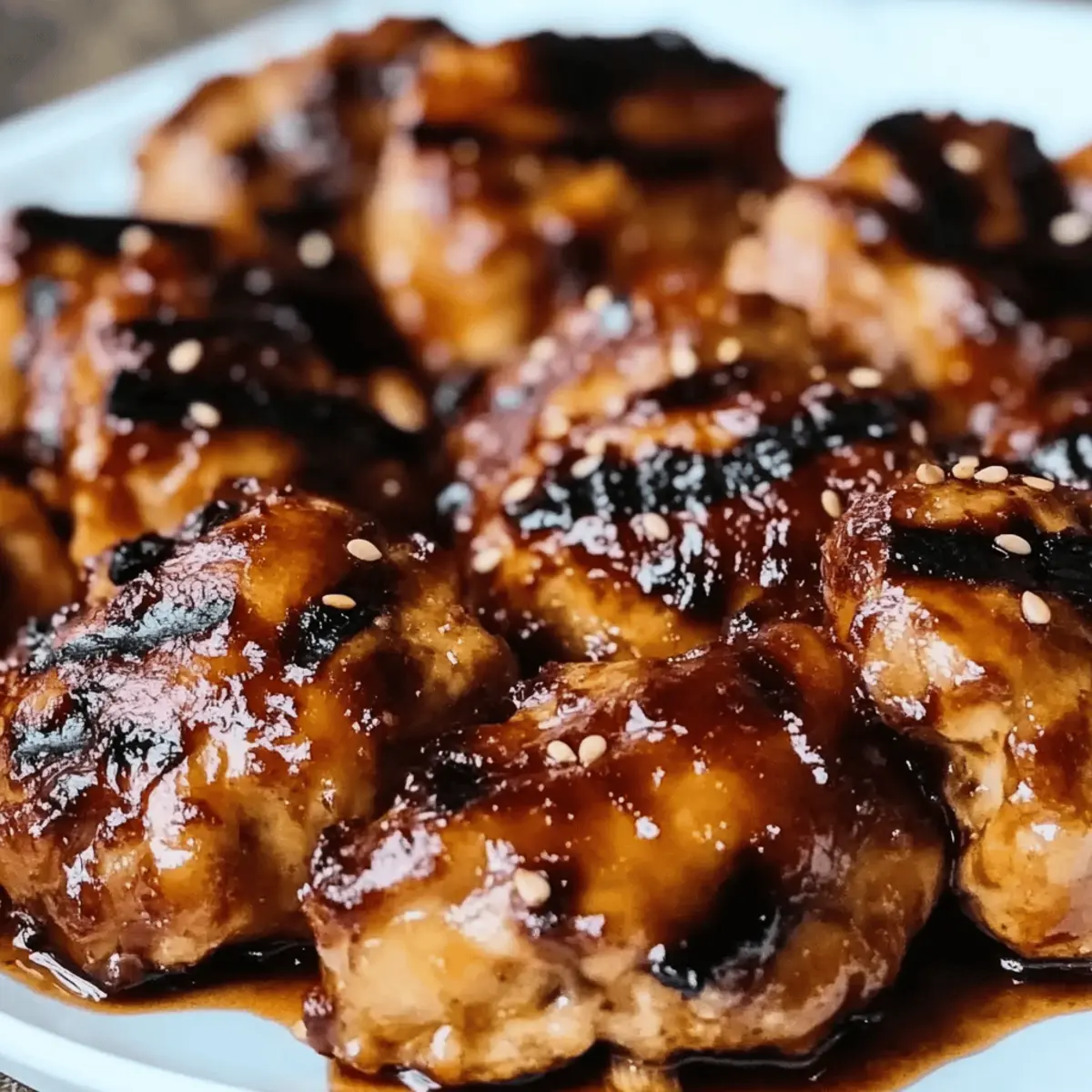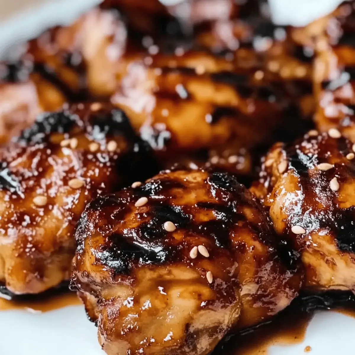 Jump to Recipe Print RecipeAs I breathed in the fragrant aroma of grilling chicken on a warm summer evening, my taste buds danced in anticipation of something truly special. That’s when I brought out my secret weapon: Huli Huli Chicken. This delicious Hawaiian recipe transforms simple ingredients into a flavorful feast, featuring a heavenly honeyed soy marinade that’s both low-calorie and high in protein. Perfect for those who crave a healthier, homemade alternative to fast food, this dish is not only quick to prepare but also makes a stunning centerpiece for gatherings. Trust me, the whole family will be asking for seconds! Want to learn how to bring a touch of the islands to your dinner table? Let’s get started! What Makes Huli Huli Chicken Special? Tropical Twist: This Huli Huli Chicken brings a taste of Hawaii right to your grill, infusing every bite with sweet and savory goodness. Quick Prep Time: With just a few easy-to-find ingredients, you’re on your way to a flavorful meal in no time. Healthy Choice: Low in calories yet high in protein, this dish is perfect for those looking to eat well without sacrificing flavor. Crowd-Pleaser: Whether for a family dinner or a summer barbecue, this dish is sure to impress your guests, just like my Fiery Chicken Ramen does! Versatile Pairings: Serve it alongside roasted vegetables, Asian slaw, or even grilled pineapples for an authentic Hawaiian vibe. Get ready for a delicious meal that will leave everyone asking for more! Huli Huli Chicken Ingredients • Here’s everything you need for the ultimate Huli Huli Chicken experience! For the Marinade: Sesame Oil – A flavorful base for the marinade; can substitute with canola oil for a milder taste. Fresh Ginger – Brings aromatic warmth; ground ginger can be used in a pinch (just use half as much). Garlic Cloves (2 large, minced) – Enhances savory depth; opt for fresh garlic for the best flavor. Low-Sodium Soy Sauce or Tamari (⅓ cup) – Provides umami; coconut aminos are a great gluten-free alternative. Rice Vinegar (1 tablespoon) – Adds necessary acidity; apple cider vinegar is an acceptable substitute. Brown Sugar (¼ cup) – Sweetens and caramelizes the chicken; swap with honey or coconut sugar as you prefer. Ketchup (¼ cup) – Adds a sweet-tangy kick; homemade ketchup works too, or increase brown sugar for more sweetness. Smoked Paprika (½ teaspoon) – Introduces a smoky note; replace it with regular paprika if you prefer less smoke. Cornstarch (1 tablespoon) – Thickens the marinade for better adhesion; arrowroot powder can work as a substitute too. For the Chicken: Chicken Thighs (2 pounds, boneless, skinless) – Juicy and perfect for grilling; chicken breasts can be used but may dry out. Vegetable Oil (for greasing) – Prevents sticking on the grill; any neutral oil will do just fine. Prepare these ingredients, and you’ll be one step closer to a fantastically delicious Huli Huli Chicken that your family will adore! Step‑by‑Step Instructions for Huli Huli Chicken Step 1: Make the Marinade Begin by heating a medium saucepan over medium heat and add 2 tablespoons of sesame oil. Once it shimmers, stir in 1 tablespoon of freshly grated ginger and 2 minced garlic cloves, cooking for about 1 minute until fragrant. Next, add ⅓ cup low-sodium soy sauce, 1 tablespoon rice vinegar, ¼ cup brown sugar, ¼ cup ketchup, and ½ teaspoon smoked paprika. In a small bowl, mix 1 tablespoon cornstarch with 2 tablespoons of cool water, then stir this into the saucepan. Bring to a boil, and simmer for 3-4 minutes until thickened. Remove from heat and allow it to cool. Step 2: Marinate the Chicken Reserve ½ cup of the marinade for basting later, and transfer the remaining sauce to a bowl. Coat 2 pounds of boneless, skinless chicken thighs thoroughly in the marinade. Cover the bowl tightly with plastic wrap and refrigerate for at least 1 hour, although 4 hours is ideal for letting the flavors of the Huli Huli Chicken soak in. While marinating, gather your grilling equipment. Step 3: Prepare the Grill When you’re ready to grill, preheat your grill to medium-high heat (about 375°F to 400°F). Make sure to oil the grates with a little vegetable oil to prevent any sticking. This step is crucial for achieving that beautiful caramelization on the chicken skin without it tearing or becoming a mess while flipping. Step 4: Grill the Chicken Once the grill is hot, remove the chicken from the marinade and place it on the grates. Cook for about 4-6 minutes on one side, keeping an eye out for those lovely grill marks. After flipping, baste the chicken with the reserved marinade and grill for another 4-6 minutes. The chicken is done when it reaches an internal temperature of 165°F (75°C) and has a shiny, sticky glaze on the surface. Step 5: Serve the Huli Huli Chicken Transfer the grilled chicken to a platter and let it rest for a few minutes before slicing. The Huli Huli Chicken’s caramelized exterior and tender, juicy interior make it a standout dish. Serve with your choice of sides, such as steamed rice or grilled vegetables, to complete the meal and transport everyone to Hawaii with just one bite. How to Store and Freeze Huli Huli Chicken Room Temperature: Huli Huli Chicken should not be left out at room temperature for more than 2 hours to prevent bacteria growth. Fridge: Store leftover Huli Huli Chicken in an airtight container in the fridge for up to 3-4 days. This way, you can enjoy the delicious flavors for several meals! Freezer: For longer storage, freeze the chicken in an airtight freezer bag or container. It can last for up to 3 months. Double-wrap for extra protection against freezer burn! Reheating: When ready to enjoy, thaw the frozen chicken in the fridge overnight. Reheat gently in the oven or on the stovetop to maintain the juicy texture of this savory dish. What to Serve with Huli Huli Chicken Huli Huli Chicken brings a tropical flair to your table, inviting a feast o