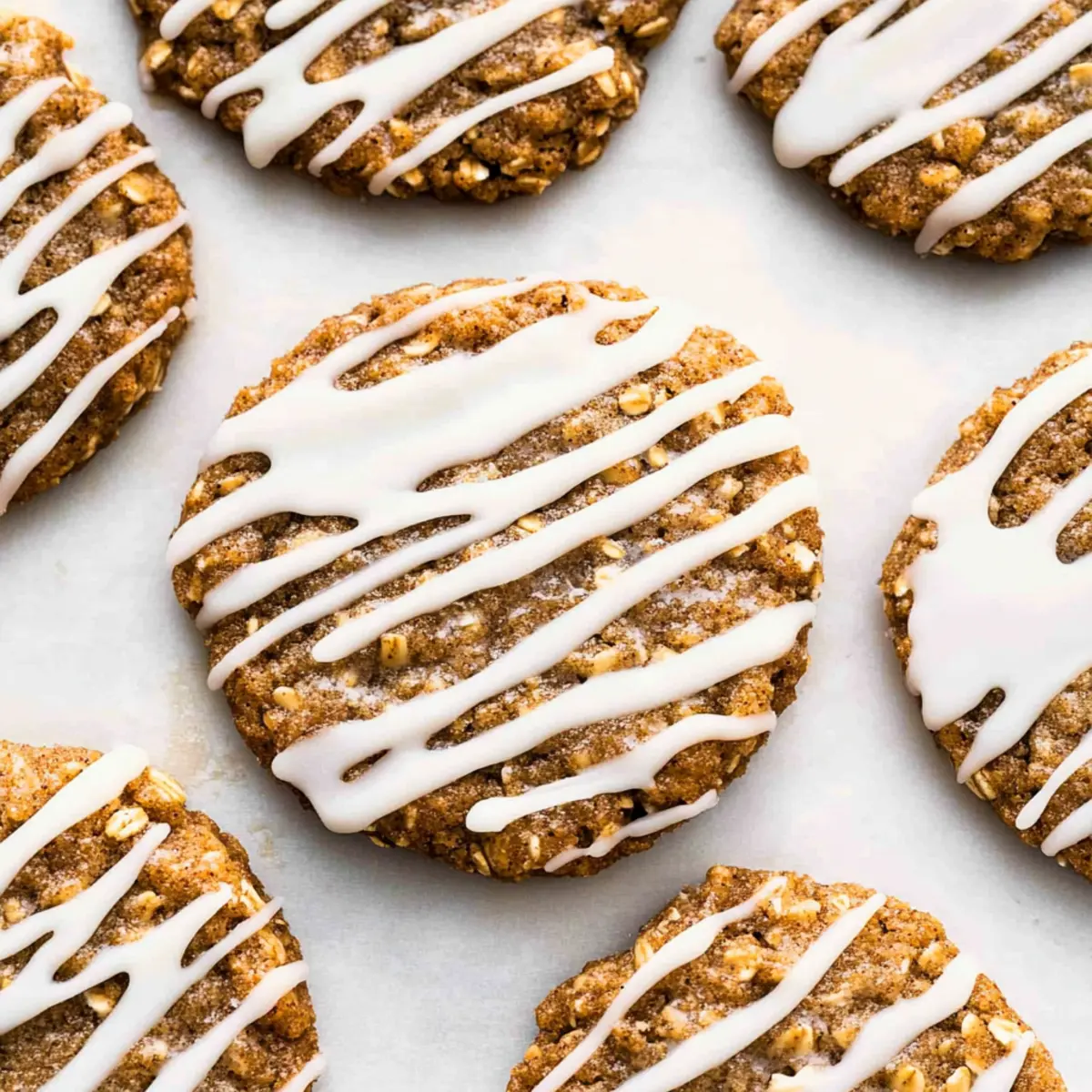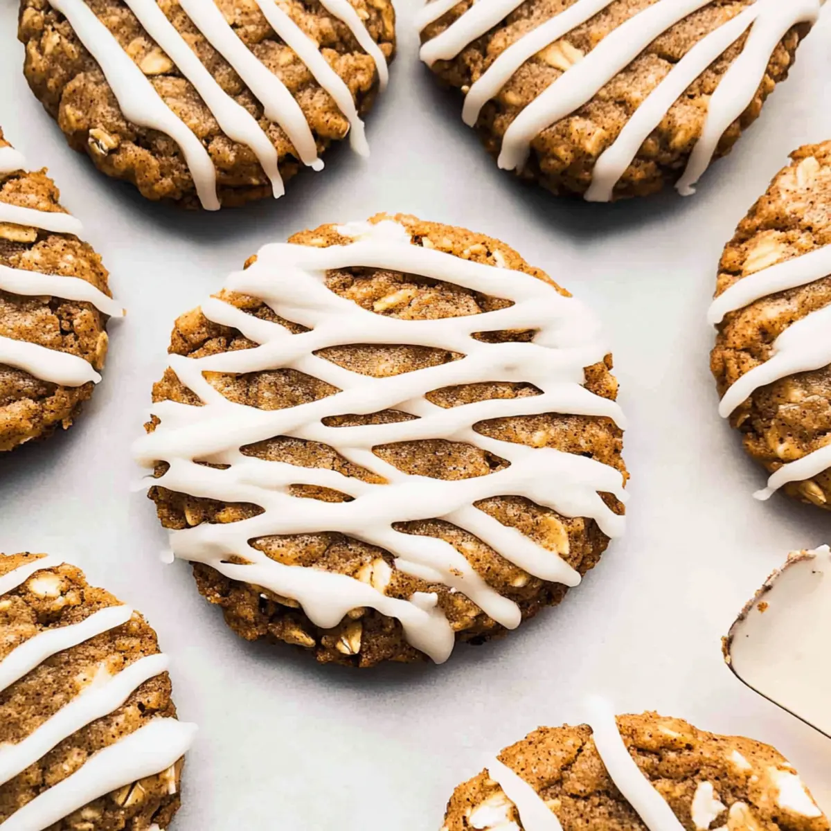 Jump to Recipe Print RecipeAs I stood in my kitchen, the air filled with warm spices and nostalgia, I couldn’t help but reminisce about the joyful chaos of holiday baking. These Healthy Iced Gingerbread Oatmeal Cookies are a delightful nod to tradition, offering all the comforting flavors of gingerbread while keeping things wholesome. With no refined sugar and gluten-free options, they’re perfect for anyone craving a sweet treat without the guilt. What’s even better is that they come together effortlessly—no electric mixers or fancy gadgets needed! Imagine indulging in chewy, aromatic cookies that are as good for your soul as they are for your body. Curious how to whip up this seasonal favorite? Let’s dive into the recipe! Why love Iced Gingerbread Oatmeal Cookies? Wholesome Indulgence: These Iced Gingerbread Oatmeal Cookies bring the festive spirit without compromising on health. Easy to Make: No need for electric mixers here—just simple mixing for fuss-free baking. Flavorful Experience: Each bite is bursting with warm spices like ginger and cinnamon, evoking the essence of holiday cheer. Guilt-Free Treat: With no refined sugar or gluten, you can enjoy these chewy delights without the usual consequences. Versatile Customization: Feel free to experiment by adding dried fruits or nuts, making each batch uniquely yours! These cookies are a perfect companion to your favorite holiday beverage, reminiscent of cozy moments spent by the fireplace. Enjoy a taste of holiday magic anytime with our Healthy Iced Gingerbread Oatmeal Cookies! Iced Gingerbread Oatmeal Cookies Ingredients • Create a deliciously wholesome treat with these essential components! For the Cookies Whole Wheat Flour – Provides structure and adds fiber; substitute with gluten-free flour for a gluten-free version. Instant Oats – Adds texture and chewiness; ensure accurate measurement to avoid a cakey result. Pure Maple Syrup – Acts as a natural sweetener with rich flavor; alternatives like stevia or monk fruit can be used but adjust liquid content accordingly. Molasses – Essential for the classic gingerbread flavor; don’t skip this ingredient for authenticity! Ground Ginger – Contributes the iconic spicy taste characteristic of gingerbread. Cinnamon, Nutmeg, Cloves – These spices provide warmth and depth, rounding out the comforting flavors of the cookies. For the Icing Powdered Sugar – Creates a smooth icing base; sifted for best results. Milk – Adds creaminess to the icing; use non-dairy milk for a vegan option. Vanilla Extract – Enhances the flavor of the icing, giving it a lovely touch. Indulge in these Iced Gingerbread Oatmeal Cookies and let their warm, cozy flavors fill your home with the spirit of the holidays! Step‑by‑Step Instructions for Iced Gingerbread Oatmeal Cookies Step 1: Prep Ingredients Gather your ingredients for the Iced Gingerbread Oatmeal Cookies, making sure to accurately measure the whole wheat flour and instant oats. It’s essential to prevent altering the cookie texture, so using a kitchen scale is helpful. Set your oven to preheat at 350°F (175°C) while you prepare the rest of the dough. Step 2: Mix Dry Ingredients In a large mixing bowl, combine the whole wheat flour, instant oats, ground ginger, cinnamon, nutmeg, and cloves. Use a whisk to ensure there are no lumps and that all the spices are evenly distributed. The mixture should be light and airy, ready to absorb the wet ingredients that will follow. Step 3: Add Wet Ingredients Next, stir in the pure maple syrup, molasses, and any additional wet ingredients until everything is well combined. The dough will start to form at this point, appearing sticky and slightly thicker. Mixing thoroughly ensures each cookie will have the cherished gingerbread flavor embedded in every bite. Step 4: Chill Dough Cover the mixing bowl with plastic wrap and place the dough in the refrigerator for 30 minutes. This chilling step allows the dough to thicken and makes it easier to shape your cookies later. When you take it out, the dough should be slightly firmer but still sticky—this is normal! Step 5: Shape Cookies Once chilled, use a spoon or spatula to scoop out portions of the dough, placing them onto a baking sheet lined with parchment paper. Flatten each scoop slightly with the back of the spoon or your fingers to help them spread during baking. Aim for uniform sizes to ensure even cooking throughout the batch. Step 6: Bake Place the baking sheet in your preheated oven and bake the cookies for 10-12 minutes. Keep an eye on them as they bake; you’ll know they’re ready when the edges appear set but the centers still look soft and slightly domed. This balance helps maintain the chewy texture characteristic of Iced Gingerbread Oatmeal Cookies. Step 7: Cool Remove the cookies from the oven and let them cool on the baking sheet for about 5 minutes before transferring them to a wire rack. Cooling is crucial for setting their shape and ensuring they remain soft and chewy. Once completely cool, they’re ready for icing! Storage Tips for Iced Gingerbread Oatmeal Cookies Room Temperature: Store the cookies in an airtight container at room temperature for up to 7 days for optimal freshness and soft texture. Freezer: For longer storage, freeze the cookies without icing in a freezer-safe container for up to 3 months. This preserves their flavor and chewiness. Thawing: To enjoy your frozen Iced Gingerbread Oatmeal Cookies, thaw them in the fridge overnight or at room temperature for a few hours before serving. Icing Storage: If you plan to freeze, add icing only after thawing to maintain its texture and appearance. Expert Tips for Iced Gingerbread Oatmeal Cookies Precise Measurements: Use a kitchen scale to accurately measure flour and oats, as miscalculations can lead to a caky texture instead of chewy cookies. Chill for Success: Chilling the dough is essential; it thickens the mixture, helping you shape the cookies without them 