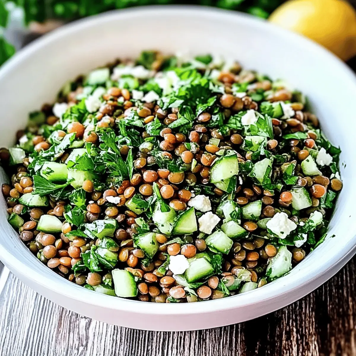 Jump to Recipe Print RecipeAs I stood in my kitchen, the scent of fresh herbs mingled with the zesty aroma of lemons, instantly transporting me to a sun-drenched market in the heart of Lebanon. This Lebanese Lentil Salad with Parsley and Lemon is not just a dish; it’s a celebration of vibrant flavors that come together effortlessly. In just 35 minutes, you can whip up this nutritious delight, making it the perfect quick meal or a delightful side for gatherings. Packed with protein and fresh ingredients, it caters to various dietary needs—whether you’re vegetarian or simply looking for a light and refreshing option. With endless possibilities to customize it, like adding savory chickpeas or succulent chicken, how will you make this salad your own? Why is this salad a must-try? Bursting with flavors, this Lebanese Lentil Salad will take your taste buds on a delightful journey! Nutrient-rich and satisfying, it’s ideal for anyone seeking a healthy yet enjoyable meal. Versatile enough to suit every palate, you can easily personalize it by adding chickpeas or grilled chicken. Quick preparation means you can serve this in just 35 minutes, perfect for busy weeknights or lazy weekends. Vibrant colors and textures not only make it appealing to the eye but also elevate any occasion, whether served as a refreshing side dish or a light lunch. Lebanese Lentil Salad Ingredients • Get ready to be amazed by this vibrant dish! For the Salad Lentils – A primary protein source; rinse and drain before cooking. Substitute with quinoa for a gluten-free option. Fresh Parsley – Adds a burst of freshness and color; finely chop to evenly distribute throughout the salad. Red Onion – Offers a sharp crunch; finely chop for a milder flavor. Cherry Tomatoes – Halved for sweetness and juiciness; these add delightful pops in every bite. Cucumber – Diced for crispness and hydration, balancing the salad beautifully. Feta Cheese (optional) – Sprinkle on top for tangy creaminess, enhancing your Lebanese Lentil Salad with Parsley and Lemon. For the Dressing Olive Oil – Rich and flavorful, it brings the ingredients together in harmony. Fresh Lemon Juice – Provides bright acidity; always opt for fresh lemons for the best taste. Ground Cumin – Adds warm, earthy notes that elevate the overall flavor. Salt and Black Pepper – Essential for seasoning; adjust to taste for the perfect balance. Step‑by‑Step Instructions for Lebanese Lentil Salad with Parsley and Lemon Step 1: Rinse the Lentils Begin by rinsing 1 cup of lentils under cold running water in a fine mesh strainer. Ensure they are thoroughly cleaned to remove any dust or impurities. Once rinsed, transfer the lentils to a medium saucepan and add 4 cups of water. Step 2: Cook the Lentils Place the saucepan over medium-high heat and bring the water to a boil. Once boiling, reduce the heat to medium-low and let the lentils simmer for 20-25 minutes. They should be tender but still hold their shape, so taste a few to ensure you achieve that perfect al dente texture. Afterward, drain the lentils and set them aside to cool. Step 3: Prepare the Dressing In a small bowl, combine 1/4 cup of olive oil, the juice of 2 fresh lemons, 1 teaspoon of ground cumin, and salt and black pepper to taste. Whisk these ingredients together until the dressing is well mixed and emulsified, leaving you with a vibrant and flavorful dressing for your Lebanese Lentil Salad with Parsley and Lemon. Step 4: Combine the Ingredients In a large mixing bowl, add the cooled lentils, 1 cup of finely chopped fresh parsley, 1/2 finely chopped red onion, 1 cup of halved cherry tomatoes, and 1 diced cucumber. Use a spatula to gently combine the ingredients, ensuring an even distribution of flavors and colors throughout your salad. Step 5: Add the Dressing Drizzle the whisked dressing over the lentil mixture and carefully toss everything together using a gentle folding motion. This will coat all the ingredients without mashing the lentils, letting the flavors of the Lebanese Lentil Salad with Parsley and Lemon shine through beautifully. Step 6: Chill the Salad Cover the bowl with plastic wrap or a lid and place it in the refrigerator. Allow the salad to chill for at least 30 minutes. This resting time will let the flavors meld together, resulting in a more delicious and refreshing salad for you to enjoy. Step 7: Serve and Garnish When ready to serve, give the salad a quick stir and taste, adjusting seasoning as needed. If desired, sprinkle crumbled feta cheese on top for an extra layer of creaminess. Serve this vibrant Lebanese Lentil Salad with Parsley and Lemon alongside your favorite grilled meats or as a standalone light lunch. What to Serve with Lebanese Lentil Salad with Parsley and Lemon Elevate your mealtime experience by complementing this zesty salad with delightful sides and beverages that enhance its vibrant flavors. Grilled Chicken Skewers: Juicy and smoky, they add protein while balancing the fresh notes of the salad. Hummus with Pita Chips: Creamy and earthy, this snack complements the salad’s brightness and offers a satisfying texture contrast. Roasted Vegetables: A mix of seasonal veggies adds a warm, sweet note, providing depth to the meal and echoing the salad’s refreshing crunch. Quinoa Tabbouleh: With its herby flavors and hearty texture, this dish pairs perfectly, maintaining the Middle Eastern theme while adding variety to your table. Crispy Falafel: These flavorful bites bring a delightful crunch and a dose of protein, making for a filling, balanced meal. Minted Yogurt Sauce: A dollop of this cooling sauce enhances the spices in the salad, making each bite taste even more vibrant and refreshing. Sparkling Mint Lemonade: This zesty beverage echoes the lemony brightness of the salad, providing a festive touch to your meal. Baklava: For dessert, this sweet, flaky pastry adds a delightful contrast to the salad’s fresh flavors, creating a satisfying end to your 