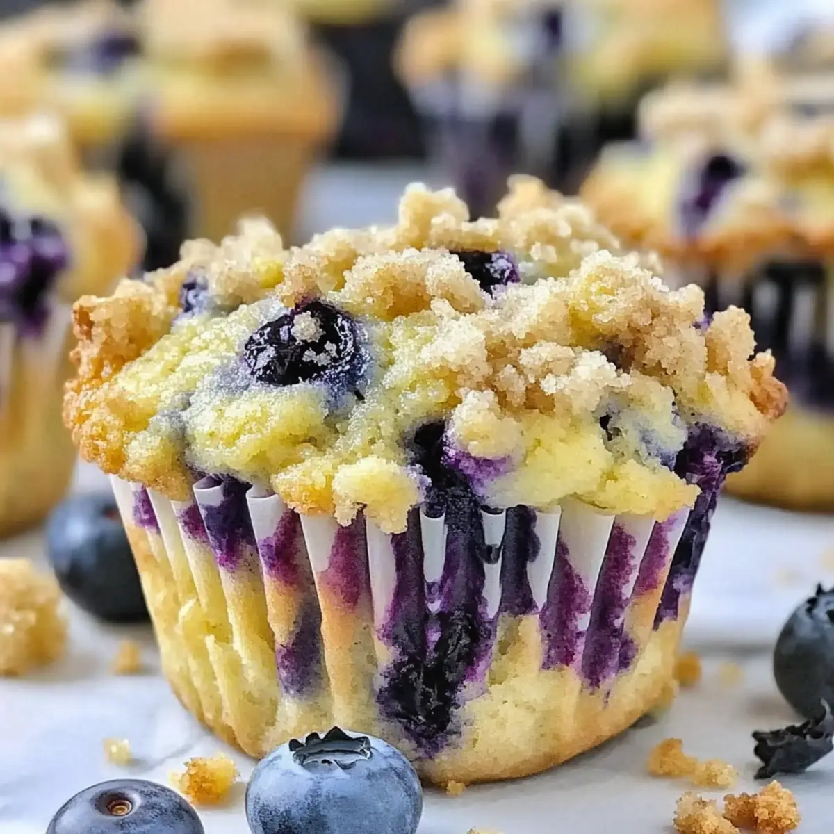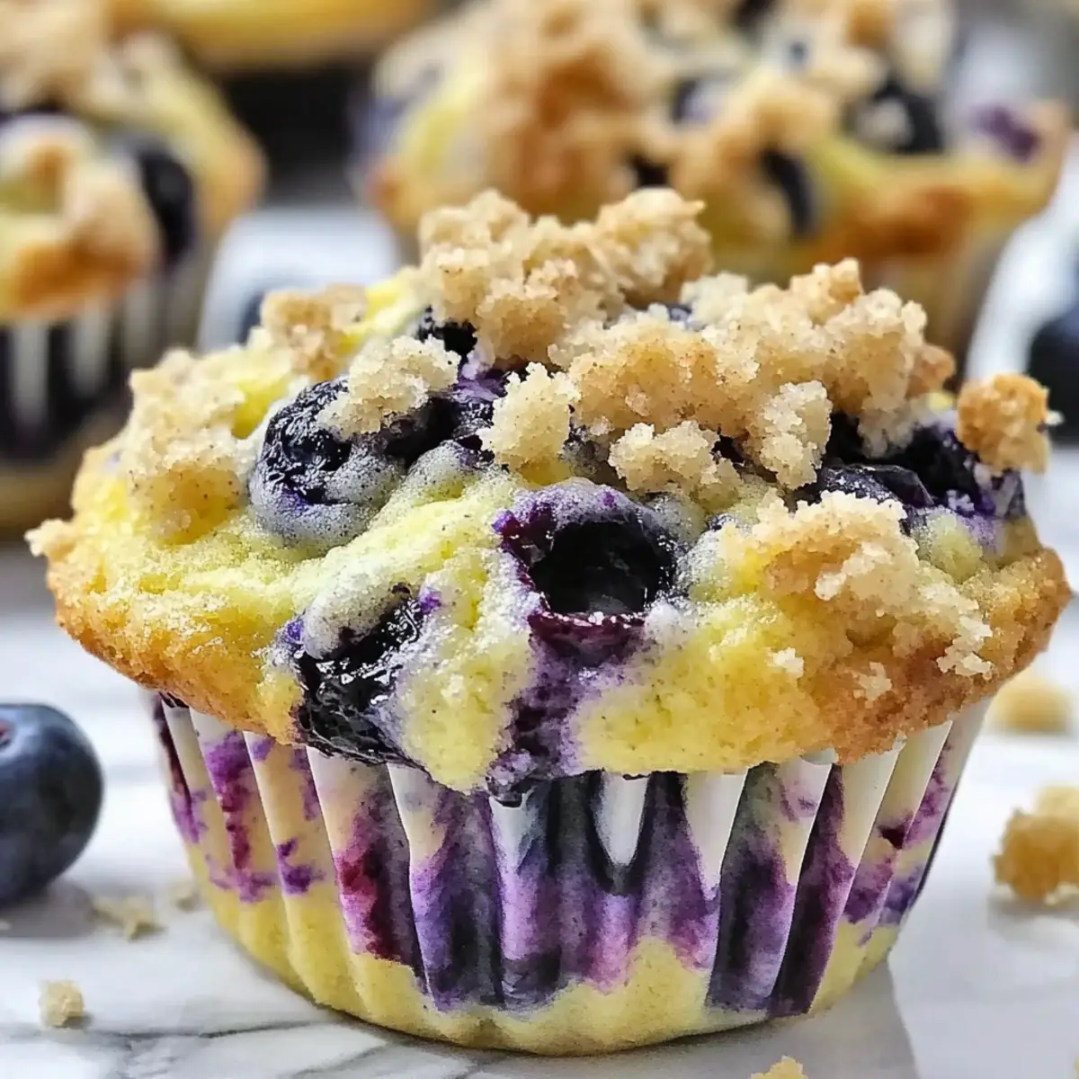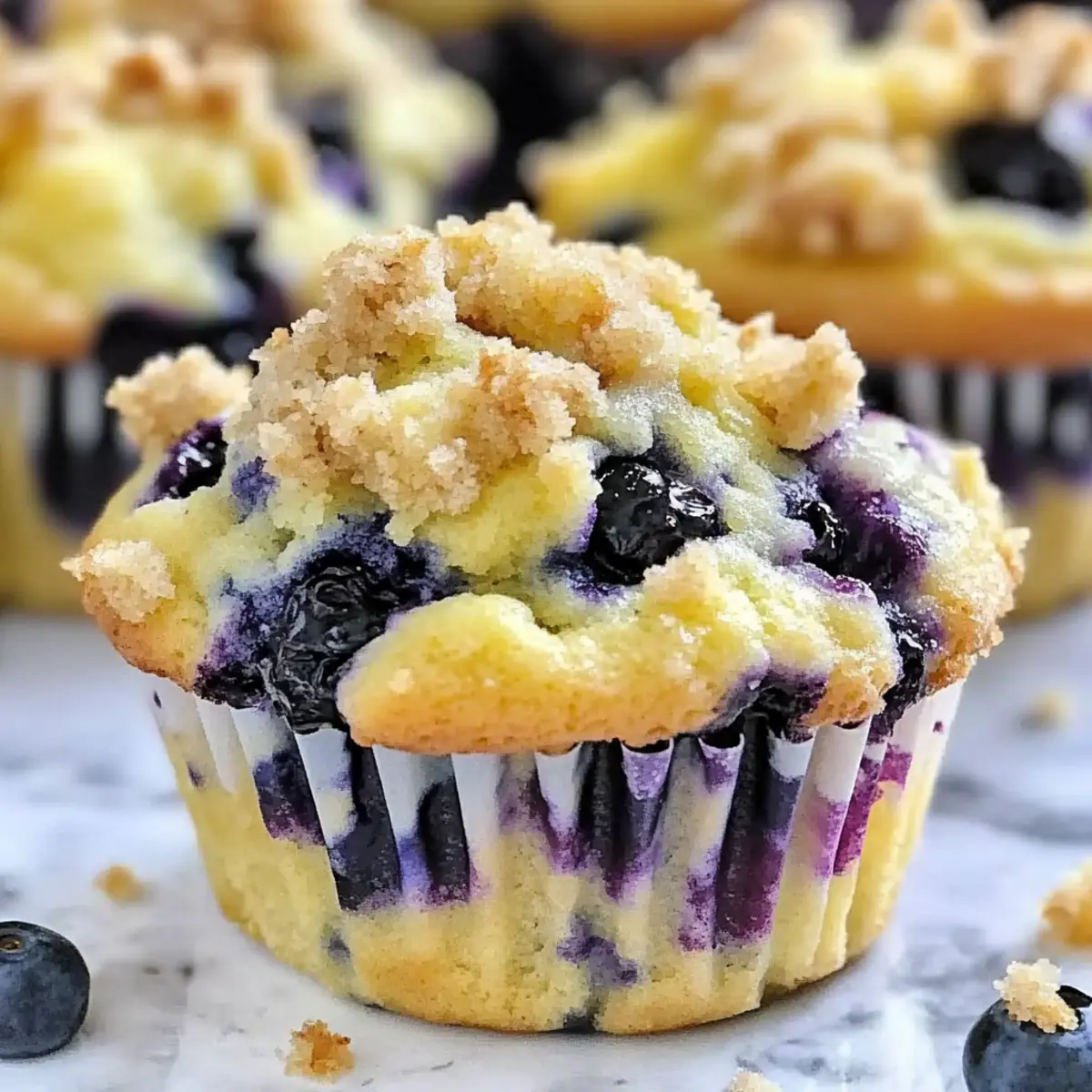 Jump to Recipe Print RecipeAs I pulled the first batch of muffins from the oven, the sweet aroma of lemon and blueberries enveloped my kitchen, transforming the ordinary into something truly magical. These Moist Lemon Blueberry Muffins not only brighten up your mornings but also blend delightful flavors with a buttery streusel topping that beckons for a warm, cozy bite. Their quick prep time makes them perfect for busy days, allowing you to enjoy a homemade treat without the hassle. Plus, with options for gluten-free substitutions and the ability to use Greek yogurt, these muffins promise a versatile twist that everyone can enjoy. Who doesn’t love the sound of a muffin that can fit into your busy lifestyle yet still taste like a little piece of heaven? Ready to learn how to whip up your own batch? Why are these muffins a must-try? Moist and Fluffy: The texture is a perfect blend of lightness and tenderness, making every bite a delight. Zesty Flavor: Fresh lemon juice and zest give these muffins a vibrant twist that balances beautifully with sweet blueberries. Quick and Easy: With simple ingredients and a straightforward method, you can have these baked in no time—perfect for bustling mornings! Versatile Options: Tailor the recipe to your taste by swapping in blueberry muffins bursting or experimenting with gluten-free flour. Crowd-Pleaser: Whether it’s breakfast for the family or a treat for friends, these muffins are sure to impress and disappear quickly! Lemon Blueberry Muffin Ingredients • Discover the essentials for your baking delight! For the Muffins All-Purpose Flour – Structure and body for the muffins. Substitution: Can substitute with gluten-free flour for a lighter option. Granulated Sugar – Sweetness that balances the tartness of lemon and blueberries. Substitution: Brown sugar for a deeper flavor that adds richness. Greek Yogurt – Moisture and tenderness; adds protein to the muffins. Substitution: Can use sour cream or coconut yogurt for different flavors. Eggs – Binding agent that helps achieve the right texture and rise. Baking Powder – Leavening agent for fluffy muffins that rise perfectly. Baking Soda – Additional leavening to help muffins rise high and maintain fluffiness. Vanilla Extract – Flavor enhancer that adds warmth to the muffins. Note: You can leave out if using flavored yogurt. Lemon Juice – Provides tangy flavor that complements the sweetness of blueberries. Preparation: Freshly squeezed is best; about 2 tablespoons required for ultimate flavor. Lemon Zest – Intensifies the lemon flavor, making every bite refreshing. Frozen or Fresh Blueberries – Adds sweetness and juiciness; use what you have on hand! Vegetable Oil – Moisture and fat content, ensuring muffins stay tender. Substitution: Melted butter can be used for a richer taste. For the Streusel Topping Flour – Provides the base for a crumbly topping. Butter – Adds richness and flavor to the streusel. Sugar – Sweetness that contrasts beautifully with the muffins. Cinnamon – Adds warmth and a hint of spice. Tip: Modify amounts to preference—many recommend halving the streusel for less mess and a lighter topping. Elevate your mornings with these Lemon Blueberry Muffins bursting with flavor and warmth! Step‑by‑Step Instructions for Lemon Blueberry Muffins Step 1: Preheat the Oven Begin by preheating your oven to 400°F (200°C). While the oven is warming, grease a standard muffin tin with cooking spray or line it with paper cups for easy removal. This preparation is essential to ensure your Lemon Blueberry Muffins bake evenly and come out perfectly golden on the outside. Step 2: Combine Dry Ingredients In a large mixing bowl, sift together all-purpose flour, baking powder, baking soda, and a pinch of salt. This step aerates the flour and ensures even distribution of the leavening agents. Give the dry mixture a good stir with a whisk, and set it aside while you work on the wet ingredients, creating a well-balanced base for your muffins. Step 3: Whisk Wet Ingredients In a separate bowl, whisk together granulated sugar, Greek yogurt, eggs, vanilla extract, freshly squeezed lemon juice, and lemon zest until the mixture is smooth and creamy. The combination of these ingredients will add moisture and flavor to your Lemon Blueberry Muffins, creating a delightful and zesty batter that is sure to shine during baking. Step 4: Mix Wet and Dry Ingredients Pour the wet mixture into the bowl of dry ingredients. Gently mix the two together until just combined—be careful not to overmix, as this can result in dense muffins. Finally, fold in the blueberries with a spatula, taking care to evenly distribute them throughout the batter without breaking the fruit. Step 5: Prepare Streusel Topping In a small bowl, combine melted butter, flour, sugar, and a sprinkle of cinnamon to create your streusel topping. Mix these ingredients with a fork until the mixture resembles coarse crumbs. This crunchy topping will add a delicious texture to your Lemon Blueberry Muffins, giving them that irresistible bakery-style finish. Step 6: Fill Muffin Tins Scoop the muffin batter into the prepared muffin tin, filling each cup about three-quarters full for optimal rise. Once the batter is in place, generously sprinkle the streusel topping over each muffin. This layering will create a beautiful golden crust that contrasts with the soft, fluffy interior of your muffins. Step 7: Bake and Cool Place the muffin tin in the preheated oven and bake for 15 minutes or until the muffins are golden brown and a toothpick inserted in the center comes out clean. Once baked, remove the muffins from the oven and allow them to cool in the pan for about 5 minutes before transferring them to a wire rack to cool completely. This step helps maintain the muffins’ texture while they cool. Expert Tips for Lemon Blueberry Muffins Perfect Baking Time: Always check the muffins a minute or two before the suggested baking time; ove
