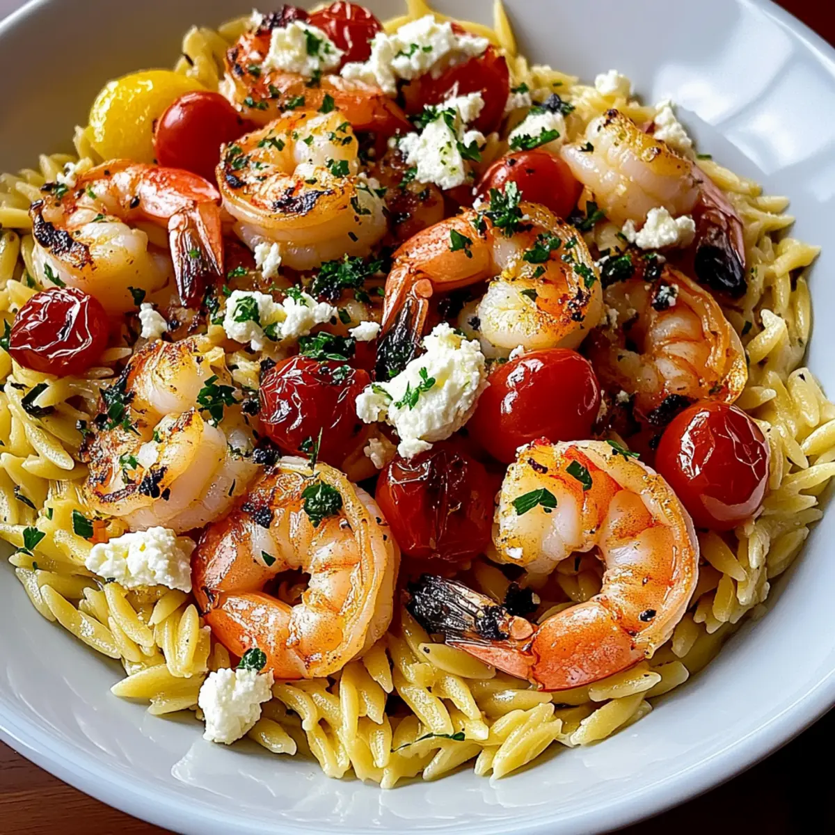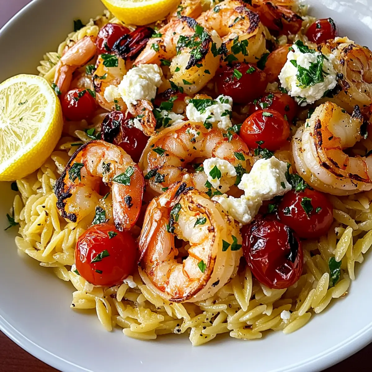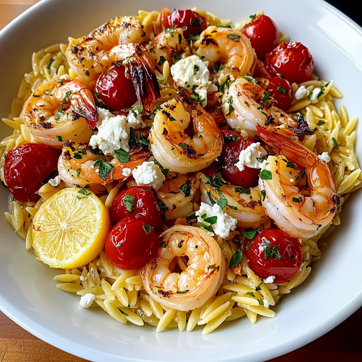 Jump to Recipe Print RecipeAs I diced the lemons and prepped the vibrant ingredients, a wave of Mediterranean sunshine swept through my kitchen, instantly lifting my spirits. Today, I’m excited to share my quick and easy Lemon Feta Orzo Shrimp recipe—your new go-to meal that packs a punch of deliciousness in just 35 minutes! This delightful dish brings together succulent shrimp and fluffy orzo pasta, all brightened by fresh lemon juice, creamy feta, and juicy cherry tomatoes. Not only is it beginner-friendly, making it perfect for home chefs of all skill levels, but it’s also a fantastic option for busy weeknights when you crave something healthy yet indulgent. With around 450 calories per serving, this dish will leave you satisfied without compromising your wellness journey. Are you ready to take your taste buds on a sunny escape? Let’s dive into this delightful recipe! Why is Lemon Feta Orzo Shrimp a must-try? Vibrant flavors shine through every bite, making this dish an instant favorite. Easy to prepare, it’s perfect for both novice cooks and seasoned chefs looking for a quick weeknight meal. Health-conscious yet indulgent, it combines lean protein and wholesome ingredients. For delightful pairings, try serving it alongside a simple green salad or some crusty bread. Versatile enough to switch out protein or veggies, this recipe caters to everyone. Make it your signature dish for gatherings, and wow your friends with a taste of the Mediterranean! Lemon Feta Orzo Shrimp Ingredients For the Orzo Base • Orzo pasta – Acts as the base providing texture and heartiness to the dish; substitute with any small pasta like couscous or rice for variation. • Olive oil (2 tablespoons) – Essential for sautéing; adds richness; can use grapeseed or avocado oil as alternatives. For the Shrimp • Large shrimp (1 pound) – The main protein, when cooked properly, gives a succulent and juicy texture; use chicken or tofu for a different protein. • Garlic (3 cloves, minced) – Adds aromatic flavor; essential to the dish’s base. For Brightness and Flavor • Lemon zest (1 teaspoon) – Brightens the dish with freshness; can substitute with lime zest for a different citrus note. • Fresh lemon juice (2 tablespoons) – Enhances acidity and balance; freshly squeezed lemon juice is recommended for best flavor. For Seasoning • Salt (1/2 teaspoon) – Enhances overall flavor; adjust to taste based on dietary needs. • Black pepper (1/4 teaspoon) – Adds a touch of heat; white pepper can be substituted for a milder flavor. For Freshness and Creaminess • Fresh parsley (1/4 cup, chopped) – Provides a fresh herbal note; can be swapped with basil or cilantro. • Feta cheese (1/2 cup, crumbled) – Contributes creaminess and tanginess; goat cheese makes a good alternative. • Cherry tomatoes (2 cups, halved) – Adds sweetness and juiciness; sub with sun-dried tomatoes for a different flavor profile. • Kalamata olives (1/4 cup, pitted and sliced) – Introduces a briny flavor; green olives or capers are good substitutes for variation. Step‑by‑Step Instructions for Lemon Feta Orzo Shrimp Step 1: Cook the Orzo Begin by bringing a large pot of salted water to a boil. Add the orzo pasta and cook according to package instructions for about 8-10 minutes, or until al dente, stirring occasionally. Once cooked, drain the orzo and set it aside in a large bowl, allowing it to cool slightly while you prepare the shrimp. Step 2: Sauté the Shrimp In a large skillet, heat 1 tablespoon of olive oil over medium-high heat. Once shimmering, add the large shrimp in a single layer. Cook them for 2-3 minutes on each side until they turn pink and opaque, making sure not to overcrowd the skillet. Once done, remove the shrimp from the skillet and keep them warm on a plate. Step 3: Sauté the Garlic In the same skillet, add the remaining tablespoon of olive oil and reduce the heat to medium. Toss in the minced garlic and sauté for about 1 minute, stirring frequently, until it becomes fragrant but pale. Be sure not to brown the garlic to avoid bitterness, as you want a fresh, aromatic base for your Lemon Feta Orzo Shrimp. Step 4: Add Lemon and Seasoning Stir in the lemon zest, fresh lemon juice, salt, and black pepper into the skillet, mixing well. Allow the mixture to simmer for about 1 minute to develop the flavors. The citrus aroma will fill your kitchen, creating a delightful foundation for the dish. Step 5: Combine with Orzo and Shrimp Next, add the cooked orzo, sautéed shrimp, chopped parsley, crumbled feta, halved cherry tomatoes, and sliced Kalamata olives into the skillet. Using a spatula, gently toss everything together for about 2-3 minutes until heated through and well-coated in the lemony sauce. Step 6: Final Touches and Serving Taste your Lemon Feta Orzo Shrimp and adjust the seasoning with more salt or pepper as necessary. Once ready, serve immediately, garnished with extra parsley and feta if desired. The vibrant colors and enticing aromas will surely impress your family and friends. Lemon Feta Orzo Shrimp Variations Feel free to let your creativity shine by customizing this dish to suit your taste! Dairy-Free: Swap feta with a dairy-free cheese alternative for a creamy flavor without the dairy. Spice It Up: Add a pinch of red pepper flakes for a warming kick that complements the lemon beautifully. Veggie Boost: Toss in spinach or arugula just before serving for an extra layer of freshness and color. Different Pasta: Try couscous or quinoa instead of orzo to enhance texture without losing flavor; both offer delightful variations. Herb Twist: Experiment with fresh dill or mint alongside parsley for a fragrant Mediterranean flair. Protein Alternatives: Replace shrimp with grilled chicken or chickpeas for variety in protein; both options maintain the dish’s balance beautifully. Tangy Twist: Add a handful of capers for a briny touch that enhances the overall flavor profile. Sun-Dried Tomat