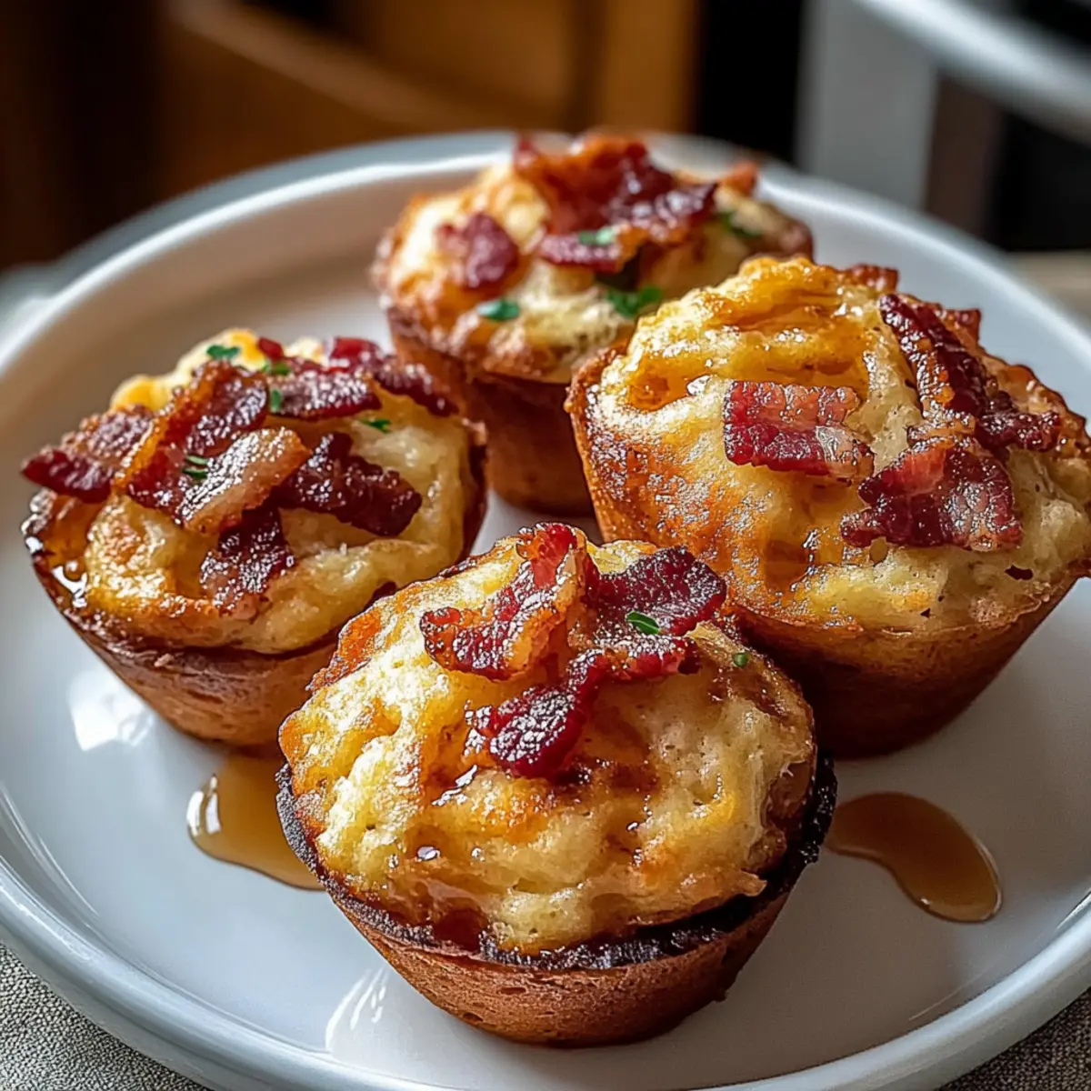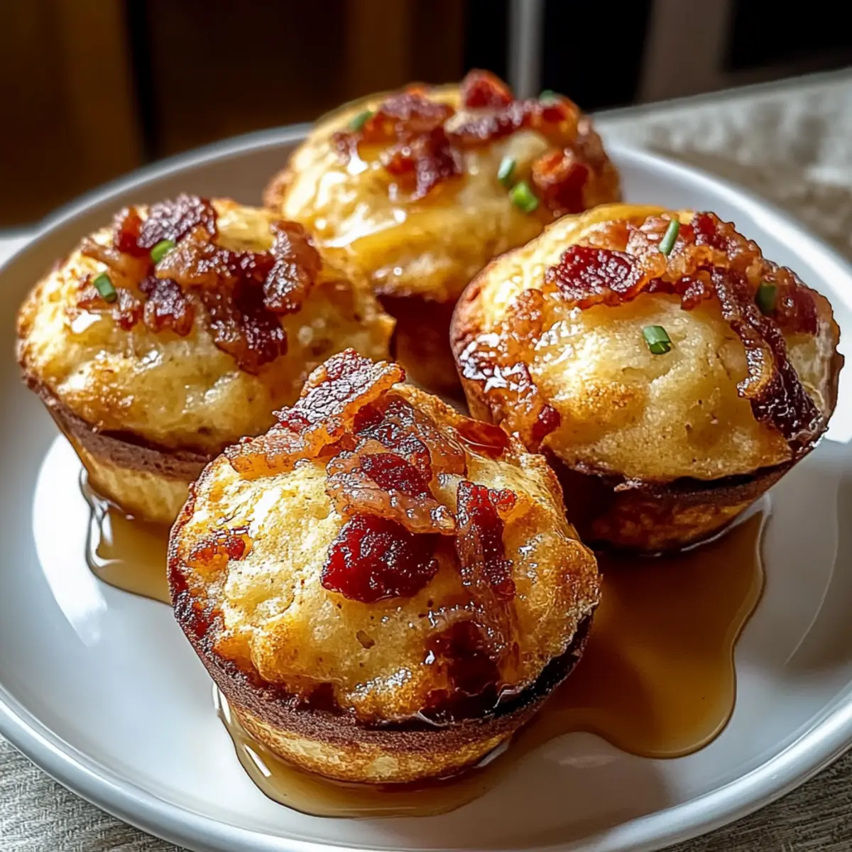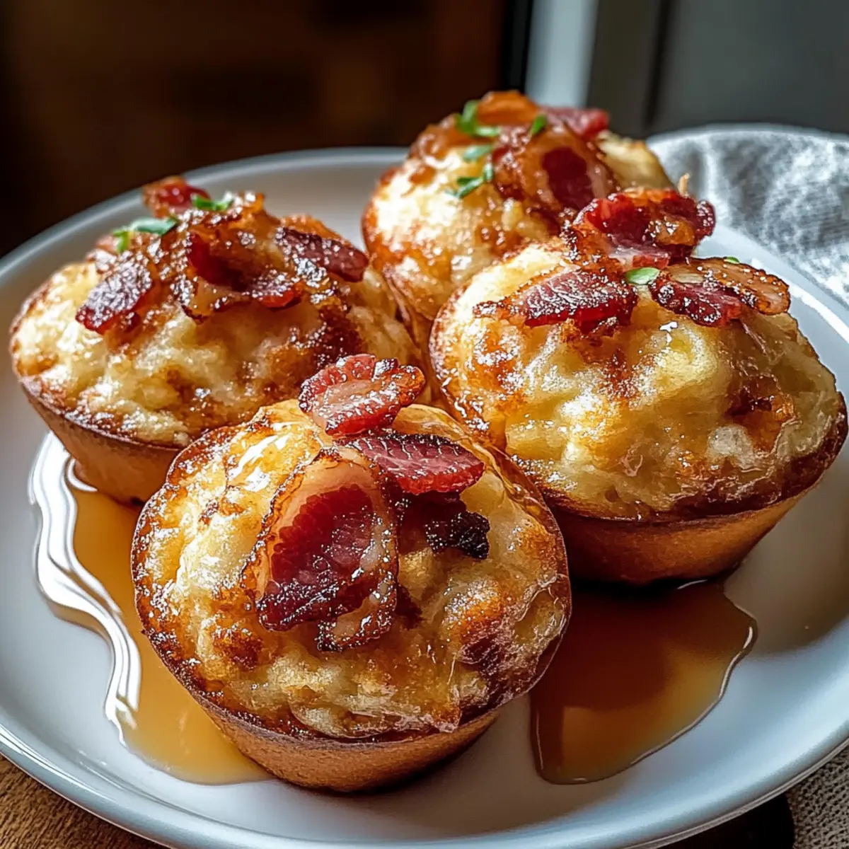 Jump to Recipe Print RecipeIn the midst of a busy morning, I stumbled upon a little culinary revelation—Maple Bacon Pancake Muffins. Picture this: tender, fluffy muffins that elegantly combine the comforting essence of pancakes with the irresistible crunch of crispy bacon. These delightful morsels not only cater to those hectic weekdays with their easy prep time but also introduce a unique sweet-and-savory twist to breakfast. Crafted with love, they’re perfect for those brunch gatherings or a grab-and-go snack that’s far from your ordinary fast food. Are you ready to awaken your taste buds and elevate your breakfast game with this scrumptious recipe? Why Choose Maple Bacon Pancake Muffins? Convenience: These muffins make breakfast effortless! They’re perfect for busy mornings or brunches, providing a delightful meal ready in just 30 minutes. Sweet and Savory Bliss: Experience the delightful harmony of sweet maple syrup with the savory crunch of bacon in every bite. Crowd-Pleasing Flavor: Ideal for family gatherings or brunch parties, these muffins are sure to impress guests and satisfy everyone’s cravings. Versatility: Pair them with scrambled eggs or Cinnamon Roll Muffins for variety, or enjoy them on their own for a grab-and-go treat. Easy to Make: With simple ingredients and straightforward steps, even beginner bakers can whip these up with confidence! Don’t forget to check out our flavorful Cheese Zucchini Muffins for another quick breakfast option. Leftover Friendly: Store extras for later, making these muffins not only delicious but practical! Maple Bacon Pancake Muffin Ingredients For the Muffins All-Purpose Flour – Provides the structural foundation for the muffins. Granulated Sugar – Adds sweetness and helps achieve golden tops. Baking Powder – Acts as the primary leavening agent for a light texture. Baking Soda – Enhances lift while neutralizing acidity. Salt – Balances sweetness and enhances flavor. Large Egg – Binds ingredients and adds richness. Buttermilk – Ensures tender texture and contributes acidity for flavor. Melted Butter – Infuses a rich flavor and moisture. Vanilla Extract – Adds aromatic sweetness that complements the bacon. Bacon (cooked and crumbled) – Provides smoky saltiness and crunch. Pure Maple Syrup – Sweetens the batter and adds authentic maple flavor. Cooking Spray/Muffin Liners – Ensures easy release from the muffin tin. Step‑by‑Step Instructions for Maple Bacon Pancake Muffins Step 1: Preheat the Oven Begin by preheating your oven to 350°F (175°C). While the oven warms up, gather your muffin tin and line it with muffin liners or spray it with cooking spray for easy removal. This step sets the stage for your Maple Bacon Pancake Muffins to bake evenly and come out perfectly toasted. Step 2: Mix Dry Ingredients In a medium mixing bowl, whisk together the all-purpose flour, granulated sugar, baking powder, baking soda, and salt. This combination creates a balanced base for your muffins and ensures they rise beautifully. Mix until the dry ingredients are well blended, and set the bowl aside while you prepare the wet ingredients. Step 3: Combine Wet Ingredients In another bowl, crack the large egg and whisk it lightly. Then, add the buttermilk, melted butter, and vanilla extract, stirring until fully combined. This mixture adds richness and moisture to your Maple Bacon Pancake Muffins, creating a luscious batter that enhances the flavors. Step 4: Merge Wet and Dry Ingredients Carefully pour the wet ingredients into the bowl with the dry mixture. Gently stir until just combined, being cautious not to overmix; a few lumps are perfectly fine. This ensures your muffins remain light and fluffy, so don’t fret if the batter looks a bit rustic at this point. Step 5: Add Bacon and Maple Syrup Next, gently fold in the crumbled bacon along with the pure maple syrup. This step infuses each muffin with a delightful sweet-and-savory essence that makes the Maple Bacon Pancake Muffins truly special. Make sure the bacon is evenly distributed throughout the batter for a burst of flavor in every bite. Step 6: Fill the Muffin Cups Using a spoon or a small ice cream scoop, fill each muffin cup about two-thirds full with batter. This will give your muffins room to rise while baking, resulting in beautifully dome-shaped treats. Take care not to overfill, as this can lead to messy overflow during baking. Step 7: Bake the Muffins Place the muffin tin in the preheated oven and bake for 15 to 18 minutes. Keep an eye on them, and when the tops are golden brown and a toothpick inserted into the center comes out clean, they’re done! Your kitchen will be filled with the enticing aroma of maple and bacon as they bake. Step 8: Cool Before Serving Once baked, remove the muffin tin from the oven and let the muffins cool in the tin for about 5 minutes. This allows them to set up nicely and makes it easier to transfer them without breaking apart. After a brief cooling, gently pop them out and transfer to a wire rack to cool completely. Step 9: Drizzle and Serve To serve your Maple Bacon Pancake Muffins, drizzle with extra maple syrup for that ideal finishing touch. These delightful treats are now ready to be enjoyed warm, either as a quick breakfast or a sweet snack. Each bite offers a delicious blend of flavors and textures, perfect for any occasion! Expert Tips for Maple Bacon Pancake Muffins Don’t Overmix: Gently combine wet and dry ingredients to avoid dense muffins; a few lumps in the batter is perfectly acceptable. Fresh Ingredients: Use fresh baking powder and baking soda; old leavening agents can lead to flat muffins. Bacon Choices: Experiment with different types of bacon for varied flavors; turkey bacon provides a lighter twist while maintaining the savory element. Add-Ins: Feel free to fold in half a cup of blueberries or chocolate chips for an exciting twist on the original Maple Bacon Pancake Muffins. Storage Tips: Keep muffins in an 
