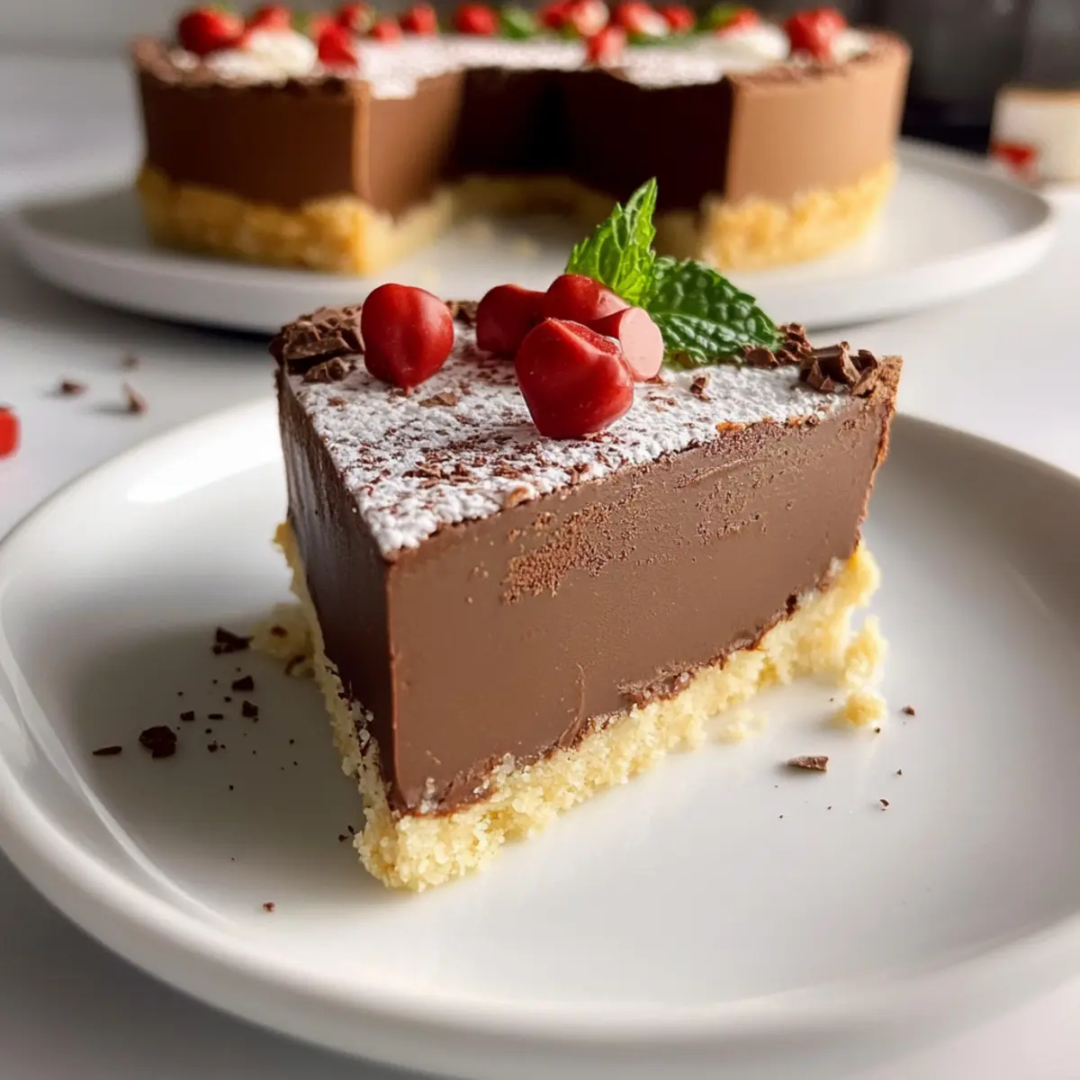 5. Once set, slice into wedges and serve chilled, garnished with mint leaves or cocoa powder if desired.
