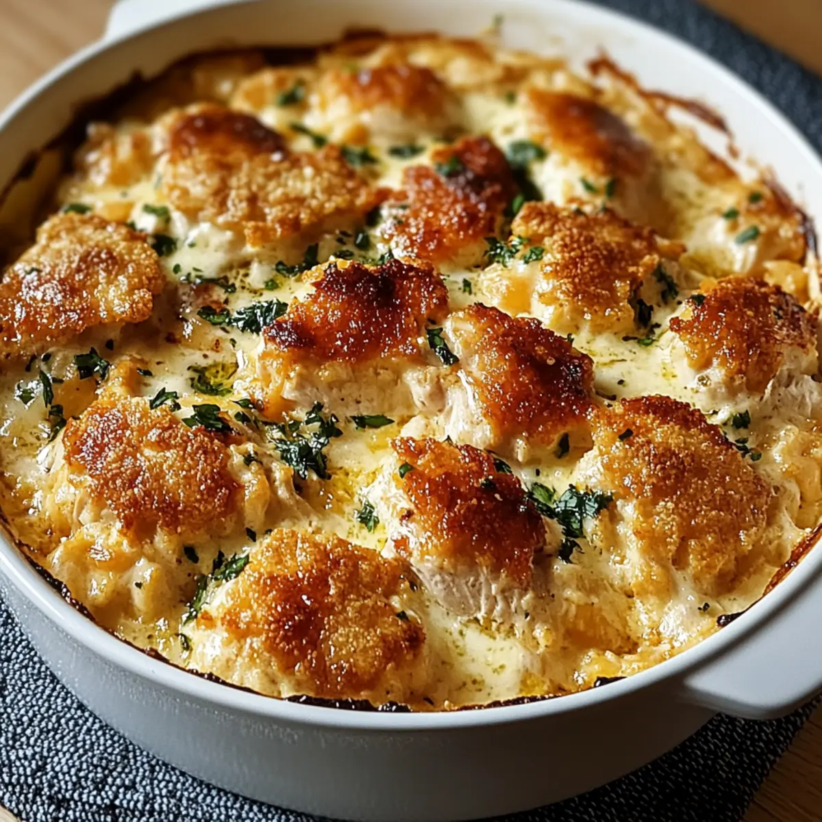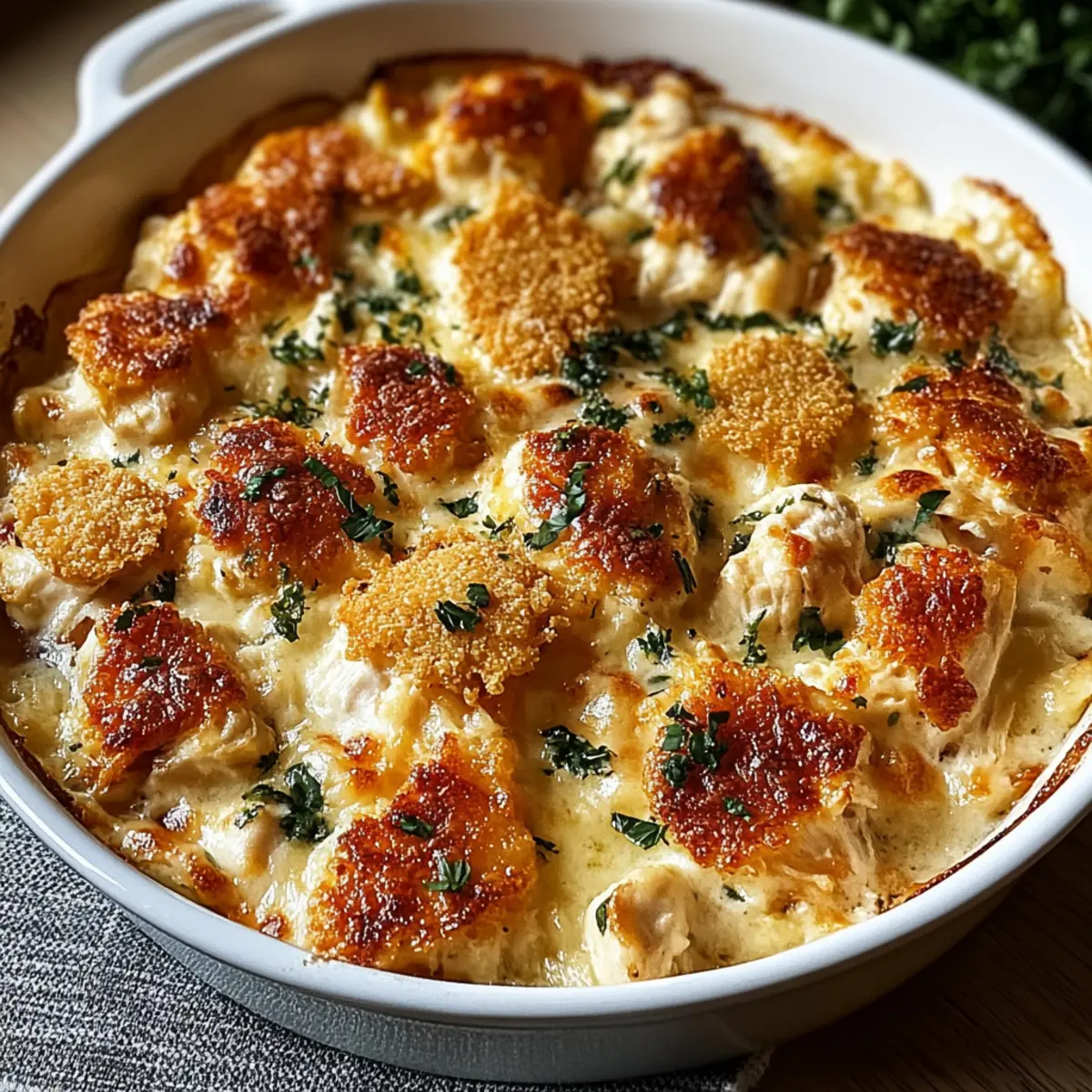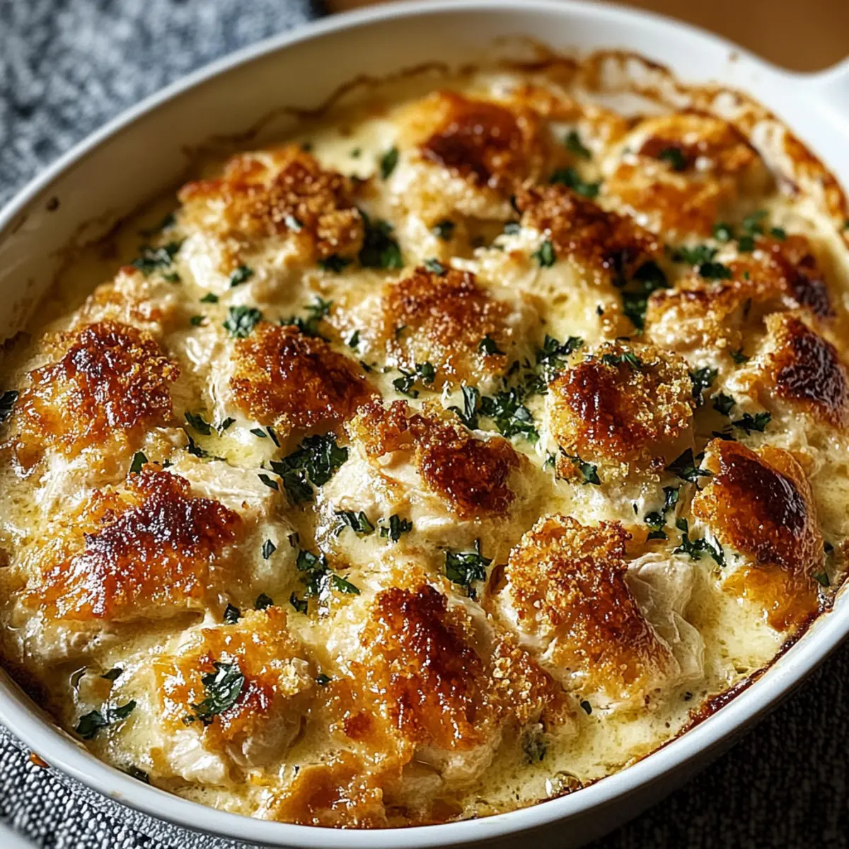 Jump to Recipe Print RecipeAs I rummaged through my recipe box, a wave of nostalgia washed over me with the memory of cozy family dinners. Enter the Neiman Marcus Chicken Casserole—my ultimate comfort food that effortlessly combines a creamy filling with a satisfying crunchy top. Great for gatherings or a quiet family meal, this easy casserole recipe takes just a few simple ingredients to create a dish that’s both budget-friendly and endlessly customizable. Whether you’re using leftover rotisserie chicken or mixing in some of your favorite veggies, this casserole is sure to please even the pickiest eaters. Are you ready to whip up a dish that’s as heartwarming as it is delicious? Let’s dive into this crowd-pleaser that’s just waiting to become a staple in your kitchen! Why Is This Casserole So Irresistible? Comfort Food Bliss: This Neiman Marcus Chicken Casserole is the ultimate comfort food, perfect for any meal. Easy to Make: With just a handful of ingredients, this budget-friendly dish is simple enough for even novice cooks. Crowd-Pleasing Delight: Serve it at your next gathering and watch as it disappears—everyone loves its creamy filling and crunchy topping! Customizable Options: Swap ingredients based on what you have on hand: rotisserie chicken or veggies like peas and mushrooms work beautifully. Make-Ahead Friendly: Prepare it in advance, refrigerate, and bake later for a stress-free dinner experience. Pair it with a fresh green salad or some garlic bread to elevate the meal even more! Neiman Marcus Chicken Casserole Ingredients For the Filling Chicken Breast – The main protein source; substitute with rotisserie chicken or turkey for quicker prep. Cream Cheese – Creates a velvety texture and rich flavor; use plain Greek yogurt for a tangy alternative if desired. Sour Cream – Adds tanginess and creaminess to the filling; additional sour cream or yogurt can be used for similar results. Cheddar Cheese – Provides flavor and a melty texture; feel free to swap with Colby Jack or Monterey Jack for different taste profiles. Onion – Enhances flavor; can replace with minced onion or onion powder for convenience. For the Topping Ritz Crackers – Offers that buttery and crunchy topping that’s irresistible; try panko breadcrumbs or crushed cornflakes for an alternative crunch. Mayonnaise – Helps bind ingredients and adds creaminess; additional sour cream or Greek yogurt can be used instead. The Neiman Marcus Chicken Casserole is sure to become an easy go-to in your kitchen, with its creamy filling and crunchy top that brings comfort in every bite! Step‑by‑Step Instructions for Neiman Marcus Chicken Casserole Step 1: Preheat the Oven Begin by preheating your oven to 350°F (175°C). This ensures that your Neiman Marcus Chicken Casserole bakes evenly and achieves that perfect bubbly goodness. While the oven warms up, gather your ingredients and prep your workspace. Step 2: Combine Filling In a large mixing bowl, blend together the cooked chicken, cream cheese, sour cream, and mayonnaise until smooth and creamy. This mixture forms the delicious filling of your casserole. To this, fold in the shredded cheddar cheese for an added layer of flavor. Step 3: Prepare Topping Next, take a sleeve of Ritz crackers and crush them into fine crumbs. In a separate bowl, combine the cracker crumbs with melted butter until well-coated. This buttery mixture will create a delightful crunch on top of your Neiman Marcus Chicken Casserole as it bakes. Step 4: Layer Ingredients Now, take a 9×13 inch casserole dish and evenly spread the chicken mixture across the bottom. Make sure to smooth it out with a spatula for an even layer. Once the chicken mixture is spread out, generously sprinkle the buttery cracker topping over the surface. Step 5: Bake Place the assembled casserole into your preheated oven and bake for approximately 30 minutes. You’ll know it’s ready when the edges are golden brown and the filling is bubbling up through the cracks. This visual cue is a sign of deliciousness! Step 6: Cool and Serve Once baked, carefully remove the casserole from the oven and let it sit for about 5 to 10 minutes. This cooling period allows the casserole to set perfectly, making it easier to serve. Slice into portions and enjoy the creamy, crunchy delight of your Neiman Marcus Chicken Casserole! What to Serve with Neiman Marcus Chicken Casserole Elevate your dinner table with vibrant sides that complement the creamy, crunchy delight of this casserole. Garlic Bread: The perfect vessel for sopping up that creamy filling, garlic bread adds a comforting, buttery richness to every bite. Fresh Green Salad: A crisp, refreshing salad with mixed greens, cherry tomatoes, and a light vinaigrette balances the richness of the casserole, offering a burst of freshness in each mouthful. Steamed Vegetables: Broccoli or green beans provide color and nutrition, harmonizing beautifully with the comforting flavors and textures of the chicken casserole. Coleslaw: Tangy coleslaw adds a crunchy and slightly sweet contrast, enhancing the overall eating experience with its refreshing bite. Mashed Potatoes: Creamy mashed potatoes or even a loaded baked potato bring an extra layer of comfort that pairs delightfully with the casserole’s savory taste. Cranberry Sauce: A small scoop of cranberry sauce or apple chutney can complement the dish’s richness with a hint of sweet tartness, making every forkful a delightful surprise. Neiman Marcus Chicken Casserole Variations Feel free to get creative with these variations that will personalize your Neiman Marcus Chicken Casserole experience. Your kitchen adventure is just a recipe away! Turkey Substitute: Swap the chicken for cooked and shredded turkey to create a delicious post-holiday dish. It’s a great way to utilize those leftover Thanksgiving turkey slices! Veggie Boost: Enhance the dish with sautéed mushrooms, bell peppers, or peas for additional nutrition and co