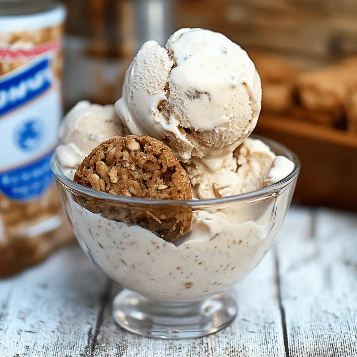 Jump to Recipe Print RecipeAs the sun blazes down on a warm afternoon, there’s nothing quite like the refreshing allure of homemade ice cream. This No-Churn Oatmeal Cream Pie Ice Cream brings back fond memories of childhood treats while offering a delightful twist that’s perfect for adults too. Using the beloved Little Debbie Oatmeal Creme Pies, this indulgent dessert requires minimal effort and time, making it the ultimate no-fuss treat for those who crave something sweet without the hassle of an ice cream machine. Imagine serving this creamy creation at your next gathering, impressing friends and family with both its nostalgic flavors and effortless charm. Intrigued to find out how to whip up this freezer-friendly delight? Let’s dive into this wonderful recipe together! Why is No-Churn Ice Cream a Game-Changer? Simplicity at its finest: No ice cream machine is required! A few simple ingredients come together quickly, making it accessible for everyone, even kitchen novices. Nostalgic Treat: With Little Debbie Oatmeal Creme Pies as the star ingredient, this recipe will remind you of childhood indulgences. Versatile Delights: Feel free to swap in your favorite cookies or flavor extracts to personalize this creamy treat. Crowd-Pleasing: Perfect for parties or gatherings, your guests won’t believe how easy it is to create such a delightful dessert—like a sweet hug in a bowl! For another delicious option, check out this creamy Garlic Parmesan Pasta. Make Ahead: Prepare it in advance, allowing you to enjoy the company of friends while your dessert is ready to serve. With this recipe, you’ll impress everyone with minimal effort! Oatmeal Cream Pie Ice Cream Ingredients • Get ready to create a nostalgic treat! For the Ice Cream Base Heavy Cream – Provides a rich and creamy texture; ensure it’s well-chilled for best results. Sweetened Condensed Milk – Essential for creaminess and sweetness; don’t skip this key ingredient! Milk – Helps balance sweetness and hydrates the mixture; feel free to use oat milk for a dairy-free option. Molasses – Adds depth of flavor, enhancing that cookie taste; a unique twist to the typical sweetness. Vanilla Extract – Introduces delightful aroma and flavor; opt for pure vanilla for the best impact. For the Cookie Mix-Ins Little Debbie Oatmeal Creme Pies – The star ingredient; adds iconic flavor and texture that you’ll love! Feel free to customize your ice cream creation with these ingredients, and get ready to enjoy a delightful scoop of homemade nostalgia! Step‑by‑Step Instructions for Oatmeal Cream Pie Ice Cream Step 1: Whip the Cream In a large mixing bowl, pour in the well-chilled heavy cream. Using an electric mixer, whip the cream on medium speed until soft peaks form, which should take about 3-5 minutes. You’ll know it’s ready when the cream holds its shape and has a silky texture, perfect for creating the creamy base for your Oatmeal Cream Pie Ice Cream. Step 2: Combine the Ingredients Carefully add the sweetened condensed milk, milk, vanilla extract, and molasses to the whipped cream. Gently fold the ingredients together using a spatula until well combined, ensuring you maintain that lightness from the whipped cream. This mixture will create a rich, sweet foundation for your indulgent ice cream that harmonizes beautifully. Step 3: Add the Cookies Take the Little Debbie Oatmeal Creme Pies and chop them into small pieces—this will help distribute their delightful flavor throughout the ice cream. Gently fold the cookie pieces into the ice cream base, making sure they’re evenly mixed. Each scoop of your Oatmeal Cream Pie Ice Cream will be filled with delightful hints of these nostalgic treats. Step 4: Freeze the Mixture Pour the ice cream mixture into a 1-quart bread pan, smoothing the top with a spatula. For extra texture, sprinkle additional cookie pieces on top. Place the pan in the freezer, allowing it to freeze for 4-6 hours, or overnight for a firmer consistency. Once frozen, it will transform into a creamy, delightful dessert perfectly reminiscent of childhood treats. Expert Tips for Oatmeal Cream Pie Ice Cream Chill Everything: Ensure all ingredients, especially the heavy cream, are chilled before whipping. This helps achieve the perfect creamy texture in your oatmeal cream pie ice cream. Don’t Over-Whip: Stop whipping the cream as soon as soft peaks form; over-whipping can lead to a grainy texture instead of that velvety smoothness you desire. Use Metal Containers: For the best freezing results, pour the mixture into a metal container. It conducts cold more efficiently and helps your ice cream freeze faster. Scoop Easily: Let the ice cream sit at room temperature for a few minutes before scooping. This makes serving much easier and ensures you enjoy every creamy bite! Experiment with Flavors: Feel free to swap in different cookies or extracts to create your unique twist on this classic oatmeal cream pie ice cream. Oatmeal Cream Pie Ice Cream Variations Feel free to explore these delightful twists and turns that will elevate your ice cream experience to new heights! Chocolate Twist: Substitute molasses with chocolate syrup for a rich, chocolatey flavor that blends beautifully with the cookie pieces. Imagine each bite being a sweet hug filled with nostalgia and chocolate goodness! Flavor Extracts: Experiment with almond or maple extract instead of vanilla for an intriguing flavor profile. Just a tablespoon of almond can transport your taste buds to a cozy, warm kitchen. Oat Milk Swap: Use oat milk instead of regular milk for a dairy-free version that doesn’t compromise on taste. It adds a subtle nutty flavor while still keeping your ice cream creamy and delightful. Different Cookies: Swap out the Little Debbie Oatmeal Creme Pies for your favorite cookies like snickerdoodles or chocolate chip. Each cookie brings a unique texture and flavor that makes ice cream creation feel endless. Nutty Crunch: Toss in some 