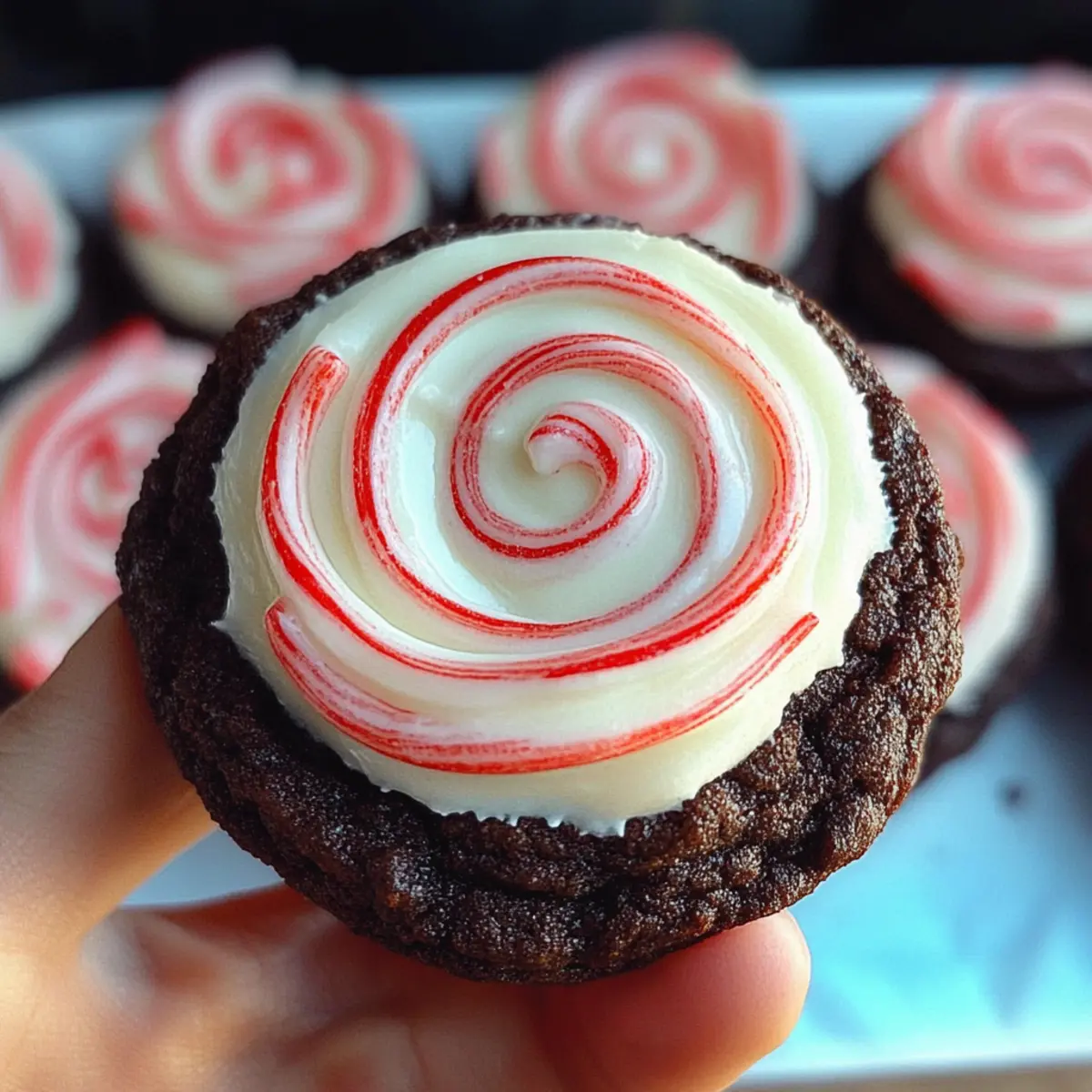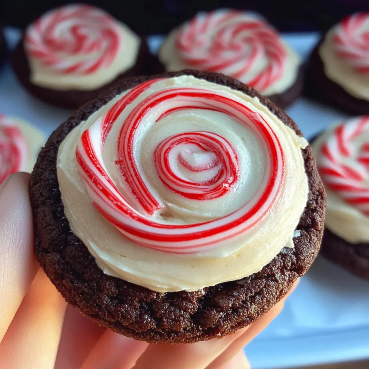 Jump to Recipe Print RecipeAmidst the flurry of holiday preparations, there’s nothing quite like the comforting scent of fresh-baked cookies wafting through the kitchen. These Peppermint Chocolate Cookies with Vanilla Buttercream Topping are an inviting nod to the festive season, perfectly marrying the richness of chocolate with the refreshing zing of peppermint. Not only are these cookies a delightful treat, but they also offer a quick prep time, making them the ideal option for last-minute gatherings or cozy nights in. Imagine serving these chewy confections adorned with a swirl of creamy buttercream—your friends and family are sure to be impressed! So, are you curious about how to whip up this festive delight? Let’s dive into the recipe! Why are Peppermint Chocolate Cookies a must-try? Festive Flavor Fusion: These cookies combine rich chocolate with refreshing peppermint, making each bite a perfect holiday treat. Easy to Make: With straightforward steps and common ingredients, you can whip these up in no time. Even novice bakers will shine! Impressive Presentation: Topping them with creamy vanilla buttercream not only enhances flavor but creates a stunning look that draws everyone in. Versatile Varieties: Feel free to add your twist—consider crushed candy canes or white chocolate chips for delightful variations! Crowd-Pleasing Treat: Perfect for festive gatherings, these cookies will be a hit at parties or cozy family nights. Pair them with a warm cup of Pink Hot Chocolate for an extra touch of holiday cheer! Peppermint Chocolate Cookies Ingredients For the Cookies • All-purpose flour – Provides structure; substitute with gluten-free flour for a gluten-free version. • Unsweetened cocoa powder – Adds a deep chocolate flavor; use dark cocoa for a richer taste. • Baking soda and baking powder – Leavening agents for texture; ensure they’re fresh for best results. • Salt – Enhances flavor; use kosher salt for a subtle contrast. • Unsalted butter (3/4 cup, room temperature) – Binds the cookie dough and adds richness; ensure it’s softened for easy mixing. • Light brown sugar (1 cup) – Provides moisture and a slight caramel flavor; brown sugar can be replaced with white sugar if unavailable. • Granulated sugar (3 Tbsp) – Sweetness and crisping; could be omitted for a less sweet cookie. • Egg yolks (2, room temperature) – Adds richness and moisture; whole eggs can be used, but yolks create a softer texture. • Peppermint extract (1 1/2 tsp) – Provides minty flavor; use finely adjusted amounts to avoid overpowering the cookies. • Vanilla extract (1 1/2 tsp) – Balances flavors; can substitute with almond extract for a different profile. For the Frosting • Unsalted butter (1/2 cup, room temperature) – Creates a fluffy buttercream; must be softened for easy whipping. • Confectioner’s sugar (2 1/2 cups) – Sweetens and thickens the frosting; can substitute with powdered sugar alternatives. • Heavy whipping cream (3-5 Tbsp) – Adjusts frosting consistency; use milk in a pinch. • Red food dye (optional) – Enhances visual appeal through color; use gel food coloring for optimal results. These Peppermint Chocolate Cookies are not just a delightful treat but a festive centerpiece that’s bound to leave your loved ones craving more! Step‑by‑Step Instructions for Peppermint Chocolate Cookies Step 1: Preheat and Prepare Begin by preheating your oven to 350°F (175°C). While the oven warms up, line your baking sheets with parchment paper for easy cookie removal later. This simple step ensures your Peppermint Chocolate Cookies bake evenly and don’t stick, making your cleanup a breeze! Step 2: Mix Dry Ingredients In a medium bowl, whisk together the all-purpose flour, unsweetened cocoa powder, baking soda, baking powder, and salt. This mixture creates a delightful foundation for your cookies. Be sure to combine well until the dry ingredients are thoroughly blended, which helps to prevent any clumps in your cookie batter. Step 3: Cream Butter and Sugars In a separate large mixing bowl, beat the unsalted butter along with brown sugar and granulated sugar. Mix these ingredients until they become light and fluffy, which usually takes about 2-3 minutes. This step adds the rich, creamy texture that your Peppermint Chocolate Cookies crave! Step 4: Incorporate Wet Ingredients Next, add the egg yolks, peppermint extract, and vanilla extract to the sugar mixture. Blend them together until fully combined and smooth. This mixture should have a lovely creamy consistency, filling your kitchen with a tantalizing aroma that hints at the peppermint delight to come. Step 5: Combine Dry and Wet Mixtures Gradually add the dry ingredients to the wet mixture, folding gently until everything is just combined. Be careful not to over-mix, as this could lead to tougher cookies. The final dough should be soft and slightly sticky, with a rich chocolate hue that promises indulgence. Step 6: Shape the Cookies Using a tablespoon or a cookie scoop, drop dollops of dough onto your prepared baking sheets, spacing them about 2 inches apart to allow for spreading. With this method, your Peppermint Chocolate Cookies will bake evenly and maintain their shape during the process. Step 7: Bake and Cool Place the cookie-laden baking sheets in the oven and bake for 10-12 minutes. The cookies are done when the edges are set but the middle is still soft and slightly under-baked. After baking, let them cool on the sheets for about 5 minutes before transferring them to wire racks to cool completely. Step 8: Make the Buttercream Frosting While the cookies are cooling, beat the softened butter in a mixing bowl until creamy. Gradually add the confectioner’s sugar followed by the heavy cream, mixing until you achieve a smooth and fluffy frosting. Adjust the consistency with more cream as needed for your desired texture. Step 9: Decorate with Frosting Once the Peppermint Chocolate Cook