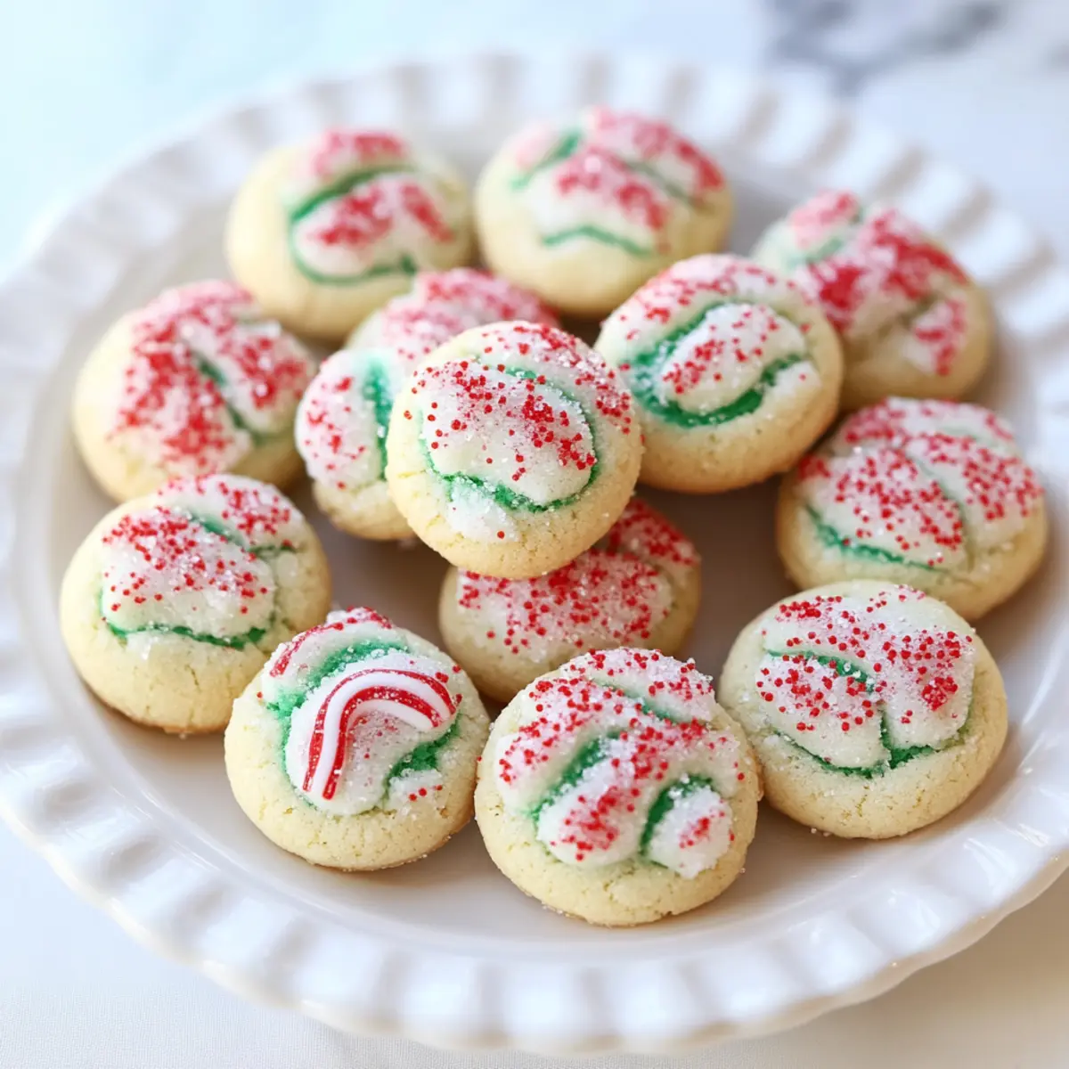 Jump to Recipe Print RecipeAs I pulled the first batch of Peppermint Kiss Cookies from the oven, the inviting aroma of mint and sweetness enveloped my kitchen, instantly transporting me to cozy holiday gatherings. These festive treats elevate the classic sugar cookie, wrapping a creamy peppermint surprise in a soft and chewy embrace. What I adore most about this recipe is its quick prep time—a lifesaver during the bustling holiday season—and its crowd-pleasing charm, making it the perfect addition to your Christmas cookie tray. Dusted with vibrant red and green sugars, these cookies are as delightful to look at as they are to savor. Are you ready to bring some holiday magic into your home with these deliciously festive cookies? Why Are Peppermint Kiss Cookies Special? Unforgettable Festive Flavor: The combination of peppermint and chocolate creates a holiday explosion for your taste buds. Quick and Easy: These cookies come together in no time, perfect for busy bakers during the season. Visually Stunning: The vibrant red and green sugar adds a cheerful touch to your cookie tray, making them visually appealing for any gathering. Versatile Delight: Feel free to swap out the peppermint kisses; chocolate kisses or even crushed candy canes work beautifully! Crowd-Pleasing Treat: Ideal for cookie exchanges or festive gatherings, these cookies are guaranteed to impress friends and family. Check out our Cosmic Brownie Cookies for another sweet treat that everyone will love! Peppermint Kiss Cookie Ingredients • Get ready to create magic with these irresistible peppermint kiss cookies! For the Cookies All-Purpose Flour – Provides structure; substitute with gluten-free flour if needed. Baking Powder – Helps the cookies rise for that fluffy texture. Salt – Enhances the flavor; adjust if you’re using salted butter. Unsalted Butter – Adds richness; margarine can work as a substitute. Sugar – Sweetens the dough and keeps some for rolling; consider coconut sugar for a healthier option. Eggs – Binds the dough and assists in rising; flax eggs can be used for a vegan twist. Vanilla Extract – Infuses warmth and depth; almond extract is a nice alternative. For the Garnish Coarse Green Sugar – Adds festive color; colored sprinkles can replace it if desired. Coarse Red Sugar – Provides visual appeal, and you can use another color alternative. Peppermint Kisses – The key to that peppermint kiss cookie magic; swap with chocolate kisses for variety! Step‑by‑Step Instructions for Peppermint Kiss Cookies Step 1: Preheat the Oven Begin your peppermint kiss cookie adventure by preheating your oven to 350°F (175°C). This ensures an even baking temperature, resulting in perfectly chewy cookies. While the oven is heating, gather your baking sheets and line them with parchment paper for easy cleanup and to prevent sticking. Step 2: Prepare Dry Ingredients In a medium mixing bowl, whisk together 2 cups of all-purpose flour, 1 teaspoon of baking powder, and a pinch of salt until well combined. This step not only distributes the baking powder evenly but also aerates the mixture, helping to create the ideal soft texture. Set this bowl aside while you move on to creaming the butter. Step 3: Cream the Butter and Sugar In a large bowl, use an electric mixer to cream together ½ cup of softened unsalted butter and ¾ cup of granulated sugar. Beat this mixture on medium speed for about 2 to 3 minutes until it turns light and fluffy, creating a wonderful base for your peppermint kiss cookies. The fluffy texture is key to ensuring your cookies rise nicely. Step 4: Add Eggs and Vanilla Once your butter and sugar are beautifully blended, add in 1 large egg followed by 1 teaspoon of vanilla extract. Beat on low speed until fully combined. The addition of the egg binds the dough while the vanilla adds a lovely aroma, creating that comforting holiday essence as you prepare this special batch. Step 5: Incorporate Dry Ingredients Gradually add your flour mixture to the creamy butter mixture, stirring slowly until just combined. You’re aiming for a soft dough here, so be careful not to overmix. If you notice a bit of flour clinging to the sides, use a spatula to gently fold it in. Your peppermint kiss cookies dough is now ready! Step 6: Divide and Color the Dough Carefully divide the dough in half and place one half in a separate bowl. Add green coarse sugar to one half and red coarse sugar to the other, mixing gently until the colors are well incorporated. This festive touch not only signals the peppermint surprise inside but also makes your cookies visually striking! Step 7: Shape the Cookies Using your hands, roll the colored dough into 1-inch balls, ensuring each one is uniform for even baking. Roll each ball in its corresponding colored sugar until fully coated. Place them on your prepared baking sheets, leaving about 2 inches of space between each cookie to allow for spreading while baking. Step 8: Flatten and Bake Before placing your cookie sheets in the oven, slightly flatten each dough ball with the palm of your hand. Bake the cookies for 8 to 10 minutes, until the edges are set and the tops look soft but not shiny. Keep an eye on them as they bake, as you want that perfect balance of chewy and lightly crisp edges. Step 9: Add the Peppermint Kisses Remove the baking sheets from the oven and immediately press a peppermint kiss into the center of each cookie, gently but firmly. This step creates that delectable melting center everyone will adore. Allow the cookies to cool on the baking sheets for a few minutes before transferring them to a wire rack to cool completely. Expert Tips for Peppermint Kiss Cookies Chill the Dough: If your dough feels too sticky, refrigerate it for about 30 minutes. This step makes it easier to handle and roll your peppermint kiss cookies. Uniform Size: Roll each dough ball into a uniform size to ensure even baking. This helps achieve that perfect chewy texture throughout