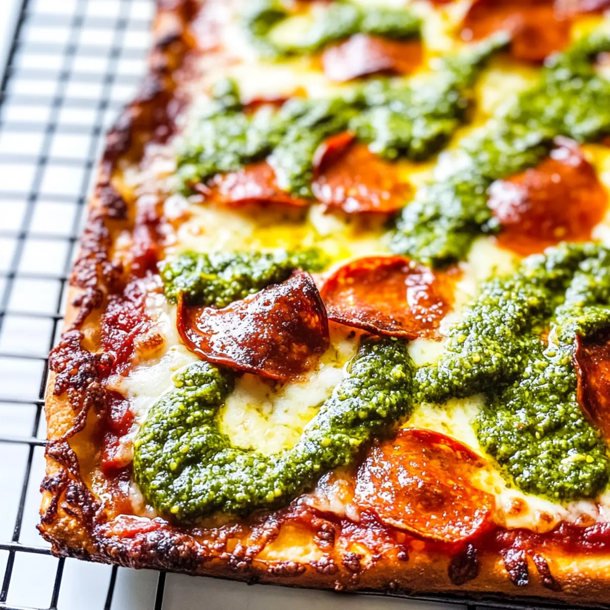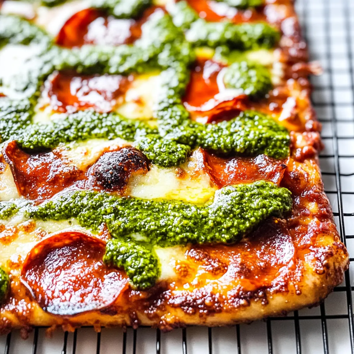 • Pepperoni Slices – A traditional favorite that pairs wonderfully with the pesto, adding a savory kick!