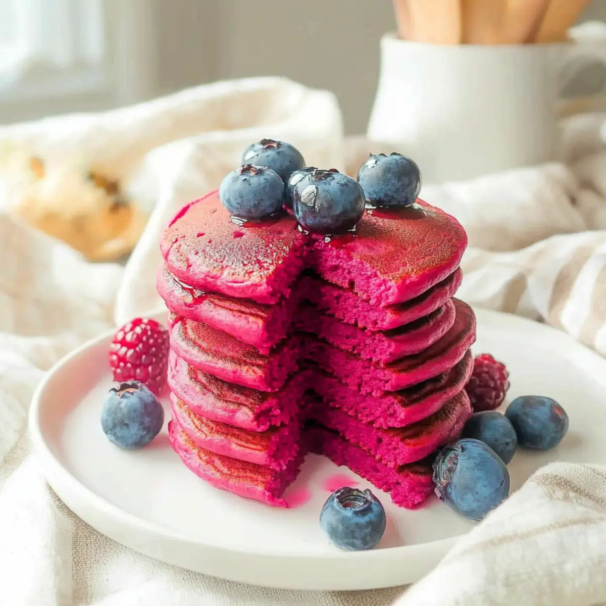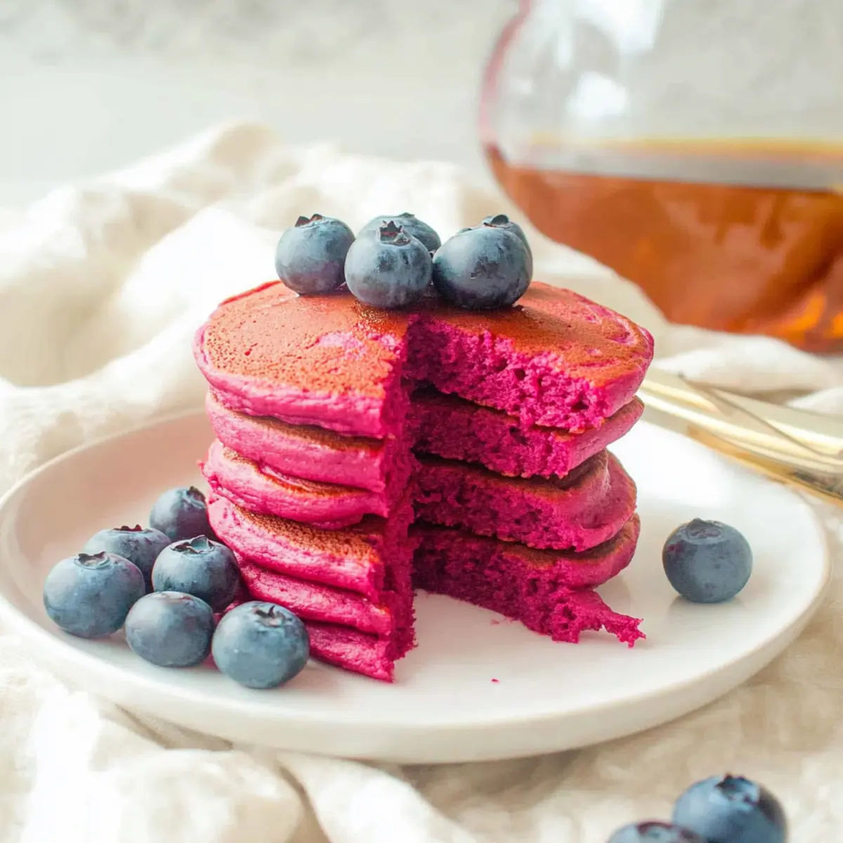 Vibrant Color: These pancakes deliver a stunning pink hue that makes breakfast exciting for everyone, especially kids.