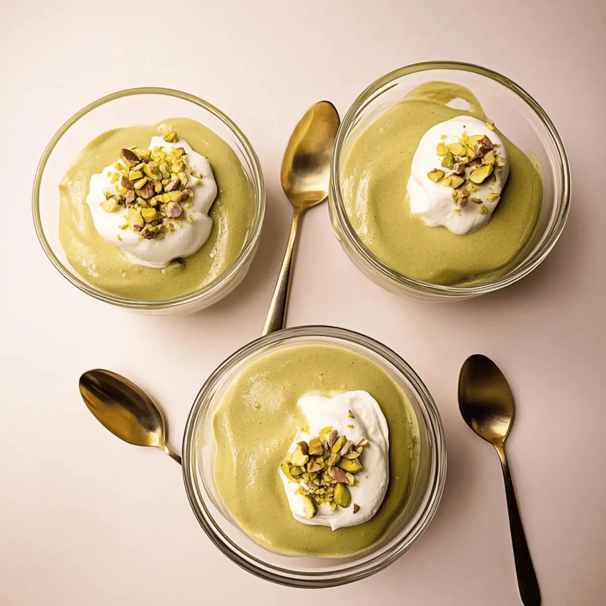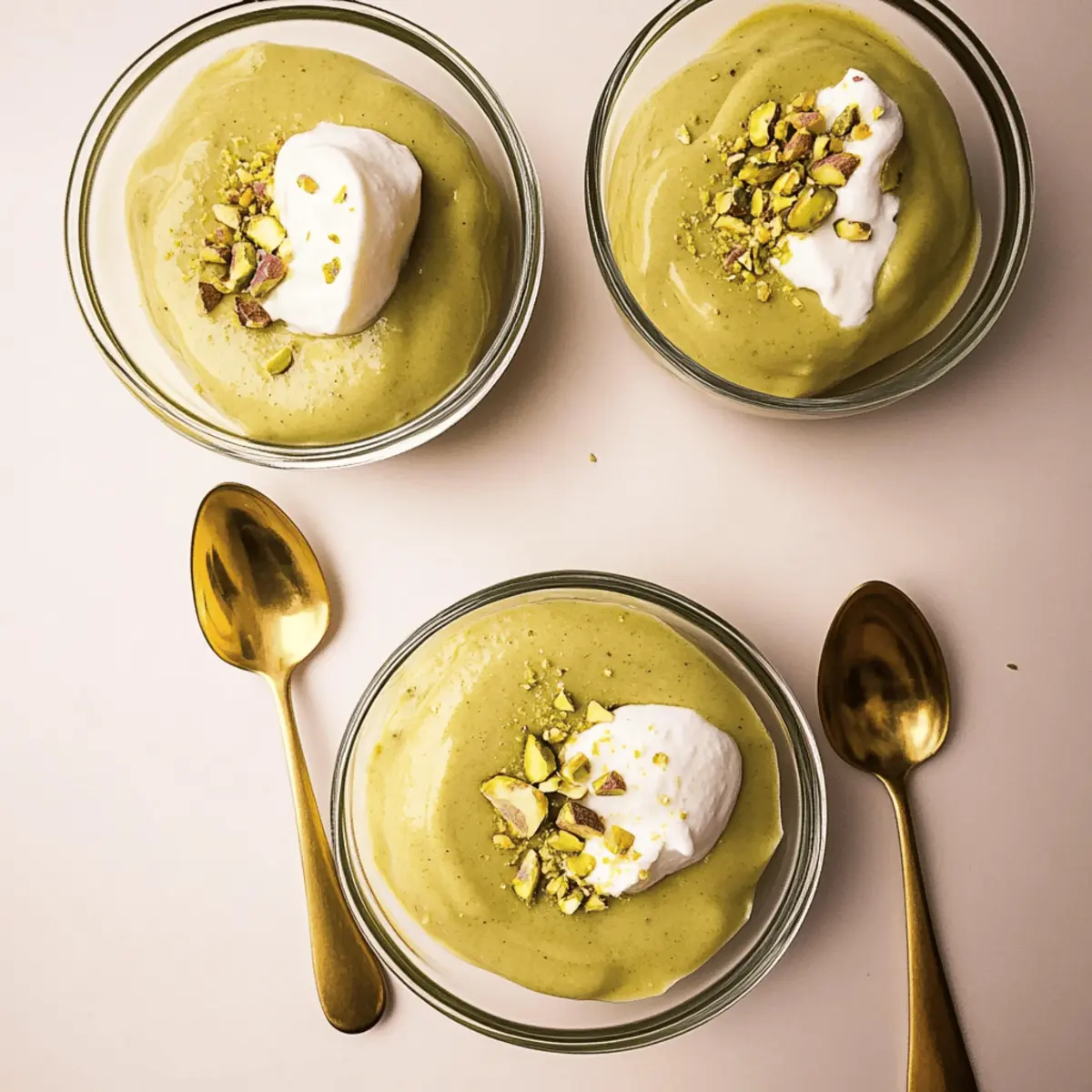 Jump to Recipe Print RecipeAs I stood in the kitchen, the aromatic scent of raw pistachios wafted through the air, transporting me to Mediterranean markets bustling with vibrant flavors and textures. This inspired my quest to create a delightful homemade pistachio pudding that sings with nostalgia and elegance. Unlike store-bought options laden with artificial flavors, my recipe allows you to savor the pure, nutty essence of pistachios in every creamy, dreamy bite. With minimal prep time and a delightful texture that charms both kids and adults alike, it makes for the perfect comfort treat or sophisticated dessert. Whether enjoyed on its own or as the star of an impressive layered pudding pie, this homemade pistachio pudding is sure to win hearts. Are you ready to bring this nutty delight to your table? Why is Pistachio Pudding a Must-Try? Irresistible Creaminess: This homemade pistachio pudding brings a rich, velvety texture that store-bought versions can’t replicate. Easy to Make: With just a few simple ingredients, you can whip up this delightful treat in no time. Nostalgic Flavor: Each spoonful evokes memories of Mediterranean markets, filled with vibrant sights and flavors. Versatile Use: Enjoy it on its own or as a filling for layered desserts; it truly shines in any application. Crowd-Pleaser: Perfect for family gatherings or dinner parties, this recipe caters to both kids and adults, making everyone smile! Dive deeper into making delicious desserts with our creamy vanilla custard and elevate your dessert game! Pistachio Pudding Ingredients For the Pudding • Raw Pistachios – Offers a rich nutty flavor and creamy base; blend until smooth for a homemade touch, or use store-bought pistachio butter. • Sugar – Adds sweetness; feel free to adjust according to your taste preferences for the best pistachio pudding experience. • Cornstarch – Serves as a thickening agent; can be substituted with tapioca starch or arrowroot for similar results. • Eggs – Ensures a rich, custard-like texture; an essential component for perfect creaminess. • Milk – Forms the pudding base, giving it a luscious creaminess; whole milk works best, but nut milk can be a great dairy-free alternative. • Butter – Enhances richness; use unsalted for greater control over flavor balance. • Almond Extract – Elevates the pistachio taste; can be swapped with vanilla extract if you’re looking for a different flavor profile. Optional Toppings • Whipped Cream – Adds a light, airy finish that contrasts beautifully with the pudding’s richness. • Chopped Pistachios – Provides a nice crunch and visual appeal to your presentation. Indulge in this creamy pistachio pudding and make it the star of your dessert table! Step‑by‑Step Instructions for Homemade Pistachio Pudding Step 1: Make Pistachio Butter Begin by blending 1-2 cups of raw pistachios in a food processor. Allow the processor to run for about 10 minutes or until the pistachios transform into a smooth, creamy butter. You may need to scrape down the sides occasionally to ensure an even texture. Set the freshly made pistachio butter aside as it will be used shortly in your homemade pistachio pudding. Step 2: Mix Dry Ingredients In a medium saucepan, whisk together sugar and cornstarch until thoroughly combined. This step is crucial for even sweetness and thickness in your pudding, so ensure there are no lumps. Once combined, place the saucepan over medium heat to prepare for the next steps of creating your luscious pistachio pudding. Step 3: Combine Ingredients Add the eggs to the dry mixture, whisking until fully incorporated. Next, gently fold in the pistachio butter along with the milk. This mixture should be creamy and well-blended without any lumps. Make sure to use whole milk for a rich texture; combine all ingredients until the batter is smooth before proceeding to the next step. Step 4: Cook Mixture Heat the saucepan over medium heat, continuously whisking to prevent sticking or burning. After about 8-10 minutes, you will notice the mixture thickening significantly and bubbling gently. It’s important to whisk consistently during this time to achieve the perfect creamy consistency of your pistachio pudding. Step 5: Strain Pudding To ensure your homemade pistachio pudding is silky smooth, pass the mixture through a fine-mesh sieve into a large bowl. This will remove any lumps or chunks. Use a spatula to gently press the pudding through the sieve for maximum yield. The pudding should have a light green hue, reflecting its rich pistachio flavor. Step 6: Flavor Up Once strained, whisk in the butter and almond extract into the warm pudding. This final addition enriches the flavor profile and adds a velvety mouthfeel. Make sure both the butter and extract are fully integrated, creating a harmonious blend that enhances the nutty essence of your pistachio pudding before allowing it to chill. Step 7: Chill To set your delicious pistachio pudding, cover it with plastic wrap, pressing it directly onto the surface to prevent a skin from forming. Place the bowl in the refrigerator for at least 3 hours or until fully chilled. This cooling step is key to achieving the perfect texture and allows all those fantastic flavors to meld beautifully together. Pistachio Pudding Variations & Substitutions Feel free to make this delightful recipe truly yours with a touch of creativity and customization! Dairy-Free: Swap cow’s milk for almond, coconut, or oat milk for a creamy, dairy-free version that still shines. Extra Nutty: Enhance the pistachio flavor by incorporating a spoonful of pistachio extract along with the almond extract. This will deepen the nutty essence. Flavor Twists: Substitute almond extract with vanilla or even rose water for a fragrant, exotic twist to the pudding. Pudding Pie: Use this pudding as a luscious filling for a pre-baked pie crust. Top with whipped cream and chopped pistachios for an elegant dessert. Add Texture: Fol