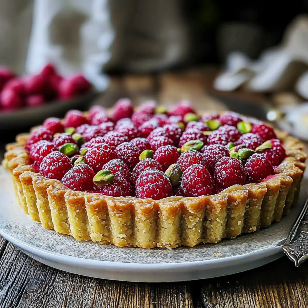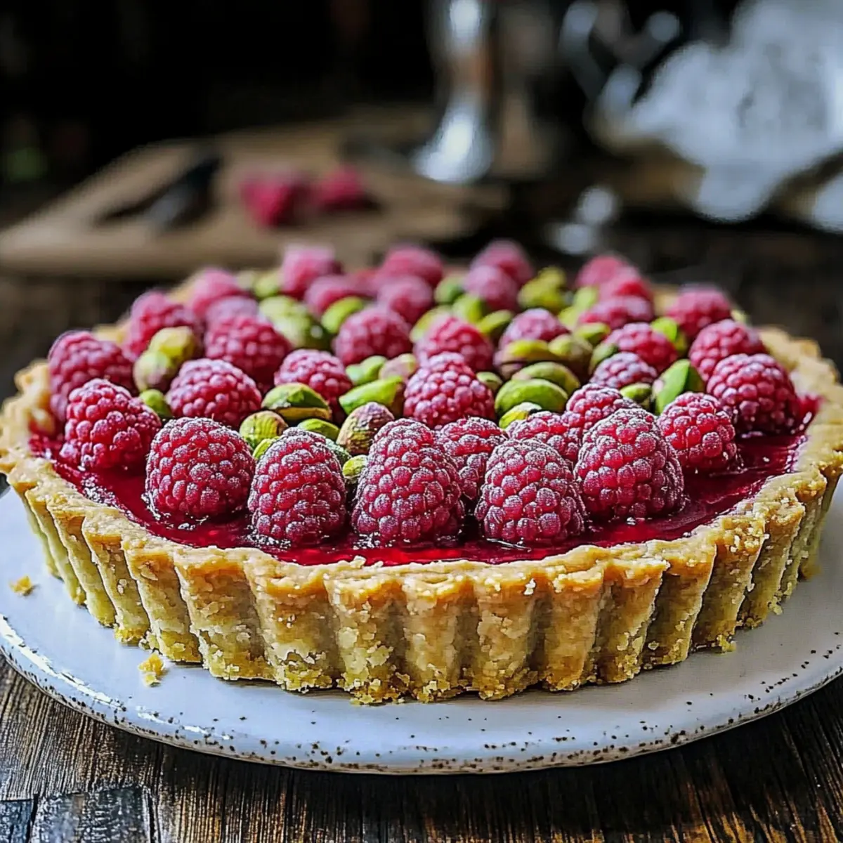 Jump to Recipe Print RecipeThe last whispers of summer drift through the kitchen as I prepare to make one of my favorite desserts, the Pistachio Raspberry French Tart. This elegant tart features a buttery shortcrust and a creamy pistachio frangipane filling, paired with fresh raspberries that bring a delightful tartness to each bite. What I love most about this recipe is not just its sophisticated presentation, but also how quick it is to whip up—making it the perfect crowd-pleaser for last-minute gatherings. Plus, the indulgent nature of the tart still feels light and refreshing, making it a hit even on warm days. Are you ready to impress your friends and family with this stunning dessert? Why Is This Tart a Must-Try? Elegance in Simplicity: The Pistachio Raspberry French Tart is surprisingly easy to prepare, making it ideal for home cooks of all levels. Flavor Explosion: The harmonious blend of creamy pistachio and tart raspberry ensures each bite is a delightful experience. Customizable Delight: With suggested variations, you can easily switch up nuts or fruits, tailoring the recipe to your taste. Perfect for Any Occasion: Whether it’s a summer gathering or a cozy dinner, this tart is sure to wow your guests. Visually Striking: Its beautiful appearance makes it a stunning centerpiece that’s perfect for entertaining. For a decadent twist, consider trying the Raspberry Lemon Heaven or explore other delightful desserts that’ll elevate your baking game! Pistachio Raspberry French Tart Ingredients For the Crust • All-purpose flour – Provides structure to the tart crust; can substitute with gluten-free flour blend for a gluten-free option. • Salt – Enhances flavor; necessary for balanced taste. • Sugar – Sweetens the tart crust; brown sugar can be used for a richer flavor. • Cold unsalted butter – Creates a flaky texture in the crust; must be cold to achieve the right texture, can substitute with vegan butter for a dairy-free version. • Egg yolks – Richness and binding agent for the crust; great source of moisture and fat. For the Frangipane • Shelled unsalted pistachios – Finely ground to create the frangipane filling; almonds or hazelnuts can be used as alternatives. • Large egg yolks – For the frangipane, adding richness; ensure they are fresh for the best flavor. • Sugar – Sweetens the frangipane; adjust based on personal sweetness preference. • Ground almonds – Adds depth to the frangipane; can substitute with more ground pistachios or any other nut. • Heavy cream – Creates a creamy consistency in the frangipane; can replace with coconut cream for a dairy-free option. • Pistachio extract – Enhances pistachio flavor; almond extract can serve as an alternative. For the Topping • Fresh raspberries – Offers tartness and freshness to the tart; alternative fruits include figs, poached pears, or stone fruits. • Coarsely chopped pistachios – Used as a topping for texture; optional; any nut can work as a substitute. Step‑by‑Step Instructions for Pistachio Raspberry French Tart Step 1: Prepare the Tart Crust In a large mixing bowl, whisk together 1 ½ cups of all-purpose flour, ¼ teaspoon of salt, and ½ cup of sugar until well combined. Cut in ½ cup of cold unsalted butter until the mixture resembles coarse crumbs. Add 2 egg yolks and mix gently until a dough forms. Roll it into a disc, wrap in plastic wrap, and chill for 30 minutes. Step 2: Make the Frangipane While the crust chills, prepare the frangipane. In a medium bowl, whisk together 1 cup of finely ground pistachios, 2 large egg yolks, ½ cup of sugar, ½ cup of ground almonds, ¼ cup of heavy cream, and 1 teaspoon of pistachio extract until smooth and creamy. Set this mixture aside to let the flavors meld. Step 3: Bake the Crust Preheat your oven to 350°F (180°C). On a lightly floured surface, roll out the chilled tart dough between two sheets of parchment paper until it’s about 5mm thick. Carefully transfer the rolled dough into a tart pan, pressing it into the edges. Prick the bottom with a fork, fill it with the frangipane, and bake for 40-45 minutes until the crust is golden brown and the filling is puffed. Step 4: Cool the Tart Once baked, remove the tart from the oven and let it cool in the pan for about an hour. This cooling time allows the filling to set and makes it easier to handle. Once cooled, gently loosen the edges and remove the tart from the pan, placing it on a serving platter. Step 5: Top with Raspberries To finish your beautiful Pistachio Raspberry French Tart, artfully arrange fresh raspberries on top in a circular pattern. For an extra touch of crunch, sprinkle coarsely chopped pistachios over the raspberries. This adds not only flavor but also a vibrant contrast that makes your tart visually stunning. Make Ahead Options These Pistachio Raspberry French Tart preparations are a lifesaver for busy cooks looking to impress without the last-minute rush! You can prepare the tart crust up to 24 hours in advance. Simply follow the crust recipe, wrap it tightly in plastic wrap, and refrigerate. The frangipane filling can be made 3 days ahead; store it in an airtight container in the refrigerator to keep it fresh. When you’re ready to bake, roll out the chilled crust, fill it with the frangipane, and bake as directed. Just remember to add the fresh raspberries just before serving to prevent them from wilting, ensuring your tart remains just as delicious as if it were freshly made! Pistachio Raspberry French Tart Variations Feel free to mix things up and make this tart your own with these delicious twists! Nut Swap: Replace shelled pistachios with almonds or hazelnuts for a different flavor profile. Each nut brings its unique essence to the table, making every bite distinct and delightful! Seasonal Berries: Use figs or poached pears instead of fresh raspberries to incorporate seasonal fruits. Imagine the cozy flavors of warm poached pears mingling with t
