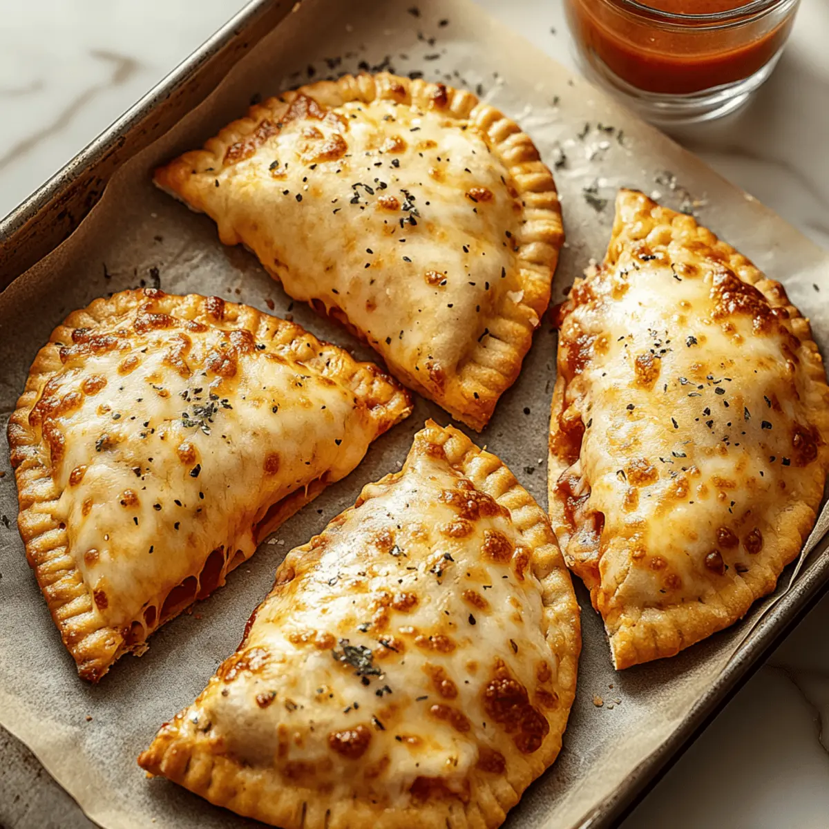 Jump to Recipe Print RecipeRustling through the fridge, I stumbled upon a jar of pizza sauce and felt a spark of inspiration. What if I could indulge in a delicious pizza experience without the guilt? Enter my High Protein Pizza Hot Pockets—a homemade marvel that combines nutrition and flavor effortlessly. Crafted with Greek yogurt for a wholesome dough, these pocket-sized delights are not just incredibly satisfying, but they’re also a quick meal prep solution that you can keep stocked in your freezer. In about 30 minutes, you can whip up a batch that’s perfect for lunchboxes or a cozy movie night. Plus, with endless variations to cater to your dietary needs, you’ll never get bored! Are you ready to reinvent your pizza night? Why Love These Pizza Hot Pockets? Convenience at Your Fingertips: These High Protein Pizza Hot Pockets are a quick and easy meal prep solution, perfect for busy weeks or spontaneous gatherings. Customizable to Fit: Tailor your filling with various ingredients, whether you prefer veggies, meats, or even different cheese blends—versatility is key! Nutritionally Elevated: Packed with protein, they’re an excellent guilt-free way to satisfy your pizza cravings while staying on track with your health goals. Freezer-Friendly: Make a batch and freeze them for effortless future meals, just like my Fruit Pizza Deliciously can elevate snack time! Crowd-Pleased: Whether family or friends, these pockets are sure to impress anyone who loves pizza, making them perfect for game nights or cozy dinners. Pizza Hot Pockets Ingredients For the Dough Greek yogurt – This ingredient provides protein and moisture for the dough. Substitute with low-fat cottage cheese for an additional protein boost. All-purpose flour – Forms the structure of the dough. Consider swapping with almond flour or cauliflower for low-carb versions. Baking powder – Acts as a leavening agent for dough rise. Ensure freshness for best results. Italian seasoning – Adds flavorful depth. Experiment with dried herbs like oregano or basil for a twist. Garlic powder – Enhances flavor. Fresh garlic can be used for a more robust taste. Salt – Balances flavors and is essential for enhancing your pizza hot pockets’ taste. For the Filling Pizza sauce – Fulfills the craving for tangy pizza goodness. Use homemade or store-bought for convenience. Low-fat cheese – Provides melt and creaminess. Fat-free mozzarella is a lighter option, keeping these pizza hot pockets delicious yet nutritious. Extras (Optional) Cooked mushrooms – Add these for enhanced flavor and nutrition. Zucchini – Incorporating this veggie elevates your pocket’s healthiness. Cheese blends – Try a mixture of mozzarella and cheddar for varied flavors! Step‑by‑Step Instructions for High Protein Pizza Hot Pockets Step 1: Preheat Oven Begin by preheating your oven to 375°F (190°C). While it warms up, line a baking tray with parchment paper to prevent sticking. This initial step is crucial, as a properly heated oven ensures that your Pizza Hot Pockets will bake evenly, resulting in that delightful golden-brown crust we all love. Step 2: Mix Dough In a mixing bowl, combine all-purpose flour, baking powder, Italian seasoning, garlic powder, and salt. Whisk the dry ingredients thoroughly. Then, stir in Greek yogurt until the mixture clumps together. Knead the dough for about 2-3 minutes on a lightly floured surface until it transforms into a smooth, pliable ball ready for shaping into your delicious Pizza Hot Pockets. Step 3: Shape Dough Once your dough is ready, divide it into 8 equal balls. On a floured surface, roll each ball into an oval shape approximately 6 inches in length. This thickness will ensure that the dough has enough structure to hold the delicious fillings without tearing, setting the stage for perfectly baked Pizza Hot Pockets. Step 4: Fill Pockets For each oval of dough, spread a spoonful of pizza sauce on one half, leaving a generous ½-inch border around the edge. Next, sprinkle low-fat cheese over the sauce. Feel free to add any optional ingredients like cooked mushrooms or zucchini for an extra flavor boost! Leave the other half of the dough clear to create a snug pocket. Step 5: Seal Carefully fold the dough over the filling, pressing the edges firmly to seal your Pizza Hot Pockets. To ensure a tighter seal, you can dab a little water along the edges before folding. This prevents any delicious filling from leaking out during the baking process, preserving that tasty experience you’re aiming for. Step 6: Bake Place your stuffed pockets on the prepared baking tray, making sure they are spaced apart. Bake in the preheated oven for about 18-20 minutes or until the tops are golden brown. Watch them closely; you’re looking for a beautiful, appetizing color indicating that your High Protein Pizza Hot Pockets are perfectly cooked and ready to be enjoyed. Step 7: Cool and Serve Once baked, remove the Pizza Hot Pockets from the oven and allow them to cool for about 5 minutes. This cooling period makes them easier to handle and lets the cheesy goodness set a bit, ensuring you have the perfect bite of warmth and flavor when you take your first bite. Enjoy your delicious creation! Expert Tips for Pizza Hot Pockets Dough Consistency: Ensure your dough is soft yet pliable; if it’s too sticky, gradually add more flour while kneading to achieve the right texture. Filling Control: Use a modest amount of sauce and cheese to prevent overflow. Overstuffing can lead to messy pockets during baking. Resting Time: Let the rolled out dough rest for about 10 minutes. This allows the gluten to relax, making it easier to shape without tearing and helps create a better crust. Sealing Tips: Seal your Pizza Hot Pockets tightly to avoid any leaks. A little water on the edges before folding can provide a better seal. Experiment with Flavors: Don’t hesitate to customize your filling! Incorporate various ingredients like bell peppers, 