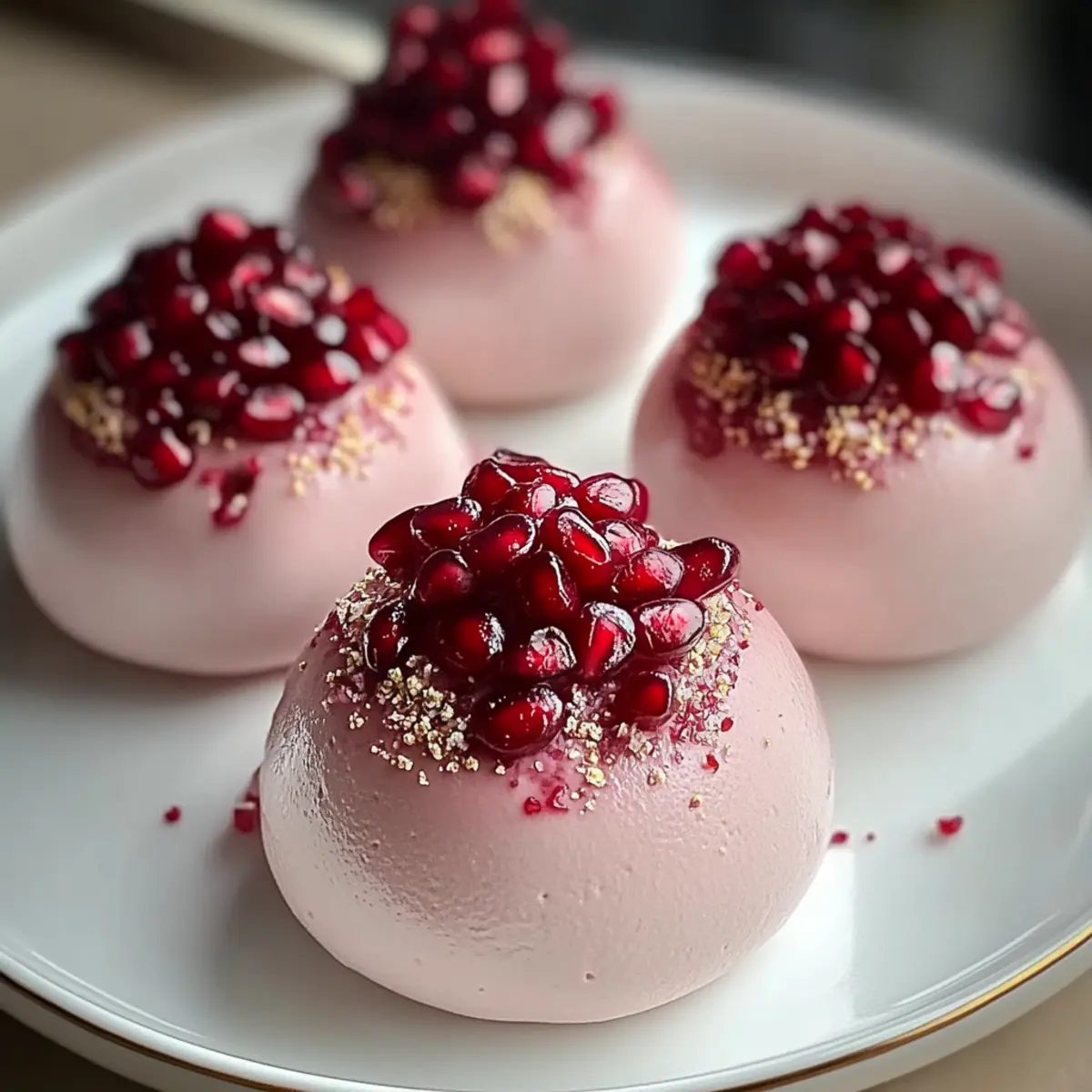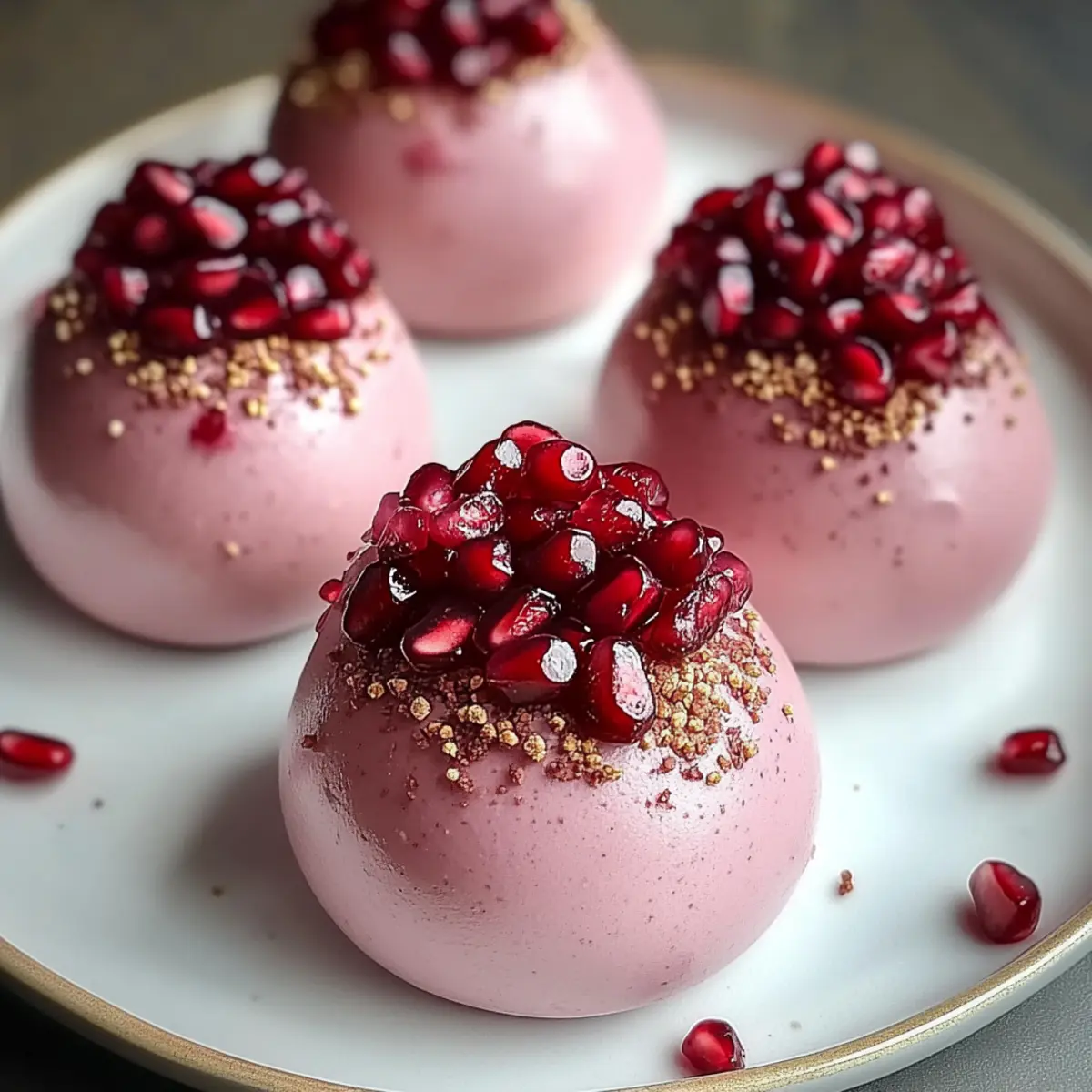 Jump to Recipe Print RecipeAs I stood in my kitchen, the vibrant color of fresh pomegranate juice caught my eye, prompting a delightful idea: Pomegranate Mousse Domes. This easy yet impressive dessert combines the sweet-tart essence of pomegranates with a light, airy mousse that feels indulgent without being heavy. Perfect for impressing guests at dinner parties or simply treating yourself, these elegant little servings boast only 250 calories per dome, letting you enjoy a decadent dessert guilt-free. In just 20 minutes of preparation, followed by a short chill time, you’ll have a stunning treat that dazzles both the eyes and the palate. Are you ready to whip up something extraordinary that will steal the spotlight at your next gathering? Why are Pomegranate Mousse Domes a showstopper? Elegance, these Pomegranate Mousse Domes are not just a dessert; they are stunning pieces of art that elevate any occasion. Light and airy, the mousse melts in your mouth, delivering a burst of fresh pomegranate flavor. Quick to prepare, with just 20 minutes of hands-on time, they fit seamlessly into your busy schedule. Visual appeal is taken up a notch with vibrant garnishes, making them a perfect centerpiece. Versatile enough to swap out pomegranate with other fruit juices like raspberry or cranberry for a unique twist, these domes appeal to everyone at the table. After impressing your guests, take advantage of our tips on storage to enjoy leftovers without losing their lusciousness! Pomegranate Mousse Domes Ingredients For the Mousse • Pomegranate Juice – This vibrant juice provides the tangy base for the mousse; opt for 100% juice without added sugars for the best flavor. • Sugar – Enhances sweetness to balance the tartness from the pomegranate; adjust to your taste preference. • Lemon Juice – A teaspoon adds a delightful acidity to brighten the mousse; just be cautious not to overpower it. • Gelatin Powder – Essential for stabilizing the mousse’s airy texture and creating that signature dome shape; proper blooming is a must! • Cold Water – Used to bloom the gelatin; the measurement ensures perfect texture. • Heavy Cream – The star ingredient that provides the light and fluffy texture; use fresh cream for optimal results. • Powdered Sugar – Sweetens the whipped cream and helps stabilize it without weighing it down. • Vanilla Extract – Adds warmth and depth, enhancing the natural tang of the pomegranate. For the Garnish • Pomegranate Seeds (for garnish) – These crunchy bursts provide fresh contrast to the smooth mousse and enhance visual appeal. • Optional Garnish (Chocolate/Silver Flakes) – Adds an elegant finishing touch, making each dome a standout treat. Step‑by‑Step Instructions for Pomegranate Mousse Domes Step 1: Prepare Ingredients Start by measuring all your ingredients, including pomegranate juice, sugar, lemon juice, gelatin powder, cold water, heavy cream, powdered sugar, and vanilla extract. Make sure to have a saucepan, a chilled mixing bowl, and silicone dome molds ready. This organized approach will help you create the Pomegranate Mousse Domes smoothly and efficiently. Step 2: Heat Pomegranate Mixture In a saucepan over low heat, combine the pomegranate juice, sugar, and lemon juice. Stir gently until the sugar has fully dissolved, which should take about 3-5 minutes. Keep an eye out for small bubbles beginning to form; this indicates that the mixture is warming up but not boiling. Once done, remove it from the heat. Step 3: Bloom the Gelatin While the pomegranate mixture cools, sprinkle the gelatin powder over the cold water in a small bowl and let it bloom for about 5 minutes. The gelatin will absorb the water and swell, becoming gel-like. After blooming, stir the gelatin into the warm pomegranate mixture until completely dissolved, ensuring a smooth texture for your mousse. Step 4: Whip the Cream Using a chilled mixing bowl, pour in the heavy cream. Whip it with an electric mixer on medium-high speed until soft peaks form, which should take around 2-3 minutes. Gradually add the powdered sugar and vanilla extract to the whipped cream, continuing to beat until you achieve stiff peaks. The cream should be fluffy and hold its shape well, ready to fold into the pomegranate base. Step 5: Combine Mixtures Once the pomegranate mixture has cooled to room temperature, gently fold it into the whipped cream. Use a rubber spatula to combine them, ensuring that you maintain the light texture of the whipped cream. Aim for a homogeneous mixture without any streaks; this will give your Pomegranate Mousse Domes their airy quality. Step 6: Fill Silicone Molds Lightly grease your silicone dome molds to help with easy unmolding later. Carefully spoon the mousse mixture into each mold, filling them about three-quarters full. Tap the molds gently on the counter to release any trapped air bubbles. This ensures that each dome will have a smooth surface when set. Step 7: Chill Until Set Cover the filled molds with plastic wrap and place them in the refrigerator. Chill the Pomegranate Mousse Domes for at least 4 hours, allowing them to set completely. Check that they are firm to the touch before removing them from the fridge; they should have a nice dome shape. Step 8: Unmold the Domes Once set, carefully unmold the mousse domes by gently pressing the base of the silicone molds. The domes should release easily, showing off their beautiful shapes. Place them upright on a serving platter, ready to be garnished. Step 9: Garnish and Serve Sprinkle each Pomegranate Mousse Dome with crunchy pomegranate seeds for a fresh contrast. If desired, add an elegant touch with optional chocolate shards or silver flakes. Serve the domes chilled to enhance their flavor and texture, making them a stunning centerpiece for your dessert table. What to Serve with Pomegranate Mousse Domes Pair your elegant desserts with delightful accompaniments that enhance their light, airy profile and