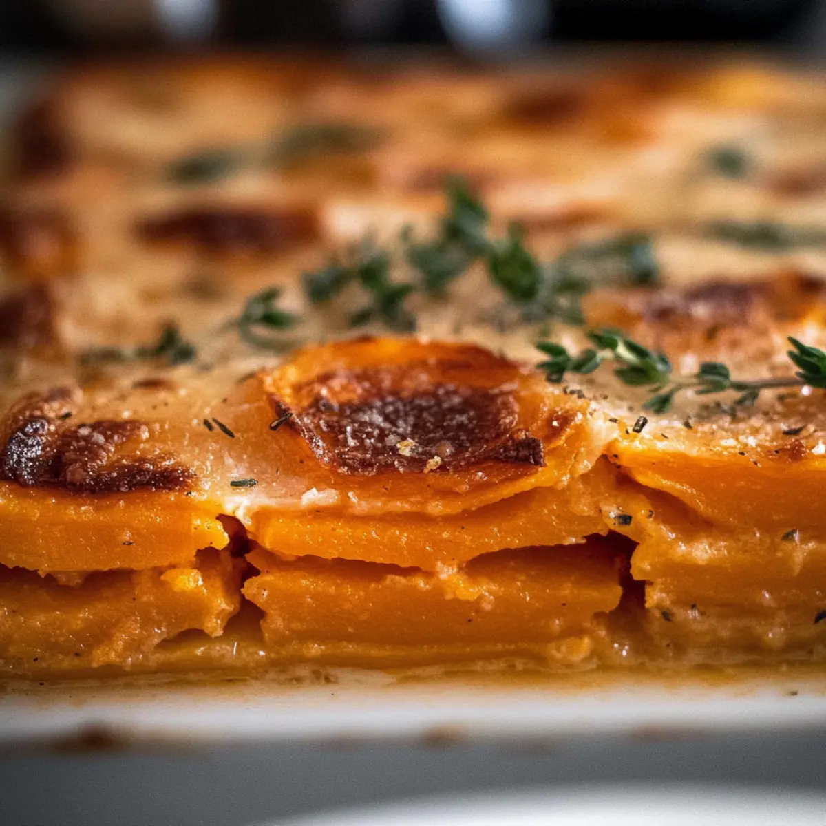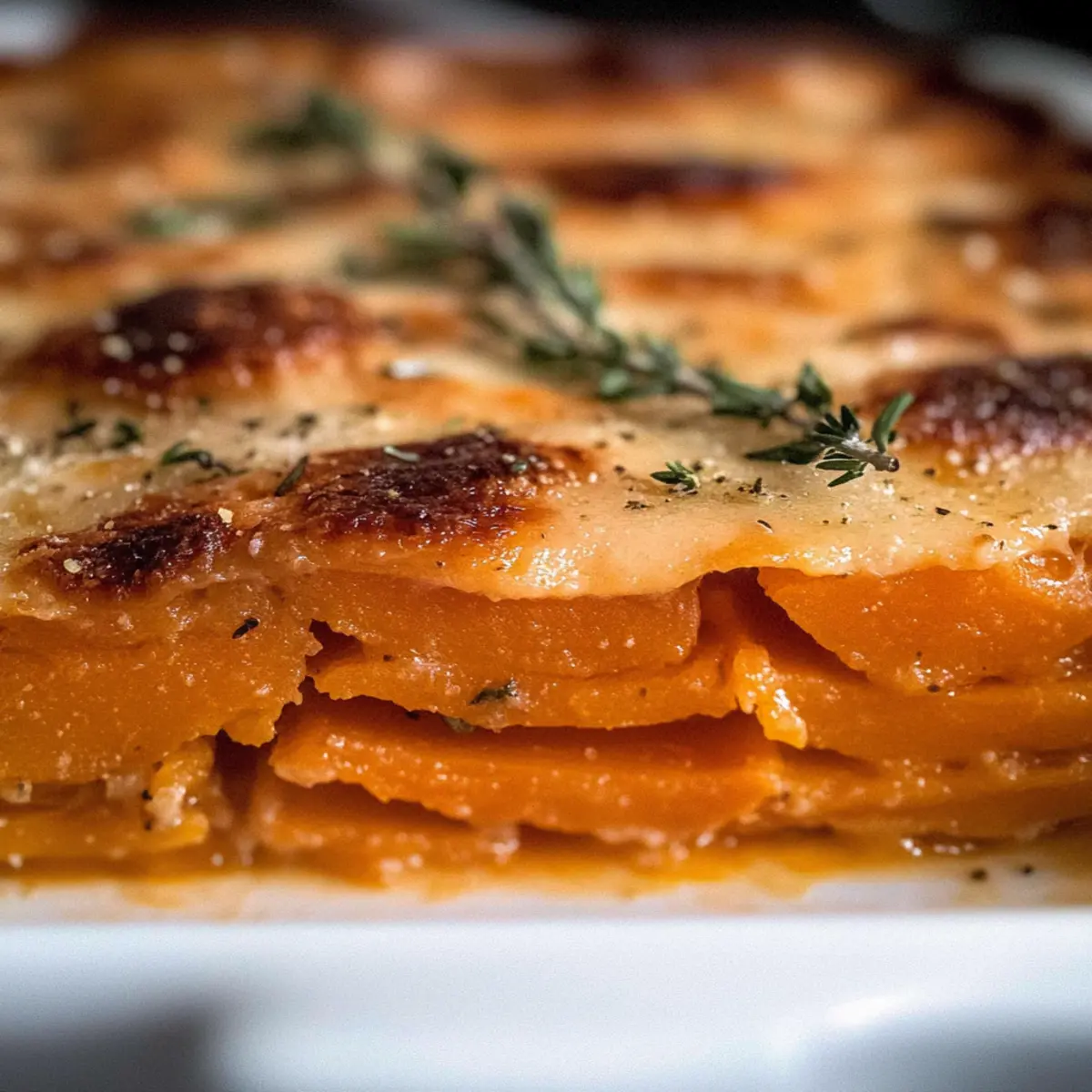 • Colorful Layers: Mix in butternut squash slices for a vibrant and nutritious twist while maintaining that comforting taste of sweet potatoes.