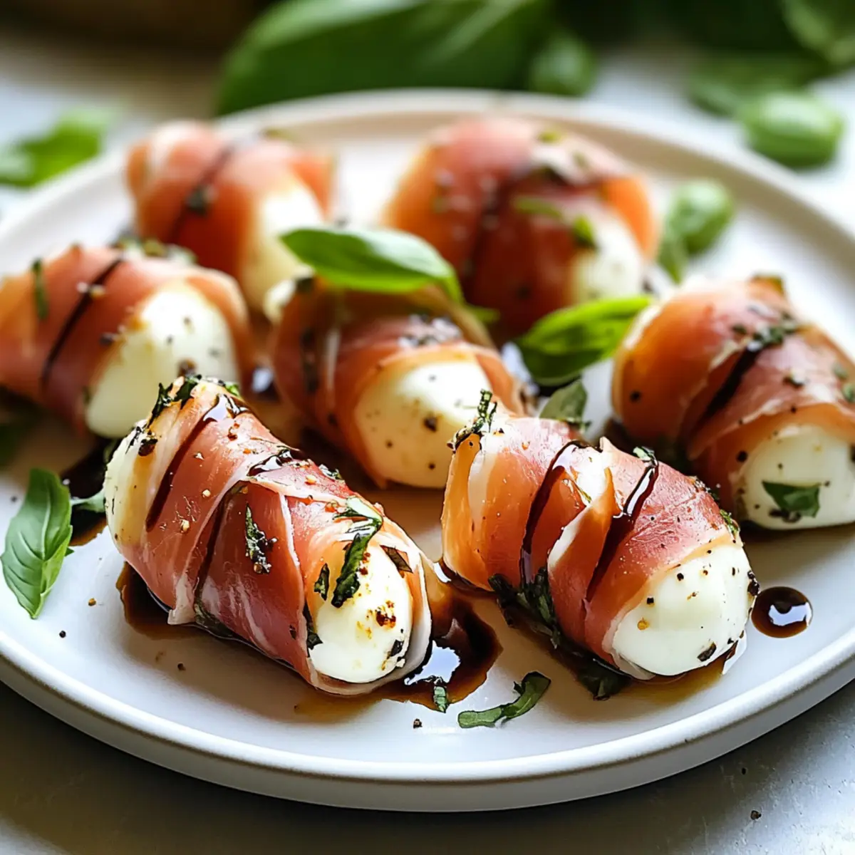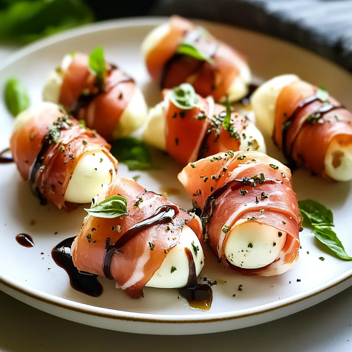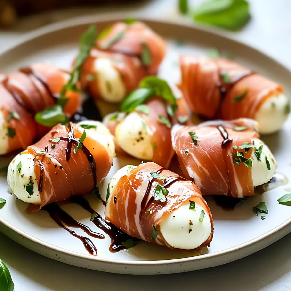 Jump to Recipe Print RecipeAs I set out to impress my friends last weekend, I stumbled upon a delightful surprise—Prosciutto-Wrapped Mozzarella Bites that instantly elevate any occasion. These little delights are not only a breeze to prepare but can be enjoyed both warm and cold, a win-win for those hosting impromptu gatherings or elegant soirées. With just a handful of ingredients, the creamy mozzarella wrapped in savory prosciutto creates a delicious bite that brings sophistication to your appetizer game. Plus, whether you serve them in the oven, air fryer, or straight from the fridge, their versatility means they shine in any setting! Ready to take your next gathering to the next level with these scrumptious bites? Let’s dive into the recipe! Why Are These Bites So Irresistible? Simplicity at Its Finest: With just a few high-quality ingredients, these Prosciutto-Wrapped Mozzarella Bites come together in minutes, making them perfect for last-minute entertaining. Versatile Serving Options: Enjoy them warm from the oven or air fryer, or serve them cold as a refreshing appetizer—there’s no wrong way to indulge! Crowd Pleaser: Whether it’s a cocktail party or game day, these bites are sure to impress every guest. Get ready for the compliments! Flavor Explosion: The rich creaminess of mozzarella pairs beautifully with the savory notes of prosciutto, creating a delightful taste sensation. Make Ahead Friendly: Prep these bites in advance for a stress-free gathering. Simply store them in the fridge and serve when you’re ready! For more quick recipes that impress, check out these Butter Steak Bites or try some crispy Fryer Cauliflower Bites to round out your appetizer spread. Prosciutto-Wrapped Mozzarella Bites Ingredients • Your essential guide to delectable bites. For the Bites Fresh Mozzarella Balls – A creamy texture that melts beautifully, ensuring a delightful bite. Prosciutto – Choose high-quality Italian prosciutto like Prosciutto di Parma for the best salty flavor. Balsamic Glaze – Adds a sweet and tangy finish that enhances the overall flavor profile beautifully. Optional Additions Fresh Basil – A fragrant touch that elevates flavor; add before wrapping for extra freshness. Black Pepper/Italian Seasoning – A sprinkle of these adds complexity and depth; consider enhancing your Prosciutto-Wrapped Mozzarella Bites with seasoning before cooking. Embrace the joy of cooking with these irresistible bites that are sure to delight your taste buds! Step‑by‑Step Instructions for Prosciutto-Wrapped Mozzarella Bites Step 1: Preparation If using fresh mozzarella balls, gently pat them dry with a paper towel to remove excess moisture. For a more bite-sized experience, you can cut the mozzarella into smaller cubes. This preparation ensures each piece has the perfect creamy texture, ready to embrace the savory prosciutto. Step 2: Wrapping Take a slice of high-quality prosciutto and place it on a clean surface. Wrap it around each mozzarella piece snugly, allowing the prosciutto to envelop the cheese entirely. If you’d like added security, you can use a toothpick to hold the wrap in place, keeping everything tidy for your Prosciutto-Wrapped Mozzarella Bites. Step 3: No-Cook Option For a quick and effortless serving solution, arrange the wrapped bites on a platter as a cold appetizer. Drizzle them generously with balsamic glaze and sprinkle fresh basil, if using. This no-cook option creates a refreshing version of your Prosciutto-Wrapped Mozzarella Bites that retains all their delightful flavors. Step 4: Oven-Baked Method Preheat your oven to 400°F (200°C) while you prepare the baking sheet. Place the wrapped bites on a parchment-lined baking sheet, ensuring they are spaced apart. Bake them for 8–10 minutes, watching closely as the prosciutto crisps up, while the mozzarella remains beautifully intact and melty. Step 5: Air Fryer Option For a crispy finish without the oven, set your air fryer to 375°F (190°C). Carefully arrange the prosciutto-wrapped mozzarella on the air fryer basket, ensuring they are not overcrowded. Cook for 6–8 minutes until the prosciutto is golden and crispy, achieving a delightful texture in your Prosciutto-Wrapped Mozzarella Bites. Step 6: Serving Once cooked, transfer your delicious bites to a serving platter. For the warm version, consider drizzling additional balsamic glaze on top before serving. You can enjoy these bites fresh from the oven or allow them to cool slightly—either way, they are sure to be a hit at your gathering! Make Ahead Options These Prosciutto-Wrapped Mozzarella Bites are perfect for busy weeknights or last-minute gatherings! You can prepare them up to 24 hours in advance; simply wrap the mozzarella in prosciutto and refrigerate the bites on a covered platter. If serving cold, they will maintain their delightful flavors as you let them sit in the fridge overnight. For those warm, crispy bites, you can also assemble them ahead, refrigerate, and then bake or air fry just before serving. Simply heat at the recommended temperature until they’re golden and crispy, ensuring you enjoy restaurant-quality results with minimal effort! What to Serve with Prosciutto-Wrapped Mozzarella Bites Elevate your dining experience by pairing these creamy, savory bites with delightful sides and beverages that complement their rich flavors. Creamy Polenta: This smooth and buttery dish provides a comforting contrast, adding a luscious texture alongside the bites. Mixed Green Salad: A refreshing salad with tangy vinaigrette brightens the palate, balancing the saltiness of prosciutto with crisp greens and seasonal veggies. Mediterranean Couscous: Fluffy couscous tossed with cherry tomatoes, cucumber, and feta offers a burst of fresh flavors, creating a delightful Mediterranean flair to your spread. Garlic Breadsticks: Crunchy on the outside and soft within, these make for a delightful vehicle to soak up any leftover balsamic glaze, enhancin