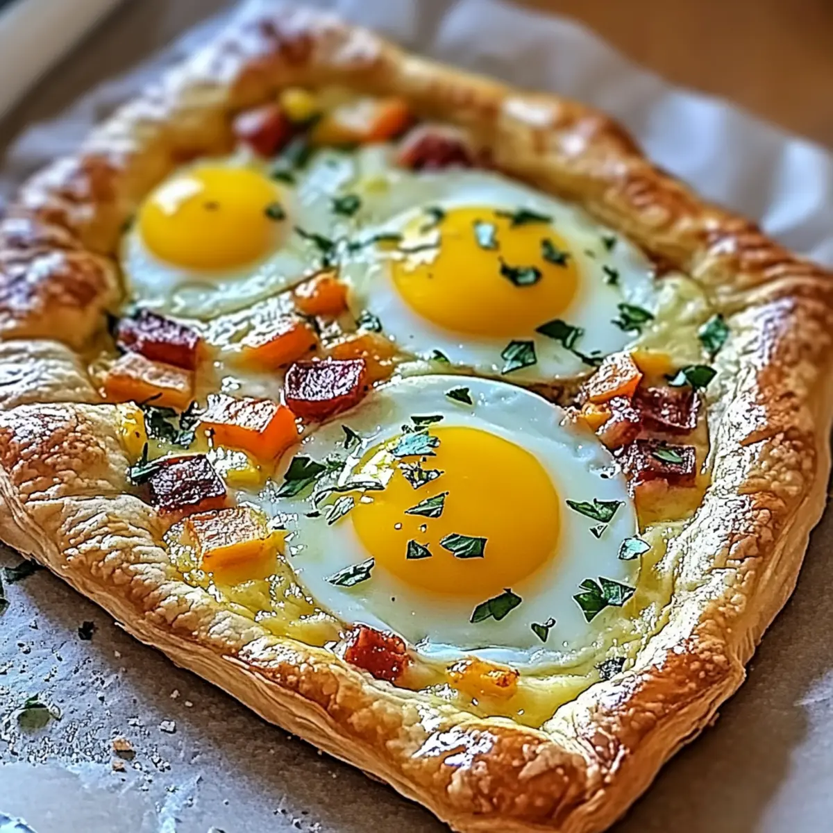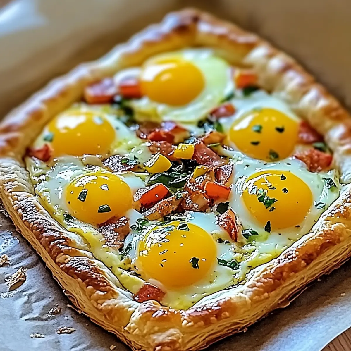 Jump to Recipe Print RecipeAs the aroma of baking pastry wafts through my kitchen, I can’t help but feel a wave of nostalgia wash over me—those weekend brunches where every bite is a delicious escape. Enter the Puff Pastry Breakfast Pizza, a dish that redefines morning meals with its flaky, golden crust and endless topping possibilities. Perfect for both cozy mornings and impressive gatherings, this customizable delight offers something for everyone—whether you prefer savory meats, vibrant veggies, or a gourmet sweet twist. It’s quick to prepare and easy on the eyes, making it a true crowd-pleaser. Ready to elevate your brunch game? Let’s dive into this culinary adventure together! Why is this breakfast pizza a must-try? Versatile Toppings: This Puff Pastry Breakfast Pizza adapts to any palate, allowing you to experiment with flavors and dietary preferences. Quick and Easy: With minimal prep time, you can whip up this delicious meal in under 30 minutes. Impressive Presentation: Its golden, flaky crust and colorful toppings are eye-catching, perfect for impressing guests. Healthy Options: Load up on veggies or choose lean meats to make your brunch not just tasty but nutritious! And if you’re a fan of sweet treats, check out my Fruit Pizza Deliciously for another twist. Enjoy this dish with a fresh fruit salad for a balanced meal that leaves everyone satisfied! Puff Pastry Breakfast Pizza Ingredients Unlock the flavors of this customizable brunch delight with the perfect ingredients! For the Base Puff Pastry – The flaky foundation of your pizza; make sure it’s completely thawed. For the Filling Eggs (3 large) – Acts as the main binding agent, adding rich flavor and protein; fresh eggs deliver the best taste. Cheddar Cheese (1 cup) – Provides a creamy, flavorful layer; swap for mozzarella for a milder profile. Breakfast Meats (1 cup) – Enhances the savory essence; options include bacon or ham, or omit for a vegetarian alternative. Vegetables (1 cup) – Add color and nutrition; consider pre-cooking ingredients like onions or bell peppers to minimize moisture. For Seasoning Seasonings (to taste) – Essential for boosting flavor (salt and pepper work wonders). Fresh Herbs (optional) – Adds a fresh burst; try garnishing with chives or parsley for added flair. Hot Sauce (optional) – A drizzle adds an extra flavor kick if you love a little spice. With these carefully selected ingredients, your Puff Pastry Breakfast Pizza will not only satisfy but create a delightful experience on your brunch table! Step‑by‑Step Instructions for Puff Pastry Breakfast Pizza Step 1: Prepare Puff Pastry Start by taking your duty thawed puff pastry and roll it out on a parchment-lined baking sheet. Aim for an even thickness of about ¼ inch, gently easing it into the corners to form a nice border. This will create a sturdy base for your Puff Pastry Breakfast Pizza! Step 2: Preheat Oven Preheat your oven to 400°F (200°C). This step is crucial for achieving that perfect golden-brown, flaky crust. A properly preheated oven ensures your pizza bakes evenly, so take a moment to let that heat build while you prepare the toppings. Step 3: Cook Ingredients In a skillet over medium heat, sauté a mixture of diced vegetables and breakfast meats until they’re slightly crispy, about 5–7 minutes. Stirring frequently will keep everything cooking evenly and help reduce moisture, preventing a soggy Puff Pastry Breakfast Pizza. Once done, remove from heat and let cool slightly. Step 4: Assemble Pizza With the puff pastry base ready, layer a generous amount of cheddar cheese across the surface, followed by the sautéed vegetables and breakfast meats. Pour your beaten eggs evenly over the entire assembly, making sure each bite will have a delightful blend of flavors. Step 5: Bake Carefully transfer your masterpiece to the preheated oven and bake for 20-25 minutes. Keep an eye on it; the pastry should puff up and turn a beautiful golden-brown when it’s done. This is when those delicious aromas will start to fill your kitchen! Step 6: Serve Once your Puff Pastry Breakfast Pizza is out of the oven, let it cool for a few minutes. Cut it into slices and serve hot, allowing the flavors to meld together beautifully. Take a moment to admire the vibrant colors and enjoy this delightful breakfast treat with friends or family! How to Store and Freeze Puff Pastry Breakfast Pizza Fridge: Store leftover Puff Pastry Breakfast Pizza in an airtight container for up to 2-3 days to keep it fresh and flavorful. Freezer: For longer storage, freeze slices wrapped tightly in plastic wrap or foil for up to 2 months. Label with the date for easy identification! Reheating: Reheat in the oven at 350°F (175°C) for 10-15 minutes until heated through and crisp. Enjoy that flaky texture just like fresh out of the oven! Room Temperature: If serving at a brunch gathering, the pizza can sit out for about 2 hours. After that, be sure to refrigerate any leftovers to maintain safety and quality. Puff Pastry Breakfast Pizza Customizations Feel free to let your creativity shine while making your Puff Pastry Breakfast Pizza, exploring flavors and textures that excite your palate. Vegetarian: Substitute breakfast meats for colorful roasted veggies such as zucchini and bell peppers. This adds a delightful crunch and plenty of nutrients to each bite. Spicy: Add chorizo and pepper jack cheese along with jalapeños for a zesty kick. The heat will invigorate your taste buds and make it a standout dish at brunch. Mediterranean: Use toppings like olives, spinach, artichokes, and feta cheese for a savory flair. Each slice turns into a delightful escape to the Mediterranean coast. Vegan: Opt for vegan puff pastry, plant-based cheese, and a tofu scramble for a delicious alternative. Enjoy a guilt-free meal that every guest will love. Sweet Option: Replace savory ingredients with fruits (e.g., apples or berries) drizzled with honey for a dessert-s