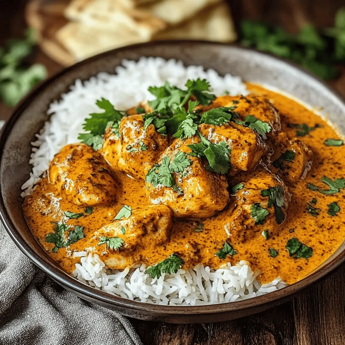 Jump to Recipe Print RecipeThere’s something magical about the arrival of fall—the crisp air, vibrant leaves, and, of course, the comforting scents wafting from the kitchen. As I prepared to embrace the season, I stumbled upon the perfect cozy dish: Creamy Pumpkin Butter Chicken. This gem combines tender chicken with a rich, spiced pumpkin butter sauce, providing a delightful balance of sweet and savory notes that warm the soul. Not only is this recipe an absolute crowd-pleaser, but it’s also quick to whip up, making it an effortless addition to any weeknight dinner. With seasonal ingredients taking center stage, you’ll savor every bite while bringing a little taste of autumn right to your table. Ready to discover how easy it is to create this fall-inspired comfort food? Let’s dive in! Why Is Pumpkin Butter Chicken So Special? Comforting and Cozy: This Pumpkin Butter Chicken delivers the ultimate fall comfort food experience, wrapping you in warmth with each bite. Creamy Delight: The luscious pumpkin sauce is so creamy that it invites second servings without hesitation. Unique Flavor Twist: Combining sweet pumpkin with aromatic spices creates a flavor profile that’s both exciting and satisfying—perfect for any gathering. Family-Friendly: Everyone, from kids to adults, will love this dish, making it a go-to for family dinners. Whether served over fluffy basmati rice or with warm naan, it’s sure to impress! And if you enjoyed this, check out my Honey BBQ Chicken for another easy weeknight winner! Pumpkin Butter Chicken Ingredients • Creating this comforting dish at home is a breeze with these simple ingredients. For the Chicken Chicken Thighs – Choose boneless, skinless thighs for a tender and juicy texture. Plain Yogurt – Perfect for marinating, giving that creamy depth; Greek yogurt can stand in for added thickness. Lemon Juice – Adds bright acidity to balance the dish’s richness; feel free to substitute with lime juice for a different zing. For the Aromatics Ginger-Garlic Paste – This aromatic blend provides a robust flavor foundation; fresh minced ginger and garlic also work beautifully. Onion – Use yellow onion or shallots for a sweet, caramelized depth in the sauce. For the Sauce Pumpkin Puree – The star ingredient of this Pumpkin Butter Chicken; ensure you’re using 100% pumpkin puree, not pie filling. Diced Tomatoes – Adds a touch of acidity and sweetness; for a chunkier sauce, opt for whole peeled tomatoes. Spices (Garam Masala, Turmeric, Chili Powder, Cumin, Coriander) – These spices create warmth and complexity; adjust chili powder according to your spice preference. Heavy Cream – Ensures a luscious, creamy texture; for a dairy-free alternative, use coconut cream. Chicken Broth – Enhances the overall flavor of the sauce; both homemade or store-bought are fantastic choices. Butter – Introduces richness to the sauce; feel free to omit if you’re looking for a lighter option. Brown Sugar (optional) – Just a pinch enhances the pumpkin flavor; skip it if you prefer less sweetness. For Serving Fresh Cilantro – Adds a pop of freshness and color; sprinkle on top for enhanced presentation. Naan Bread – Perfect for sopping up that delicious sauce; any preferred bread will do, or serve it with rice. With these ingredients at hand, your journey to making the ultimate Pumpkin Butter Chicken will be both fun and rewarding! Step‑by‑Step Instructions for Pumpkin Butter Chicken Step 1: Marinate the Chicken In a mixing bowl, combine plain yogurt, lemon juice, ginger-garlic paste, and spices (garam masala, turmeric, chili powder, cumin, and coriander). Mix well to create a marinade, then add the boneless, skinless chicken thighs, coating them evenly. Cover the bowl and refrigerate for at least 30 minutes, allowing the chicken to absorb the flavors and tenderize. Step 2: Prepare the Pumpkin Sauce In a large skillet, heat 2 tablespoons of olive oil or ghee over medium heat. Once hot, add chopped onions and sauté until they turn translucent, approximately 3-4 minutes. Following this, stir in minced garlic and ginger, cooking for an additional minute until fragrant, setting the foundation for the creamy Pumpkin Butter Chicken sauce. Step 3: Mix in Pumpkin and Tomatoes Next, add the 100% pumpkin puree along with diced tomatoes to the skillet, stirring them into the aromatic onion base. Allow the mixture to simmer gently for about 5 minutes, letting the flavors meld together while the sauce thickens. You’ll know it’s ready when it starts bubbling gently and looks creamy. Step 4: Add Cream and Spices Stir in 1 cup of heavy cream, chicken broth, 2 tablespoons of butter, optional brown sugar, and the remaining spices to the skillet. Mix well, bringing everything back to a simmer over medium heat. Allow the sauce to cook for 15-20 minutes, thickening into a luscious, flavorful blend that perfectly complements the Pumpkin Butter Chicken. Step 5: Cook the Chicken While the sauce simmers, you have options for cooking the marinated chicken. You can pan-fry it for about 5-7 minutes per side, bake at 400°F for 15-20 minutes, or grill for 4-6 minutes on each side. Ensure the chicken is cooked through and juices run clear. This step is crucial for the best texture in your Pumpkin Butter Chicken. Step 6: Combine Once the chicken is cooked, add the tender chicken pieces directly to the simmering pumpkin sauce in the skillet. Gently stir to coat the chicken evenly in the rich sauce and let them simmer together for an additional 5-10 minutes. This step allows the chicken to absorb all those delightful flavors for the perfect final touch. Step 7: Serve To serve your heartwarming Pumpkin Butter Chicken, ladle it over fluffy basmati rice or alongside warm naan bread for sopping up the delicious sauce. Garnish with fresh cilantro for an extra pop of color and flavor. This cozy dish is best enjoyed warm, making it the ultimate comfort food for any autumn night. How