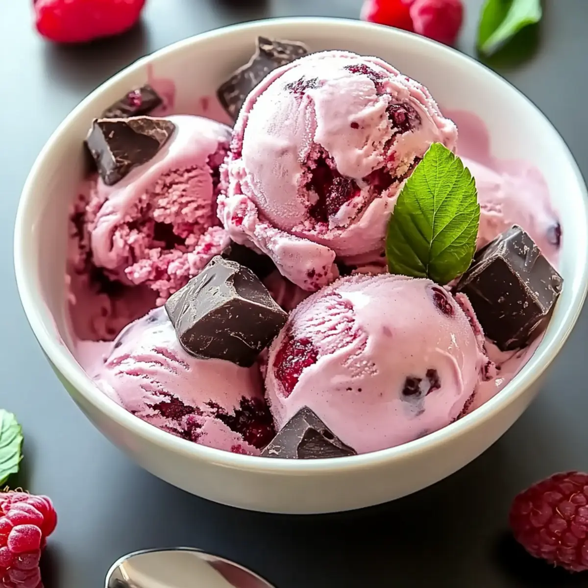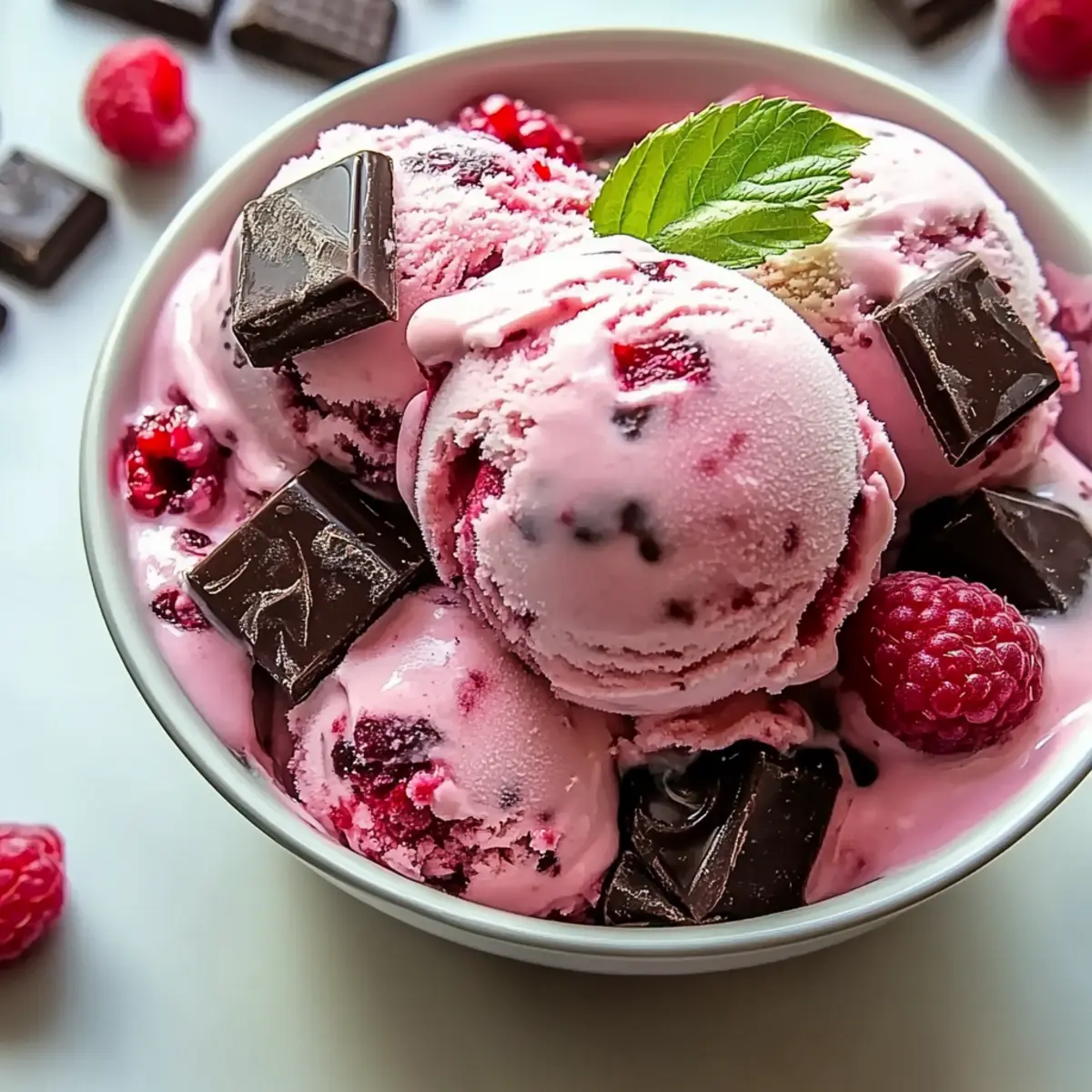 Jump to Recipe Print RecipeOn a sweltering summer day, nothing feels as rewarding as a scoop of homemade ice cream. My latest creation, Raspberry Chocolate Chunk Ice Cream, brings together the delightful tartness of fresh raspberries and the rich, bittersweet notes of dark chocolate. With just a few simple ingredients, this recipe offers a rewarding treat that’s as impressive as it is delicious. Plus, you’ll love how easy it is to make—perfect for those moments when you crave something cool and satisfying without resorting to store-bought options. Just imagine surprising your friends and family with creamy, vibrant scoops that scream ‘summer indulgence!’ Are you ready to dive into this luscious recipe? Why is this ice cream a must-try? Creamy Delight: The smooth, velvety texture of this Raspberry Chocolate Chunk Ice Cream melts in your mouth, showcasing the perfect combination of rich flavors and refreshing tartness. Fresh Ingredients: Made with vibrant fresh raspberries and high-quality dark chocolate, each scoop bursts with natural goodness, ensuring that you’re indulging in a treat that’s both delightful and satisfying. Easy and Fun: With a straightforward process, even those new to ice cream making will find joy in creating this refreshing dessert. Customizable Options: Whether you prefer a dairy-free version with coconut cream or want to experiment with different berries, this recipe adapts to your preferences seamlessly. Looking for other ice cream ideas? Check out this Brownie Ice Cream for a chocolatey twist! Perfect for Gatherings: Impress your guests by serving this vibrant treat at your next summer barbecue or picnic. A scoop of this eye-catching dessert is sure to be the highlight of any event! Store-Bought Alternative: Say goodbye to store-bought ice cream! Once you make this luscious version at home, you’ll never look back. Raspberry Chocolate Chunk Ice Cream Ingredients For the Ice Cream Base • Heavy Cream – Provides a smooth, luscious base; coconut cream can be used for dairy-free options. • Whole Milk – Balances richness for a scoopable texture; almond or oat milk work well as dairy-free substitutes. • Granulated Sugar – Sweetens the mixture and keeps it softer; adjust to taste for preferred sweetness. • Vanilla Extract – Enhances the overall flavor; for best taste, use pure extracts without substitutions. For the Flavor • Fresh Raspberries – The star ingredient that adds tartness and vibrant color; frozen raspberries should be thawed and mashed before use. • Lemon Juice – Brightens flavor and enhances tartness; fresh juice is preferred for best results. • Dark Chocolate Chunks – Provides a bittersweet contrast and texture; ensure dairy-free chocolate for a dairy-free version. • Optional: Additional Raspberry Purée – For a more intense raspberry flavor, add extra purée to the mix. Dive into the making of this luscious Raspberry Chocolate Chunk Ice Cream and experience summer bliss in each delicious scoop! Step‑by‑Step Instructions for Raspberry Chocolate Chunk Ice Cream Step 1: Whisk the Base In a large mixing bowl, whisk together 2 cups of heavy cream, 1 cup of whole milk, and 1 cup of granulated sugar until the sugar is completely dissolved, which should take about 3-5 minutes. You want a smooth mixture without any gritty texture. Once combined, you’ll see a glossy surface that suggests it’s ready for the next step, enhancing the richness of your Raspberry Chocolate Chunk Ice Cream. Step 2: Flavor Enhancement Add 2 teaspoons of vanilla extract and a pinch of salt to the cream mixture. Stir gently to incorporate the flavors evenly. The vanilla will elevate the overall taste, creating a harmonious blend with the other ingredients. This step is crucial for establishing a well-rounded flavor profile in your ice cream, enhancing the sweet and tart notes of the raspberries. Step 3: Prepare the Raspberries In a separate bowl, mash 1 cup of fresh raspberries with 1 tablespoon of lemon juice until juicy, about 2-3 minutes. You can use a fork or a potato masher for this step. If you prefer a smoother consistency, blend them for 30 seconds in a food processor. The vibrant color and tartness of the raspberries will be a splendid addition to your ice cream mixture. Step 4: Mix It All Together Combine the raspberry mixture with the cream mixture, folding gently until fully blended, about 2 minutes. This collaboration allows the bright raspberry flavor to infuse throughout the base, creating delightful swirls and bursts of tartness in your Raspberry Chocolate Chunk Ice Cream. You’ll see a beautiful pink hue emerge as the flavors meld together. Step 5: Churn the Ice Cream Pour the combined mixture into your ice cream maker, following the manufacturer’s instructions. Churn for about 20-25 minutes, or until it reaches a soft-serve consistency. This is the moment your Raspberry Chocolate Chunk Ice Cream begins to take shape—watch as it thickens and becomes creamy, almost ready to enjoy! Step 6: Add Chocolate Chunks Just before the churning process completes, add in 1 cup of dark chocolate chunks and churn for an additional 2-3 minutes. This allows the chocolate to be evenly distributed throughout the ice cream. You’ll witness the delightful contrast of the dark chocolate against the raspberry base, enhancing both flavor and texture in your treat. Step 7: Freeze the Ice Cream Transfer the churned ice cream into an airtight container. Smooth the top with a spatula and seal tightly. Freeze for at least 4 hours, or until it’s firmly set. This step is essential for achieving that perfect scoopable texture. You’ll want to resist the urge to dig in right away, but the wait will be worth it for your homemade Raspberry Chocolate Chunk Ice Cream. Step 8: Serve and Enjoy! When ready to serve, scoop your luscious Raspberry Chocolate Chunk Ice Cream into bowls or cones. Enjoy the vibrant colors and inviting aroma. Each scoop will o