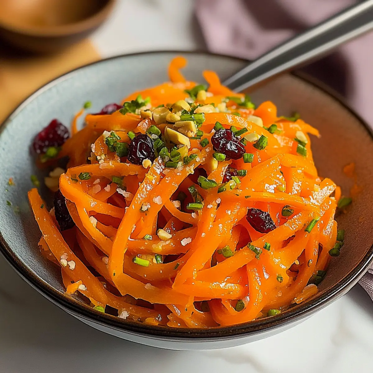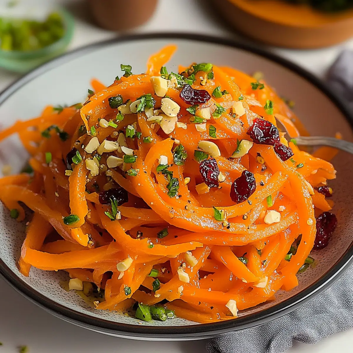 Jump to Recipe Print RecipeAs I rummaged through my fridge one sunny afternoon, I stumbled upon a bunch of vibrant, fresh carrots just begging to be transformed into something special. That’s when I decided it was time to whip up a refreshing Raw Carrot Salad! This dish is not only incredibly quick to prepare, but it also dazzles the eyes and delights the palate. With a simple yet zesty dressing that complements the natural sweetness of the carrots and a pop of color from optional add-ins, this salad is the perfect companion for summer picnics or family gatherings. Packed with nutrients and versatile enough to adapt to your tastes, this Raw Carrot Salad is sure to become a favorite. What could be more satisfying than a plateful of crunch and freshness? Let’s dive into this tropical treasure together! Why is Raw Carrot Salad a Must-Try? Vibrant Colors: This salad showcases the bold orange of freshly grated carrots, making it a feast for the eyes! Nutritional Powerhouse: Rich in beta-carotene and fiber, it’s a smart choice for health-conscious eaters. Quick & Easy: Ready in just minutes, this salad is perfect for any busy schedule. Versatile Add-ins: Feel free to mix and match add-ins like nuts or dried fruits to tailor it to your taste. Summer Delight: This refreshing dish is ideal for warm weather, brightening up any picnic or family meal. Plus, if you’re looking for more fresh ideas, consider our delightful Summer Berry Salad or the zesty Peach Feta Salad. Enjoy culinary creativity while savoring every bite! Raw Carrot Salad Ingredients For the Salad Carrots – Freshly grated for a crisp texture that shines with natural sweetness. Dried Cranberries – Adds a chewy texture and a burst of fruity flavor; feel free to substitute with raisins or cherries for variety. Nuts (Walnuts/Almonds) – Introduces a delightful crunch and healthy fats; toast them lightly for extra flavor. For the Dressing Lemon Juice – Freshly squeezed for the best acidity, elevating the salad’s brightness. Olive Oil – Rich and smooth, it helps emulsify the dressing; avocado oil can be used for a twist. Honey or Maple Syrup – Sweetens the dressing naturally; opt for maple syrup for a vegan-friendly choice. Salt & Pepper – Essential for enhancing all the flavors; adjust according to your taste preferences. Remember, this Raw Carrot Salad is not just delicious, but wonderfully adaptable to fit your cravings! Step‑by‑Step Instructions for Raw Carrot Salad Step 1: Grate the Carrots Begin by washing four medium-sized carrots under cool water. Using a box grater or a food processor fitted with the grating attachment, grate the carrots until they are finely shredded. You should aim for a generous pile that looks vibrant and orange, taking about 5–10 minutes to complete this step. Step 2: Whisk the Dressing In a small mixing bowl, combine 3 tablespoons of freshly squeezed lemon juice, 2 tablespoons of olive oil, and 1 tablespoon of honey or maple syrup. Using a whisk, mix these ingredients vigorously for about 1–2 minutes until they are well combined and slightly emulsified. The dressing should appear glossy and bright, enhancing the flavor of your Raw Carrot Salad. Step 3: Season the Dressing After whisking, add a pinch of salt and freshly cracked black pepper to the dressing. Stir thoroughly for another 30 seconds to ensure the seasoning is evenly distributed. Taste the dressing and adjust the salt or pepper according to your preference, creating a flavor balance that complements the sweetness of the carrots. Step 4: Combine the Salad In a large mixing bowl, transfer the grated carrots. Drizzle the prepared dressing over the carrots and, using tongs or a spatula, gently toss them together. Ensure that every shred of carrot is coated in the dressing, which should take about 1–2 minutes to achieve an even mix, brightening your Raw Carrot Salad. Step 5: Add Optional Ingredients This is the fun part! If you’re adding optional ingredients like dried cranberries or chopped nuts (walnuts or almonds), fold them into the salad now. Gently stir for another minute to distribute the add-ins without mashing the carrots or losing their crispness. This step adds texture and flavor to your vibrant Raw Carrot Salad. Step 6: Rest and Serve Let the salad rest for about 10 minutes at room temperature. This waiting period allows the flavors to meld beautifully. After resting, transfer your Raw Carrot Salad to a serving platter. Garnish with extra nuts or a sprinkle of fresh herbs if desired, serving it chilled or at room temperature for the best taste experience. Make-Ahead Tips for Raw Carrot Salad These Raw Carrot Salad preparations are perfect for busy home cooks looking to save time during the week! You can grate the carrots and store them in an airtight container in the refrigerator for up to 3 days. Additionally, whisk the dressing components together and refrigerate separately; this prevents the carrots from becoming soggy. When you’re ready to serve, simply combine the grated carrots with the dressing and any optional add-ins, giving it a gentle toss. This way, you’ll enjoy fresh, vibrant flavors without the stress of last-minute prep! With these make-ahead options, your Raw Carrot Salad will be just as delicious and satisfying. Raw Carrot Salad: Customize and Enjoy! Add your personal touch to this delightful raw carrot salad, and let your creativity shine through in every crunchy bite! Dairy-Free Dressing: Swap the honey for agave nectar and use a vegan mayo in the dressing for a creamy texture without dairy. Crunchy Swaps: Want a refreshing twist? Substitute grated carrots with shredded zucchini or julienned bell peppers for a colorful salad. Protein Boost: Toss in chickpeas or shredded rotisserie chicken to make this salad a satisfying main dish packed with protein. Flavorful Herbs: Fresh herbs like mint, cilantro, or dill can elevate the flavor profile and add refreshing notes to your salad. Spice 