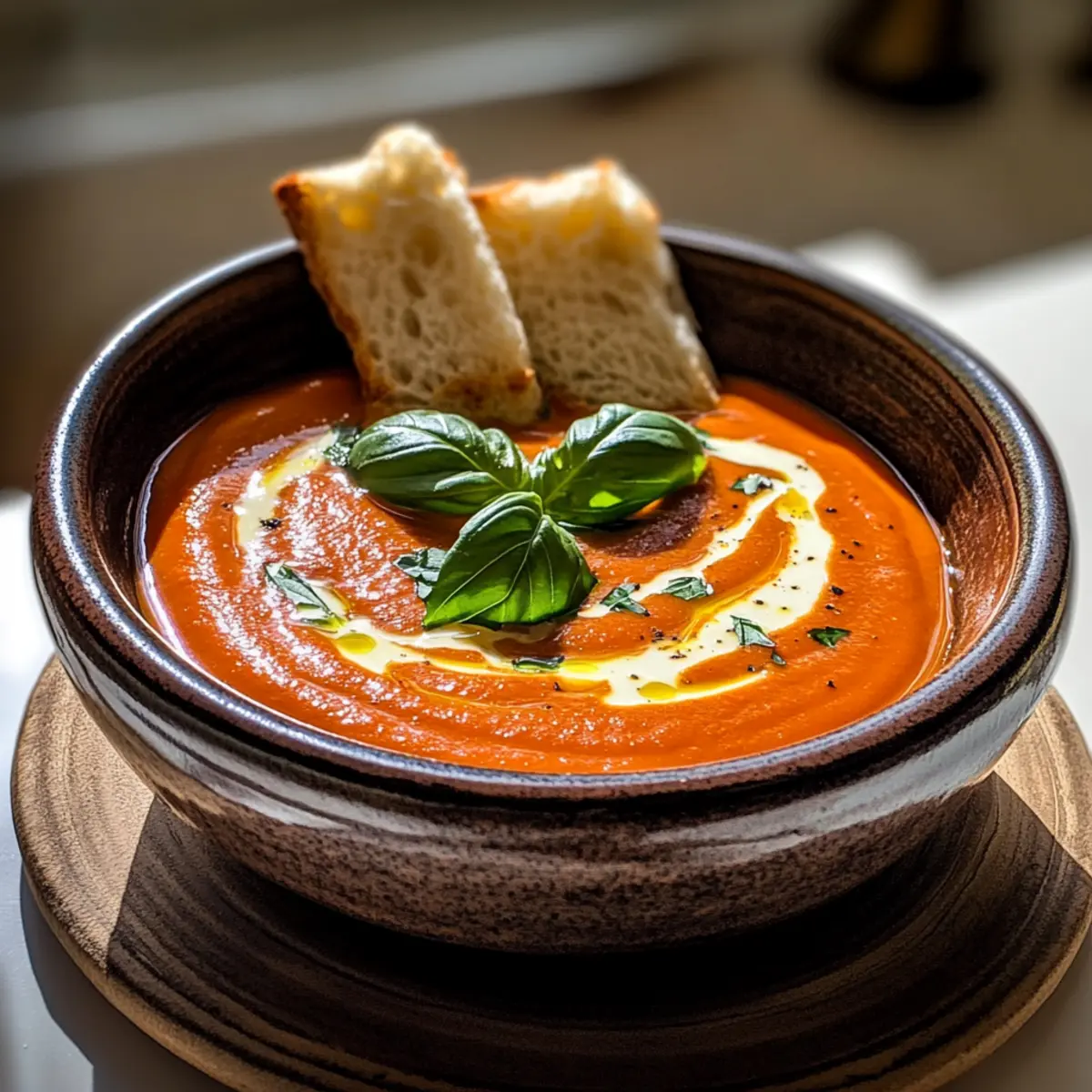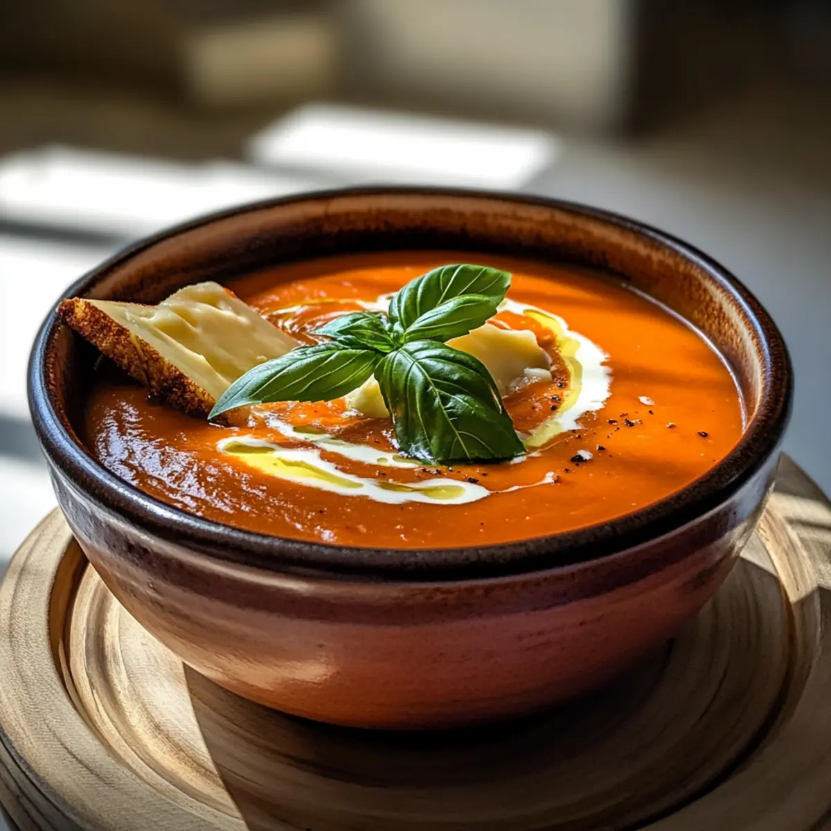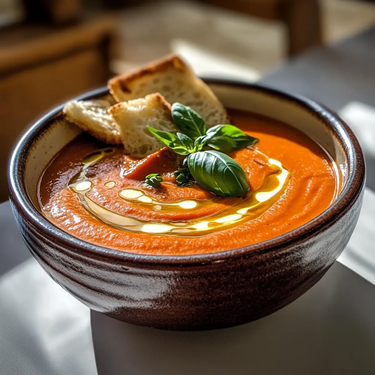 Jump to Recipe Print RecipeAs I finished peeling the last of the charred red peppers, the kitchen was filled with a tantalizing aroma that whisked me back to cozy evenings spent savoring homemade soups with friends. This Rich and Creamy Roasted Red Pepper Gouda Soup is my go-to recipe for those chilly nights when comfort food is a must. With just under an hour of prep time, you’ll deliver a velvety bowl of warmth that boasts smoky, sweet flavors and the luxurious texture of aged gouda—that means no cream is needed! Plus, it’s wonderfully versatile, allowing for easy adaptations like a spicy twist or a veggie-friendly option. curious about how to create your own perfect bowl? Let’s dive in! Why is this soup a must-try? Comforting Warmth: This Roasted Red Pepper Gouda Soup is your answer to chilly evenings, providing a creamy and cozy bowl that wraps you in warmth. Easy to Make: With simple ingredients, you can whip this up in under an hour, making it the perfect weeknight dinner. Flavorful Creations: The smoky sweetness of charred red peppers combined with aged gouda creates a rich flavor that’s sure to impress anyone at your table. Versatile Options: Whether you’re in the mood for a spicy gouda twist or a vegetarian version with vegetable broth, this recipe easily adapts to fit your preferences. Serve with Style: Pair this soup with crusty bread or grilled cheese croutons to elevate the meal for family or guests—just like my Garlic Roasted Vegetables! Crowd Pleaser: Perfect for gatherings, its luxurious profile and comforting aroma will have everyone coming back for seconds. Roasted Red Pepper Gouda Soup Ingredients For the Soup Red Bell Peppers – Adds sweetness and smoky depth; ensure they are well-charred to enhance flavor. Olive Oil – Helps in roasting the peppers and adds richness; can substitute with avocado oil. Kosher Salt – Enhances flavors and aids in roasting; can substitute with table salt, adjusting quantity to taste. Butter – Provides a silky mouthfeel; can use plant-based butter for a dairy-free alternative. Yellow Onion – Adds sweetness and depth; must be sautéed until translucent. Garlic – Offers fragrant undertones; use fresh, minced garlic for the best flavor, with powdered garlic as a potential substitute. All-Purpose Flour – Acts as a thickener to create a roux; whole wheat flour could be a substitute but may alter the flavor. Chicken or Vegetable Broth – Adds depth of flavor; use vegetable broth for a vegetarian option. Smoked Paprika – Introduces a unique smoky flavor profile; regular paprika could be used, but it will lack the smokiness. Fresh Thyme Leaves – Adds an aromatic note; can substitute with dried thyme, using 1/3 of the amount. Black Pepper – For seasoning; adjust according to taste. Aged Gouda – Provides creaminess and flavor; avoid pre-shredded gouda to prevent graininess, or use sharp white cheddar for a different flavor. Heavy Cream (optional) – Increases richness and smoothness; can omit if desired. Fresh Basil – Enhances freshness; use any preferred fresh herb if basil is unavailable. For Serving Grilled Cheese Croutons – Add a delicious crunch; perfect for dipping into the creamy soup. Crusty Bread – A lovely side; provides a textural contrast to the smooth soup. Step‑by‑Step Instructions for Roasted Red Pepper Gouda Soup Step 1: Preheat and Prepare Begin by preheating your broiler to high. Line a baking sheet with foil for easy cleanup. While the broiler heats up, wash and dry four red bell peppers, ensuring they are completely dry to promote even charring. This will bring out their sweet, smoky flavor necessary for the Roasted Red Pepper Gouda Soup. Step 2: Broil the Peppers Coat the cleaned bell peppers lightly with olive oil and sprinkle with kosher salt. Place them on the prepared baking sheet and broil for 12 to 15 minutes, turning every few minutes until the skins are charred and blackened all over. Keep an eye on them to prevent burning. Once done, remove them from the oven—your kitchen will start smelling divine! Step 3: Steam and Peel Transfer the charred peppers to a bowl and cover it with plastic wrap or a lid to trap steam for about 10 minutes. This steaming process helps loosen the skins. Once steamed, carefully peel off the charred skin, remove the stems and seeds, and roughly chop the roasted peppers. Set them aside; their sweet essence is crucial for your Roasted Red Pepper Gouda Soup. Step 4: Sauté the Aromatics In a large pot, melt 3 tablespoons of butter over medium heat. Add one diced yellow onion and cook for about 5 to 6 minutes until it becomes translucent and starts to caramelize, releasing its sweetness. This forms a flavorful base for your soup, giving it depth and richness. Step 5: Build the Roux Stir in 3 minced garlic cloves and cook for an additional minute until fragrant. Next, add 2 tablespoons of all-purpose flour, stirring continuously for about 2 minutes to create a roux. This step is essential as it thickens your Roasted Red Pepper Gouda Soup while also enhancing its creamy texture. Step 6: Incorporate the Broth and Spices Gradually whisk in 4 cups of chicken or vegetable broth, ensuring no lumps remain. Add the chopped roasted peppers, 1 teaspoon of smoked paprika, 1 teaspoon of fresh thyme leaves, and a pinch of black pepper. Bring the mixture to a boil, then reduce the heat and let it simmer uncovered for 15 minutes, allowing the flavors to meld beautifully. Step 7: Blend Until Smooth After simmering, take an immersion blender and blend the soup directly in the pot until it’s completely smooth and creamy. If you don’t have an immersion blender, carefully transfer batches to a blender. This step transforms your soup into the velvety Roasted Red Pepper Gouda Soup you crave, leaving no lumps behind. Step 8: Melt the Gouda Return the pot to low heat and begin adding 1 to 2 cups of shredded aged gouda cheese, a little at a time, while stirring continuously.