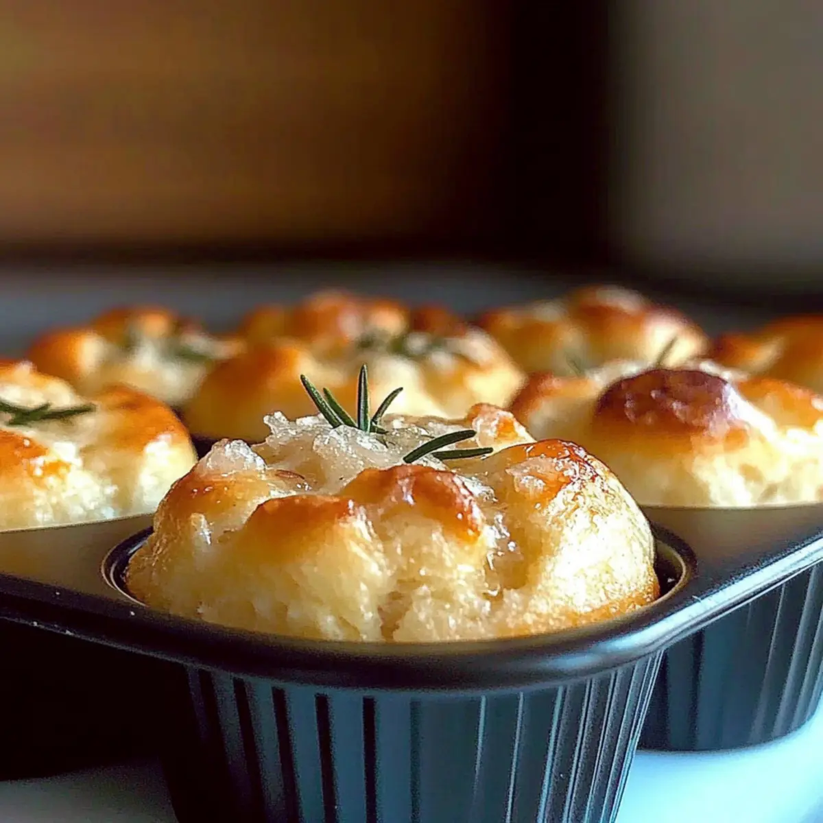 Jump to Recipe Print RecipeThe aroma of freshly baked bread has a magical way of brightening any day, doesn’t it? As soon as I pulled these Rosemary Garlic Focaccia Muffins from the oven, my kitchen filled with a warmth reminiscent of a cozy Italian café. The golden, crispy exterior gives way to a soft and pillowy interior that’s simply irresistible. Not only are these muffins easy to whip up, they’re also incredibly versatile—perfect for any meal or occasion! Whether enjoyed warm straight from the oven or paired with your favorite soup, they’re bound to bring smiles all around the table. With delightful variations like thyme and caramelized onions or a Mediterranean twist with cherry tomatoes and feta, you’ll never tire of this comforting favorite. Ready to dive into the world of homemade goodness? Let’s make some unforgettable Rosemary Garlic Focaccia Muffins together! Why are Rosemary Garlic Focaccia Muffins a must-try? Irresistible Aroma: The moment these muffins bake, the delightful scent of garlic and rosemary fills your kitchen, instantly lifting spirits. Easy Preparation: Crafted with minimal effort, they’re perfect for both beginners and seasoned chefs alike. Versatile Pairing: Enjoy them as a side with Garlic Butter Steak or as a stand-alone snack. Creative Variations: Feel free to explore flavors—try thyme with caramelized onions or Mediterranean toppings like cherry tomatoes and feta! Make Ahead: Prepare the dough in advance and let it rest overnight for extra flavor. These delightful muffins will undoubtedly become a favorite at family gatherings! Rosemary Garlic Focaccia Muffins Ingredients • You’ll love how simple yet flavorful these ingredients are! For the Dough Active Dry Yeast – This is your leavening agent; fresh yeast can be used too, just adjust the quantity! Honey – Acts as a natural sweetener; sugar can work as a substitute but won’t provide the same depth. Warm Water – Essential for hydrating the yeast and flour; keep it between 100-110°F for best results. Bread Flour – This gives structure and chewiness; all-purpose flour is an option but may change the texture slightly. Sea Salt – Enhances the overall flavor; it’s important for balancing sweetness—skip the substitution on this one. Extra-Virgin Olive Oil – Adds both moisture and flavor to your muffins; feel free to substitute with avocado oil if needed. Butter (melted) – For richness; you can omit for a delightful dairy-free version. For the Topping Finishing Salt (Fleur de Sel) – A little sprinkle adds a burst of flavor; regular sea salt can replace it if needed. Fresh Rosemary – Brings an aromatic herby essence; dried rosemary can be used, but reduce the amount due to its potency. Garlic cloves – Infuses the muffins with aromatic depth; if you’re in a pinch, garlic powder works but fresh is always preferred for that robust flavor. Enjoy crafting these Rosemary Garlic Focaccia Muffins, and feel free to let your creativity shine through variations! Step‑by‑Step Instructions for Rosemary Garlic Focaccia Muffins Step 1: Prepare Dough In a mixing bowl, combine active dry yeast, honey, and warm water (100-110°F) and allow it to sit for 5-10 minutes until foamy. Gradually stir in bread flour and sea salt, mixing until a rough dough forms. Transfer the dough onto a floured surface, knead for about 5 minutes, then coat it lightly with olive oil. Place the dough in a lightly oiled bowl, cover it, and refrigerate overnight for enhanced flavor development. Step 2: Shape Muffins The next day, retrieve your chilled dough, and gently deflate it on a floured surface. Divide the dough into 12 equal pieces, shaping each into a round muffin. Grease a muffin pan and place each dough ball into a muffin cup. Cover with a clean kitchen towel and let them rise at room temperature for about 2 hours, until puffed and nearly doubled in size. Step 3: Prepare Topping While the muffins are rising, heat 2 tablespoons of extra-virgin olive oil in a small skillet over medium heat. Add minced garlic and finely chopped fresh rosemary, cooking for about 2-3 minutes until fragrant but not browned. This aromatic mixture will enhance the flavor of your Rosemary Garlic Focaccia Muffins. Set aside to cool slightly before use. Step 4: Bake Preheat your oven to 450°F (232°C), ensuring it’s hot enough for that perfect golden crust. Once preheated, gently dimple each risen muffin with your fingertips, creating small wells for the topping. Spoon the garlic and rosemary mixture onto each muffin, distributing it evenly. Bake for 20 minutes, or until the tops are golden brown and the muffins sound hollow when tapped lightly. Step 5: Finish and Serve As soon as the muffins come out of the oven, brush each with melted butter for a rich finish, and sprinkle with finishing salt (Fleur de Sel) to enhance the taste. Let them cool for a few minutes in the pan before transferring them to a cooling rack. Your Rosemary Garlic Focaccia Muffins are now ready to delight your family and friends! Storage Tips for Rosemary Garlic Focaccia Muffins Room Temperature: Store your muffins in an airtight container at room temperature for up to 1 day for the best texture and flavor. Fridge: If you need to keep them longer, you can refrigerate them for up to 3 days, but they may lose some of their delightful crispiness. Freezer: For longer storage, freeze the muffins in a zip-top bag for up to 3 months. Be sure to squeeze out excess air to prevent freezer burn. Reheating: To refresh your Rosemary Garlic Focaccia Muffins, simply warm them in a 350°F oven for about 5 minutes, restoring that irresistible crust! What to Serve with Rosemary Garlic Focaccia Muffins? There’s something truly special about pairing these warm, delectable muffins with the right companions—they’ll elevate every meal experience. Marinated Olives: Their briny flavor complements the herbal notes in the muffins, providing a delightful contrast tha