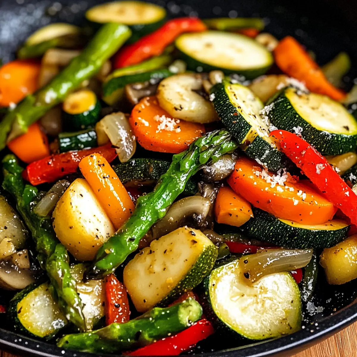 Jump to Recipe Print RecipeIn the hustle and bustle of daily life, it’s easy to overlook the magic of vibrant, sautéed vegetables. This Quick and Flavorful Sautéed Vegetables Recipe transforms a simple selection of seasonal produce into a colorful medley that will elevate any meal. Whether you’re a busy professional or a home-cooking enthusiast, this dish is your ticket to a nutritious dinner on the table in under 15 minutes. Packed with health benefits and rich in flavor, these sautéed delights are not just a side; they can steal the spotlight as a delightful centerpiece. Imagine serving a plate full of crisp, tender vegetables bursting with freshness, inviting smiles from family and friends alike. Ready to get creative with your veggies? Let’s dive into the recipe! Why Choose Sautéed Vegetables? Quick Cooking: In a mere 15 minutes, you can whip up a hearty dish that suits even the busiest schedules. Colorful Presentation: A rainbow of seasonal vegetables not only pleases the palate but also brightens your dining table! Versatile Base: Pair these sautéed veggies with grilled chicken, baked salmon, or a fluffy quinoa pilaf for a complete meal that feels unique every time. Healthy and Nutritious: Low in calories yet high in fiber, this dish helps you stay full without sacrificing flavor. Easy To Customize: Substitute or add in vegetables based on your preferences or what’s in your fridge, turning leftovers into a colorful stir-fry or topping for a fresh salad. Crowd-Pleasing Delight: From family dinners to casual gatherings, these sautéed vegetables are sure to impress everyone at the table! Sautéed Vegetables Recipe Ingredients For the Veggies • Garlic – Provides that irresistible aromatic flavor; you can substitute with garlic powder (½ tsp works well). • Carrots – Adds a touch of natural sweetness and crunch; try parsnips for a different flavor profile. • Asparagus – Offers a fresh, tender bite; green beans can serve as a suitable replacement. • Red Bell Pepper – Contributes vibrant color and sweetness; feel free to swap in yellow or orange bell peppers. • Zucchini – Enhances the dish with its mild flavor; yellow squash works perfectly as a substitute. • Mushrooms – Known for their earthy umami flavor; cremini or shiitake mushrooms could elevate the dish too. • Green Onions – Provides a mild onion flavor; chives or shallots make for great alternatives. For Sautéing • Extra-Virgin Olive Oil – Essential for sautéing and adds richness; canola or grapeseed oils are good substitute options. For Finishing Touches • Parmesan Cheese – Adds savory umami flavor; feta offers a tangy twist if you’d like a change. • Lemon Juice – Provides a refreshing brightness; lime juice is a wonderful alternative. • Seasonings – Sea salt, pepper, onion powder, crushed red pepper flakes, Italian herbs, and smoked paprika enhance the flavor; adjust according to your taste preferences. With these ingredients in hand, you’re on your way to creating a delightful sautéed vegetables recipe that not just satisfies your taste buds but also lights up your dinner table. Happy cooking! Step‑by‑Step Instructions for Sautéed Vegetables Recipe Step 1: Prepare the Vegetables Start by washing, drying, and uniformly chopping all your seasonal vegetables, such as asparagus, bell peppers, and zucchini. Aim for similar-sized pieces to ensure even cooking. As you chop, set aside a cutting board and knife for a clean workspace, ready for sautéing your vibrant sautéed vegetables. Step 2: Heat the Olive Oil In a large skillet, pour in a generous splash of extra-virgin olive oil and place it over medium-high heat. Allow the oil to heat until it shimmers—this typically takes about 1-2 minutes. As the oil glistens, it’s signaling that it’s the perfect moment to start enhancing those gorgeous flavors in your sautéed vegetables. Step 3: Sauté the Garlic Add minced garlic to the hot oil and sauté for about 30 seconds, stirring continuously. You’ll notice the aromatic scent filling your kitchen, signaling that the garlic is ready when it’s fragrant and lightly golden—just be careful not to let it burn as it can acquire a bitter taste. This step lays the flavorful foundation for your vegetable dish. Step 4: Cook the Carrots Next, incorporate the chopped carrots into the skillet and stir them for 2-3 minutes. You want them to begin softening while retaining a slight crunch—a tender-crisp texture is perfect. Keep an eye on the vibrant color to ensure they don’t overcook as they form the base of your sautéed vegetables recipe. Step 5: Add Asparagus and Zucchini Now, it’s time to introduce the asparagus and zucchini to the skillet. Stir the mixture for another 3-5 minutes, allowing the vegetables to mingle and soften together. You’ll notice that the colors brighten and become tender-crisp—a lovely sight that promises delicious flavors in your final sautéed vegetables dish. Step 6: Mix in Bell Peppers and Mushrooms Add the chopped bell peppers and mushrooms into the skillet, stirring well. Cook for an additional 2-3 minutes until the mushrooms have released their moisture and the peppers are vibrant, creating an inviting aroma. This addition boosts the visual appeal and deeply enhances the flavor profile of your sautéed vegetables recipe. Step 7: Season the Vegetables Now it’s time to elevate the taste: season your sautéed vegetables with sea salt, black pepper, onion powder, crushed red pepper flakes, Italian herbs, and smoked paprika. Stir everything together until the vegetables are well-coated and flavorful—this crucial step truly brings the sautéed vegetables to life with its harmonious flavors. Step 8: Finish with Lemon and Cheese Remove the skillet from heat and drizzle freshly squeezed lemon juice over the vegetables, combining them gently. Sprinkle a shower of Parmesan cheese, letting it melt slightly as you toss everything together.