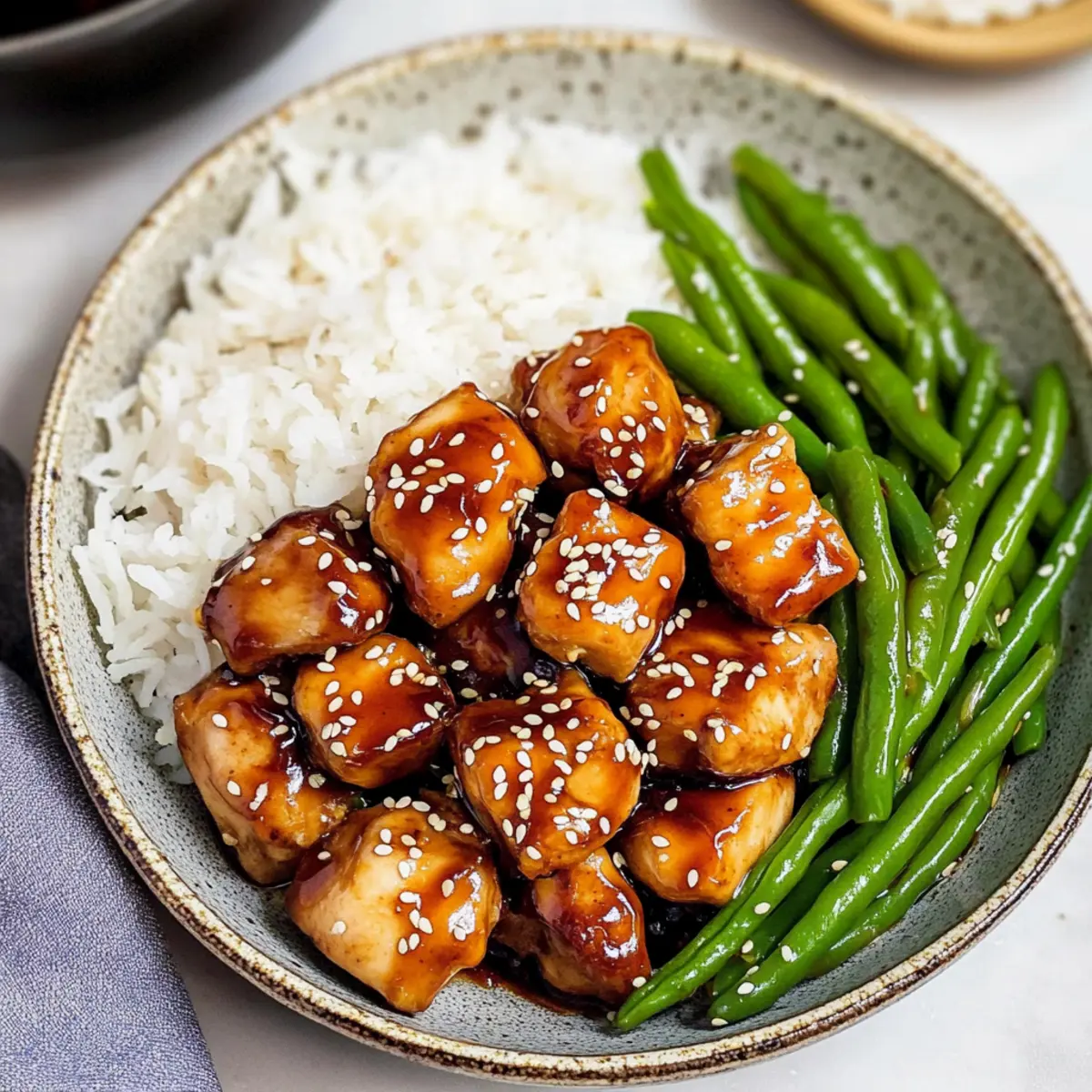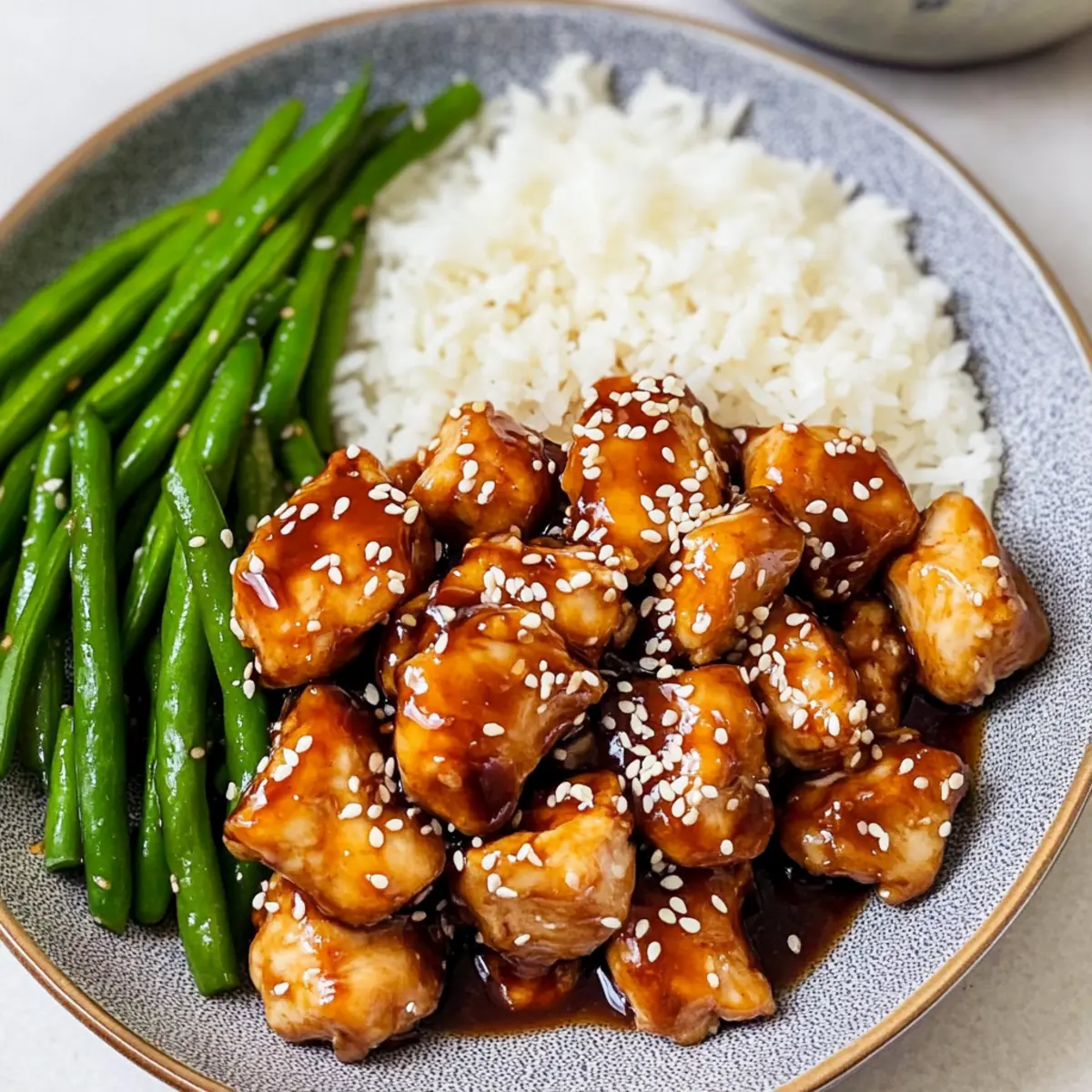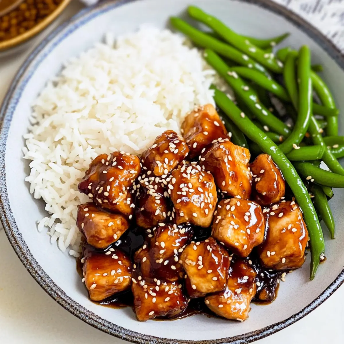 Jump to Recipe Print RecipeAs I stood in my kitchen, the aroma of sizzling chicken mixed with savory sesame wafted through the air, instantly igniting happy memories of those takeout nights. This Healthy Sesame Chicken recipe transforms a beloved classic into a quick, guilt-free dinner, perfect for busy weeknights. In just 25 minutes, you’ll create a mouthwatering dish that’s not only gluten-free but also low in carbs and packed with protein. Whether you’re looking to impress guests or simply want to treat yourself to something nutritious, this delightful recipe will satisfy your cravings without sacrificing flavor. Are you ready to discover just how easy healthy cooking can be? Let’s dive in! Why is Healthy Sesame Chicken a must-try? Quick Preparation: You’ll whip this dish up in just 25 minutes, making it perfect for hectic weeknights without sacrificing quality. Flavorful Recipe: The savory sesame sauce creates a delightful harmony that rivals your favorite takeout and is sure to please everyone at the table. Nutritious Ingredients: Packed with lean protein from chicken breasts and enhanced with healthy fat from avocado oil, every bite keeps you satisfied and guilt-free. Versatile Options: Want to mix it up? You can easily swap in tofu or other veggies to cater to your dietary preferences! For a delicious side, consider serving this dish with a refreshing cucumber salad or steamed broccoli. This Healthy Sesame Chicken truly stands out as a wholesome and flavorful alternative to traditional fast food! Healthy Sesame Chicken Ingredients • Discover what you need for a guilt-free delight! For the Chicken Chicken breasts – the main protein source; swap for boneless chicken thighs for extra juiciness. Avocado oil – enhances flavor and provides healthy fats; olive oil can be used as a substitute. For the Sauce Coconut aminos – provides a savory, umami flavor with less sodium than soy sauce; low-sodium soy sauce works in a pinch. Honey – a natural sweetener that balances savory notes; maple syrup can substitute for a vegan option. Toasted sesame oil – essential for that authentic sesame flavor; do not replace with regular sesame oil. Ground ginger – adds warmth and depth; fresh ginger can be substituted one-for-one if available. Garlic cloves – deepens flavor; feel free to add more for extra punch. Rice vinegar – brightens the sauce; if unavailable, just add a splash more coconut aminos. Black pepper – adds a touch of spice; adjust to your taste preference. Lime zest and juice – brings a refreshing element; omit if you prefer a less tangy finish. For the Garnish & Sides Sesame seeds – toast them for a crunch and visual appeal; they are a lovely finishing touch. Cooked green beans – serve as a nutritious side; broccoli or your favorite veggies work beautifully, too. Cooked white rice – a hearty base for the dish; replace with quinoa or cauliflower rice for a lower-carb option. Get ready to experience a delicious Healthy Sesame Chicken that satisfies your cravings for something special without the guilt! Step‑by‑Step Instructions for Healthy Sesame Chicken Step 1: Prepare the Chicken Begin by cutting 1 pound of chicken breasts into 1-inch cubes, ensuring uniform pieces for even cooking. This preparation step not only helps the chicken cook faster but also allows the savory flavors to penetrate each bite. Set the diced chicken aside while you move on to the next steps. Step 2: Cook Rice and Beans In a medium-sized pot, cook 1 cup of white rice and steam about 1 cup of green beans according to the package instructions. This will usually take about 15-20 minutes. Keep an eye on the timer to ensure everything is ready to complement your Healthy Sesame Chicken, delivering a complete meal. Step 3: Heat the Oil In a large skillet, heat 2 tablespoons of avocado oil over medium-high heat for about 1 minute. You’ll know it’s ready when the oil shimmers invitingly. This high-heat cooking method will help give the chicken a delicious sear and lock in its moisture for a tender final dish. Step 4: Sauté the Chicken Add the prepared chicken to the hot skillet, spreading it out evenly. Sauté for about 10-12 minutes, stirring occasionally, until the chicken is golden brown on all sides and cooked through. Check for doneness by cutting a piece in half; it should be opaque and no longer pink inside. Step 5: Whisk the Sauce While the chicken cooks, whisk together the sauce ingredients in a separate bowl: coconut aminos, honey, toasted sesame oil, ground ginger, minced garlic, rice vinegar, black pepper, and lime juice. This should take about 2-3 minutes. Ensure everything is well combined to create a flavorful marinade that will coat the chicken beautifully. Step 6: Set the Chicken Aside Once the chicken has cooked through, remove it from the skillet and set it aside on a plate. This step is essential to prevent overcooking. It allows you to focus on creating the glossy sauce that will bring your Healthy Sesame Chicken to life. Step 7: Cook the Sauce Pour the prepared sauce into the same hot skillet over medium heat. Allow it to cook for 3-5 minutes, stirring constantly to prevent it from burning. You’re aiming for a bubbling, thickened consistency; this indicates the flavors have melded perfectly and it’s ready to coat your chicken. Step 8: Combine Chicken and Sauce Return the cooked chicken to the pan, tossing it gently in the luscious sauce to ensure every piece is coated evenly. Let it simmer in the sauce for an additional minute or two, allowing the chicken to absorb those delicious sesame flavors. Step 9: Serve and Enjoy Finally, serve your Healthy Sesame Chicken over the cooked rice and alongside the steamed green beans. Garnish with toasted sesame seeds for an appealing crunch and texture. This vibrant plate is now ready to impress your family or guests with both its flavor and health benefits! Storage Tips for Healthy Sesame Chicken Fridge: Store leftove