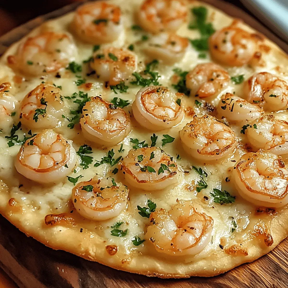Jump to Recipe Print RecipeAs I pulled the golden flatbread from the oven, the aroma of garlic and butter instantly enveloped my kitchen, whisking me away to a quaint seaside eatery. This Shrimp Scampi Flatbread is my favorite way to elevate a beloved classic into something uniquely delightful. With its crispy base and tender shrimp, it’s not just a meal; it’s a showstopper that can turn any ordinary evening into a special occasion. Quick to prepare, this dish effortlessly combines gourmet flair with the comfort of home-cooked goodness, making it perfect for both casual family dinners and festive gatherings. So, if you’re tired of the same old dinner routine, why not spice things up with this versatile, flavorful flatbread? Ready to transform your cooking experience? Let’s dive in! Why is this Shrimp Scampi Flatbread special? Elevated Comfort Food: This dish takes traditional comfort food to a new level with its crispy flatbread texture topped with succulent shrimp. Quick & Effortless: With just a few simple steps, you can prepare this gourmet delight in no time—perfect for busy weeknights! Bursting with Flavor: The blend of garlic, butter, and fresh lemon creates an explosion of taste that will leave your taste buds dancing. Versatile Toppings: Customize your flatbread with fresh herbs or sprinkle on some chili oil for a personal touch, making it suitable for any palate. Party Pleaser: Impress your guests at gatherings with this elegant yet easy-to-make dish; it’s sure to be a favorite! If you’re looking for more quick seafood recipes, check out Garlic Butter Shrimp for another delightful option! Shrimp Scampi Flatbread Ingredients • Dive into a world of flavor with these must-have ingredients! For the Flatbread Flatbread – Store-bought offers convenience, but homemade can add a personal touch. For the Shrimp Mixture Shrimp – Use fresh or frozen shrimp; be sure they’re peeled and deveined for the best bite. Garlic – Fresh garlic brings a stronger flavor, but garlic powder is a quick alternative. Butter – Adds rich moisture; olive oil is a lighter substitute if preferred. Lemon Juice – Infuses bright acidity; feel free to substitute with lime juice for a different twist. For the Toppings Fresh Herbs (optional) – Garnish with parsley or basil to elevate the flavor and presentation. Parmesan Cheese (optional) – This savory cheese adds depth; you can skip it for a lighter option. Chili Oil (optional) – Add a drizzle for heat; adjust to your spice preference or omit for a tamer flavor. Step‑by‑Step Instructions for Shrimp Scampi Flatbread Step 1: Prepare the Shrimp In a medium skillet, melt 2 tablespoons of butter over medium heat. Add 1 pound of peeled and deveined shrimp along with 4 minced garlic cloves. Sauté for about 3-4 minutes until the shrimp turn pink and opaque. Remove from heat, then drizzle with the juice of 1 lemon, stirring to combine the garlic and buttery flavors for your Shrimp Scampi Flatbread. Step 2: Preheat the Oven While the shrimp is cooking, preheat your oven to 350°F (175°C). This ensures your flatbread warms up perfectly, becoming slightly crispy and golden. Arrange the flatbread on a baking sheet lined with parchment paper, ready to absorb all the flavorful toppings once the shrimp are prepared. Step 3: Prepare Flatbread Once the oven is preheated, place the flatbread in the oven and warm it for about 5-7 minutes. Keep an eye on it; you want it to be warm and just beginning to crisp up, creating the ideal base for the delicious shrimp mixture that will follow. Step 4: Assemble Flatbread Remove the flatbread from the oven and carefully layer the sautéed shrimp mixture over it, spreading it out evenly. Ensure that the shrimp are well-distributed to achieve that perfect bite with every piece of your Shrimp Scampi Flatbread. The warm flatbread will help keep the shrimp juicy and flavorful. Step 5: Add Toppings Sprinkle fresh herbs, such as chopped parsley or basil, over your assembled flatbread for a burst of color and flavor. If you’re feeling indulgent, grate fresh Parmesan cheese on top and drizzle with chili oil for an exciting kick. These optional toppings enhance your dish, making it visually appealing as well as delicious. Step 6: Final Bake Return the fully assembled flatbread to the oven for an additional 2-3 minutes. This final bake allows the toppings to meld together, creating a perfectly balanced flavor profile while ensuring everything is heated through. You’ll know it’s ready when the cheese melts slightly and the edges of the flatbread start to brown. Step 7: Serve Once baked, remove the Shrimp Scampi Flatbread from the oven and slice it into portions. Garnish with extra herbs if desired, and serve immediately while hot. The delicious aroma will invite everyone to the table, making it the perfect dish to impress your guests or enjoy on a cozy night in. Make Ahead Options These Shrimp Scampi Flatbreads are a fantastic option for meal prep, allowing you to enjoy gourmet flavors with minimal effort during busy weeknights! To prep ahead, sauté the shrimp with the garlic and butter, then let it cool before refrigerating it in an airtight container for up to 3 days. You can also prepare the flatbread by warming it slightly in the oven and storing it at room temperature wrapped in foil. When you’re ready to serve, simply reheat the shrimp mixture and assemble the flatbread, returning it to the oven for 2-3 minutes to meld those delicious flavors. This way, your Shrimp Scampi Flatbread will be just as delightful, saving you valuable time while ensuring a satisfying meal! How to Store and Freeze Shrimp Scampi Flatbread Room Temperature: Shrimp Scampi Flatbread is best enjoyed fresh, but if you have leftovers, leave them at room temperature for no more than 2 hours to avoid spoilage. Fridge: Store any leftover flatbread in an airtight container in the refrigerator for up to 2 days. Reheat in the oven to regain i