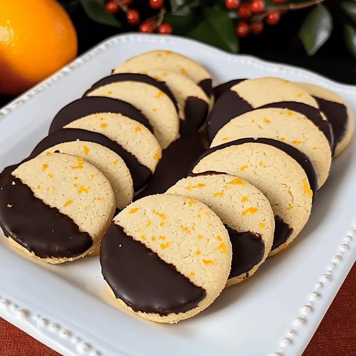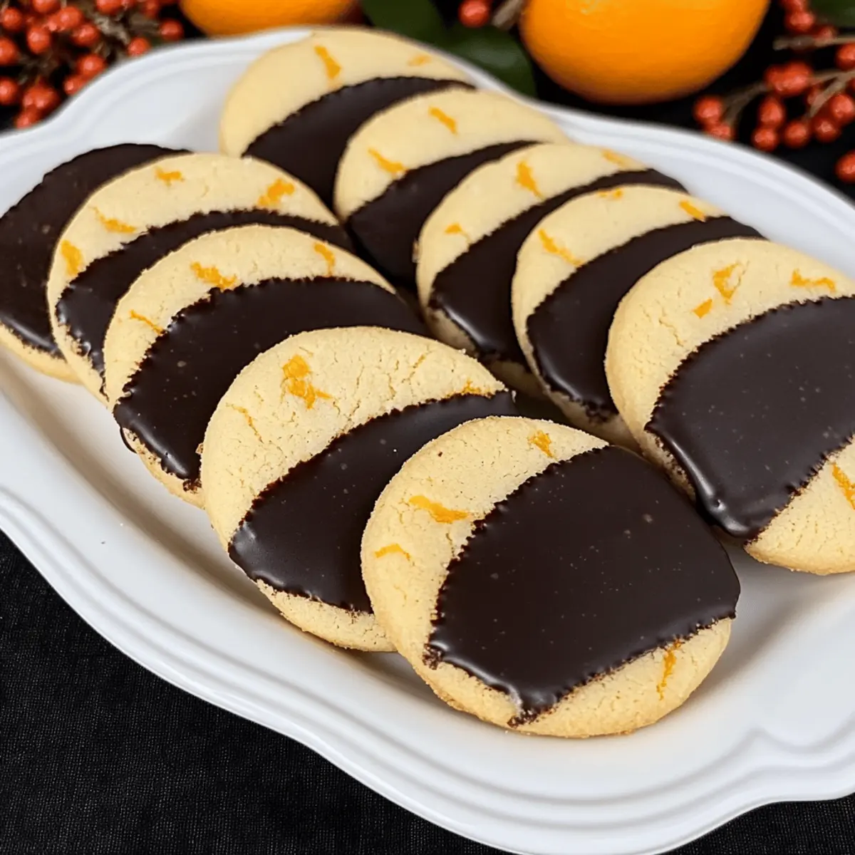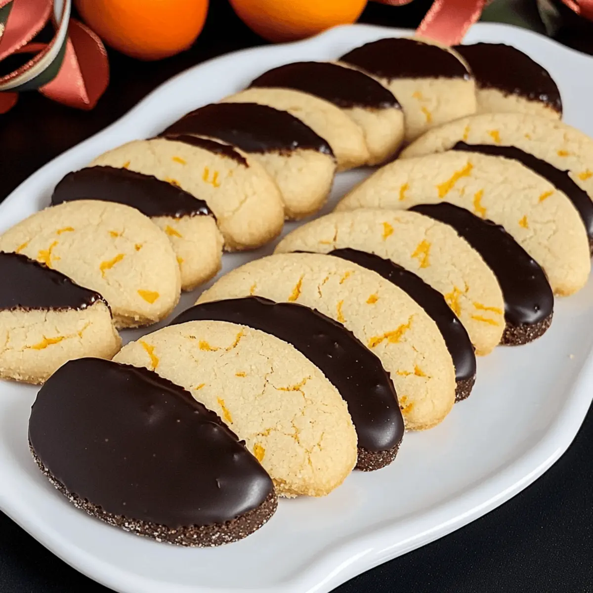 Jump to Recipe Print RecipeAs the aroma of oranges fills my kitchen, I can’t help but feel a rush of nostalgia for those cozy holiday gatherings. There’s something truly magical about baking a batch of Slice and Bake Chocolate Orange Shortbread Cookies that transports me back to cherished moments spent with loved ones. These tender cookies, infused with refreshing orange zest and dipped in rich dark chocolate, are not only easy to make but also a delightful treat for gifting and sharing. With their melt-in-your-mouth texture, they’re sure to be a hit on any festive cookie tray. Ready to create some sweet memories? Let’s dive into this delectable recipe that promises warmth and joy in every bite! Why is This Cookie Recipe a Must-Try? Unmatched Simplicity: With just a few common ingredients, these cookies come together effortlessly, making them perfect for bakers of all skill levels. Zesty Punch: The fresh orange zest truly elevates the flavor, providing a vibrant contrast to the rich dark chocolate coating. Ideal for Gifting: Wrapped in decorative tins or served on a festive platter, these cookies make a thoughtful and delicious gift for friends and family. Time-Saving Delight: The slice-and-bake aspect allows you to prepare the dough in advance, ensuring a hassle-free baking experience when you need it most. Versatile Treat: Feel free to experiment—you can swap in white chocolate or even add nuts for an exciting twist! Enjoy these with a mug of Pink Hot Chocolate for the ultimate cozy experience! Slice and Bake Chocolate Orange Shortbread Cookie Ingredients • Get ready to gather the scrumptious ingredients for your new favorite cookie recipe! For the Cookies Unsalted Butter – Provides rich flavor and moisture; can substitute with salted butter but reduce added salt. Confectioners’ Sugar – Sweetens and tenderizes the dough; granulated sugar can be used, but it may alter texture slightly. Orange Zest – Infuses cookies with a refreshing citrus aroma; fresh is ideal, though bottled adds flavor in a pinch. Salt – Enhances all flavors; essential for balance, low-sodium alternatives work if necessary. Vanilla Extract – Adds depth to the cookies; clear vanilla can substitute if needed. All-Purpose Flour – Forms the cookie’s structure; whole wheat flour yields a denser treat when adjusted. Dark Melting Wafers – For dipping, providing a rich chocolate coating; milk chocolate can substitute for a sweeter finish. Now that you’ve lined up all the ingredients, you’re one step closer to creating these delightful Slice and Bake Chocolate Orange Shortbread Cookies that will surely fill your home with warmth and sweetness! Step‑by‑Step Instructions for Slice and Bake Chocolate Orange Shortbread Cookies Step 1: Prepare the Dough In a large mixing bowl, whisk together the all-purpose flour and salt, ensuring even distribution. In a stand mixer, cream the unsalted butter and confectioners’ sugar together until light and fluffy, about 3–5 minutes. Add in the orange zest and vanilla extract, mixing until fully incorporated. Gradually add the flour mixture, blending until a soft dough forms, ensuring no dry pockets remain. Step 2: Form and Chill Once your dough is ready, turn it out onto a clean work surface and shape it into a log about 12 inches long and 2 inches wide. Wrap the log tightly in plastic wrap, ensuring no air escapes. Refrigerate for at least 2 hours, or for the best flavor, let it chill overnight. This chilling step is crucial as it allows the flavors to meld and helps the cookies maintain their shape while baking. Step 3: Bake Preheat your oven to 325ºF (160ºC). Using a sharp knife, slice the chilled dough into 1/4-inch thick rounds. Place each cookie about 1 inch apart on a parchment-lined baking sheet. Bake in the preheated oven for 15–17 minutes, or until the edges are just firm and the centers are set but not browned. Remove the cookies from the oven and let them cool on a wire rack before dipping. Step 4: Dip in Chocolate While the cookies cool, prepare your dark melting wafers according to the package instructions, typically by melting in 15-second intervals in the microwave, stirring after each interval. Once melted, dip each cookie halfway into the smooth chocolate, allowing excess to drip off. Place the dipped cookies back onto the parchment paper to set. This final touch transforms your Slice and Bake Chocolate Orange Shortbread Cookies into a delightful treat. Make Ahead Options These Slice and Bake Chocolate Orange Shortbread Cookies are a dream for meal prep! You can prepare the cookie dough and refrigerate it for up to 48 hours before baking, which allows the flavors to deepen beautifully. Simply shape the dough into a log, wrap it tightly in plastic wrap, and store it in the fridge. When you’re ready to bake, slice the dough into rounds and proceed with the usual baking instructions. For best results, make sure the dough is well-chilled before slicing to maintain that lovely cookie shape. This way, you’ll have fresh, melt-in-your-mouth cookies ready in no time, perfect for busy weeknights or unexpected guests! How to Store and Freeze Slice and Bake Chocolate Orange Shortbread Cookies Airtight Container: Store the cookies in an airtight container at room temperature for up to 2 weeks to keep them fresh and delicious. Freezer: For longer storage, freeze the unbaked dough in plastic wrap for up to 3 months; simply slice and bake when you’re ready to indulge! Reheating: If you have leftover baked cookies, reheat them in a warm oven for a few minutes to bring back their soft texture before serving. Cooling Time: Always ensure cookies cool completely before storage to maintain their melt-in-your-mouth texture and prevent moisture buildup. Expert Tips for Slice and Bake Chocolate Orange Shortbread Cookies Quality Ingredients: Use high-quality unsalted butter for a richer flavor and better texture. It makes all the difference in your co