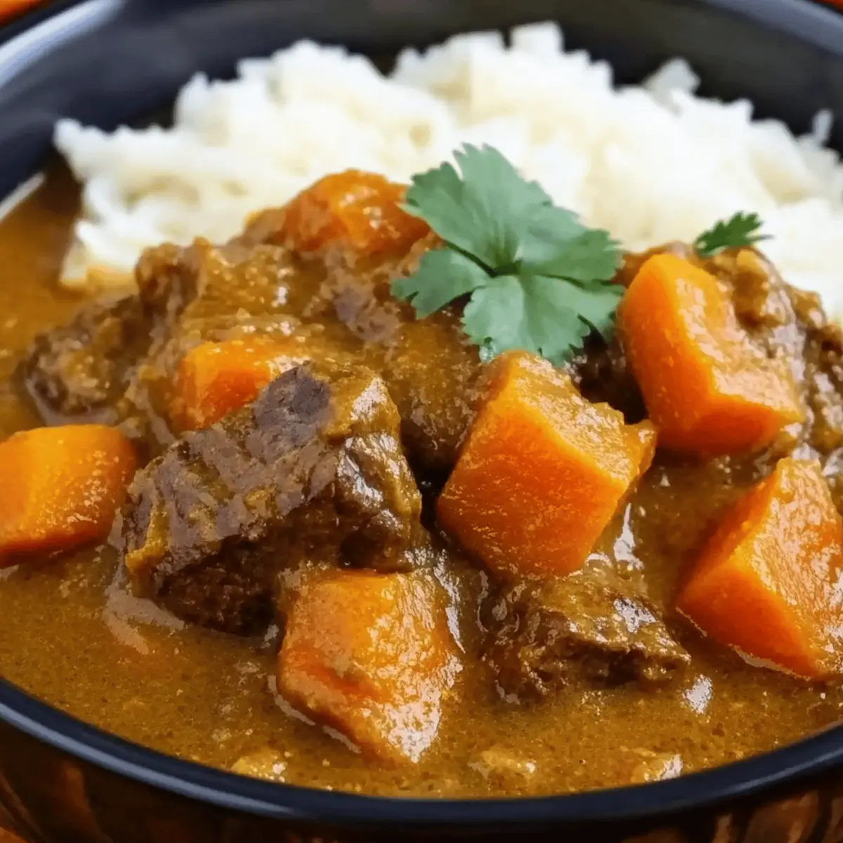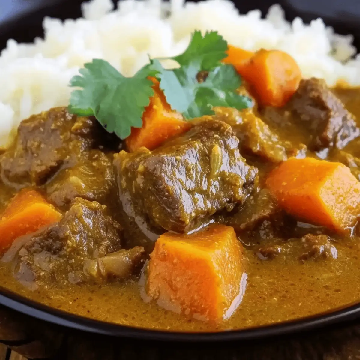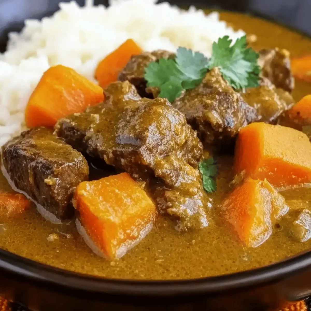 Jump to Recipe Print RecipeAs the wind whistles through the trees, I can’t help but recall the first time I set my slow cooker to work for this Slow Cooker Coconut Curry Beef Stew. The combination of tender beef, creamy coconut milk, and aromatic spices filled my kitchen with a warmth that felt like a hug. This hearty, gluten-free meal isn’t just easy to prepare; it also allows you to focus on your day while it simmers lovingly in the background. With minimal hands-on time, you can serve your family a comforting dish that carries a burst of flavor and nutrition without sacrificing your precious hours. Do you see why this stew has become a staple in my home? Let’s dive into the recipe that brings such satisfaction and smiles around the dinner table! Why is this stew a game changer? Comforting and Hearty: This Slow Cooker Coconut Curry Beef Stew embraces you with its rich texture and heartwarming flavors, making it perfect for chilly nights. Hands-Free Cooking: Simply set your slow cooker and let it work its magic while you focus on your day, freeing you from the stress of meal prep. Customizable Delight: Want a vegetarian twist? Easily substitute beef with robust veggies like mushrooms or cauliflower for a delightful change-up. Velvety Richness: The creaminess of coconut milk combined with the tenderness of the beef creates an irresistible dish that melts in your mouth. Family Favorite: This stew not only nourishes but also impresses, ensuring smiles around the table—perfect for busy weeknights or cozy gatherings. If you’re looking for more cozy meals, check out my delicious Zucchini Ground Beef or explore a savory Ricotta Beef Stuffed option! Slow Cooker Coconut Curry Beef Stew Ingredients For the Beef • Boneless Beef Chuck – This provides tenderness and flavor; feel free to swap it for brisket or chicken thighs for a lighter option. For the Cooking Fats • Butter – Perfect for browning the beef and enhancing the stew’s richness. • Olive Oil – Adds additional depth of flavor; you can also use just one type of fat if preferred. For the Base Flavors • Onions – They provide a savory foundation; shallots can be used for a slightly sweeter taste. • Garlic Powder – Infuses the stew with savory notes; you can use fresh garlic for a more robust flavor. For the Vegetables • Sweet Potato – Offers natural sweetness and creaminess; try substituting with regular potatoes or butternut squash. • Carrots – Adds vibrant color and sweetness; parsnips or turnips can be substituted for a different flair. For the Creamy Sauce • Coconut Milk – The star of this dish that adds velvety richness; using light coconut milk can reduce the calories. • Curry Powder – It delivers the primary flavor; adjust the amount according to your heat preference. • Ground Ginger – Provides warmth and spice; feel free to use fresh ginger if you want a more intense flavor. • Ground Coriander – Enhances the curry flavor; omit if you’re not familiar with it, but it truly adds depth. For Seasoning • Sugar – Balances savory and sweet flavor notes; honey or maple syrup can work as great alternatives. • Fish Sauce – Introduces umami depth; for a vegetarian spin, substitute with soy sauce or coconut aminos. • Salt and Pepper – Essential for seasoning to taste, ensuring your stew is perfectly balanced. By gathering these ingredients for your Slow Cooker Coconut Curry Beef Stew, you’ll create a delightful dish that warms your heart and fills your belly. Enjoy! Step‑by‑Step Instructions for Cooker Coconut Curry Beef Stew Step 1: Prepare the Beef Begin by cutting the boneless beef chuck into bite-sized cubes, then season with salt and pepper. In a large skillet, heat a mixture of butter and olive oil over medium-high heat. Brown the beef in batches for about 4-5 minutes per side until golden brown, ensuring not to overcrowd the pan, which enhances the flavor. Step 2: Layer in Slow Cooker Once all the beef is browned, transfer it to your slow cooker. Add the chopped onions, sweet potatoes, and carrots, creating a colorful layer of vegetables. The sweet potatoes should be diced into similar-sized pieces as the beef for even cooking. This cozy base is essential for your Slow Cooker Coconut Curry Beef Stew. Step 3: Mix Sauce In a medium bowl, combine the creamy coconut milk, curry powder, ground ginger, ground coriander, garlic powder, sugar, and fish sauce. Whisk these ingredients together until smooth, ensuring the spices are well incorporated. This luscious sauce will bring the rich flavors to your stew, so it’s important to mix thoroughly. Step 4: Combine Pour the prepared sauce over the beef and vegetables in the slow cooker, ensuring everything is evenly coated. Give the mixture a gentle stir to distribute the sauce, creating a harmonious blend of flavors. This step sets the stage for your Cooker Coconut Curry Beef Stew to develop its delicious aroma as it cooks. Step 5: Cook Set your slow cooker to low for 8-10 hours or high for 5-6 hours, allowing the stew to simmer until the beef is tender. The long cooking time helps the flavors meld beautifully, filling your home with a mouthwatering scent. Check periodically to ensure everything is cooking evenly. Step 6: Taste and Serve As you approach the end of the cooking time, taste the stew and adjust the seasoning with more salt, pepper, or even a pinch of cayenne if you prefer extra heat. Once ready, serve your warm Cooker Coconut Curry Beef Stew over a bed of fluffy jasmine rice or with naan for a deliciously comforting meal. Cooker Coconut Curry Beef Stew Variations Feel free to personalize this delightful stew with variations that enhance its flavor and fit your dietary preferences! Spicy Kick: Add fresh chili peppers or increase the curry powder for a heartwarming heat that warms the soul. Vegetarian Delight: Substitute the beef with hearty vegetables like cauliflower, mushrooms, or eggplant for a nourishing plant-
