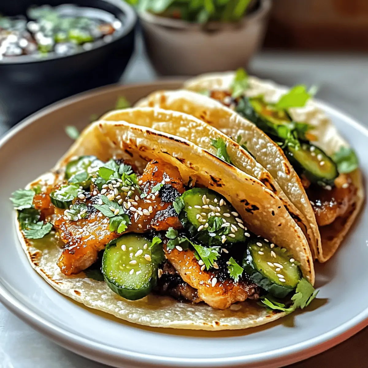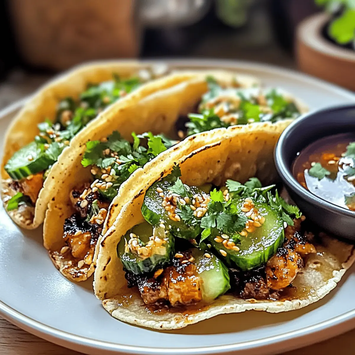 Jump to Recipe Print RecipeAs I flipped through my favorite food blogs, I stumbled upon a vibrant mashup that caught my attention—Smash Dumpling Tacos. This ingenious recipe marries the beloved flavors of dumplings with the explosion of crispy tacos, creating an easy weeknight dinner option that’s both enticing and fun to make! With juicy pork nestled in perfectly fried tortillas and a zesty topping of quick-pickled cucumbers, this dish offers a playful take on traditional comfort food. Plus, it comes together in a flash, meaning you can say goodbye to those quick, uninspired fast food runs. I’m excited to show you how to whip up this delightful meal that will leave your family asking for seconds. Ready to embark on a savory adventure? Let’s dive in! Why Are Smash Dumpling Tacos a Must-Try? Crispiness meets juiciness: These tacos boast a delightful crunch outside, while the savory pork filling keeps every bite juicy and satisfying. Quick prep time: This recipe allows you to whip up a delicious meal in under 30 minutes—perfect for busy weeknights! Flavor fusion: Imagine the comforting taste of dumplings packed into a taco—an unforgettable combination that’s bound to impress. Versatile and customizable: Feel free to switch the filling or add more toppings like fresh herbs for a unique twist. Try pairing them with Baked Smashed Potatoes for a side dish that complements this layered flavor experience. Guaranteed crowd-pleaser: These Smash Dumpling Tacos are sure to disappear fast, leaving everyone asking for the recipe. Perfect for family dinners or casual gatherings! Smash Dumpling Tacos Ingredients For the Filling • Ground Pork – Provides hearty protein; substitute with ground chicken or turkey for a leaner option. • Garlic – Adds a fragrant kick; fresh is best, but powdered works in a pinch. • Ginger – Brings warmth and depth; grated ginger enhances the flavor significantly. • Soy Sauce – Enhances the umami flavor; low-sodium versions work well to cut back on salt. For the Tortillas • Mini Tortillas – Serve as the crispy base; opt for corn for a gluten-free choice or flour for classic flavor. For the Pickled Cucumbers • Cucumbers – Add freshness and a zesty crunch; substitute with radishes for a spicier alternative. • Rice Vinegar – Ideal for quick pickling; it gives a perfect tangy contrast to the savory tacos. For the Dipping Sauce • Dumpling Dipping Sauce – Enhances the flavor profile; a simple soy sauce mix can also be used. • Sesame Oil – A splash brings a nutty richness; it’s perfect if you want to elevate your sauce. These Smash Dumpling Tacos are not just a meal; they’re an adventure in every bite! Step‑by‑Step Instructions for Smash Dumpling Tacos Step 1: Prepare the Filling In a mixing bowl, combine 1 pound of ground pork with minced garlic, grated ginger, and soy sauce, ensuring all ingredients are evenly mixed. Let this flavorful filling set aside for about 10 minutes, allowing the ingredients to meld together well. You’ll want the mixture to be fragrant and cohesive before assembling your Smash Dumpling Tacos. Step 2: Assemble Tacos Grab mini tortillas and place a generous spoonful of the pork filling in the center of each. Using your hands, gently press the filling down, shaping it into a patty while folding the tortilla edges slightly for support. This shaping should take about 5 minutes, giving you easy-to-handle tacos ready for frying. Step 3: Heat the Oil In a large skillet, pour in a generous amount of vegetable oil and heat over medium-high heat for about 5 minutes. You’re looking for the oil to shimmer, indicating it’s hot enough for frying. This step is crucial for achieving that crispy texture we crave in the Smash Dumpling Tacos, so don’t rush! Step 4: Fry the Tacos Carefully place the assembled tacos in the hot oil, working in batches to avoid overcrowding. Fry for about 3-4 minutes on each side, until they are golden brown and crispy. Use a slotted spoon to flip them gently, ensuring they maintain their shape. Once cooked, transfer them to a plate lined with paper towels to drain excess oil. Step 5: Quick-Pickle Cucumbers While the tacos are frying, prepare the quick-pickled cucumbers. Slice cucumbers thinly and immerse them in a mixture of rice vinegar, sugar, and a pinch of salt for about 15-20 minutes. Keep an eye on them; they should turn a vibrant color and absorb the tangy flavor, complementing the Smash Dumpling Tacos beautifully. Step 6: Serve and Garnish Once the tacos are fried to a beautiful golden hue, remove them from the oil and let them cool slightly. Top each taco with the quick-pickled cucumbers, adding a bright crunch and zest. Drizzle with your chosen dumpling dipping sauce to enhance the flavors, making each bite a delightful experience filled with the essence of Smash Dumpling Tacos. Expert Tips for Smash Dumpling Tacos Hot Oil: Ensure the oil is hot before frying to achieve maximum crispiness. A temperature test is essential for that golden crunch! Avoid Overcrowding: Fry in batches to maintain even cooking. Overcrowding the pan can lead to steaming instead of frying, compromising texture. Perfectly Pickled: Let cucumbers pickle for at least 15-20 minutes for the best flavor. Experiment with the pickling solution for a tangier bite. Versatile Fillings: Feel free to swap pork with a leaner protein or plant-based option. Get creative with spice blends to make homemade Smash Dumpling Tacos uniquely yours. Serve Fresh: Enjoy these tacos immediately after frying for the best crispy texture and flavor. Leftovers can be reheated, but fresh is always best! What to Serve with Smash Dumpling Tacos Elevate your meal with these delightful sides and flavors that bring out the best in your tacos. Crispy Wonton Chips: Perfect for dipping, these crunchy bites add a delightful texture to every meal. Serve them alongside some spicy salsa for an extra kick! Sesame Noodle Salad: This light and re