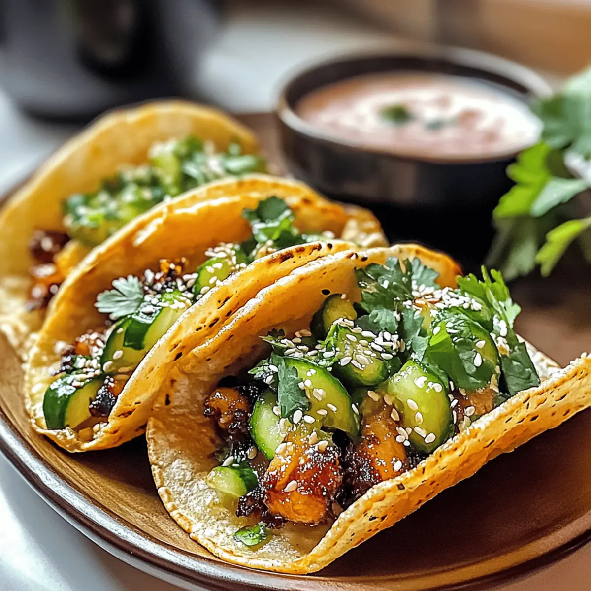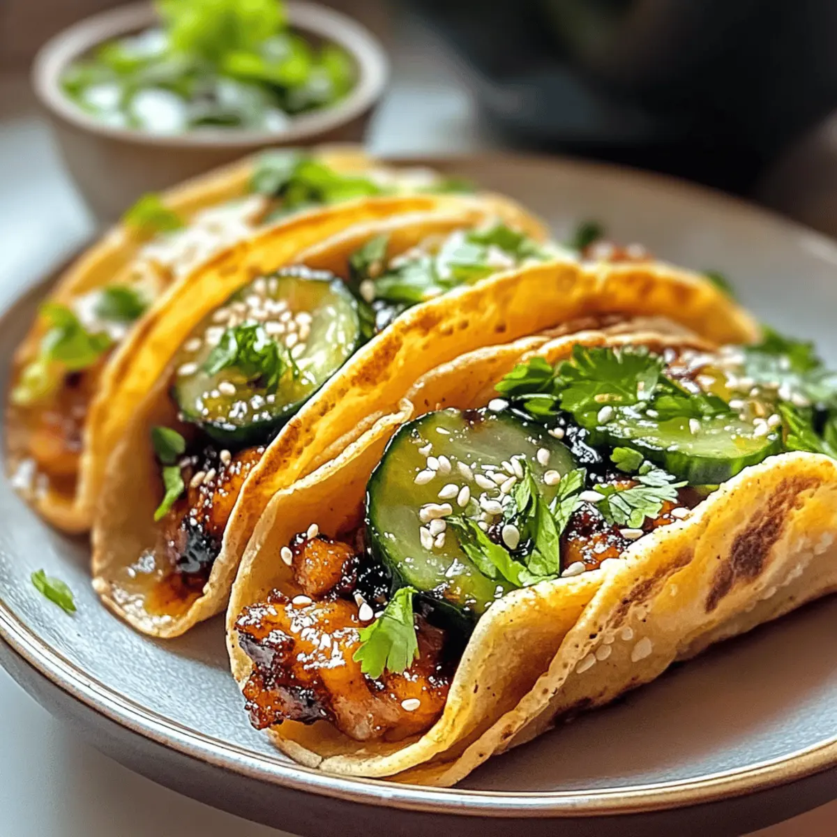 Jump to Recipe Print RecipeJust when I thought I had tried every possible way to enjoy dumplings, I stumbled upon an exciting twist: Smash Dumpling Tacos! This unique fusion combines crispy tortillas with the savory deliciousness of traditional dumplings, creating the perfect quick weeknight meal. With juicy pork filling, refreshing quick-pickled cucumbers, and a delectable dumpling dipping sauce, these tacos not only satisfy cravings but also add a fun new dimension to your dinner table. Plus, they’re super easy to prepare, making them an ideal choice for those evenings when you want something a little special without spending hours in the kitchen. So, are you ready to dive into a crispy, savory delight that will have everyone asking for seconds? Why Are Smash Dumpling Tacos a Must-Try? Fusion at Its Finest: Experience the delightful combination of traditional dumplings and modern tacos in one delicious bite. Quick Weeknight Solution: Perfect for busy evenings, these tacos come together in no time, so you can enjoy homemade goodness without the hassle. Crispy Convenience: Enjoy the satisfying crunch of fried mini tortillas that perfectly cradle a juicy pork filling. Flavor-Packed Toppings: Elevate your meal with quick-pickled cucumbers and a savory dipping sauce that complements every bite. Crowd-Pleasing Appeal: Whether for family dinners or casual get-togethers, these tacos are sure to impress guests and satisfy fussy eaters alike. Looking for more unique ideas? Check out Baked Smashed Potatoes for a delightful side dish! Smash Dumpling Tacos Ingredients For the Filling • Ground Pork – This is the main savory flavor; opt for high-quality meat for the best taste. • Green Onions – Adds a fresh, aromatic touch; slice them thinly for even distribution. • Garlic – Enhances flavor; minced garlic packs a punch. • Ginger – Offers a hint of warmth; fresh ginger adds vibrancy to the filling. • Soy Sauce – Brings saltiness and umami; use low-sodium soy sauce for a healthier option. For the Tacos • Mini Tortillas – The crispy vessel for your filling; corn tortillas are a tasty option. For the Quick-Pickled Cucumbers • Cucumbers – Provides a refreshing crunch; thinly slice them for quick pickling. • Vinegar – Acts as the pickling agent; rice vinegar enhances flavors uniquely. • Sugar – Balances acidity with a touch of sweetness; adjust to taste. For the Dumpling Dipping Sauce • Soy Sauce – A must for traditional flavor; can also use tamari for gluten-free options. • Sesame Oil – Adds richness; a little goes a long way in enhancing flavor. • Chili Flakes – Introduce a kick; adjust according to your spice preference. These Smash Dumpling Tacos bring together cherished flavors in an unforgettable way! Step‑by‑Step Instructions for Smash Dumpling Tacos Step 1: Prepare the Pork Filling In a large mixing bowl, combine ground pork, finely minced garlic, grated ginger, chopped green onions, and soy sauce. Mix well until all ingredients are evenly incorporated, creating a flavorful filling. Allow the mixture to sit for about 10 minutes to let the flavors meld. This savory filling will ensure your Smash Dumpling Tacos are bursting with deliciousness when cooked. Step 2: Assemble the Tacos Take mini tortillas and scoop about a tablespoon of the pork filling onto the center of each. Carefully fold each tortilla in half, pressing gently to create a taco shape. Ensure the filling is evenly distributed, as this keeps the integrity of the tacos while cooking. This simple assembly is key for ensuring each bite of your Smash Dumpling Tacos is satisfying and scrumptious. Step 3: Heat the Oil In a large skillet, pour enough vegetable oil to cover the bottom, about 1/4 inch deep. Heat the oil over medium-high heat until shimmering, which should take about 3-5 minutes. To test the readiness, drop a small piece of then tortilla; it should sizzle immediately upon contact. Properly heated oil is crucial for achieving that perfect crispiness in your Smash Dumpling Tacos. Step 4: Fry the Tacos Carefully place the assembled tacos in the hot oil, making sure not to overcrowd the pan. Fry for about 3-4 minutes on each side or until they are golden brown and crispy. Use tongs to gently flip them halfway through cooking. Watch for that delightful golden color, as it indicates that the outside is perfectly crunchy and the filling is cooking through. Step 5: Drain and Cool Once the Smash Dumpling Tacos are cooked, use tongs to remove them from the skillet and place them on a plate lined with paper towels. This step is essential to absorb excess oil, ensuring your tacos maintain their crispy texture. Let them cool for a minute while you prepare to top them with the fresh quick-pickled cucumbers and drizzle the delicious dumpling dipping sauce. Step 6: Add Toppings and Serve Top each taco generously with the quick-pickled cucumber slices, adding that fresh crunch that complements the savory pork. Then, drizzle your chosen dumpling dipping sauce over the top for a burst of extra flavor. Serve these Smash Dumpling Tacos warm for the best experience. With each bite, enjoy the delightful fusion of flavors as you savor this quick, weeknight dinner treat. Make Ahead Options These Smash Dumpling Tacos are perfect for meal prep enthusiasts looking to save time during busy weeknights! You can prepare the pork filling and store it in the refrigerator for up to 3 days, allowing the flavors to intensify. Additionally, you can assemble the tacos, placing the filling in the tortillas and refrigerating them for up to 24 hours to maintain their quality. To finish, simply fry the assembled tacos straight from the fridge; there’s no need for thawing, ensuring they come out just as crispy and delicious as fresh. This way, you can enjoy restaurant-quality tacos with minimal effort when dinner time rolls around! How to Store and Freeze Smash Dumpling Tacos Fridge: Store leftover tacos in an airtigh