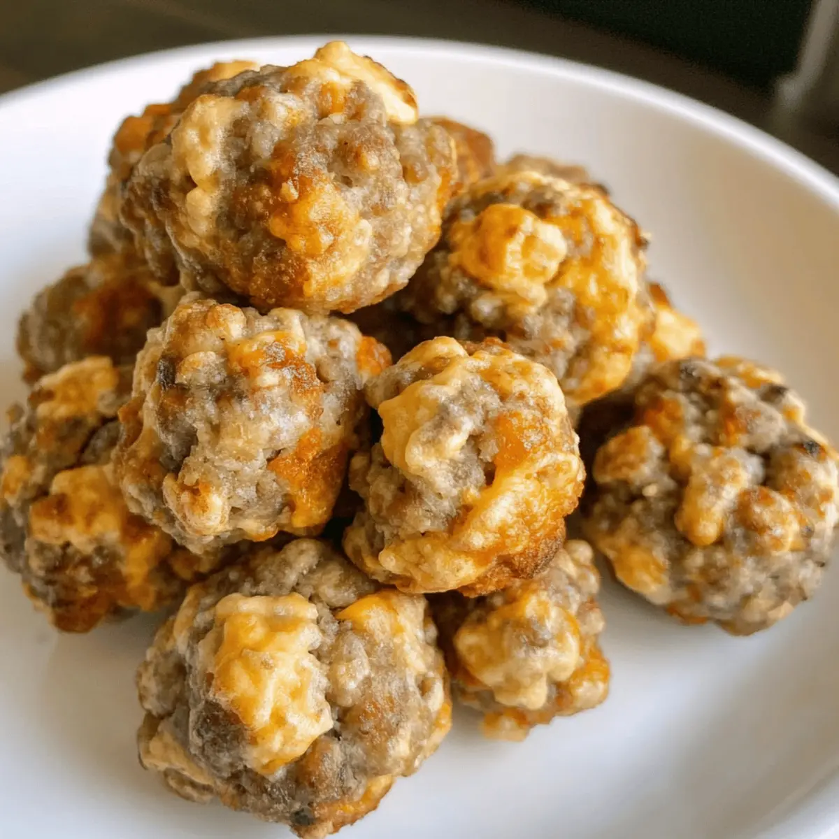Jump to Recipe Print RecipeAs the aroma of baking sausage wafted through my kitchen, I had a moment of pure nostalgia. These Easy Sourdough Sausage Balls take me back to weekends filled with laughter, where family and friends gathered to enjoy simple, hearty fare. This delightful appetizer combines savory breakfast sausage with sharp cheddar and the tangy goodness of sourdough, creating a bite-sized treat that’s sure to impress. The best part? They come together in under 30 minutes, making them a fantastic option for impromptu gatherings or game day snacks. Plus, without any Bisquick or artificial ingredients, you can feel great about serving these to your loved ones. Ready to dive into this recipe? Let’s get started and bring a little comfort to your next event! Why Are Sourdough Sausage Balls So Popular? Quick and Easy: A hassle-free preparation means you can whip these up in just 30 minutes, perfect for unexpected guests. Crowd-Pleaser: Their savory flavor and cheesy goodness ensure everyone at your gathering will be reaching for more. Nostalgic Comfort: These bites evoke memories of home-cooked meals and family gatherings, making them a heartfelt addition to any table. Versatile Flavor: Feel free to customize by mixing in different cheeses or spices; they’re easy to adapt to suit everyone’s taste! If you love the convenience and flavor of quick appetizers, you might also enjoy these Cheesy Ranch Sausage or Pepper Sausage Pasta. They’re just as easy and delicious! Sourdough Sausage Balls Ingredients For the Base • All-Purpose Flour – Provides structure to the sausage balls; substitute with gluten-free flour for a GF version. • Sourdough Starter – Adds tangy flavor and moisture; both fed and unfed starters work well. • Baking Powder – Aids in leavening, giving the sausage balls a light texture; ensure it’s fresh for best results. For the Filling • Ground Breakfast Sausage – The main protein component, offering a savory taste; use any ground sausage variety to adjust flavor. • Shredded Cheddar Cheese – Provides richness and a delicious burst of flavor; swap with your favorite cheese for a different taste. • Black Pepper – Adds a subtle kick; for extra heat, substitute with cayenne pepper or increase the black pepper amount. Enjoy whipping up these Sourdough Sausage Balls that everyone will rave about! Step‑by‑Step Instructions for Sourdough Sausage Balls Step 1: Preheat the Oven Begin by preheating your oven to 375°F (190°C). While the oven heats, prepare a baking sheet by lining it with parchment paper or a silicone mat to prevent sticking. This step is crucial for achieving perfectly golden Sourdough Sausage Balls, so ensure your baking surface is ready before moving on. Step 2: Mix Dry Ingredients In a large mixing bowl, combine the all-purpose flour, baking powder, and black pepper. Stir well to distribute the baking powder evenly throughout the flour mixture. This ensures that your Sourdough Sausage Balls rise beautifully while baking. Take a moment to breathe in the inviting aroma of the dry ingredients as they blend together. Step 3: Incorporate Cheese and Sausage Next, shred your chosen cheese and add it to the dry mixture. Then, incorporate the ground breakfast sausage and sourdough starter. Using your hands, mix everything together thoroughly until well combined. This step requires a good mix to ensure every bite of the Sourdough Sausage Balls is packed with flavor. You’re looking for a cohesive dough, so knead gently if needed. Step 4: Form the Balls With the mixture well combined, it’s time to roll it into small, 1-inch balls. Place each ball on the prepared baking sheet, spacing them about an inch apart. These Sourdough Sausage Balls won’t spread much during baking, making it easy to arrange them perfectly. Your hands might get a little messy, but that’s all part of the fun! Step 5: Bake to Perfection Place the baking sheet in the preheated oven and bake the Sourdough Sausage Balls for approximately 20 minutes. Keep an eye on them, aiming for a golden brown color. As they bake, the savory smells will fill your kitchen, making it hard to resist snacking on one before they cool. Step 6: Cool and Serve Once the Sourdough Sausage Balls are golden brown, remove them from the oven and let them cool on the baking sheet for a few minutes. This resting time allows them to firm up slightly. Serve them warm as a delightful appetizer or snack, and watch as everyone enjoys these flavorful bites full of nostalgia. Variations & Substitutions for Sourdough Sausage Balls Feel free to let your creativity shine by personalizing these delightful bites with varied tastes and textures! Gluten-Free: Use a 1:1 gluten-free flour blend instead of all-purpose flour for a gluten-free version. Cheese Swap: Try pepper jack cheese for a spicy kick or feta for a Mediterranean twist. Change the Meat: Swap ground breakfast sausage for turkey sausage or a plant-based alternative for a lighter option. Add Bacon: Crumble in some cooked bacon for an extra savory layer that bacon lovers will adore. Herbs & Spices: Incorporate fresh herbs like parsley or dill, or use Italian seasoning for a flavor boost. Vegetable Boost: Mix in finely chopped bell peppers or green onions for added color and nutrition. Spice it Up: For a heat upgrade, toss in some jalapeños or cayenne pepper to tickle those taste buds! Sourdough Variants: Use sourdough bread scraps or breadcrumbs if you don’t have a starter handy; they’ll still deliver on flavor. These variations can make your Sourdough Sausage Balls even more irresistible! If you’re inspired to try alternate flavors, you might also enjoy Cheesy Ranch Sausage or a hearty Pepper Sausage Pasta for your next meal! Make Ahead Options These Sourdough Sausage Balls are perfect for busy home cooks who want to save time without sacrificing flavor! You can prepare the mixture up to 24 hours in advance—simply cover it tightly and re